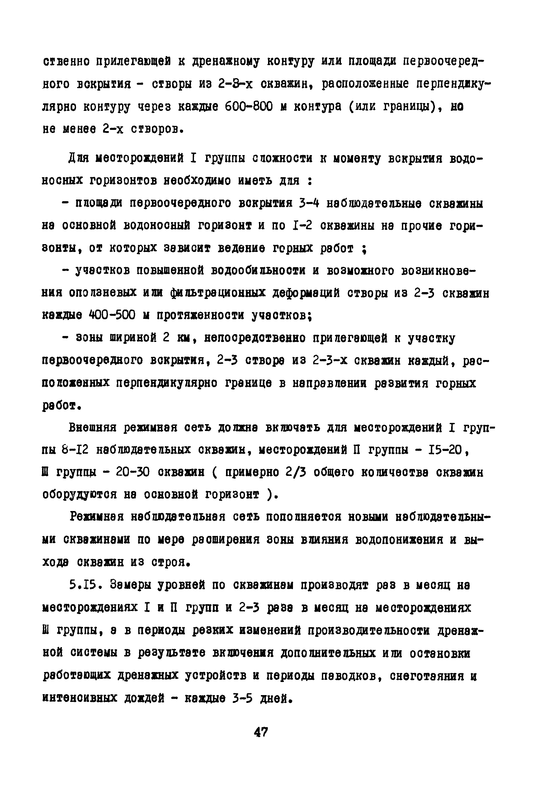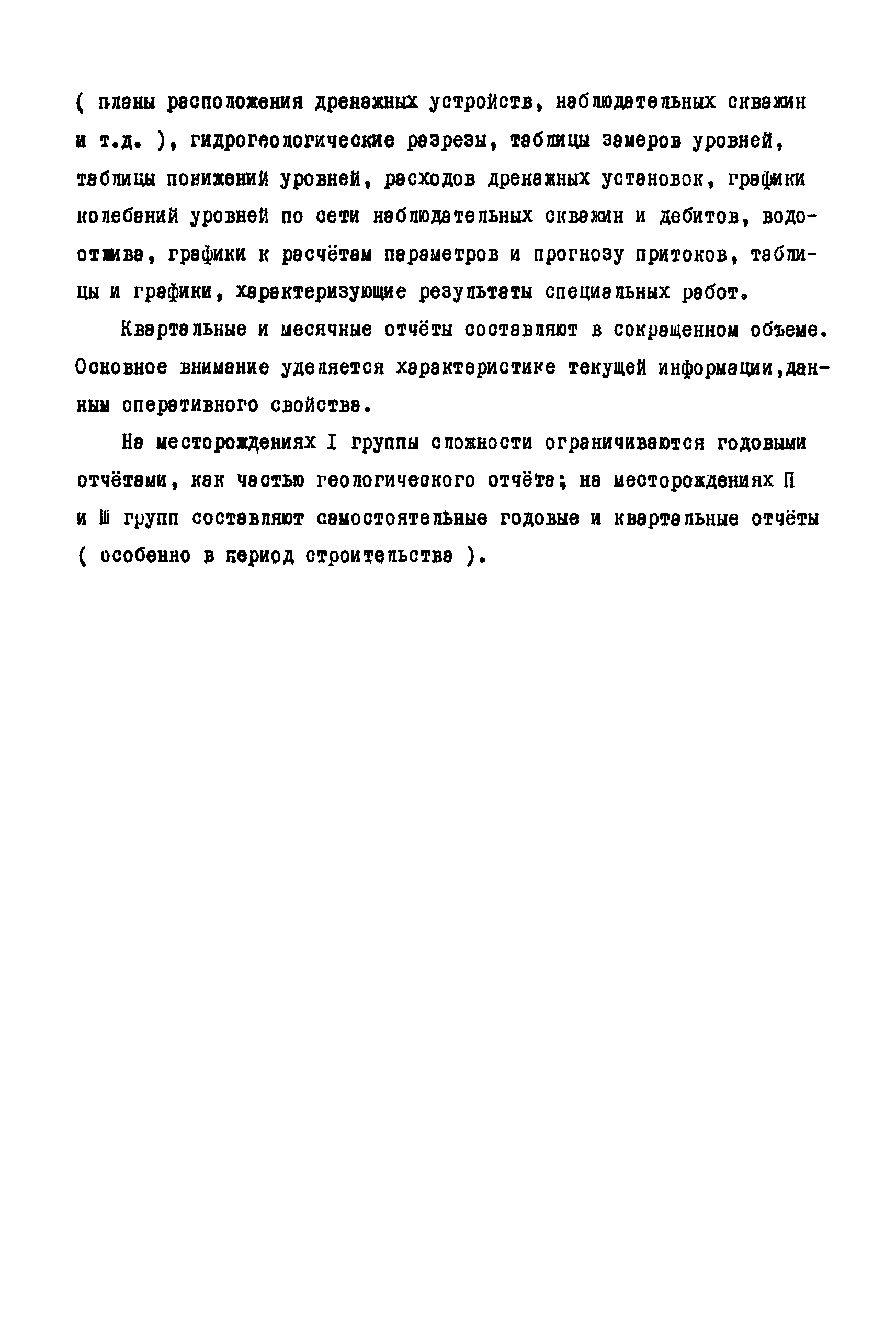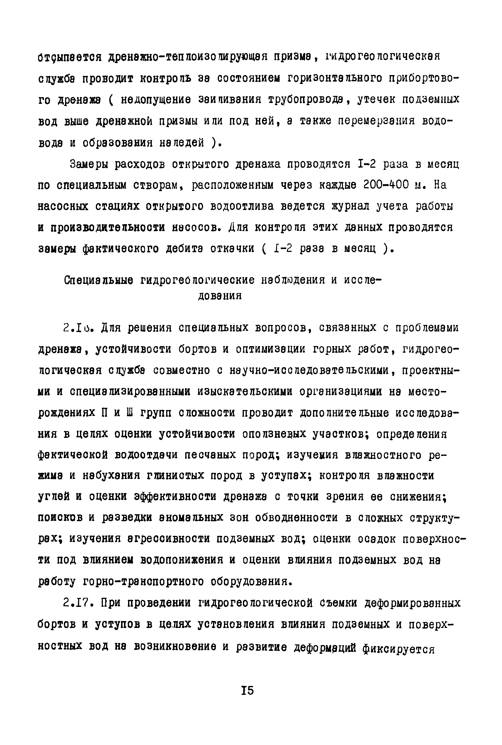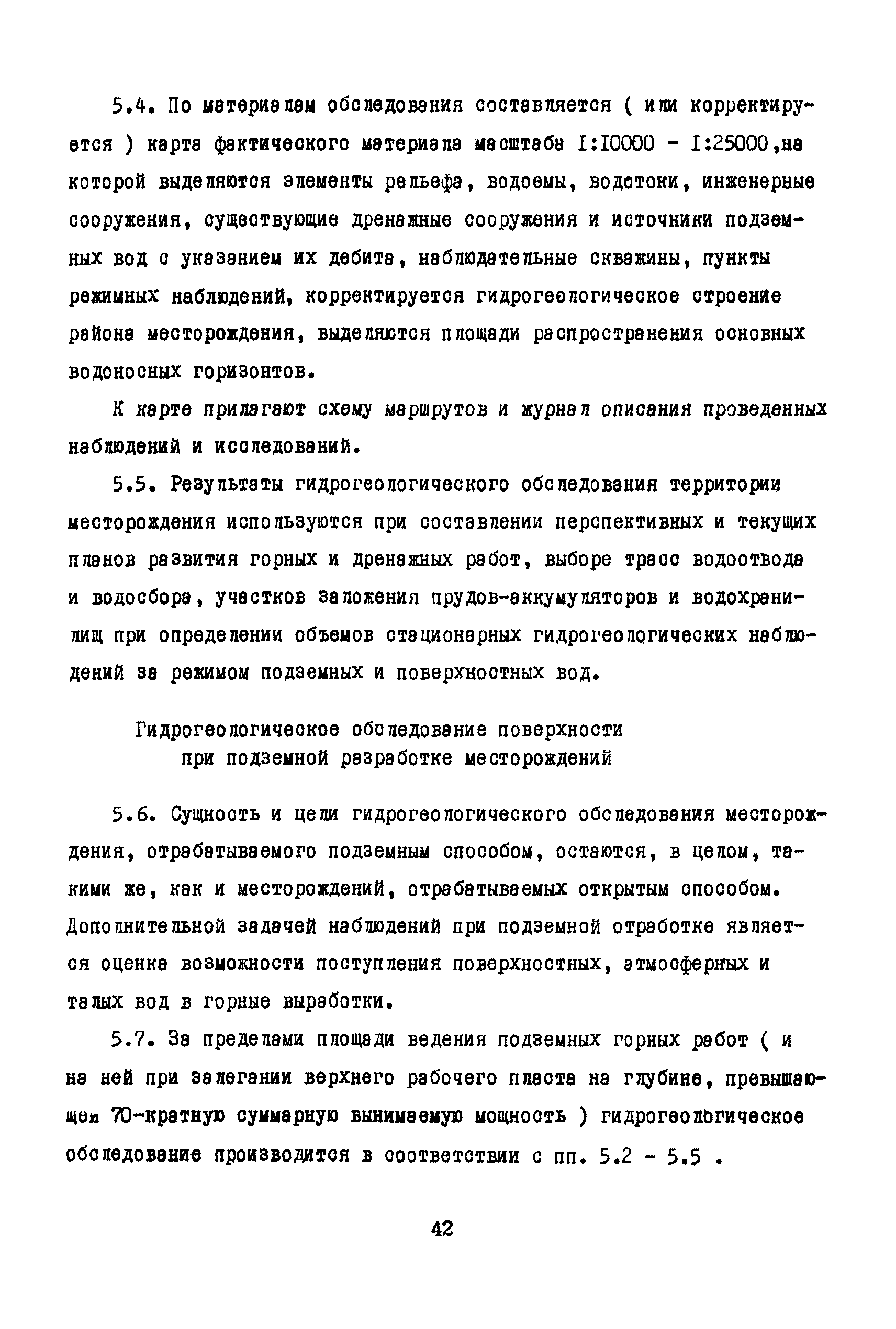 Методические указания по гидрогеологическому обслуживанию угледобывающих предприятий| Статус: | справочные материалы, мп, тпр | | Название рус.: | Методические указания по гидрогеологическому обслуживанию угледобывающих предприятий | | Дата добавления в базу: | 01.01.2018 | | Дата актуализации: | 01.01.2021 | | Область применения: | В документе изложена классификация месторождений по сложности гидрогеологического обслуживания, приведен состав и объем гидрогеологических наблюдений. Рассмотрены цели, состав, методика и объем наблюдений при открытом и подземном способах разработки месторождений, а также содержание гидрогеологической документации | | Оглавление: | 1 Общие положения 2 Гидрогеологические наблюдения в открытых горных выработках Гидрогеологическое обследование карьера Наблюдения за строительством и эксплуатацией внутрикарьерных дренажных устройств Специальные гидрогеологические наблюдения и исследования 3 Гидрогеологические наблюдения в подземных горных выработках Наблюдения при проходке и эксплуатации шахтных стволов Наблюдения при проходке и эксплуатации подготовительных горных выработок Гидрогеологические наблюдения на участках ведения очистных работ Наблюдения за затопленными горными выработками 4 Гидрогеологическое обслуживание дренажных скважин Наблюдения при бурении и оборудовании дренажных скважин Наблюдения за изменением дебита дренажных скважин Наблюдения за уровнями подземных вод Контроль за состоянием дренажных скважин Специальные гидрогеологические наблюдения Документация наблюдений и их интерпретация 5 Гидрологические наблюдения на поверхности карьерных и шахтных полей Гидрогеологическое обследование поверхности при открытой разработке месторождений Гидрогеологическое обследование поверхности при подземной разработке месторождений Стационарные наблюдения за режимом подземных и поверхностных вод 6 Гидрогеологическая отчетность | | Разработан: | ВНИМИ