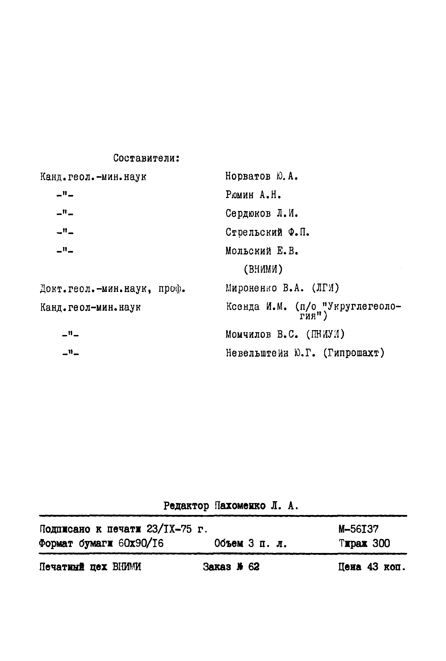 | | Издан: | ВНИМИ (1975 г. )