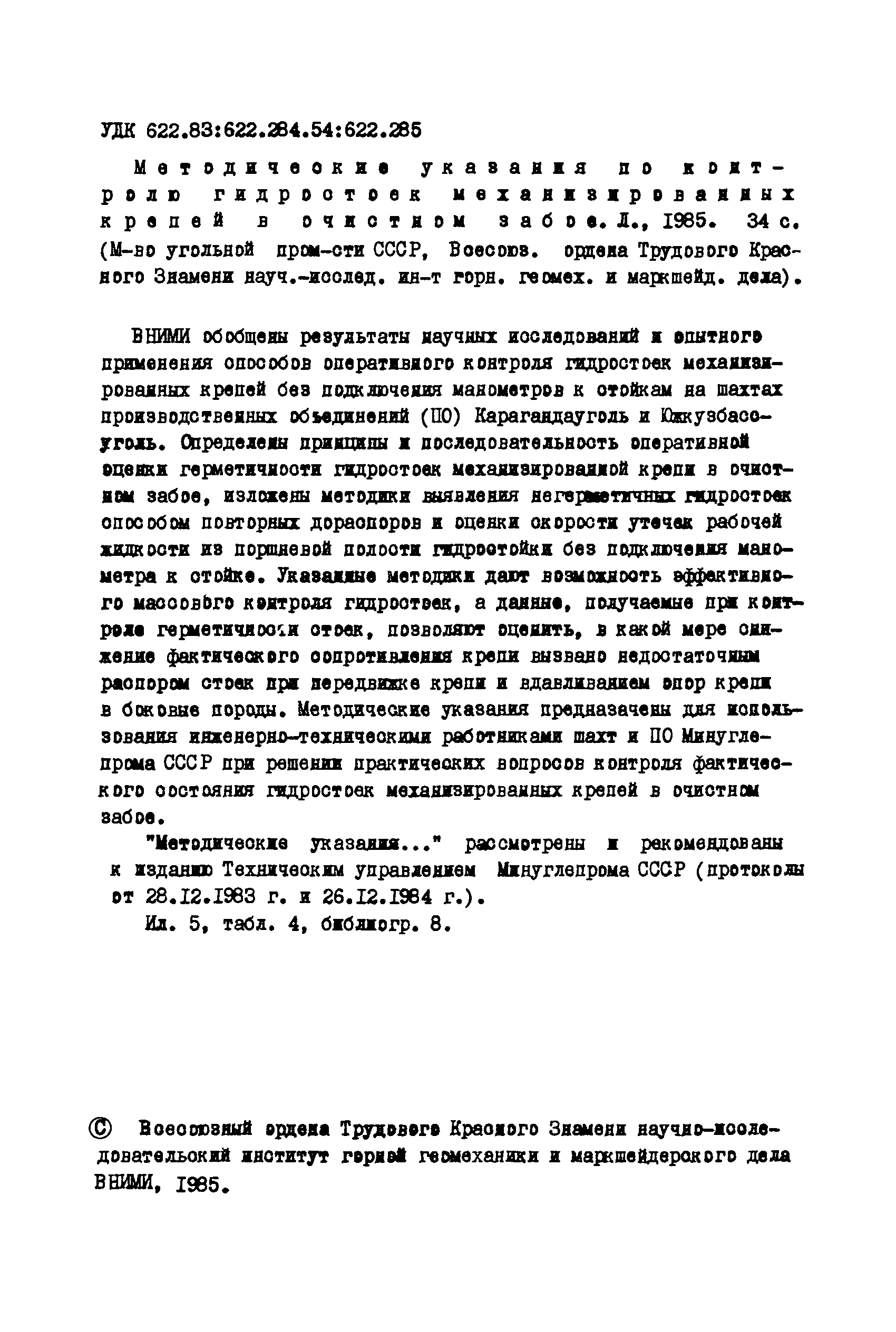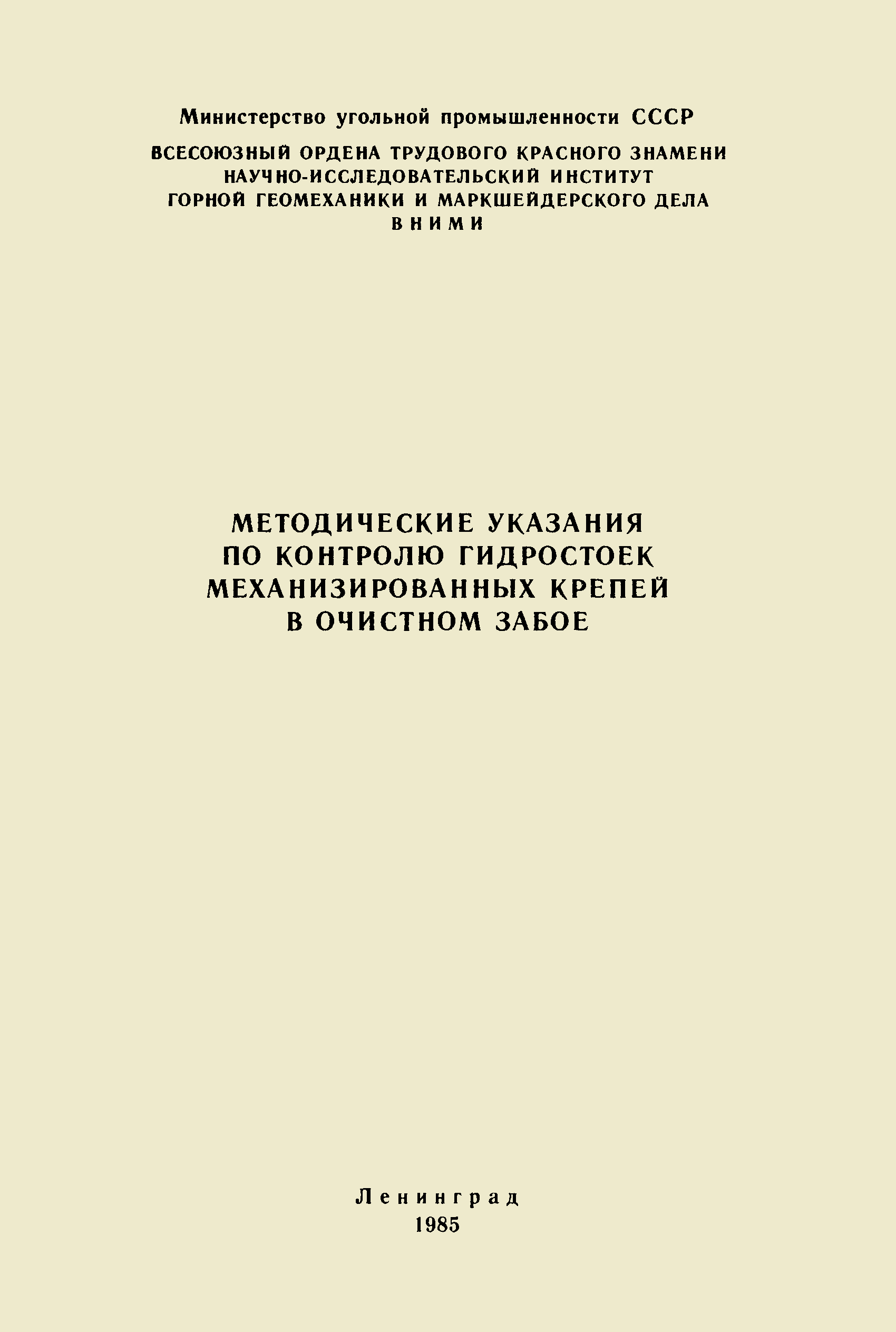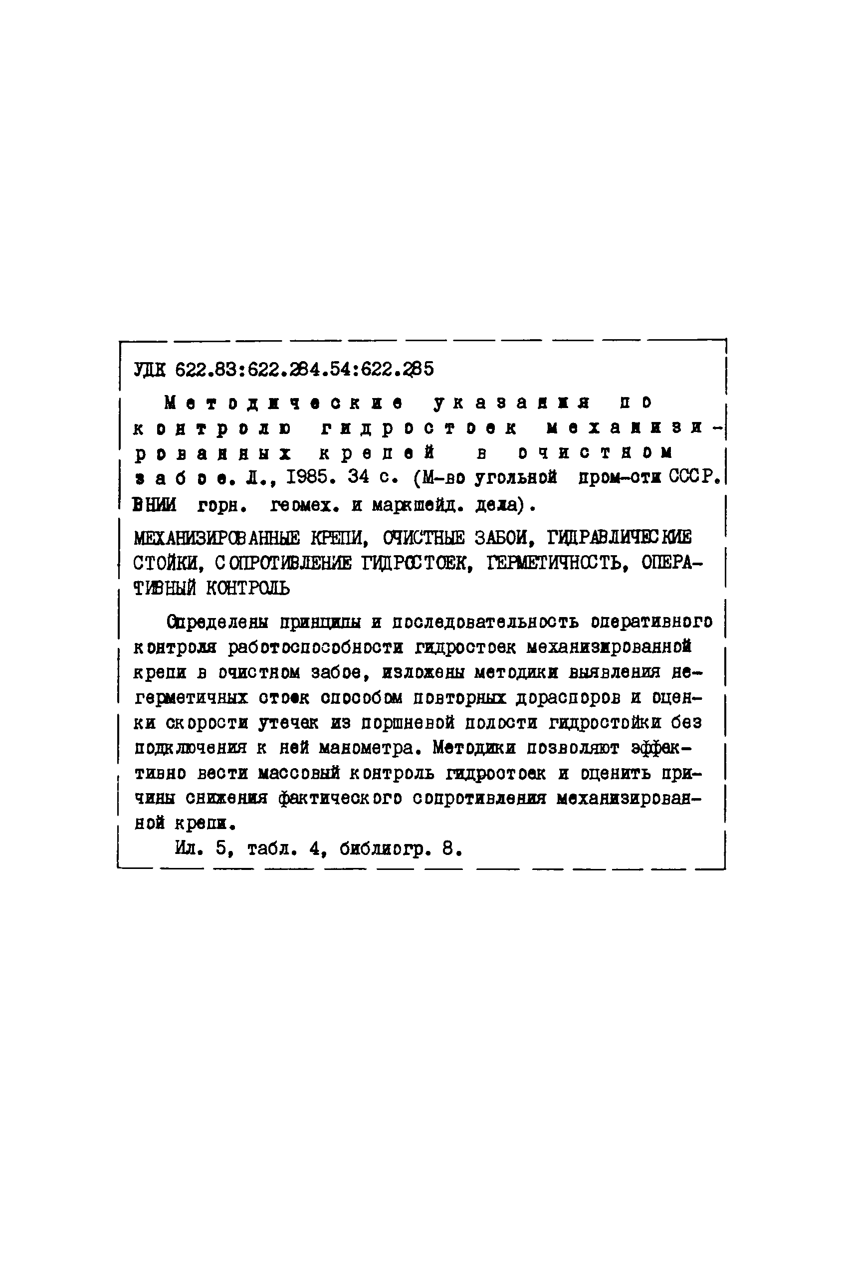 | Название рус.: | Методические указания по контролю гидростоек механизированных крепей в очистном забое |