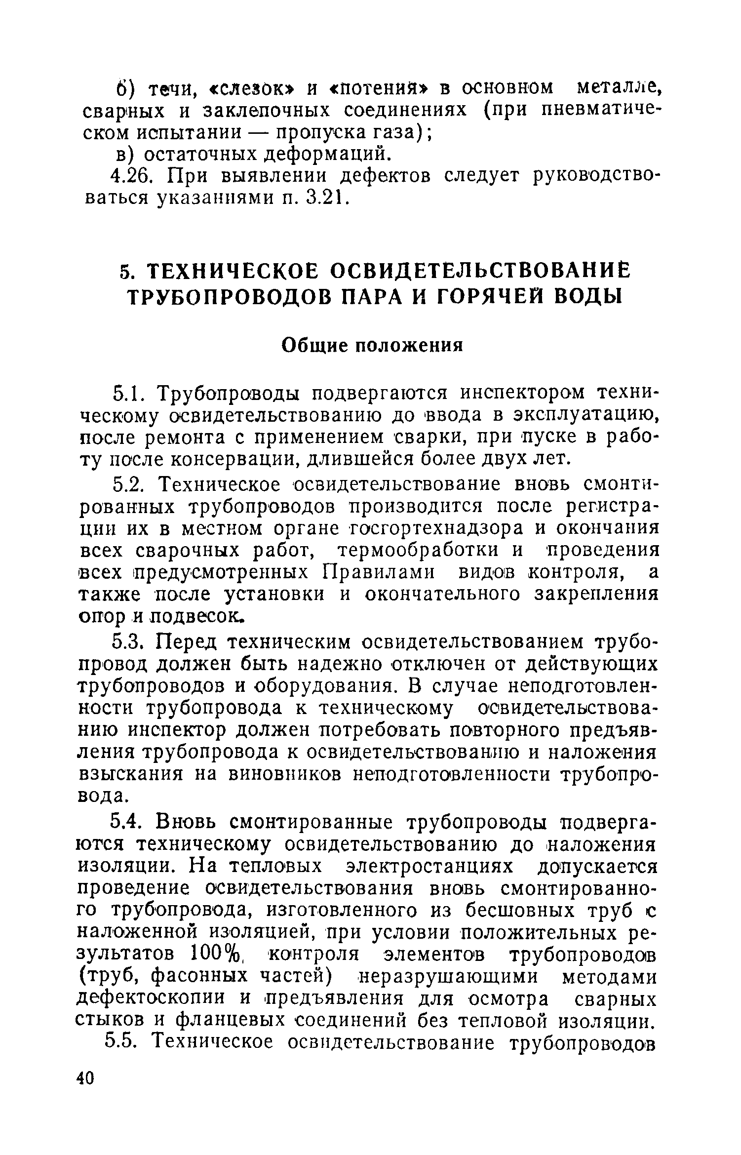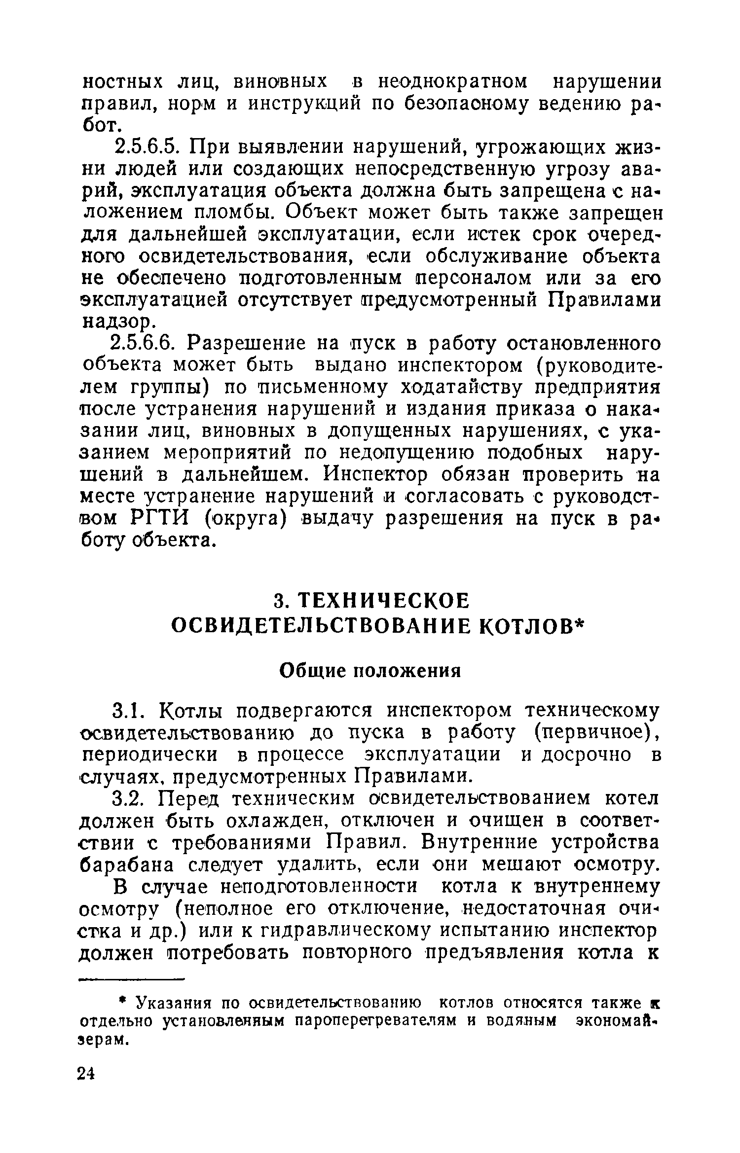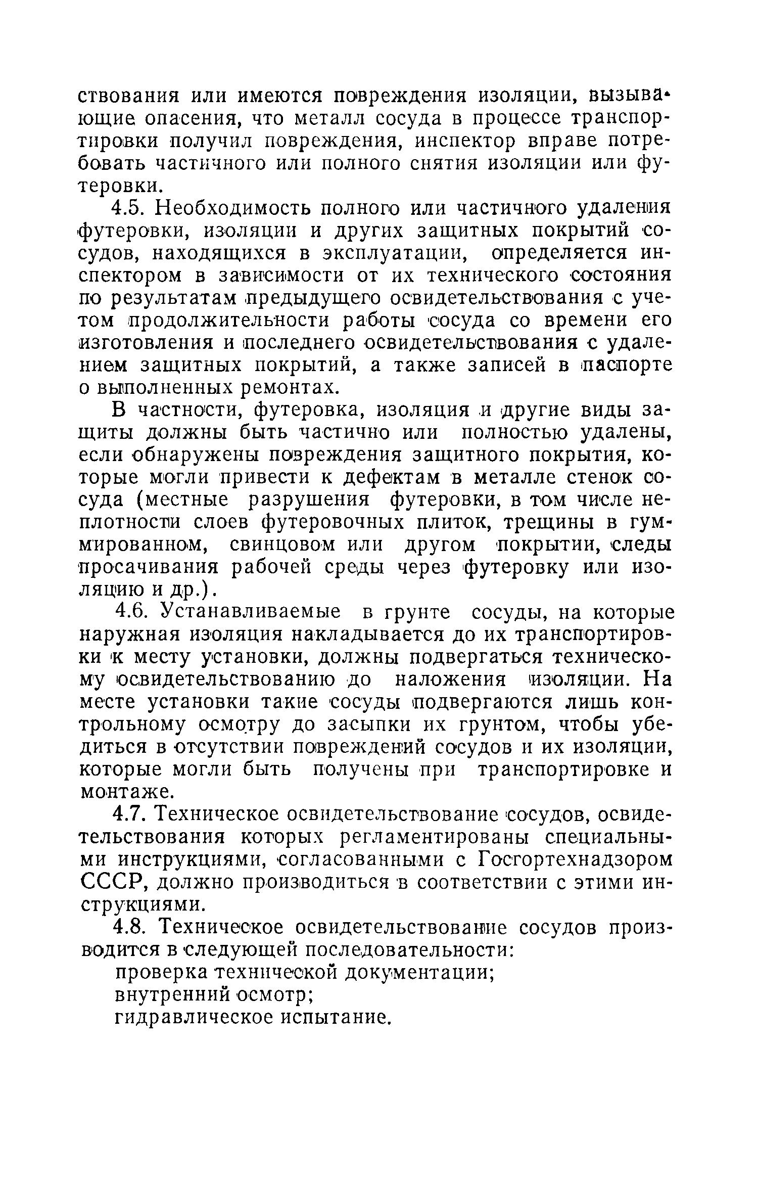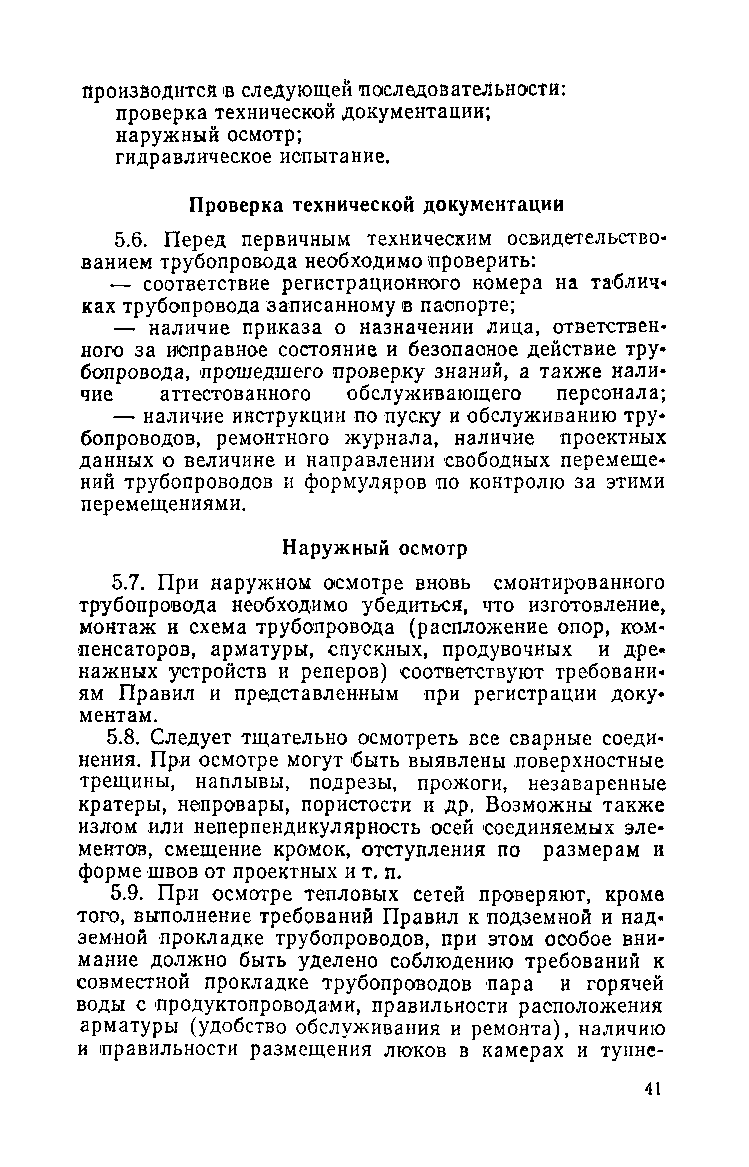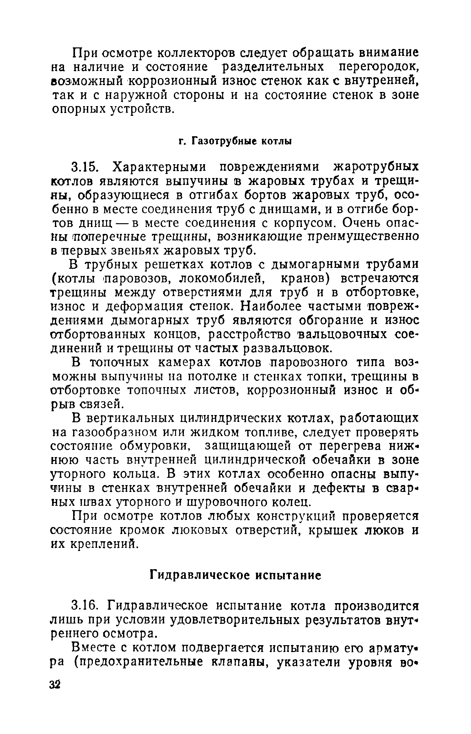 | Оглавление: | 1 Общие положения 2 Обследование 3 Техническое освидетельствование котлов Общие положения Проверка технической документация Внутренний осмотр Гидравлическое испытание 4 Техническое освидетельствование сосудов Общие положения Проверка технической документации Внутренний осмотр Гидравлическое испытание 5 Техническое освидетельствование трубопроводов пара и горячей воды Общие положения Проверка технической документации Наружный осмотр Гидравлическое испытание 6 Оформление результатов технического освидетельствования 7 Приложение. Перечень некоторых нормативных и других материалов, которые могут быть использованы инспектором при обследованиях и освидетельствованиях объектов котлонадзора |