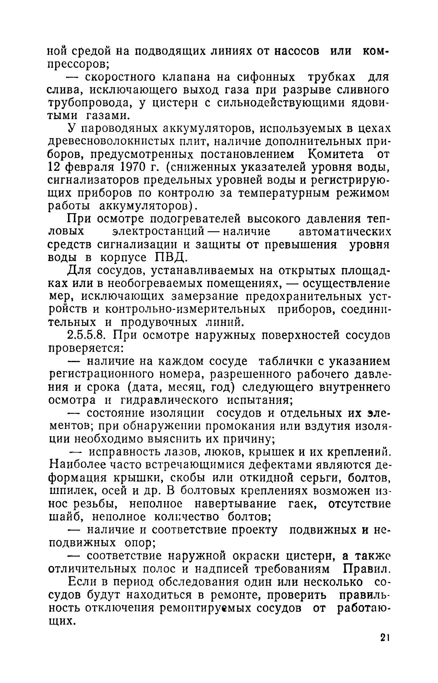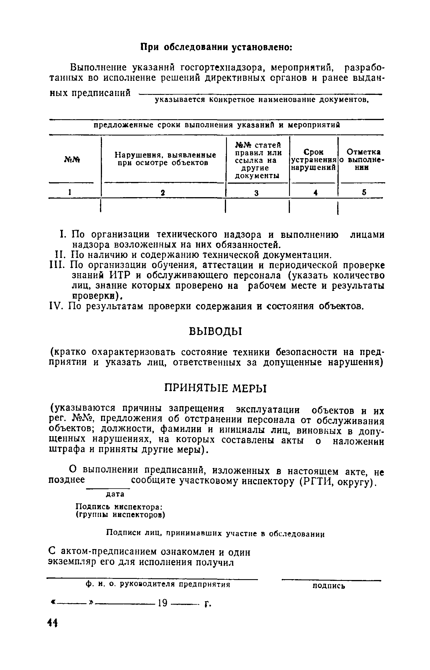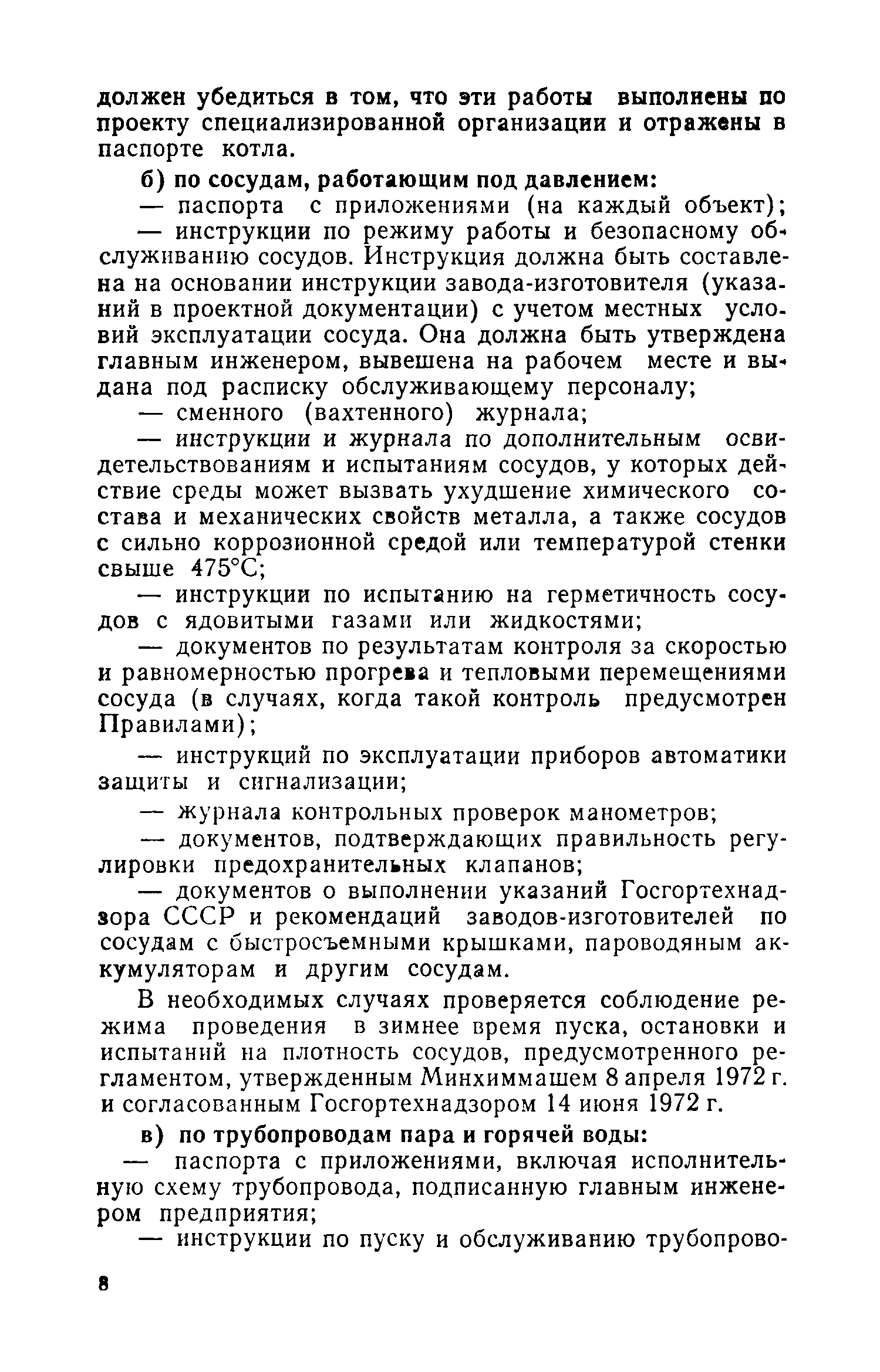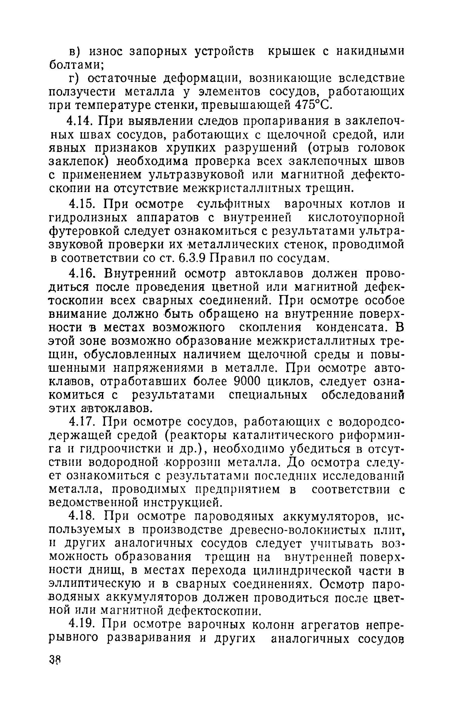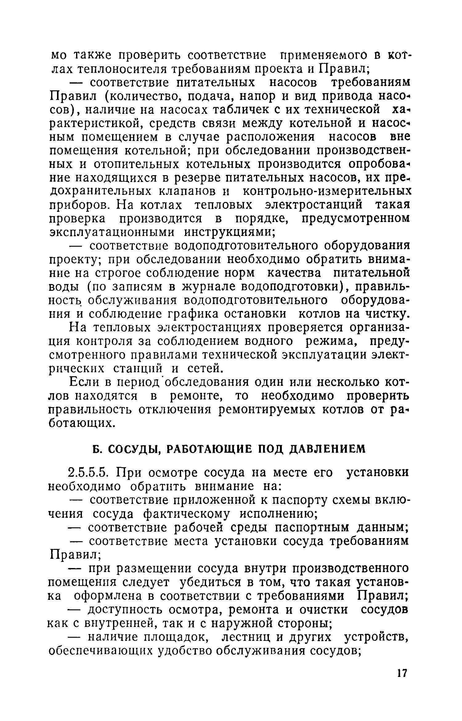 | Оглавление: | 1 Общие положения 2 Обследование 3 Техническое освидетельствование котлов Общие положения Проверка технической документация Внутренний осмотр Гидравлическое испытание 4 Техническое освидетельствование сосудов Общие положения Проверка технической документации Внутренний осмотр Гидравлическое испытание 5 Техническое освидетельствование трубопроводов пара и горячей воды Общие положения Проверка технической документации Наружный осмотр Гидравлическое испытание 6 Оформление результатов технического освидетельствования 7 Приложение. Перечень некоторых нормативных и других материалов, которые могут быть использованы инспектором при обследованиях и освидетельствованиях объектов котлонадзора |