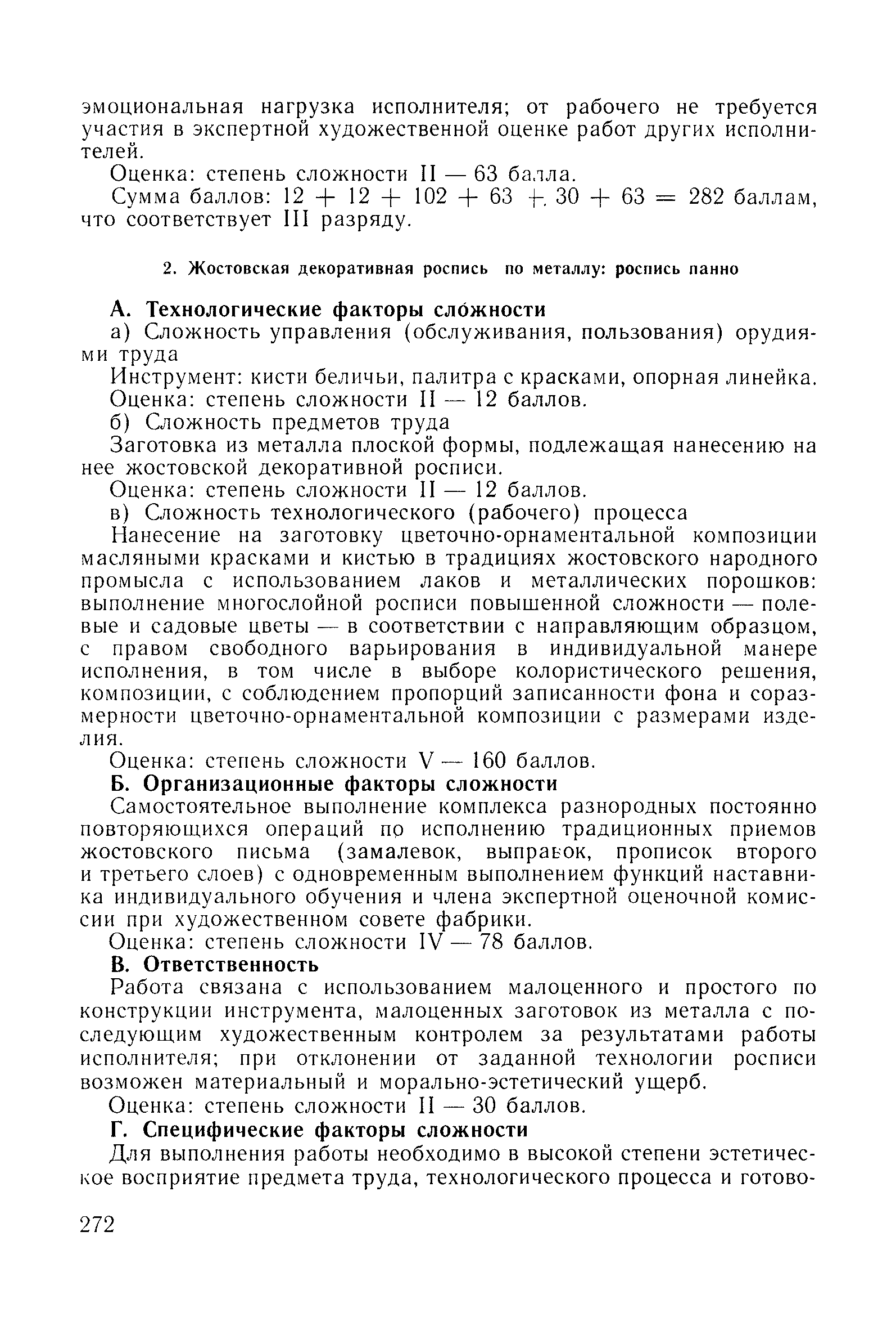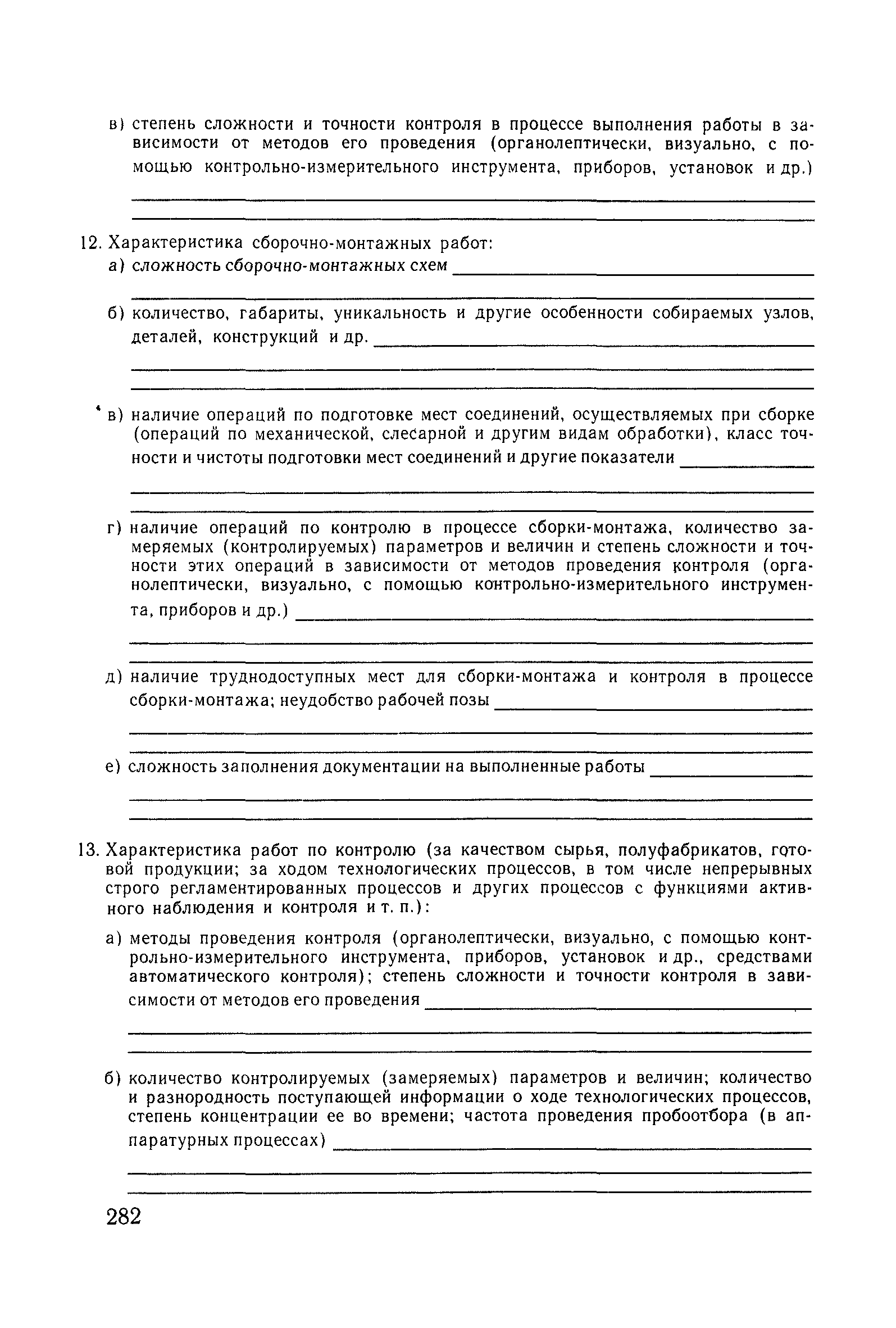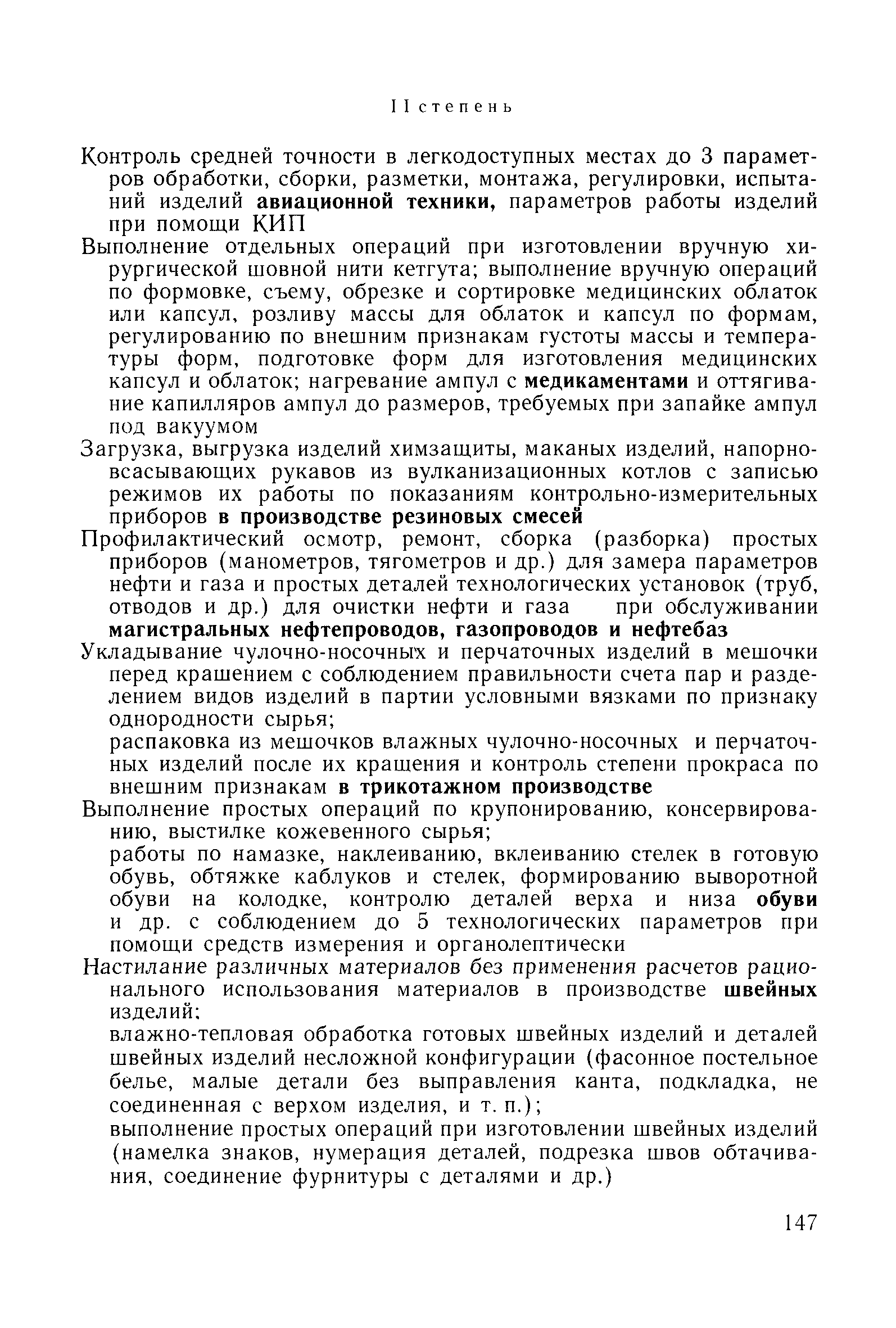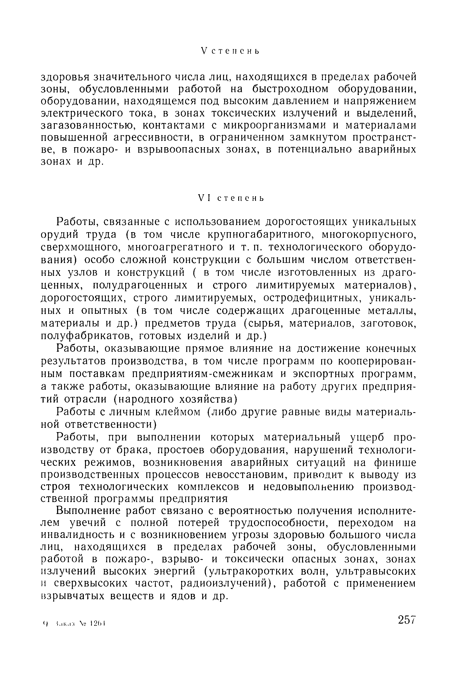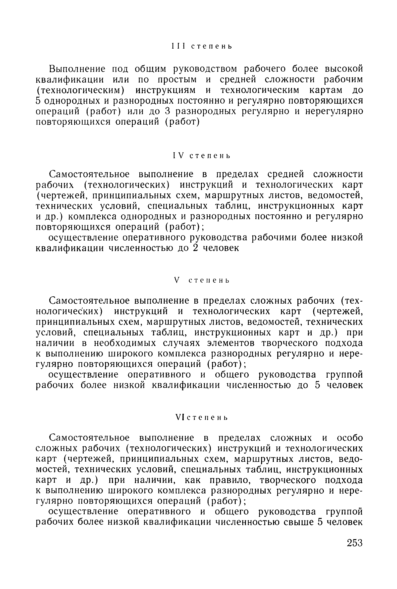 | Оглавление: | Введение I Назначение и структура построения Единого тарифно-квалификационного справочника работ и профессий рабочих II Основы методики определения разряда сложности работ III Определение требований к квалификации рабочих IV Определение наименований профессий рабочих Приложение 1. Примеры тарифно-квалификационных характеристик профессий рабочих по типам трудовых процессов Приложение 2. Критерии степеней сложности факторов 1. Критерии степеней сложности технологических факторов 1. Критерии степеней подфактора "Сложность управлении (обслуживания, пользования) орудиями труда" А. Для ручных процессов труда Б. Для машинно-ручных процессов труда В. Для машинных процессов труда Г. Для автоматизированных процессов труда Д. Для аппаратурных процессов труда 2. Критерии степеней подфактора "Сложность предметов труда" А. Для ручных процессов труда Б. Для машинно-ручных процессов труда В. Для машинных процессов труда 3. Критерии степеней подфактора "Сложность технологических (рабочих) процессов" А. Для ручных процессов труда Б. Для машинно-ручных процессов труда В. Для машинных процессов труда Г. Для автоматизированных процессов труда Д. Для аппаратурных процессов труда II Критерии степеней сложности организационных факторов (широты комплекса выполняемых операций (работ) и степени самостоятельности рабочего в процессе выполнения работ) III Критерии степеней сложности фактора ответственности (материальной ответственности и ответственности за здоровье и жизнь) IV Критерии степеней сложности специфических факторов . . . Приложение 3. Профессионально-квалификационная карта рабочего Приложение 4. Примеры оценки сложности работ по типам трудовых процессов Приложение 5. Тарифно-квалификационная карта для определения разряда сложности работы |