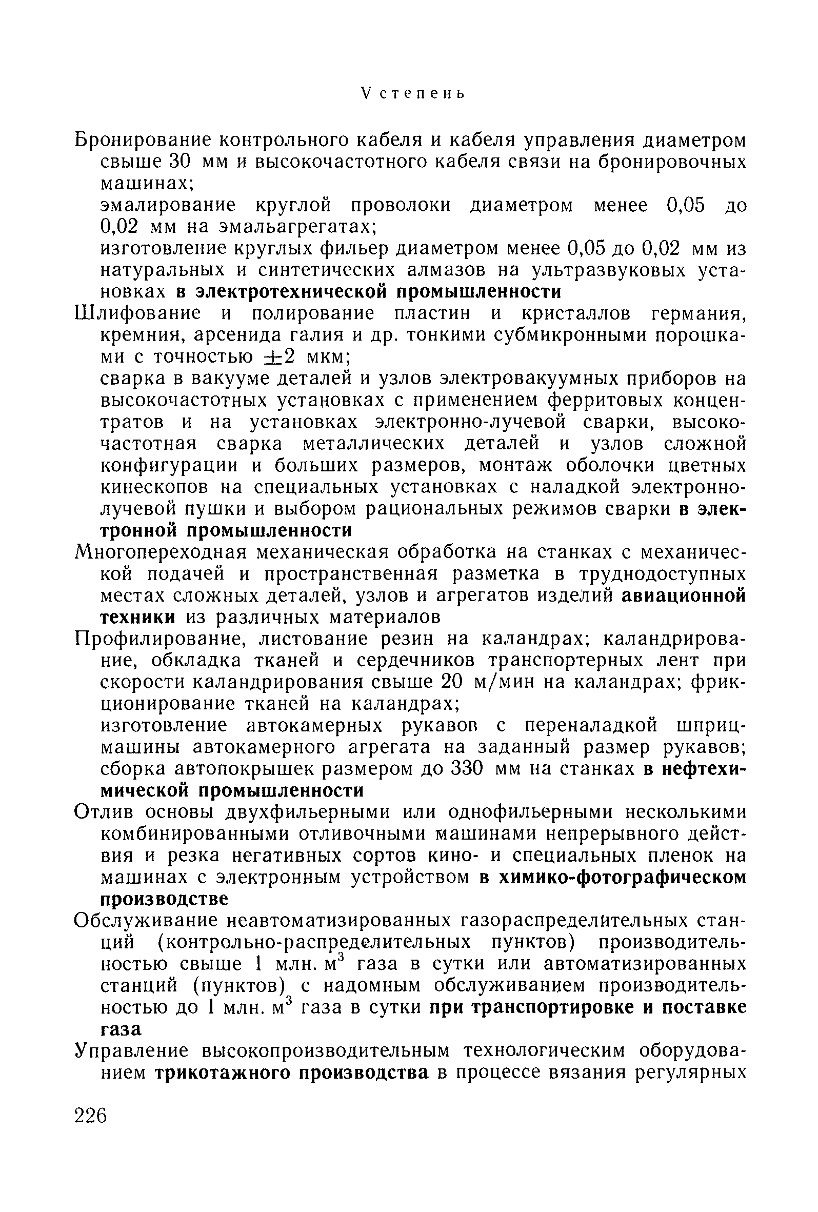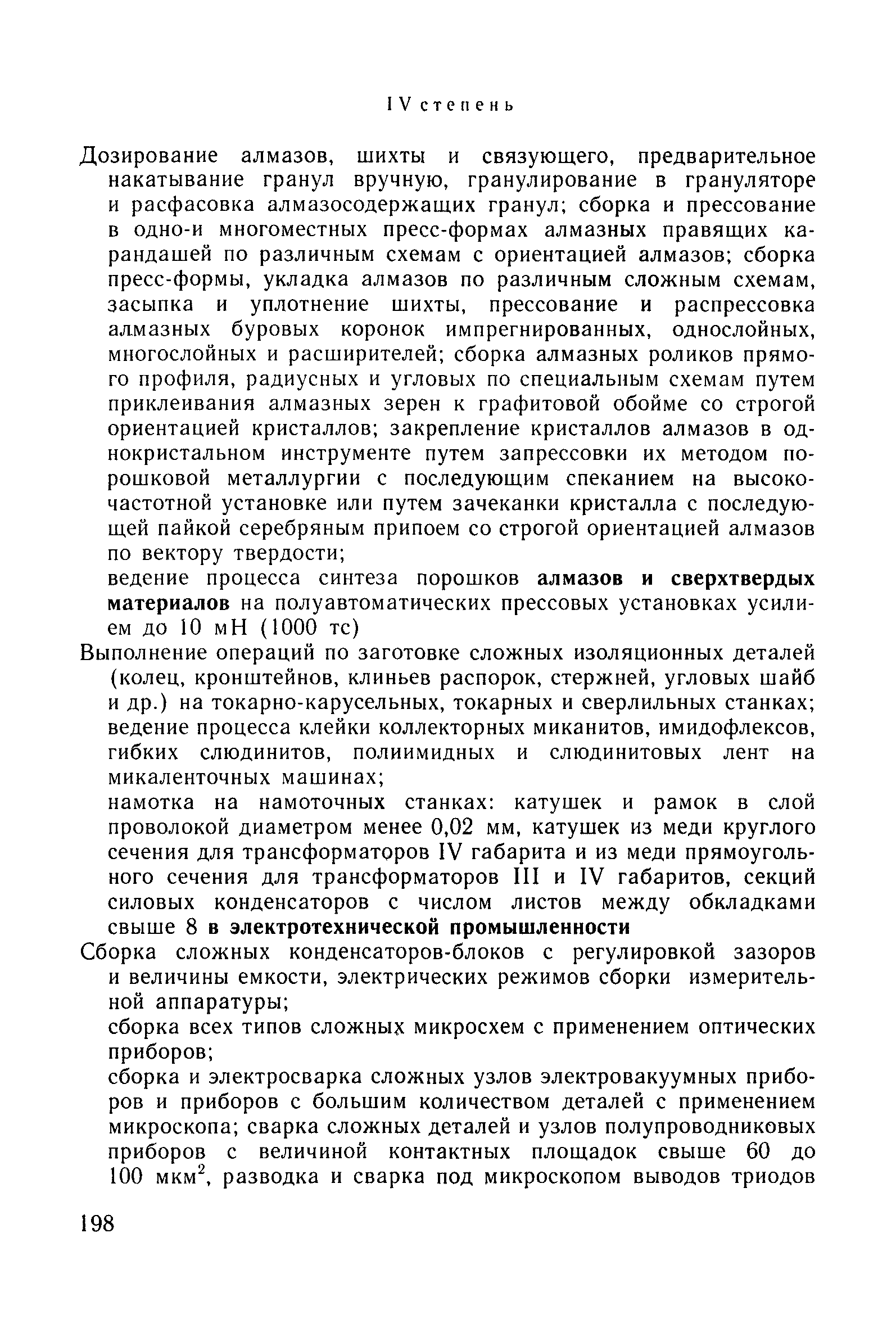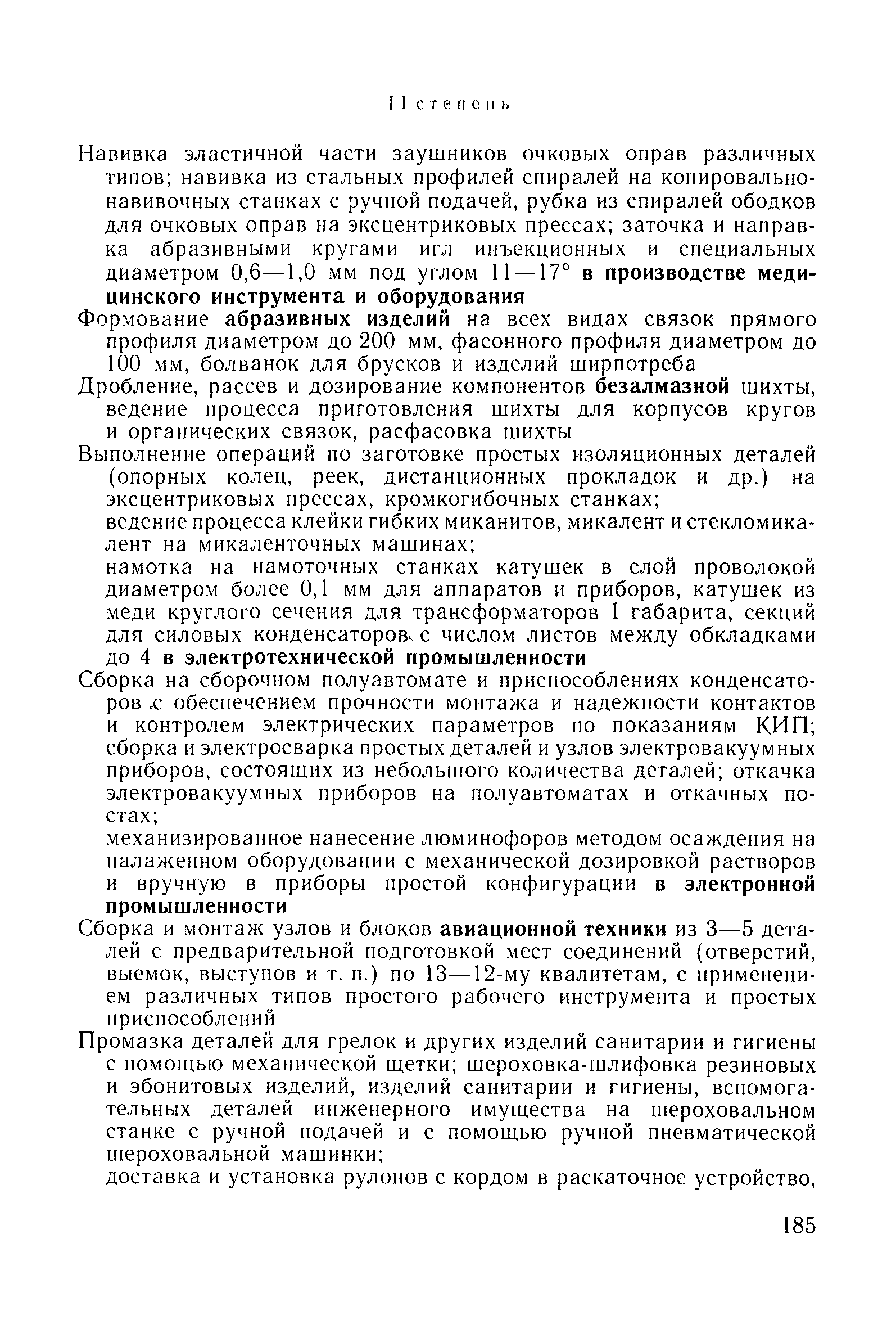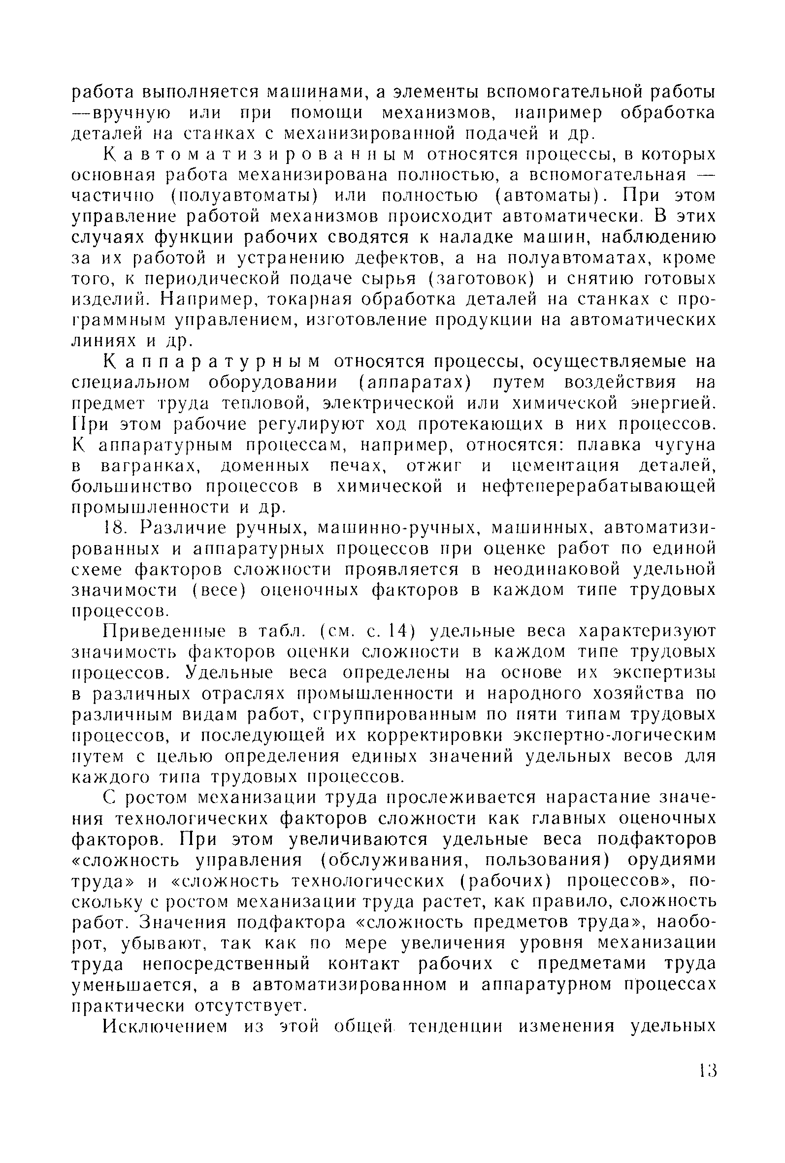 | Оглавление: | Введение I Назначение и структура построения Единого тарифно-квалификационного справочника работ и профессий рабочих II Основы методики определения разряда сложности работ III Определение требований к квалификации рабочих IV Определение наименований профессий рабочих Приложение 1. Примеры тарифно-квалификационных характеристик профессий рабочих по типам трудовых процессов Приложение 2. Критерии степеней сложности факторов 1. Критерии степеней сложности технологических факторов 1. Критерии степеней подфактора "Сложность управлении (обслуживания, пользования) орудиями труда" А. Для ручных процессов труда Б. Для машинно-ручных процессов труда В. Для машинных процессов труда Г. Для автоматизированных процессов труда Д. Для аппаратурных процессов труда 2. Критерии степеней подфактора "Сложность предметов труда" А. Для ручных процессов труда Б. Для машинно-ручных процессов труда В. Для машинных процессов труда 3. Критерии степеней подфактора "Сложность технологических (рабочих) процессов" А. Для ручных процессов труда Б. Для машинно-ручных процессов труда В. Для машинных процессов труда Г. Для автоматизированных процессов труда Д. Для аппаратурных процессов труда II Критерии степеней сложности организационных факторов (широты комплекса выполняемых операций (работ) и степени самостоятельности рабочего в процессе выполнения работ) III Критерии степеней сложности фактора ответственности (материальной ответственности и ответственности за здоровье и жизнь) IV Критерии степеней сложности специфических факторов . . . Приложение 3. Профессионально-квалификационная карта рабочего Приложение 4. Примеры оценки сложности работ по типам трудовых процессов Приложение 5. Тарифно-квалификационная карта для определения разряда сложности работы |