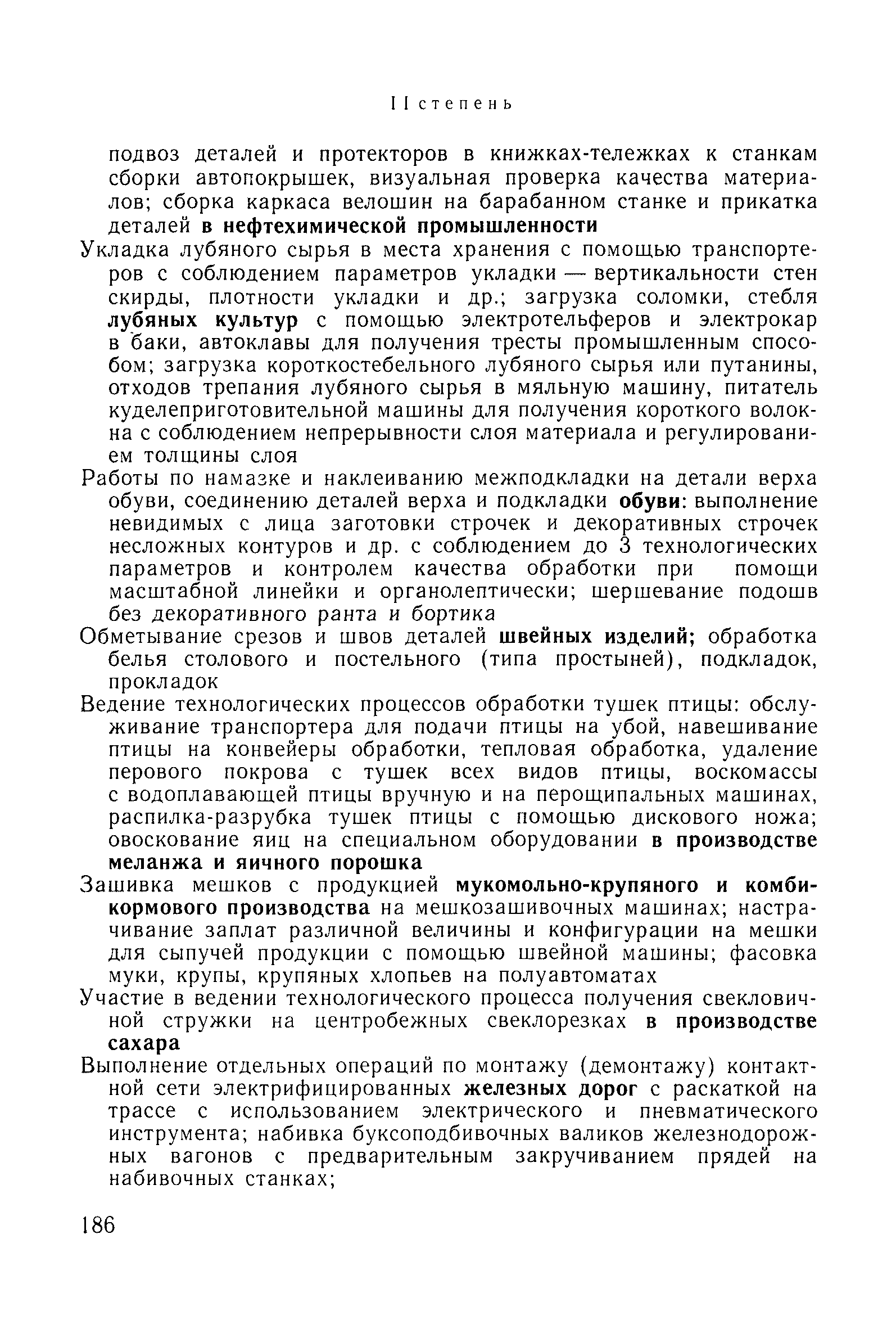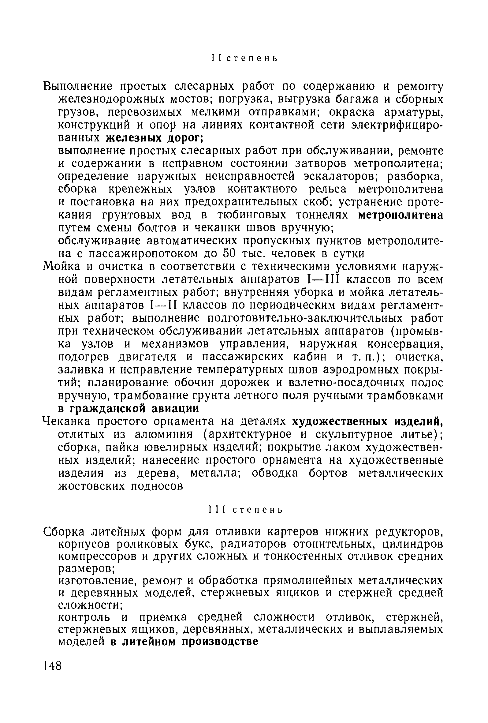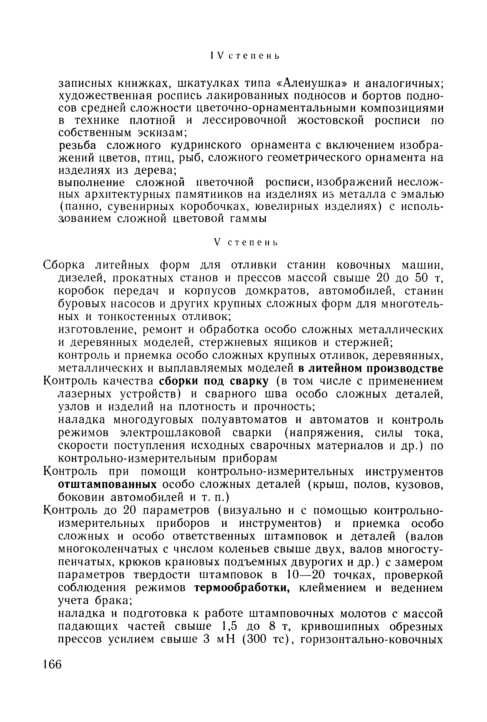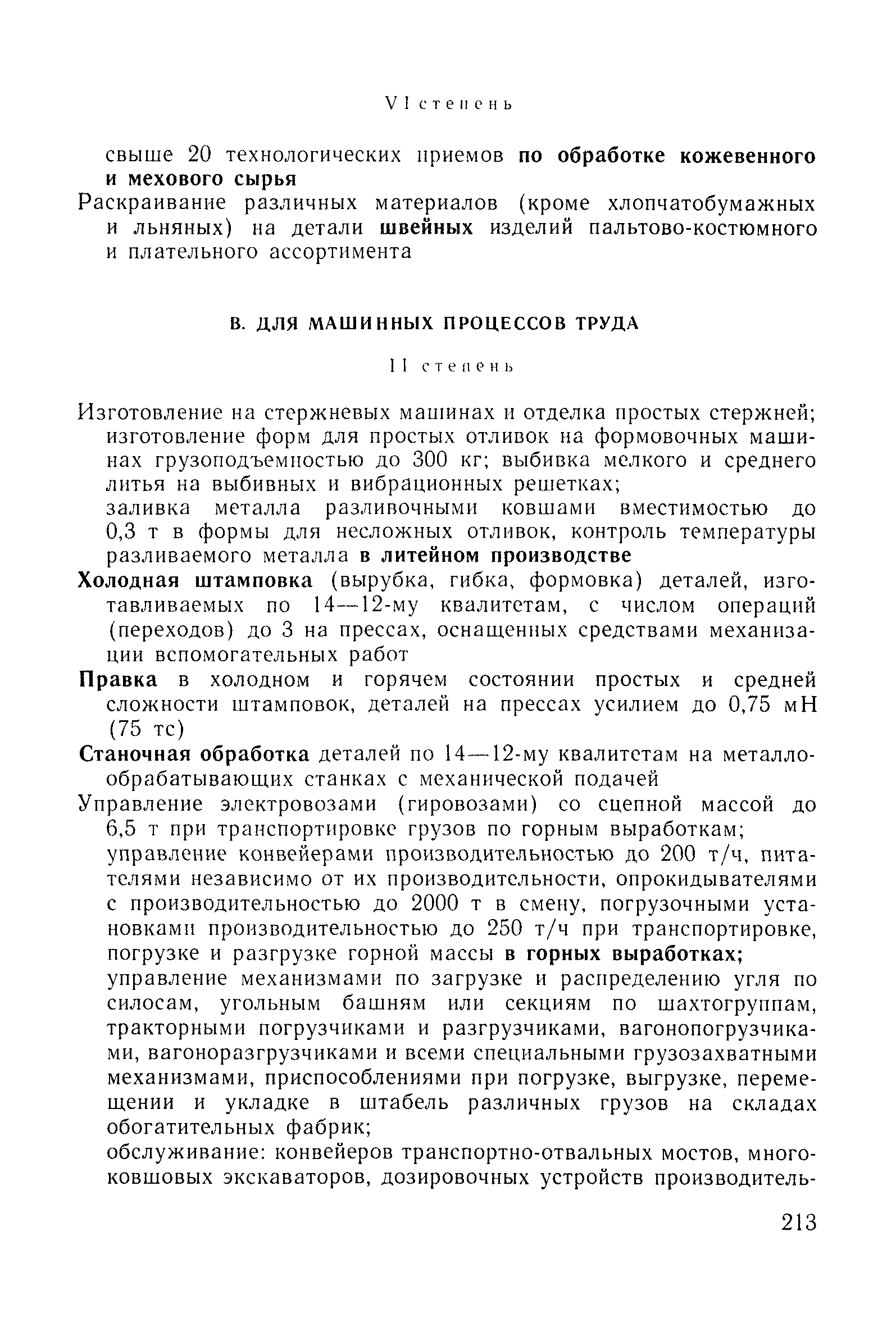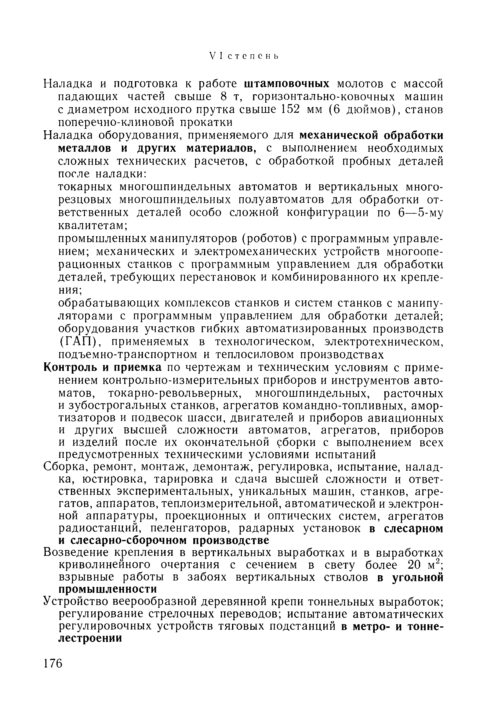 | Оглавление: | Введение I Назначение и структура построения Единого тарифно-квалификационного справочника работ и профессий рабочих II Основы методики определения разряда сложности работ III Определение требований к квалификации рабочих IV Определение наименований профессий рабочих Приложение 1. Примеры тарифно-квалификационных характеристик профессий рабочих по типам трудовых процессов Приложение 2. Критерии степеней сложности факторов 1. Критерии степеней сложности технологических факторов 1. Критерии степеней подфактора "Сложность управлении (обслуживания, пользования) орудиями труда" А. Для ручных процессов труда Б. Для машинно-ручных процессов труда В. Для машинных процессов труда Г. Для автоматизированных процессов труда Д. Для аппаратурных процессов труда 2. Критерии степеней подфактора "Сложность предметов труда" А. Для ручных процессов труда Б. Для машинно-ручных процессов труда В. Для машинных процессов труда 3. Критерии степеней подфактора "Сложность технологических (рабочих) процессов" А. Для ручных процессов труда Б. Для машинно-ручных процессов труда В. Для машинных процессов труда Г. Для автоматизированных процессов труда Д. Для аппаратурных процессов труда II Критерии степеней сложности организационных факторов (широты комплекса выполняемых операций (работ) и степени самостоятельности рабочего в процессе выполнения работ) III Критерии степеней сложности фактора ответственности (материальной ответственности и ответственности за здоровье и жизнь) IV Критерии степеней сложности специфических факторов . . . Приложение 3. Профессионально-квалификационная карта рабочего Приложение 4. Примеры оценки сложности работ по типам трудовых процессов Приложение 5. Тарифно-квалификационная карта для определения разряда сложности работы |