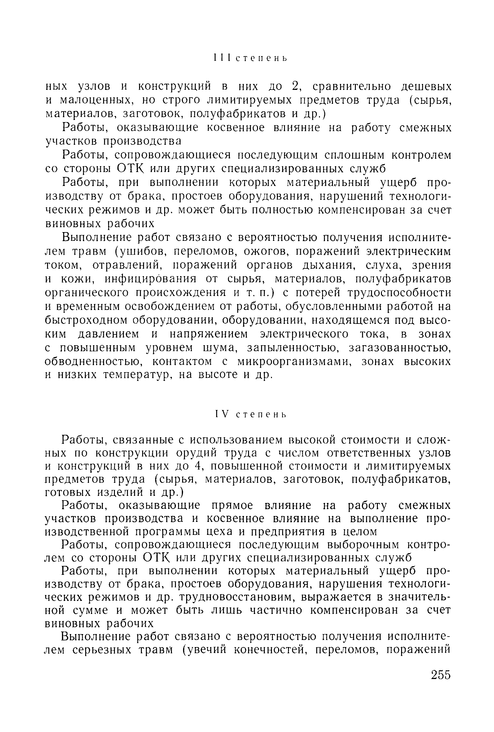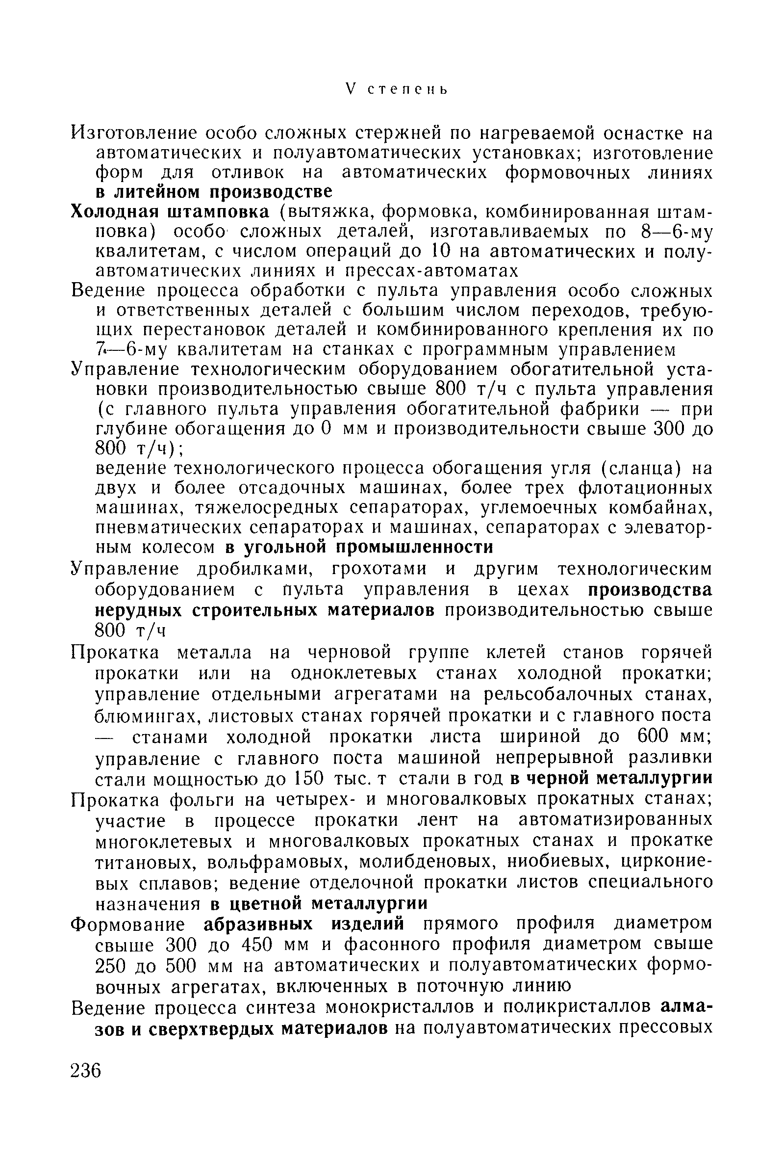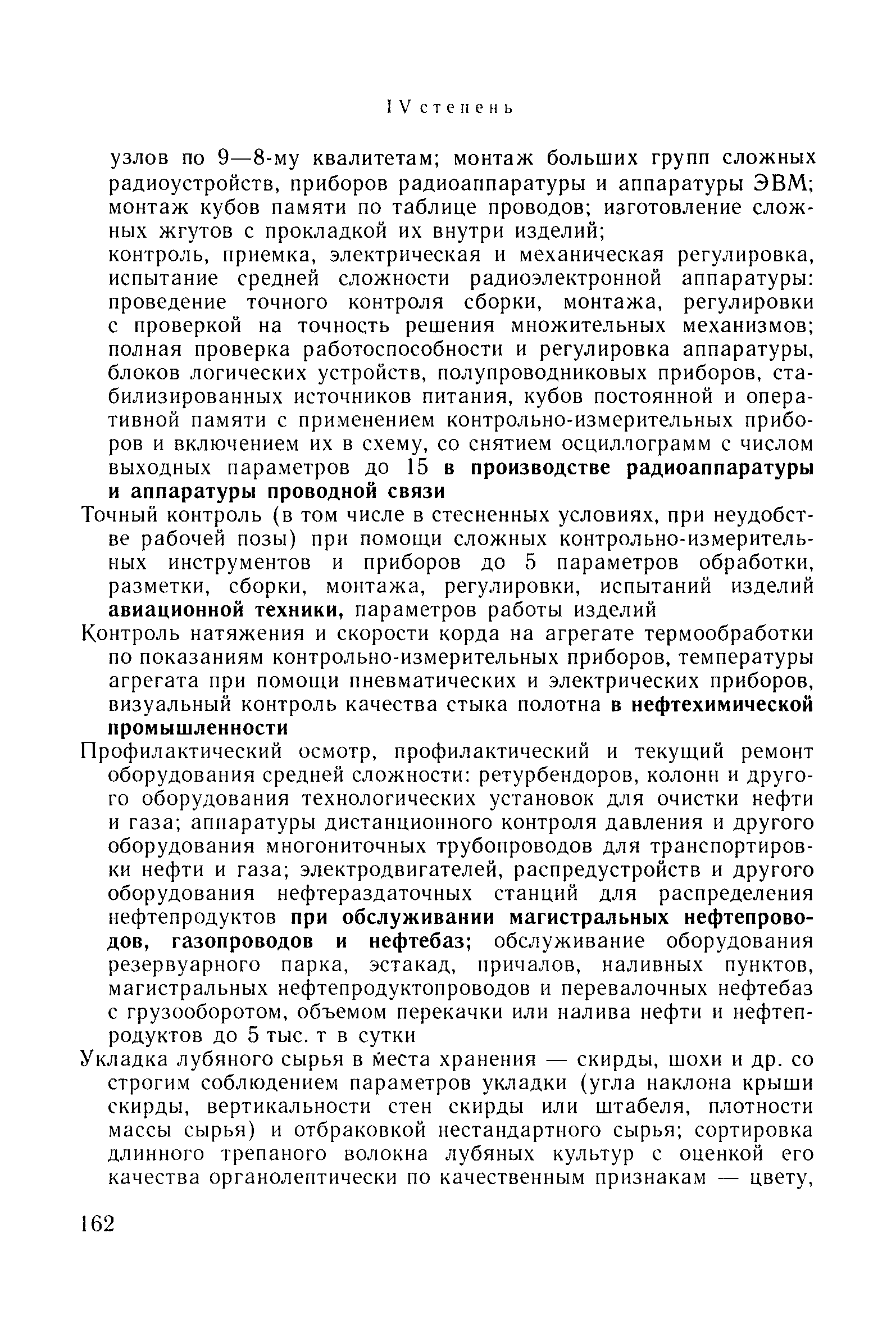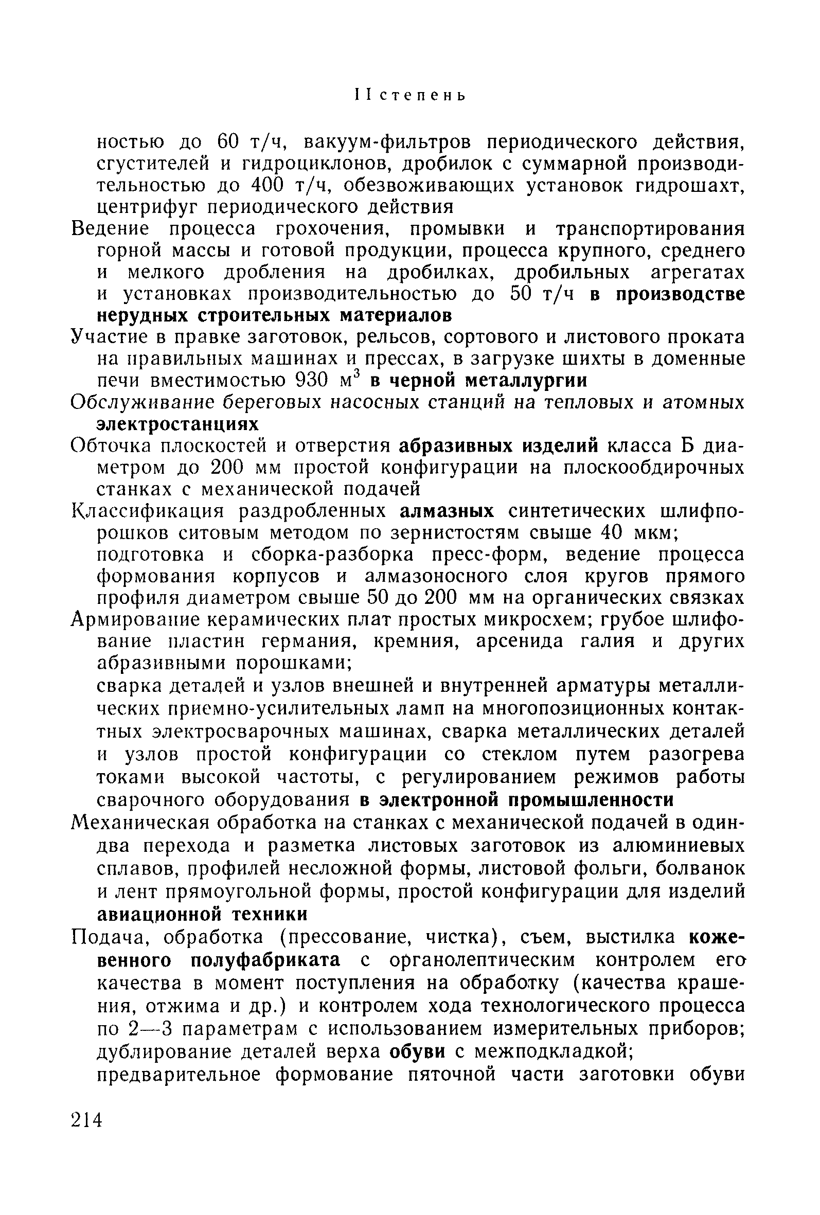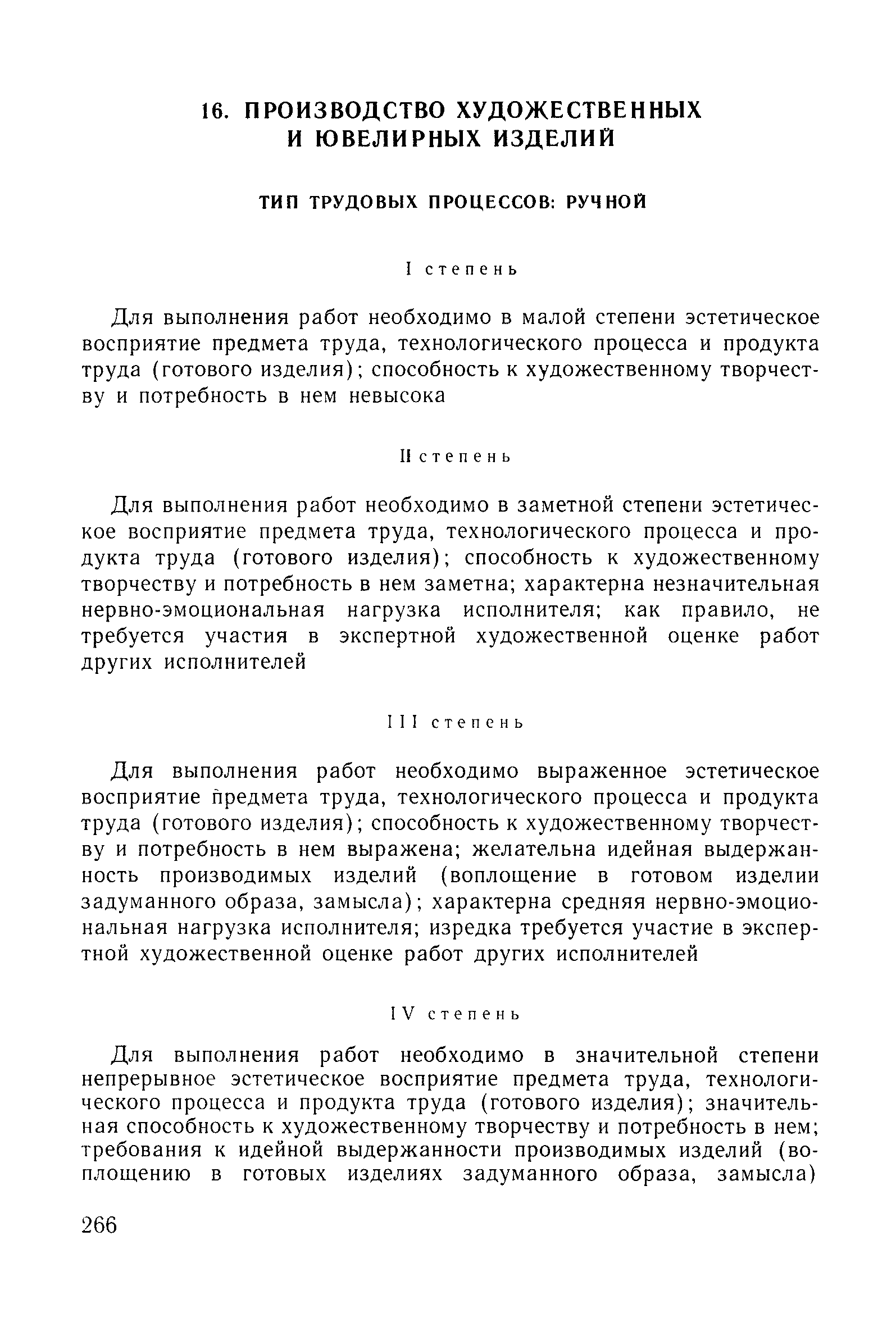 | Оглавление: | Введение I Назначение и структура построения Единого тарифно-квалификационного справочника работ и профессий рабочих II Основы методики определения разряда сложности работ III Определение требований к квалификации рабочих IV Определение наименований профессий рабочих Приложение 1. Примеры тарифно-квалификационных характеристик профессий рабочих по типам трудовых процессов Приложение 2. Критерии степеней сложности факторов 1. Критерии степеней сложности технологических факторов 1. Критерии степеней подфактора "Сложность управлении (обслуживания, пользования) орудиями труда" А. Для ручных процессов труда Б. Для машинно-ручных процессов труда В. Для машинных процессов труда Г. Для автоматизированных процессов труда Д. Для аппаратурных процессов труда 2. Критерии степеней подфактора "Сложность предметов труда" А. Для ручных процессов труда Б. Для машинно-ручных процессов труда В. Для машинных процессов труда 3. Критерии степеней подфактора "Сложность технологических (рабочих) процессов" А. Для ручных процессов труда Б. Для машинно-ручных процессов труда В. Для машинных процессов труда Г. Для автоматизированных процессов труда Д. Для аппаратурных процессов труда II Критерии степеней сложности организационных факторов (широты комплекса выполняемых операций (работ) и степени самостоятельности рабочего в процессе выполнения работ) III Критерии степеней сложности фактора ответственности (материальной ответственности и ответственности за здоровье и жизнь) IV Критерии степеней сложности специфических факторов . . . Приложение 3. Профессионально-квалификационная карта рабочего Приложение 4. Примеры оценки сложности работ по типам трудовых процессов Приложение 5. Тарифно-квалификационная карта для определения разряда сложности работы |