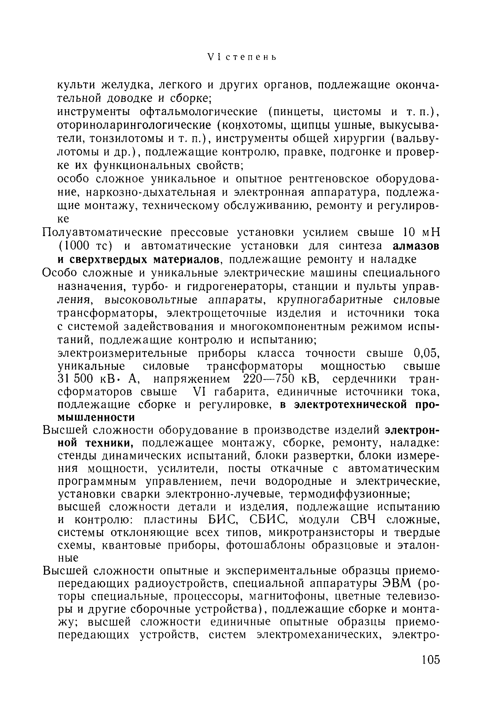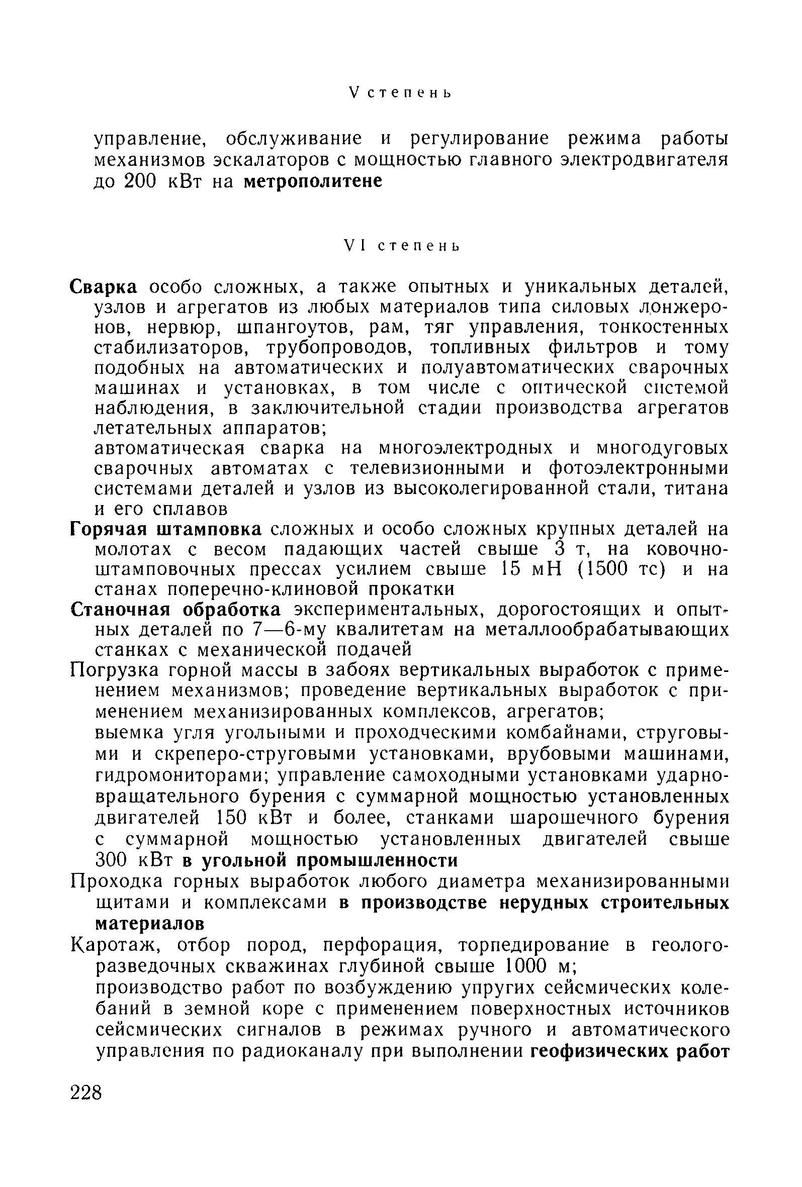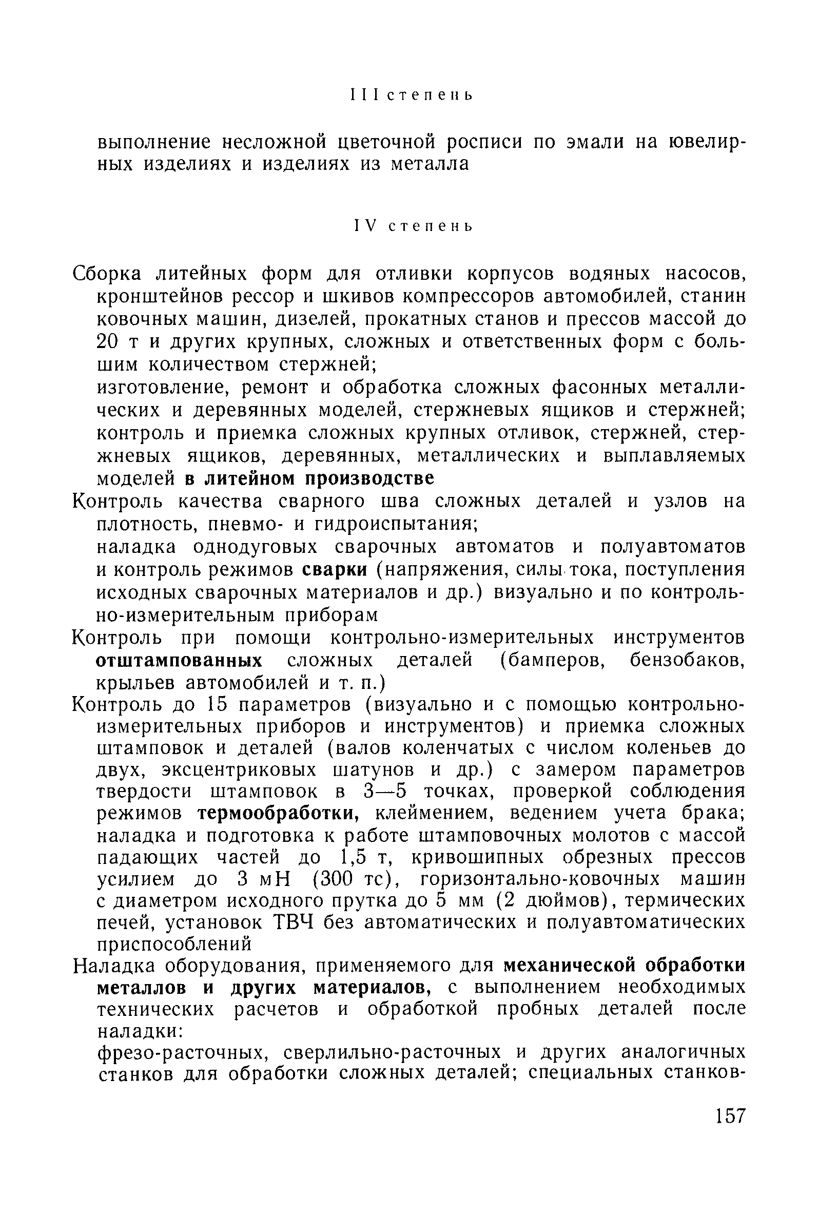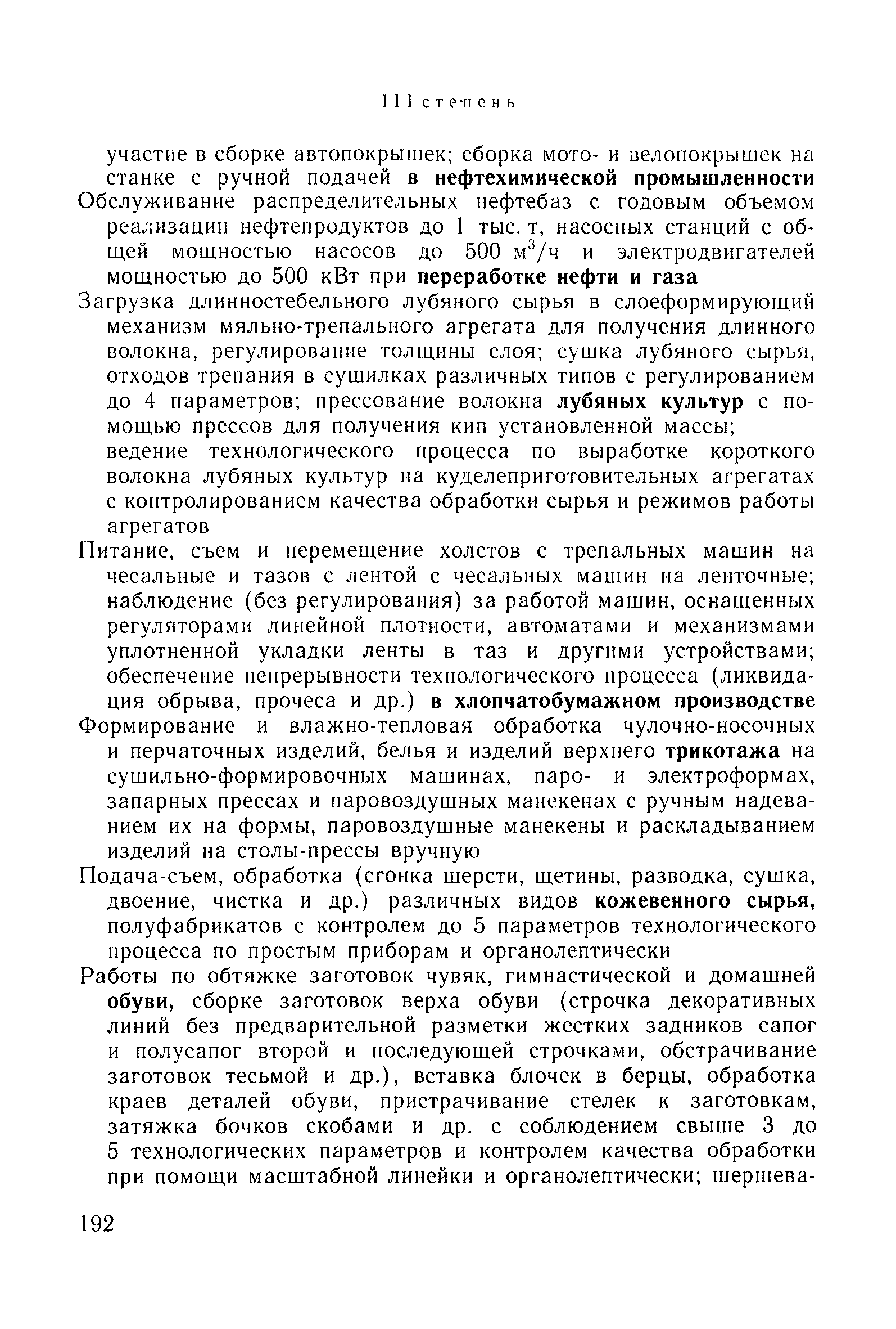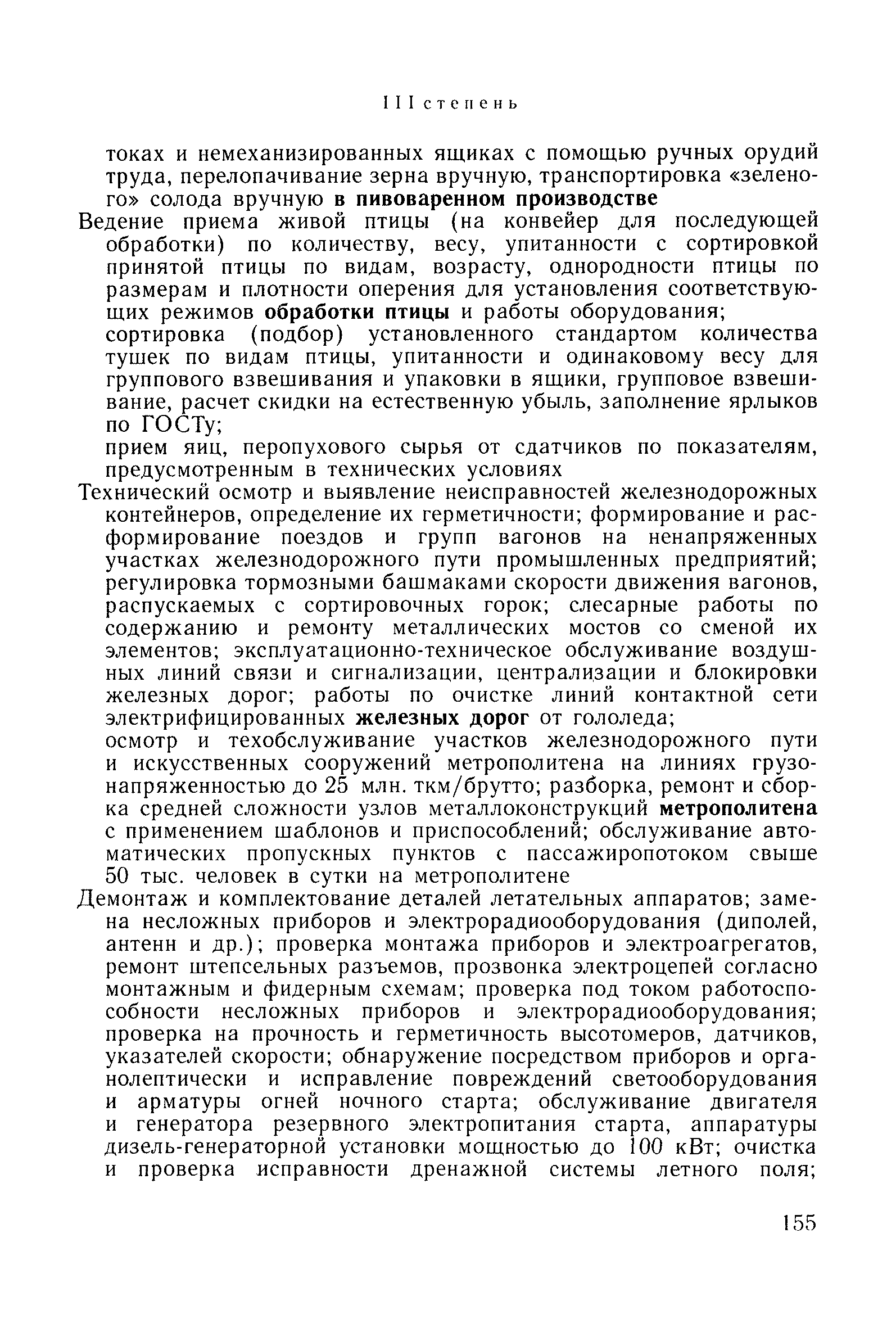 | Оглавление: | Введение I Назначение и структура построения Единого тарифно-квалификационного справочника работ и профессий рабочих II Основы методики определения разряда сложности работ III Определение требований к квалификации рабочих IV Определение наименований профессий рабочих Приложение 1. Примеры тарифно-квалификационных характеристик профессий рабочих по типам трудовых процессов Приложение 2. Критерии степеней сложности факторов 1. Критерии степеней сложности технологических факторов 1. Критерии степеней подфактора "Сложность управлении (обслуживания, пользования) орудиями труда" А. Для ручных процессов труда Б. Для машинно-ручных процессов труда В. Для машинных процессов труда Г. Для автоматизированных процессов труда Д. Для аппаратурных процессов труда 2. Критерии степеней подфактора "Сложность предметов труда" А. Для ручных процессов труда Б. Для машинно-ручных процессов труда В. Для машинных процессов труда 3. Критерии степеней подфактора "Сложность технологических (рабочих) процессов" А. Для ручных процессов труда Б. Для машинно-ручных процессов труда В. Для машинных процессов труда Г. Для автоматизированных процессов труда Д. Для аппаратурных процессов труда II Критерии степеней сложности организационных факторов (широты комплекса выполняемых операций (работ) и степени самостоятельности рабочего в процессе выполнения работ) III Критерии степеней сложности фактора ответственности (материальной ответственности и ответственности за здоровье и жизнь) IV Критерии степеней сложности специфических факторов . . . Приложение 3. Профессионально-квалификационная карта рабочего Приложение 4. Примеры оценки сложности работ по типам трудовых процессов Приложение 5. Тарифно-квалификационная карта для определения разряда сложности работы |