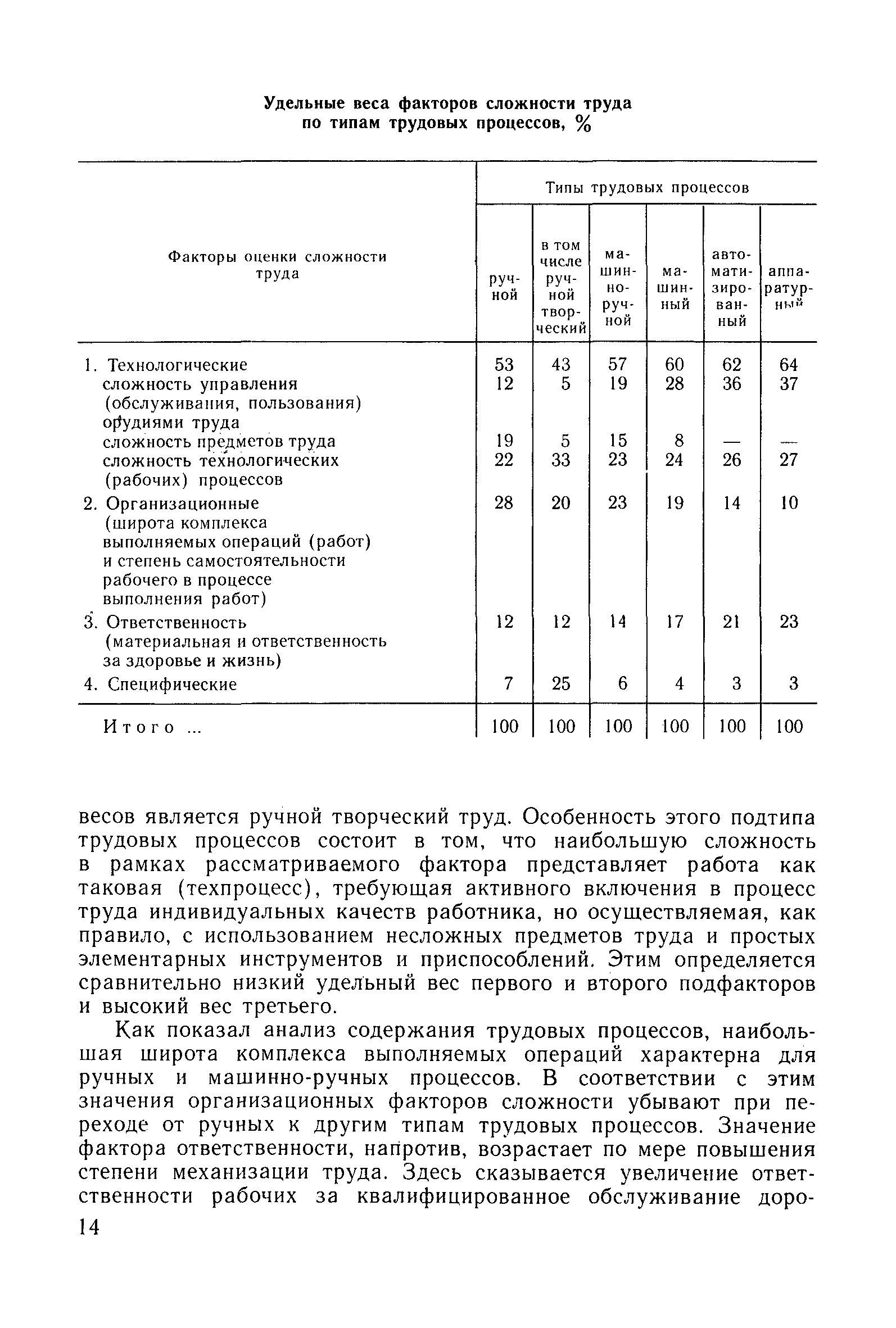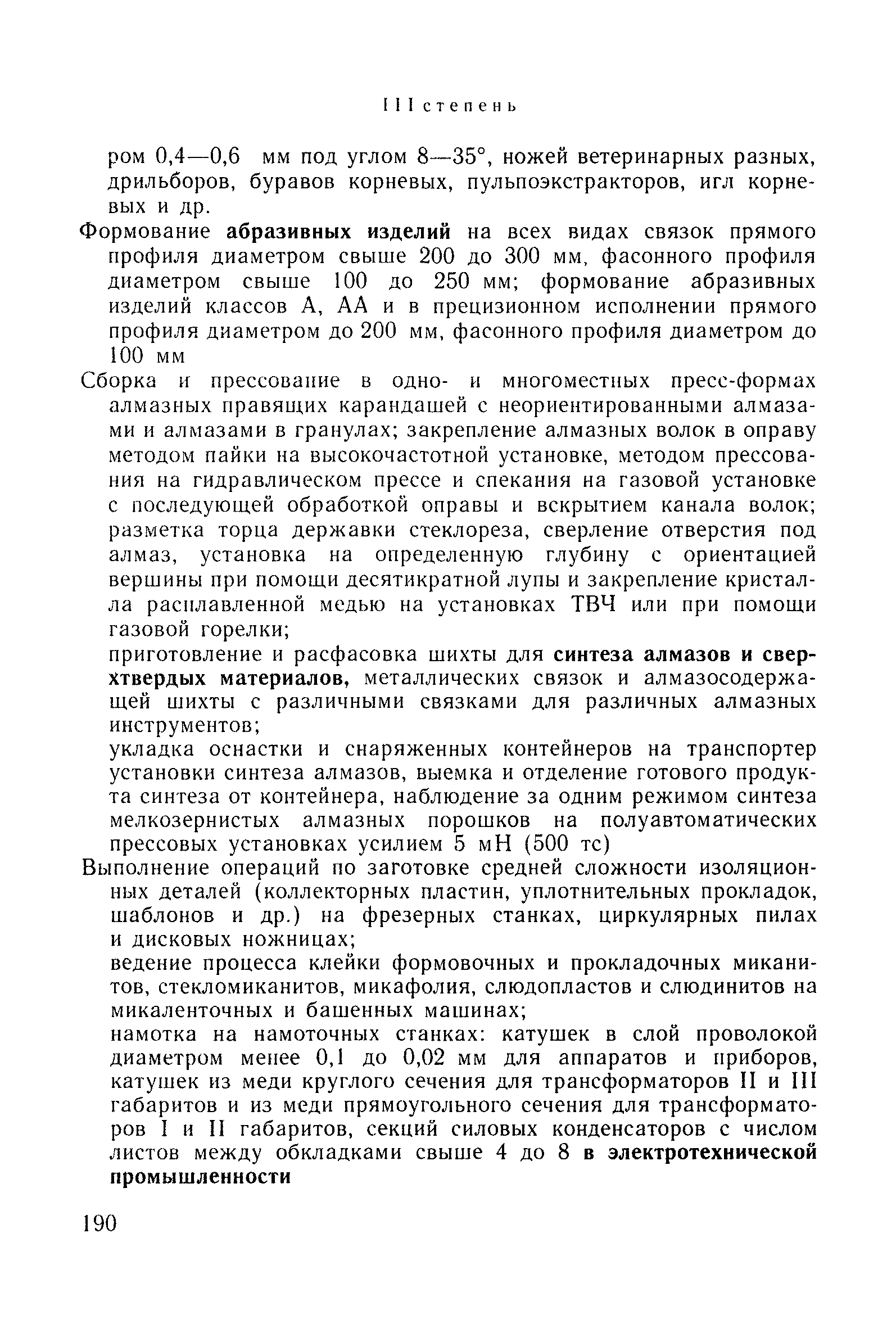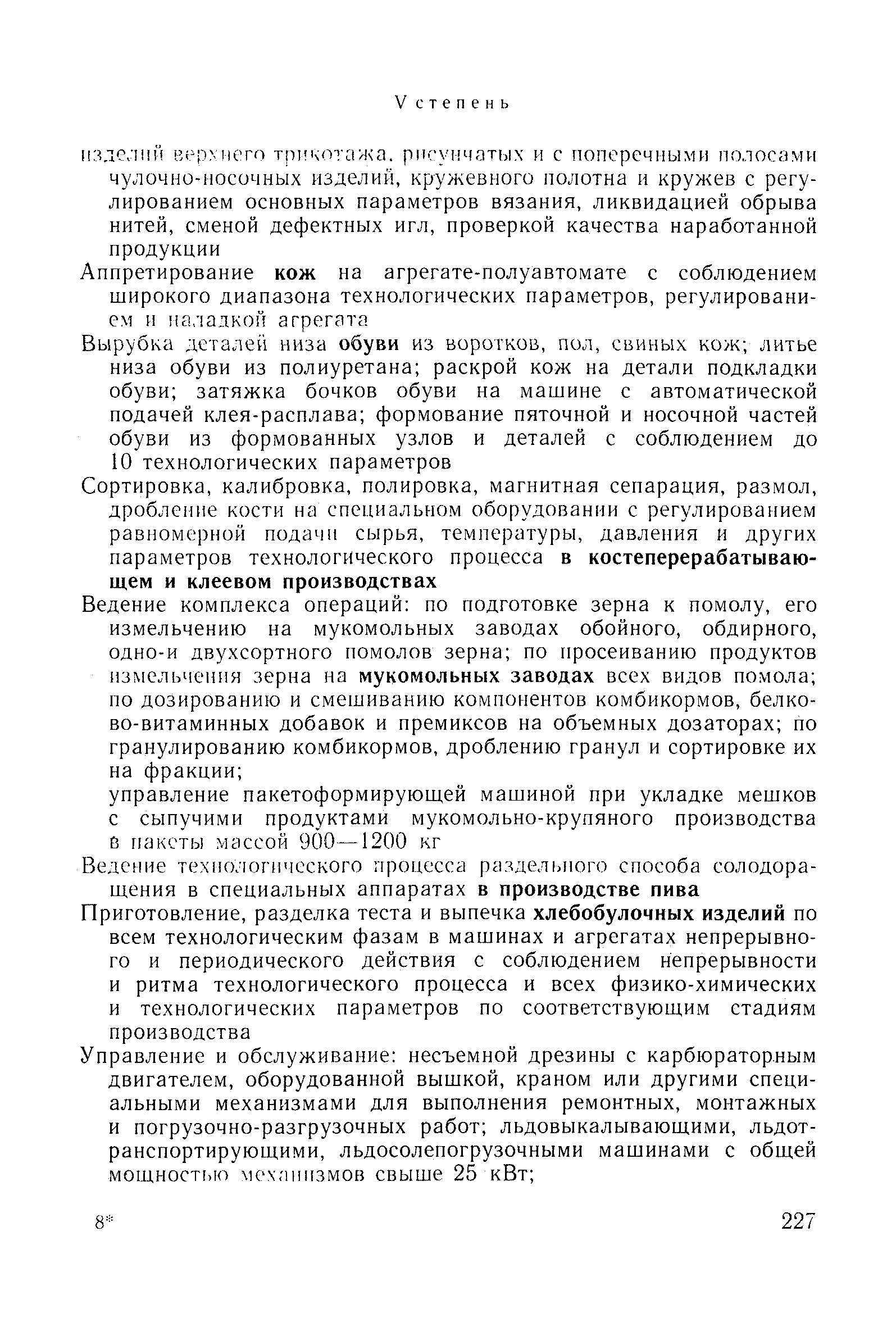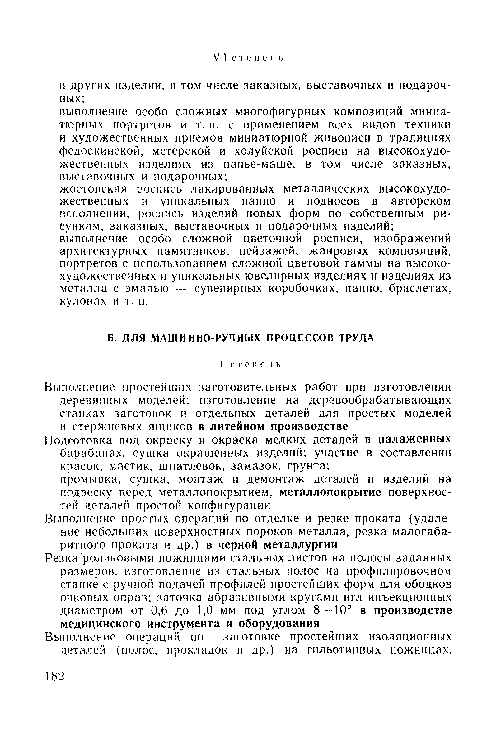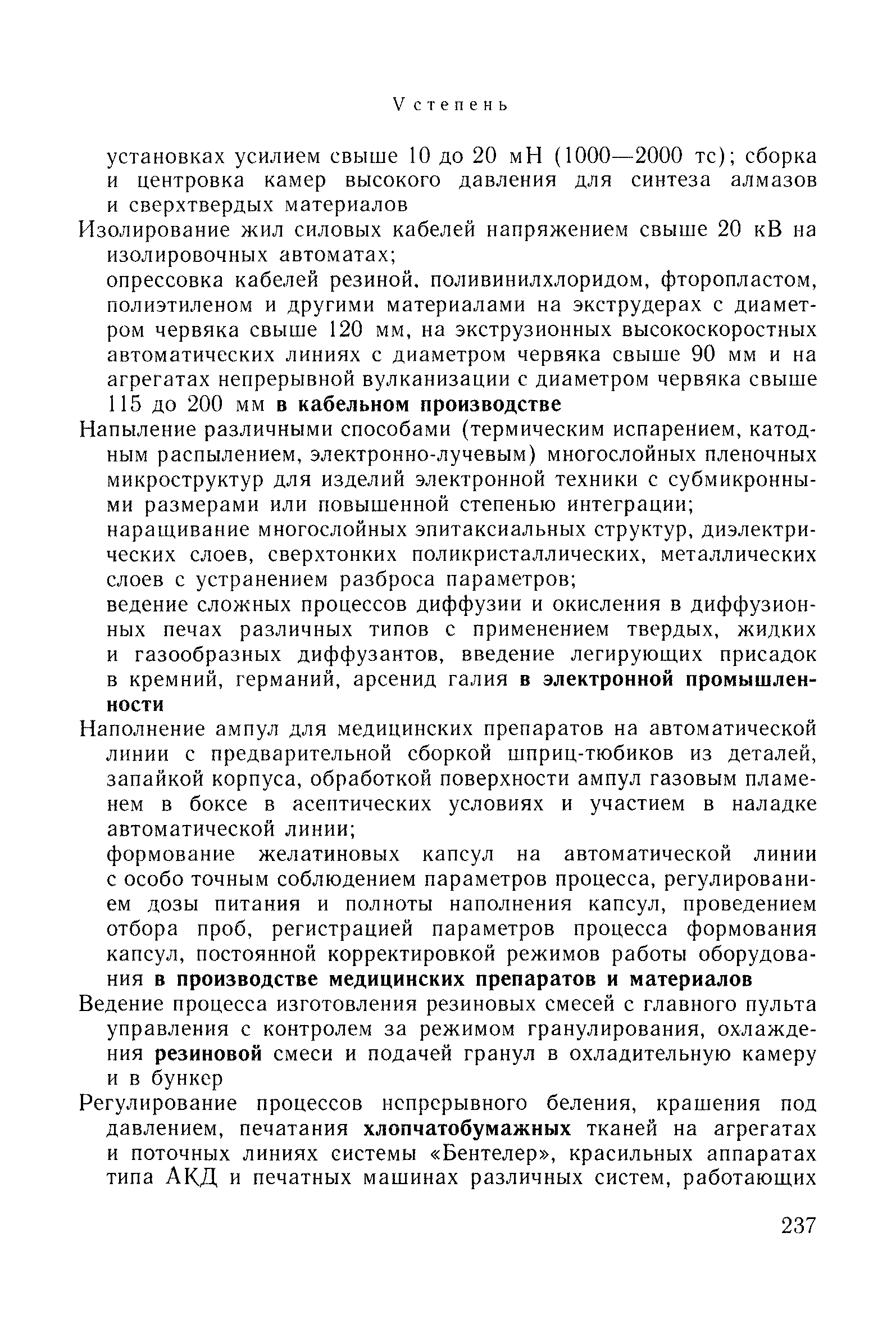 | Оглавление: | Введение I Назначение и структура построения Единого тарифно-квалификационного справочника работ и профессий рабочих II Основы методики определения разряда сложности работ III Определение требований к квалификации рабочих IV Определение наименований профессий рабочих Приложение 1. Примеры тарифно-квалификационных характеристик профессий рабочих по типам трудовых процессов Приложение 2. Критерии степеней сложности факторов 1. Критерии степеней сложности технологических факторов 1. Критерии степеней подфактора "Сложность управлении (обслуживания, пользования) орудиями труда" А. Для ручных процессов труда Б. Для машинно-ручных процессов труда В. Для машинных процессов труда Г. Для автоматизированных процессов труда Д. Для аппаратурных процессов труда 2. Критерии степеней подфактора "Сложность предметов труда" А. Для ручных процессов труда Б. Для машинно-ручных процессов труда В. Для машинных процессов труда 3. Критерии степеней подфактора "Сложность технологических (рабочих) процессов" А. Для ручных процессов труда Б. Для машинно-ручных процессов труда В. Для машинных процессов труда Г. Для автоматизированных процессов труда Д. Для аппаратурных процессов труда II Критерии степеней сложности организационных факторов (широты комплекса выполняемых операций (работ) и степени самостоятельности рабочего в процессе выполнения работ) III Критерии степеней сложности фактора ответственности (материальной ответственности и ответственности за здоровье и жизнь) IV Критерии степеней сложности специфических факторов . . . Приложение 3. Профессионально-квалификационная карта рабочего Приложение 4. Примеры оценки сложности работ по типам трудовых процессов Приложение 5. Тарифно-квалификационная карта для определения разряда сложности работы |