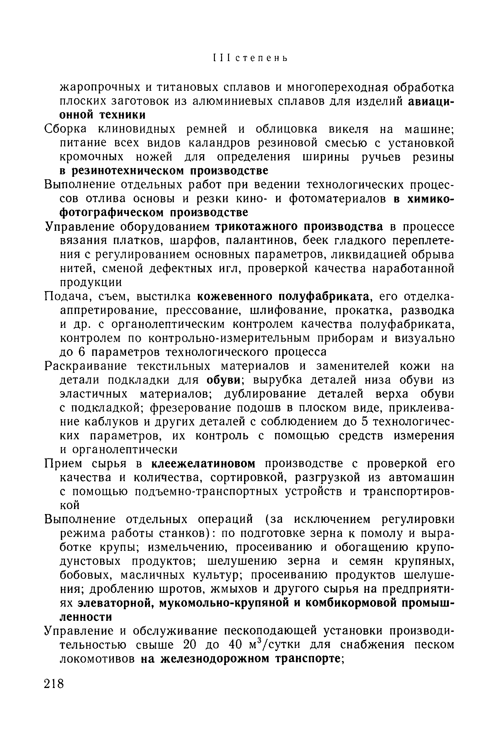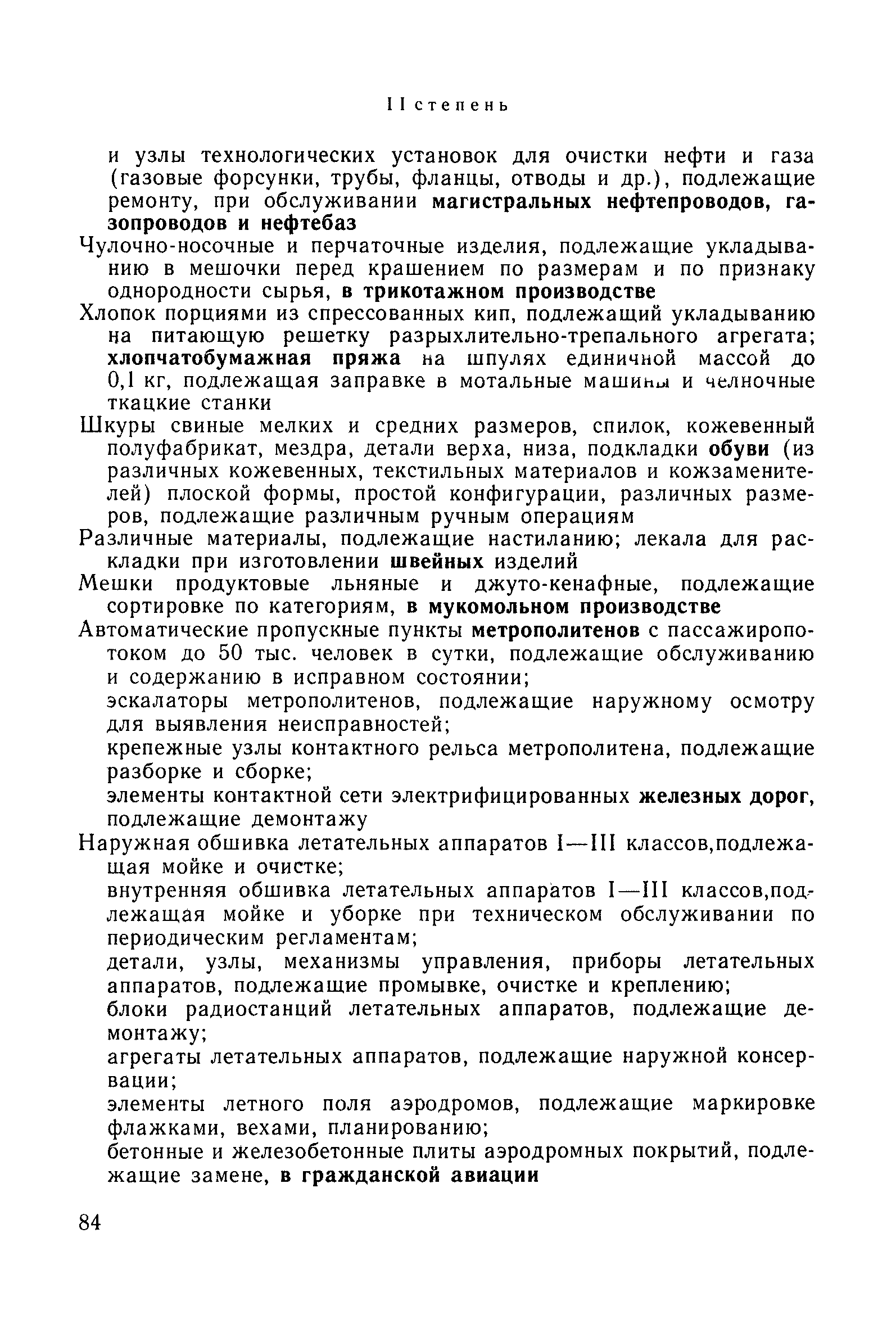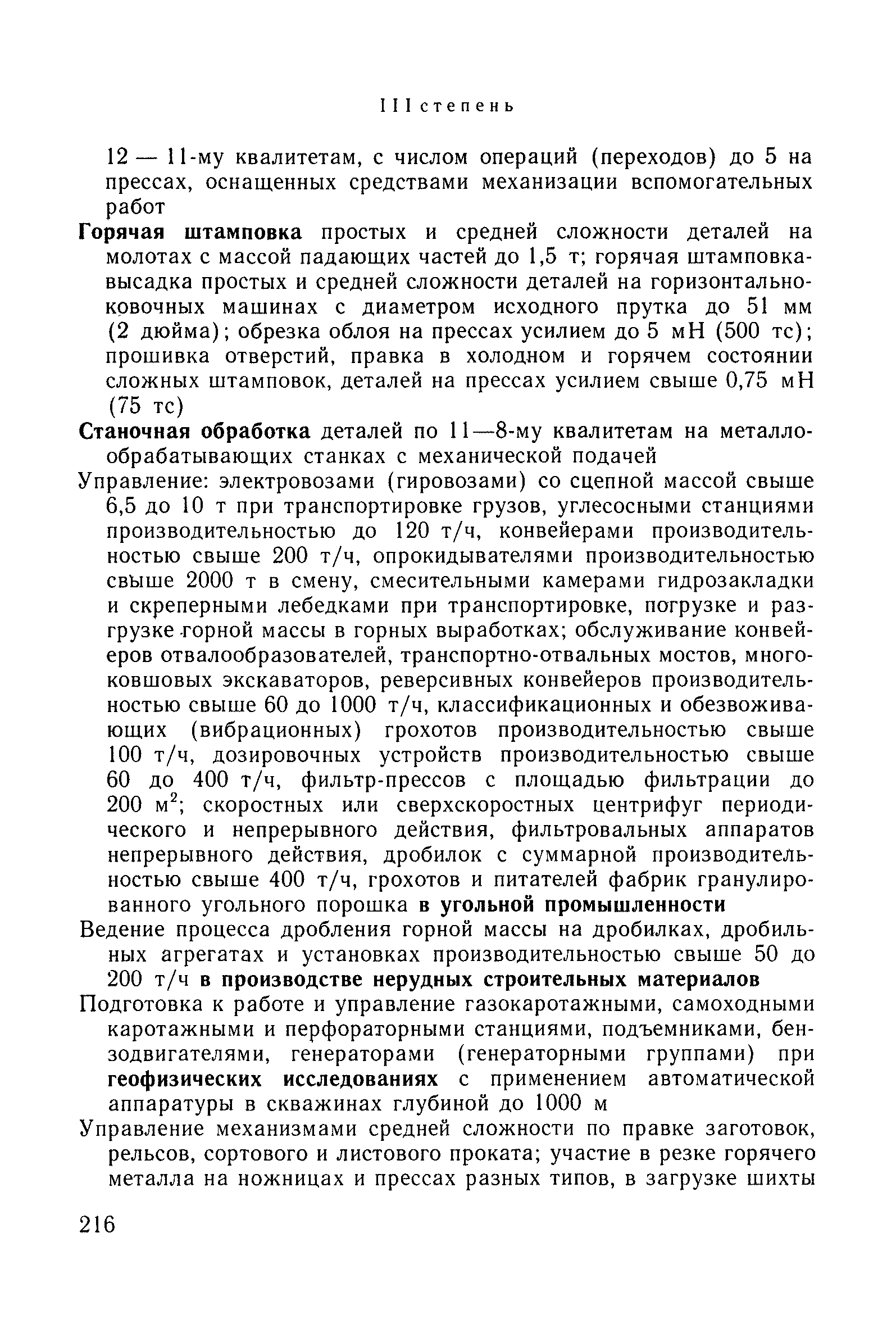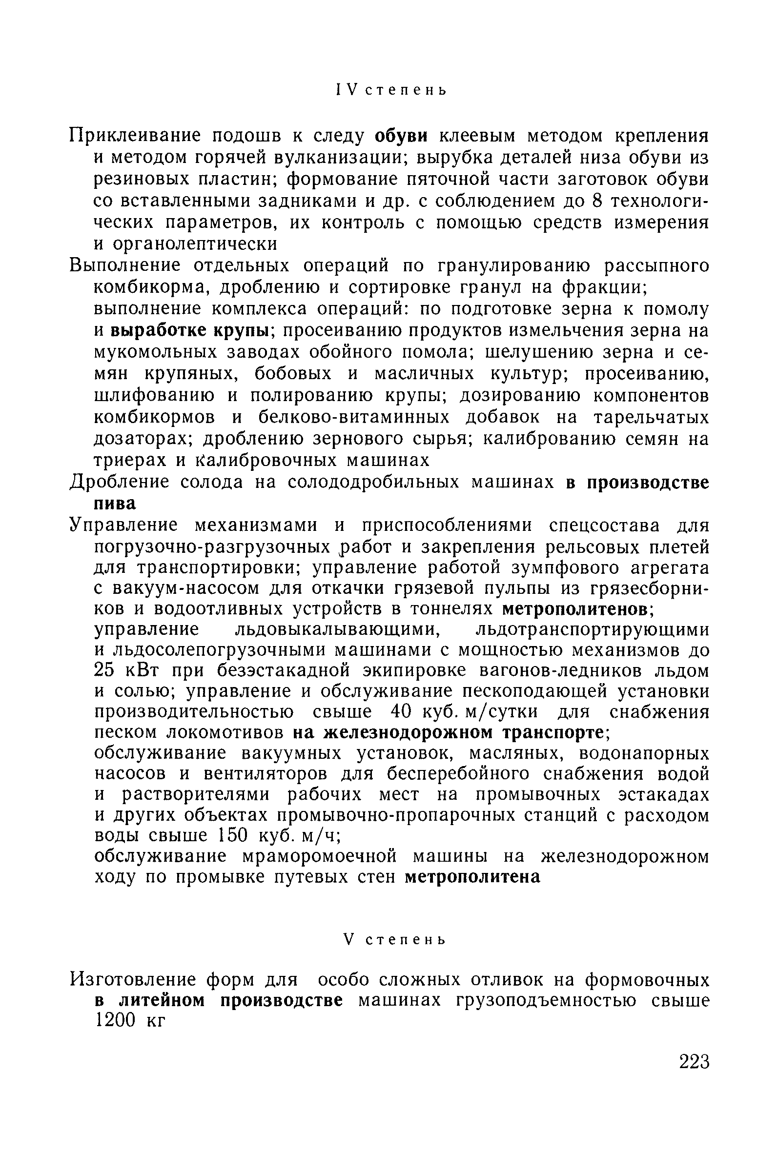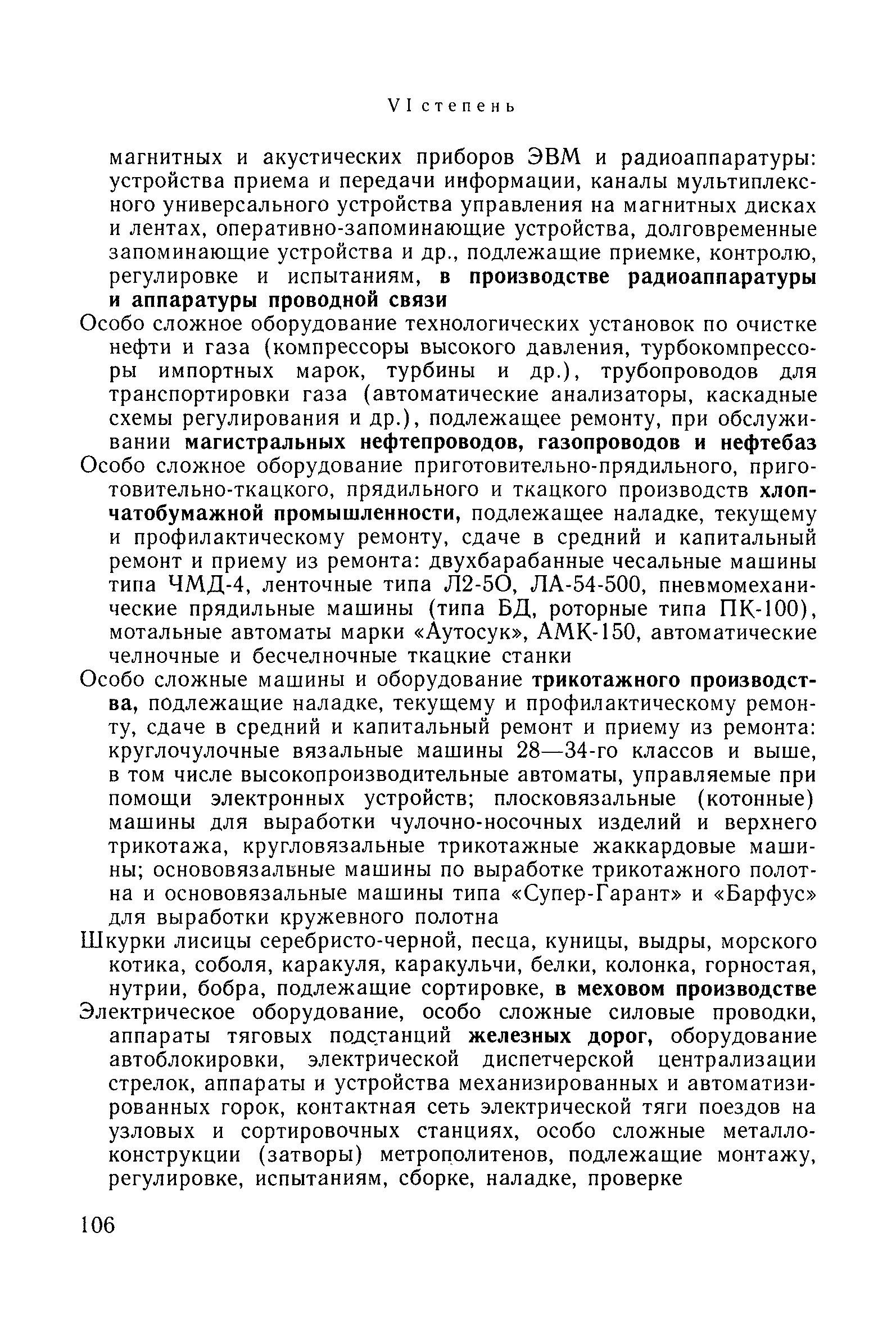 | Оглавление: | Введение I Назначение и структура построения Единого тарифно-квалификационного справочника работ и профессий рабочих II Основы методики определения разряда сложности работ III Определение требований к квалификации рабочих IV Определение наименований профессий рабочих Приложение 1. Примеры тарифно-квалификационных характеристик профессий рабочих по типам трудовых процессов Приложение 2. Критерии степеней сложности факторов 1. Критерии степеней сложности технологических факторов 1. Критерии степеней подфактора "Сложность управлении (обслуживания, пользования) орудиями труда" А. Для ручных процессов труда Б. Для машинно-ручных процессов труда В. Для машинных процессов труда Г. Для автоматизированных процессов труда Д. Для аппаратурных процессов труда 2. Критерии степеней подфактора "Сложность предметов труда" А. Для ручных процессов труда Б. Для машинно-ручных процессов труда В. Для машинных процессов труда 3. Критерии степеней подфактора "Сложность технологических (рабочих) процессов" А. Для ручных процессов труда Б. Для машинно-ручных процессов труда В. Для машинных процессов труда Г. Для автоматизированных процессов труда Д. Для аппаратурных процессов труда II Критерии степеней сложности организационных факторов (широты комплекса выполняемых операций (работ) и степени самостоятельности рабочего в процессе выполнения работ) III Критерии степеней сложности фактора ответственности (материальной ответственности и ответственности за здоровье и жизнь) IV Критерии степеней сложности специфических факторов . . . Приложение 3. Профессионально-квалификационная карта рабочего Приложение 4. Примеры оценки сложности работ по типам трудовых процессов Приложение 5. Тарифно-квалификационная карта для определения разряда сложности работы |