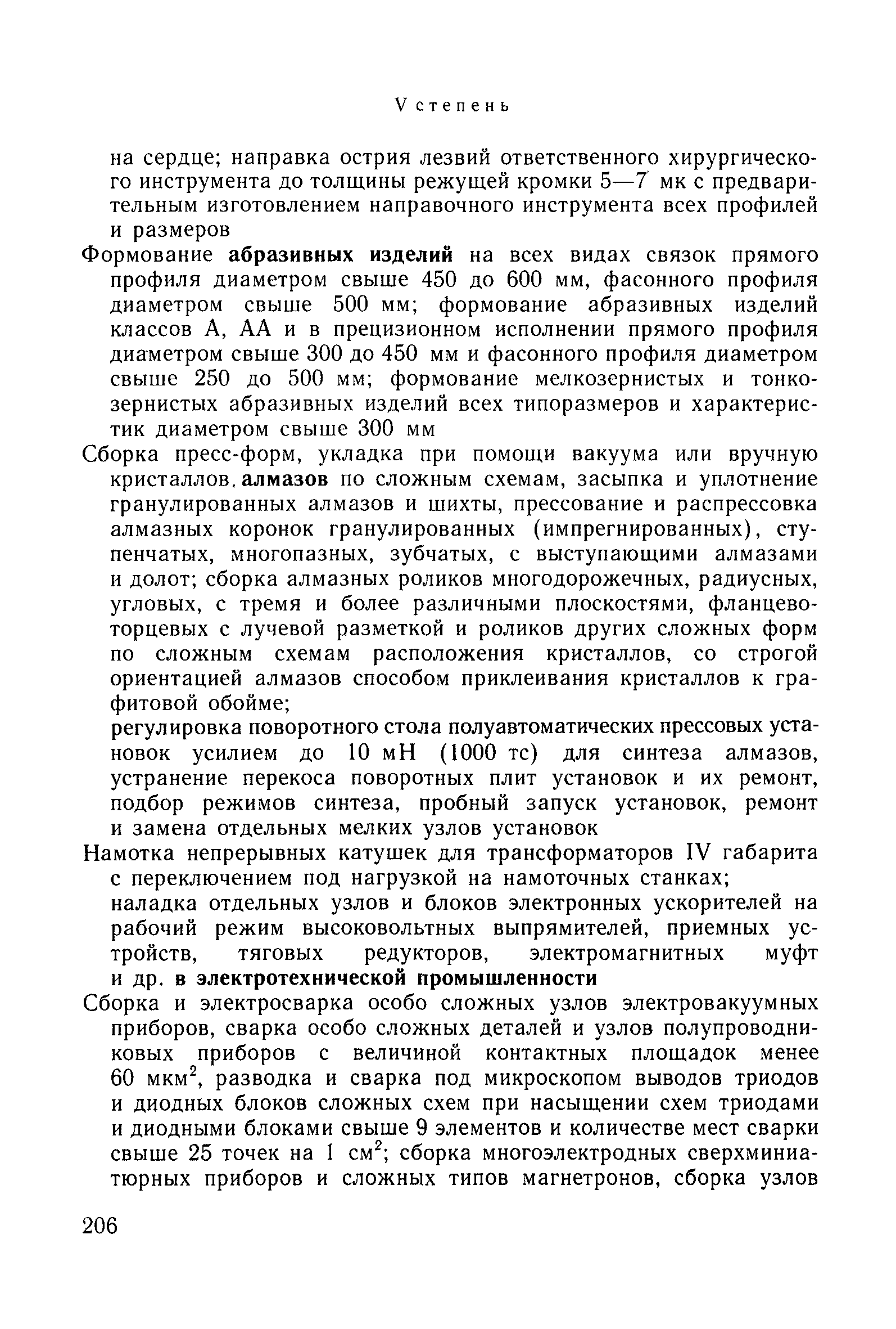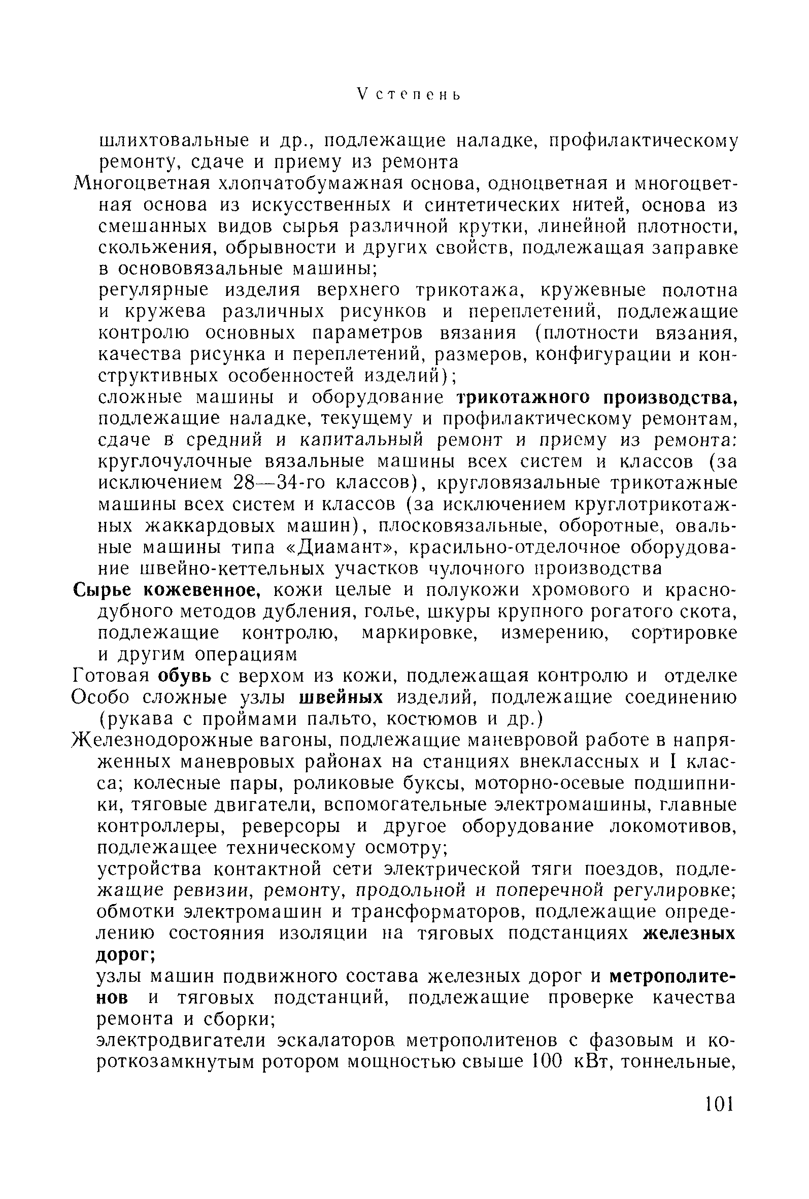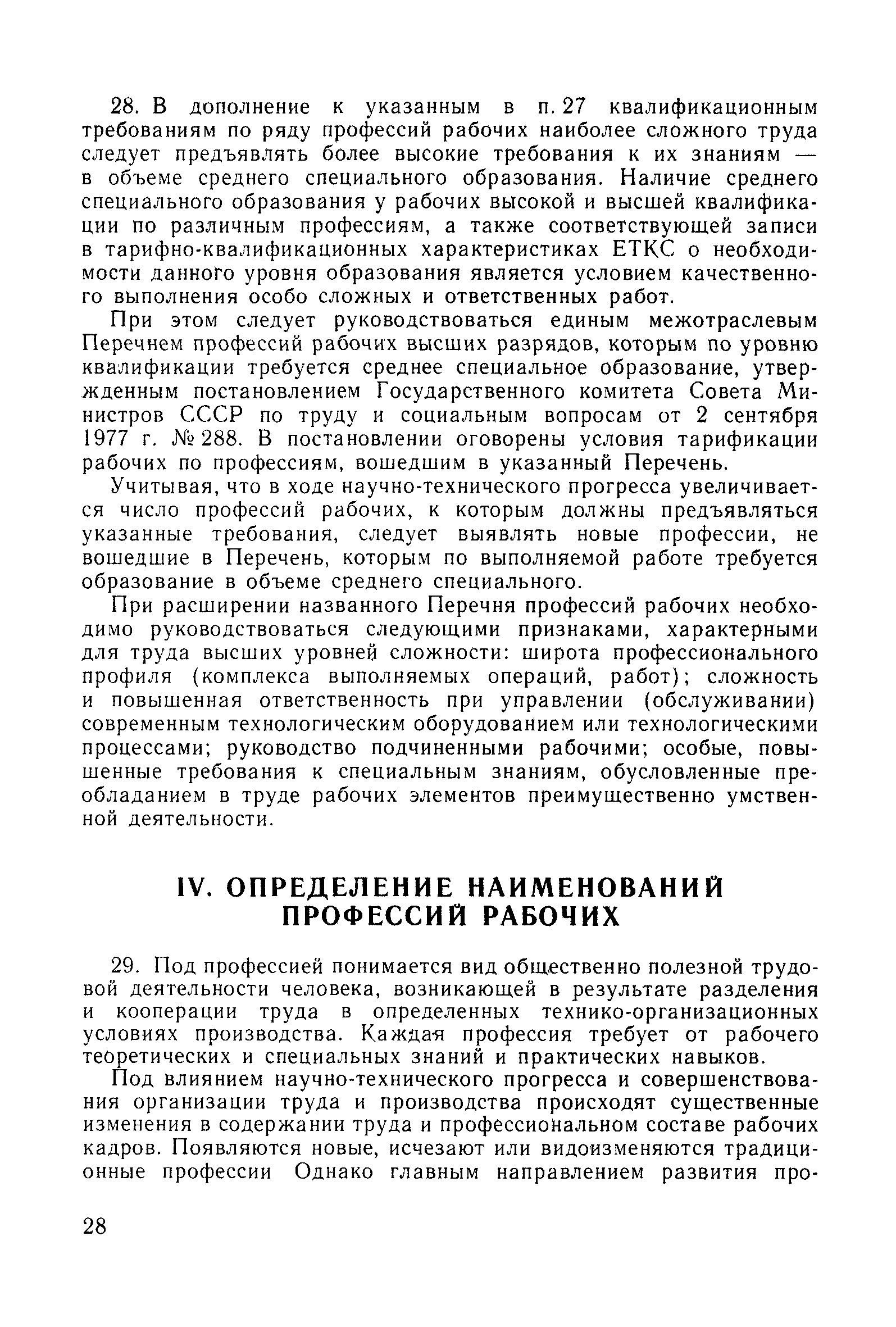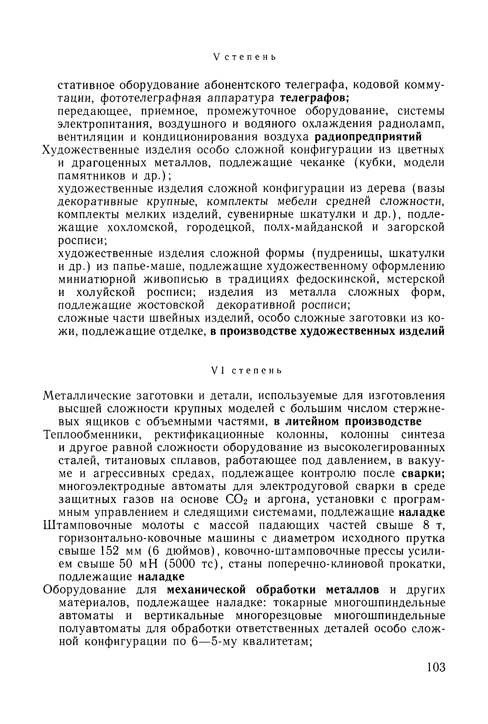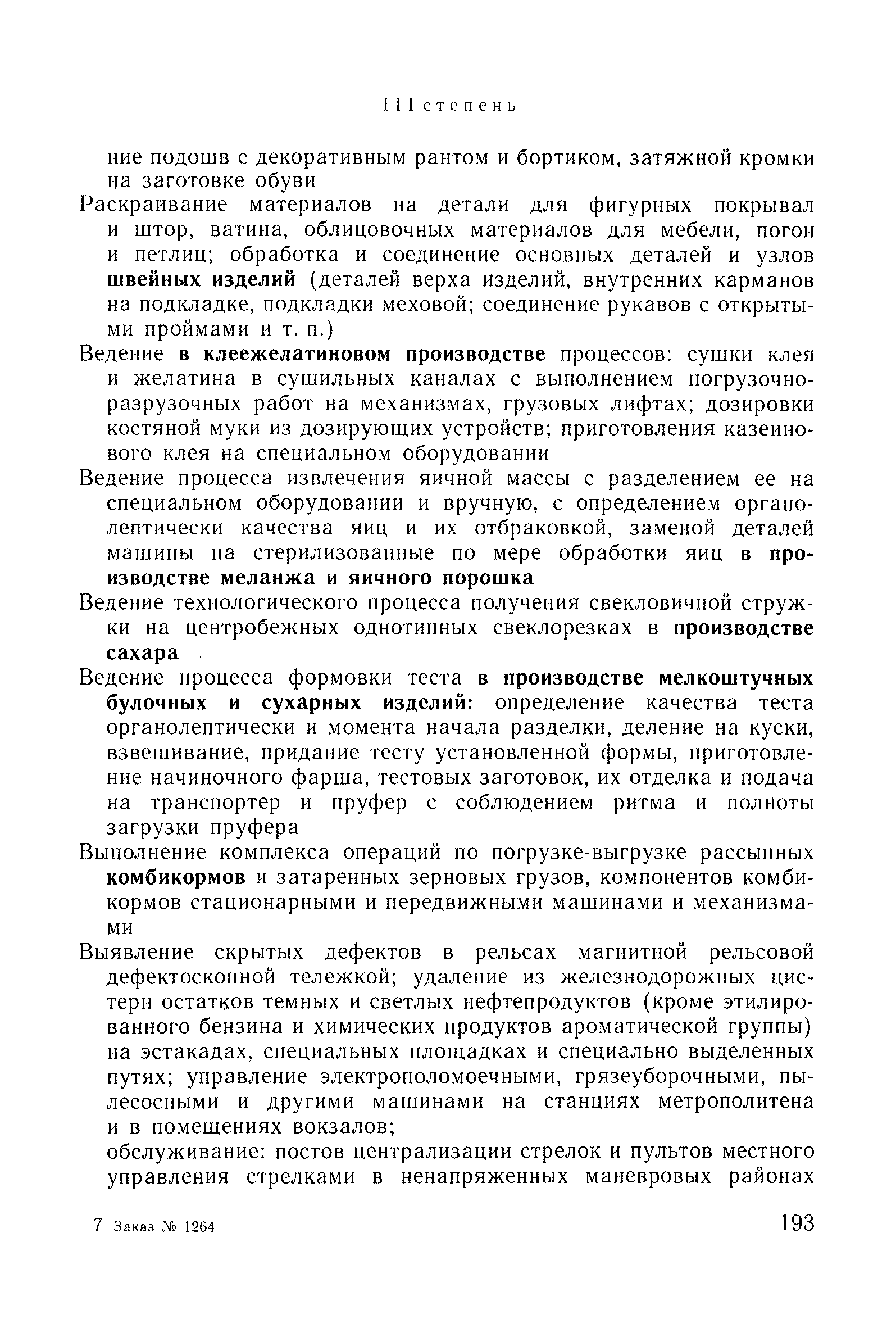 | Оглавление: | Введение I Назначение и структура построения Единого тарифно-квалификационного справочника работ и профессий рабочих II Основы методики определения разряда сложности работ III Определение требований к квалификации рабочих IV Определение наименований профессий рабочих Приложение 1. Примеры тарифно-квалификационных характеристик профессий рабочих по типам трудовых процессов Приложение 2. Критерии степеней сложности факторов 1. Критерии степеней сложности технологических факторов 1. Критерии степеней подфактора "Сложность управлении (обслуживания, пользования) орудиями труда" А. Для ручных процессов труда Б. Для машинно-ручных процессов труда В. Для машинных процессов труда Г. Для автоматизированных процессов труда Д. Для аппаратурных процессов труда 2. Критерии степеней подфактора "Сложность предметов труда" А. Для ручных процессов труда Б. Для машинно-ручных процессов труда В. Для машинных процессов труда 3. Критерии степеней подфактора "Сложность технологических (рабочих) процессов" А. Для ручных процессов труда Б. Для машинно-ручных процессов труда В. Для машинных процессов труда Г. Для автоматизированных процессов труда Д. Для аппаратурных процессов труда II Критерии степеней сложности организационных факторов (широты комплекса выполняемых операций (работ) и степени самостоятельности рабочего в процессе выполнения работ) III Критерии степеней сложности фактора ответственности (материальной ответственности и ответственности за здоровье и жизнь) IV Критерии степеней сложности специфических факторов . . . Приложение 3. Профессионально-квалификационная карта рабочего Приложение 4. Примеры оценки сложности работ по типам трудовых процессов Приложение 5. Тарифно-квалификационная карта для определения разряда сложности работы |