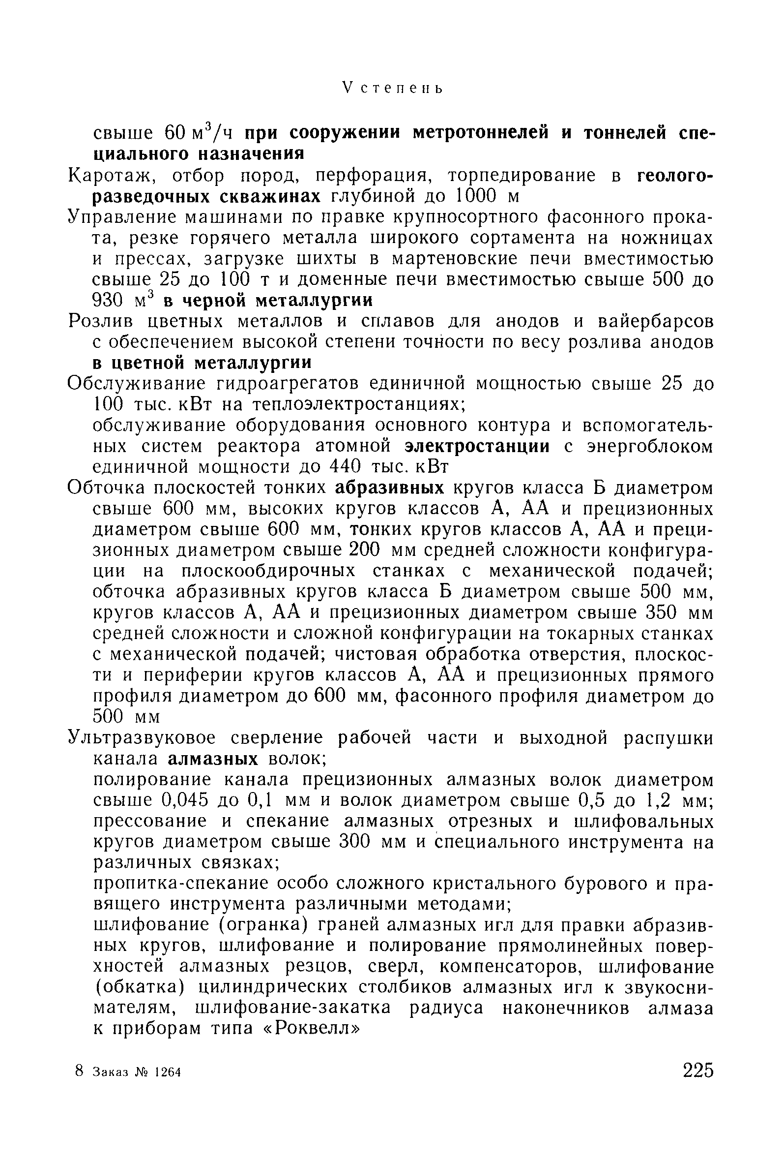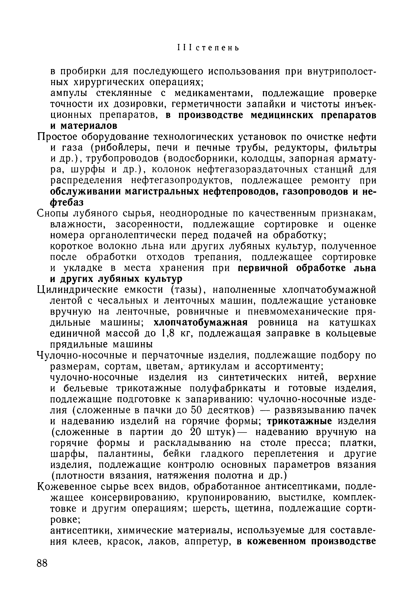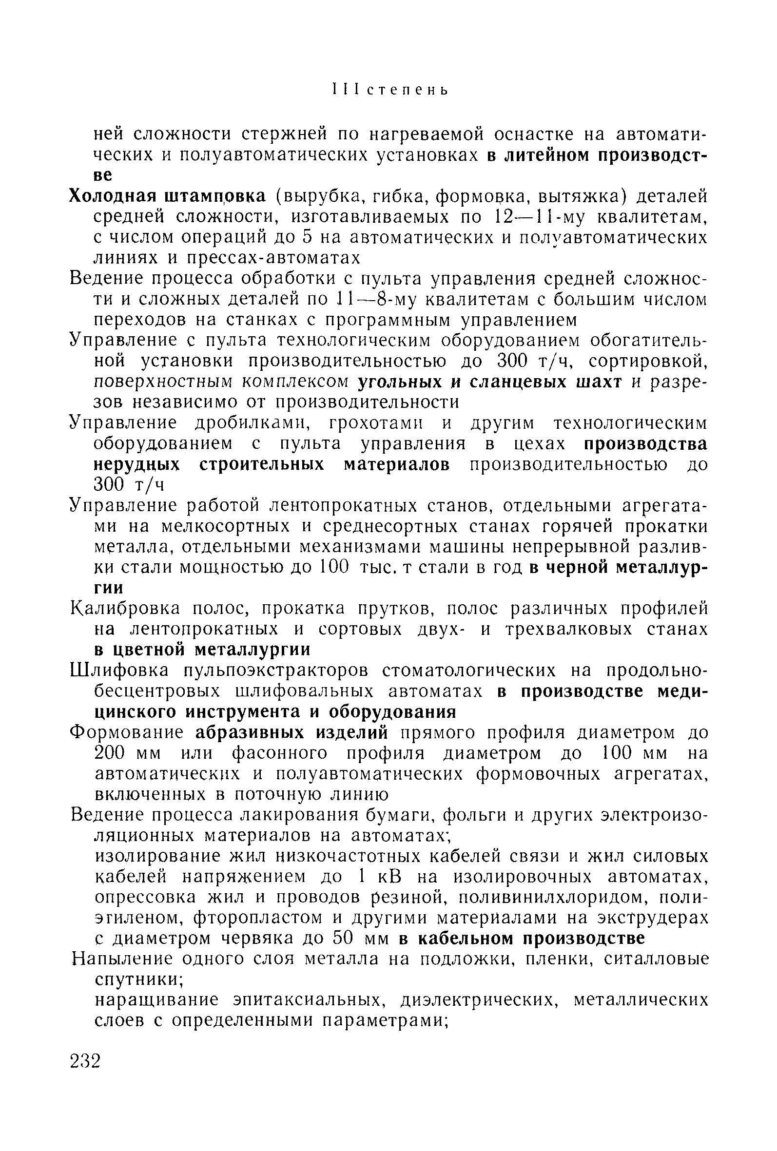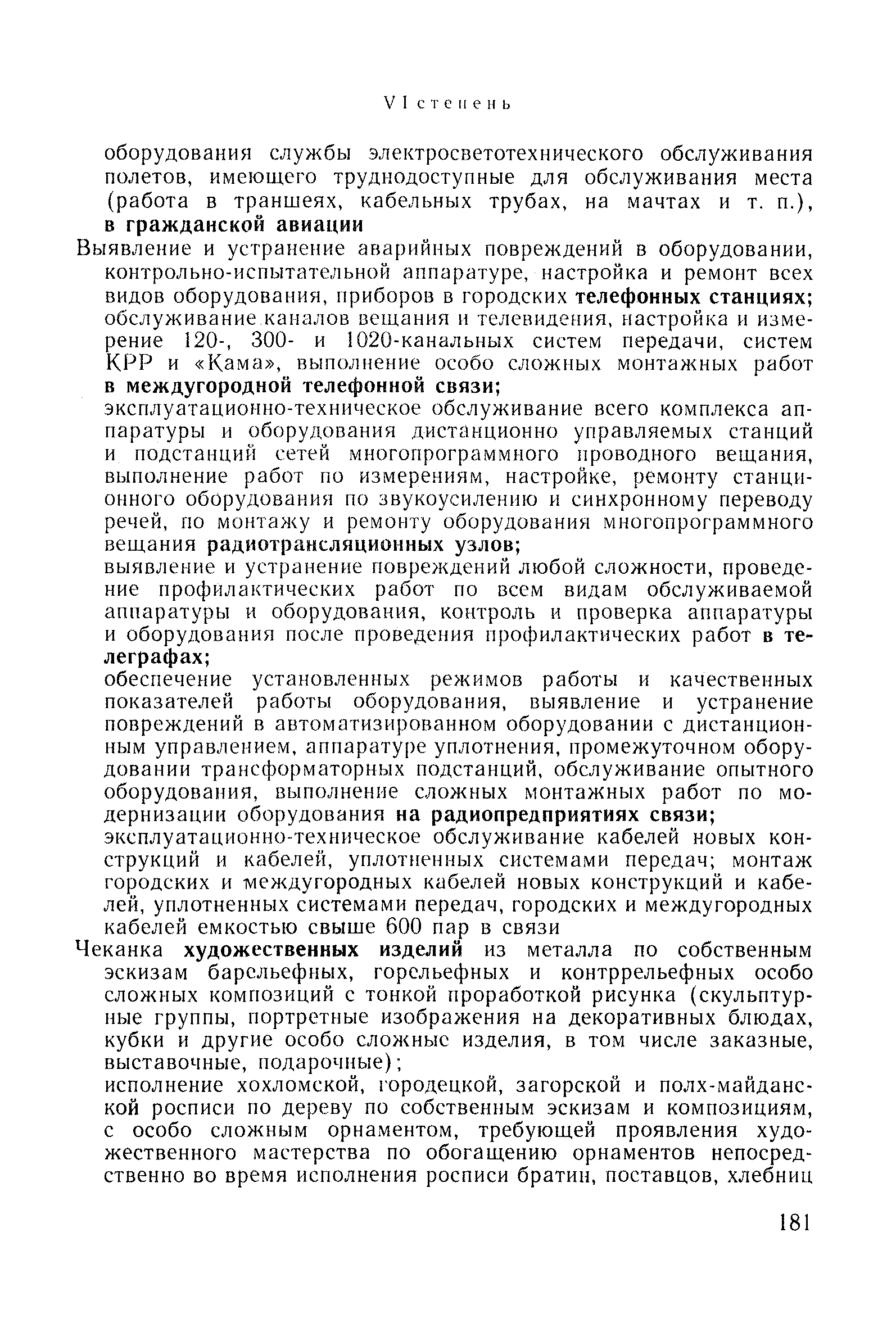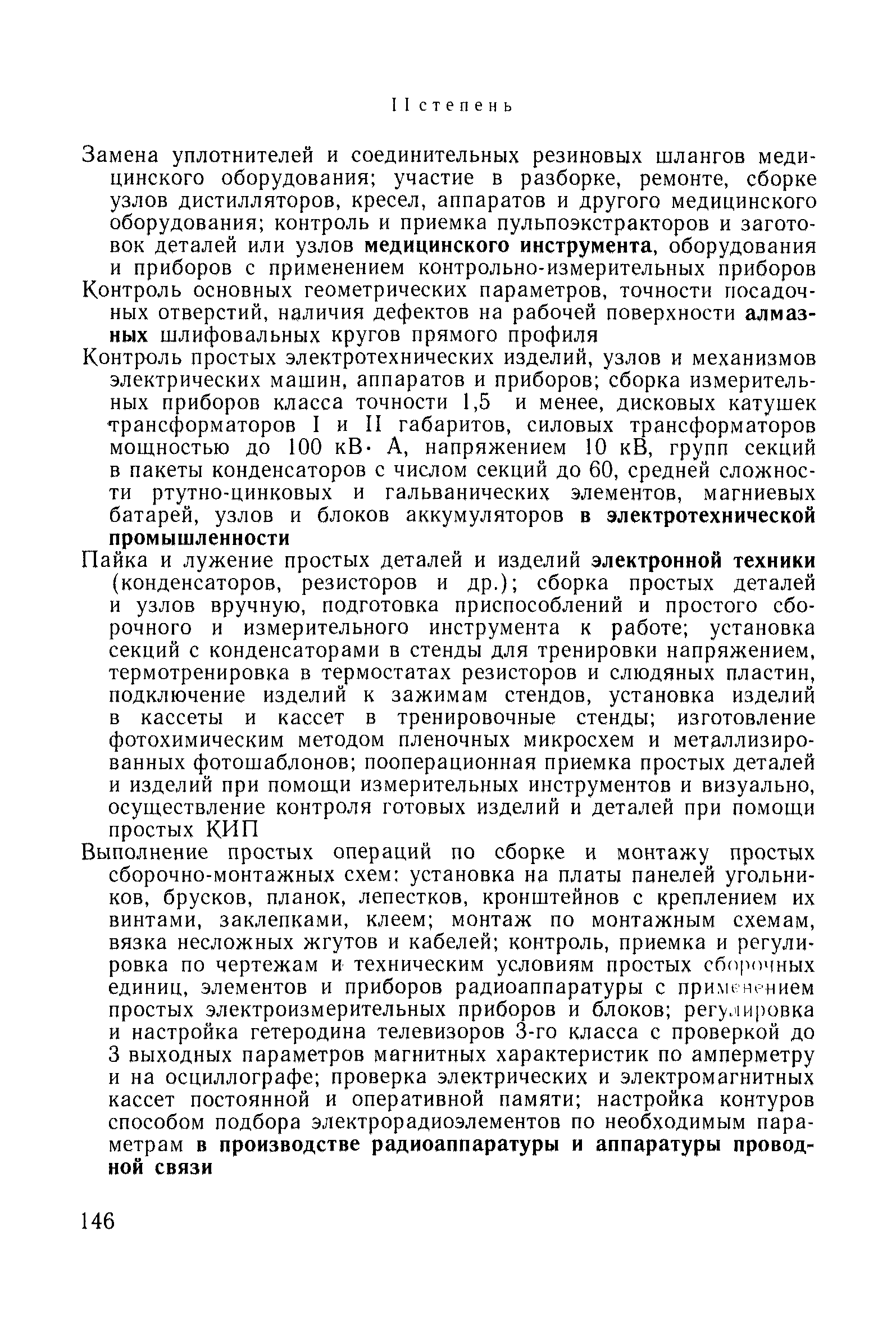 | Оглавление: | Введение I Назначение и структура построения Единого тарифно-квалификационного справочника работ и профессий рабочих II Основы методики определения разряда сложности работ III Определение требований к квалификации рабочих IV Определение наименований профессий рабочих Приложение 1. Примеры тарифно-квалификационных характеристик профессий рабочих по типам трудовых процессов Приложение 2. Критерии степеней сложности факторов 1. Критерии степеней сложности технологических факторов 1. Критерии степеней подфактора "Сложность управлении (обслуживания, пользования) орудиями труда" А. Для ручных процессов труда Б. Для машинно-ручных процессов труда В. Для машинных процессов труда Г. Для автоматизированных процессов труда Д. Для аппаратурных процессов труда 2. Критерии степеней подфактора "Сложность предметов труда" А. Для ручных процессов труда Б. Для машинно-ручных процессов труда В. Для машинных процессов труда 3. Критерии степеней подфактора "Сложность технологических (рабочих) процессов" А. Для ручных процессов труда Б. Для машинно-ручных процессов труда В. Для машинных процессов труда Г. Для автоматизированных процессов труда Д. Для аппаратурных процессов труда II Критерии степеней сложности организационных факторов (широты комплекса выполняемых операций (работ) и степени самостоятельности рабочего в процессе выполнения работ) III Критерии степеней сложности фактора ответственности (материальной ответственности и ответственности за здоровье и жизнь) IV Критерии степеней сложности специфических факторов . . . Приложение 3. Профессионально-квалификационная карта рабочего Приложение 4. Примеры оценки сложности работ по типам трудовых процессов Приложение 5. Тарифно-квалификационная карта для определения разряда сложности работы |