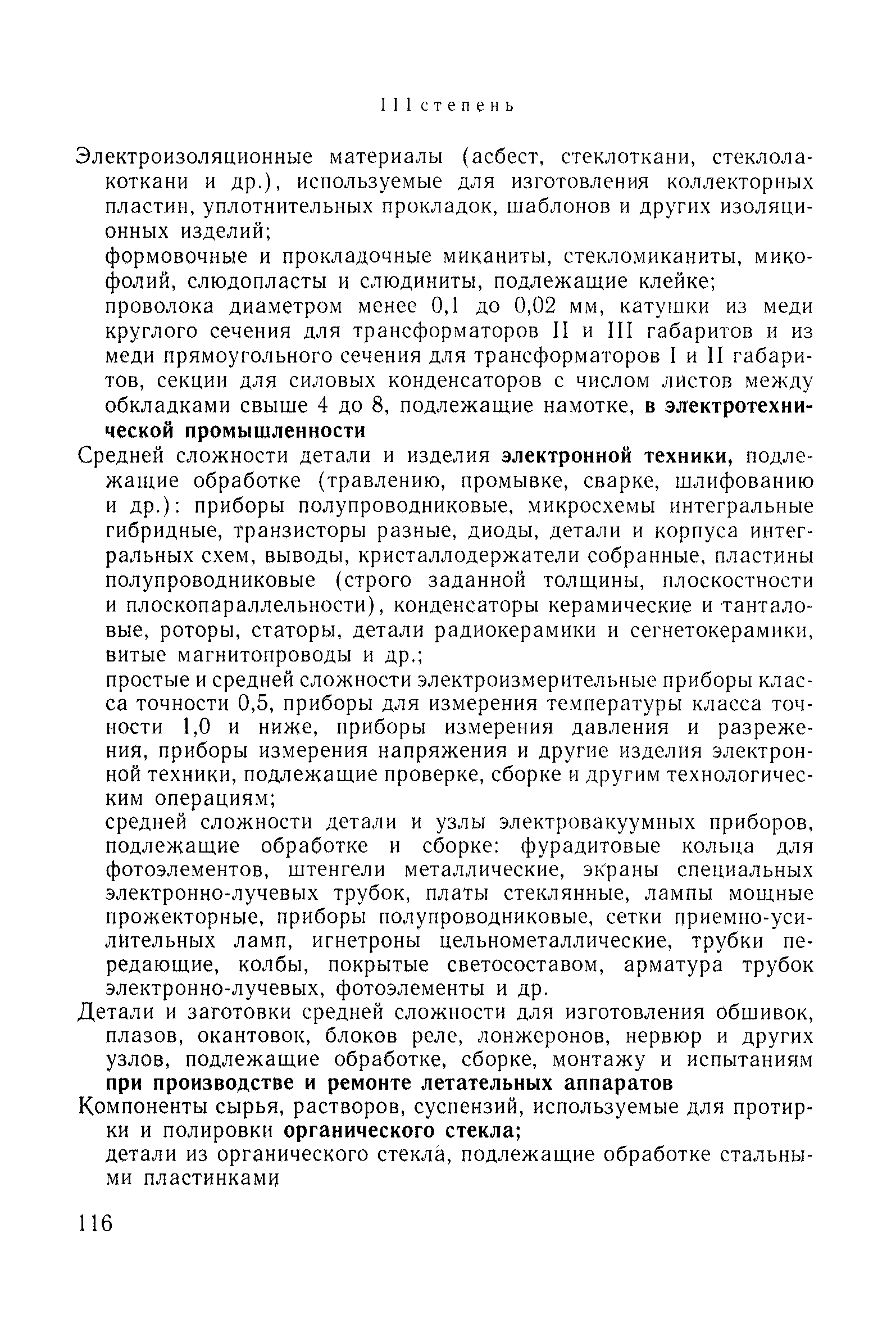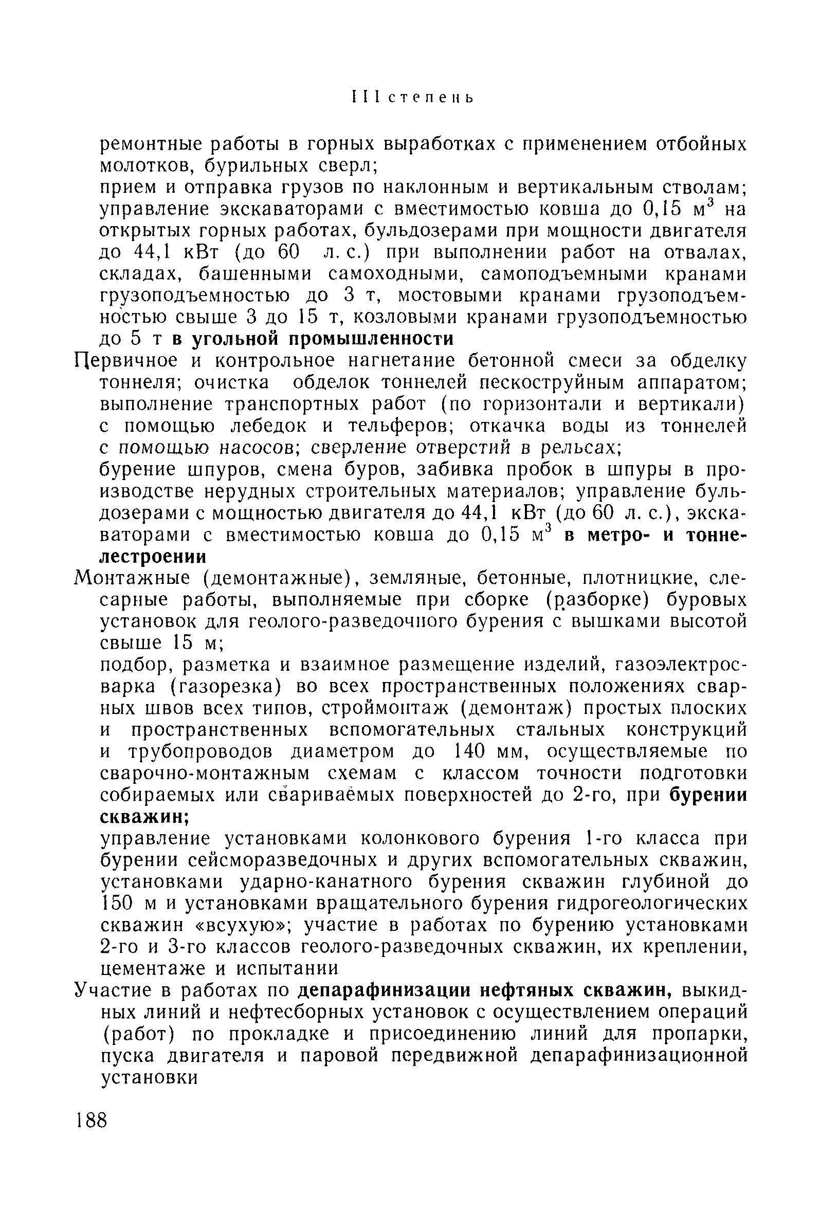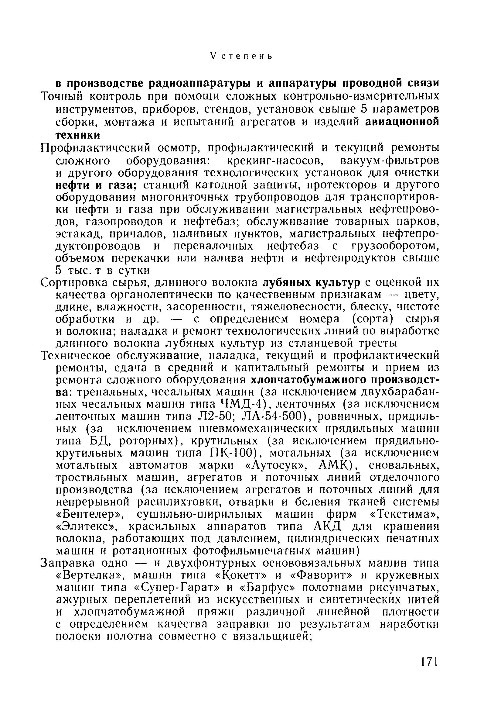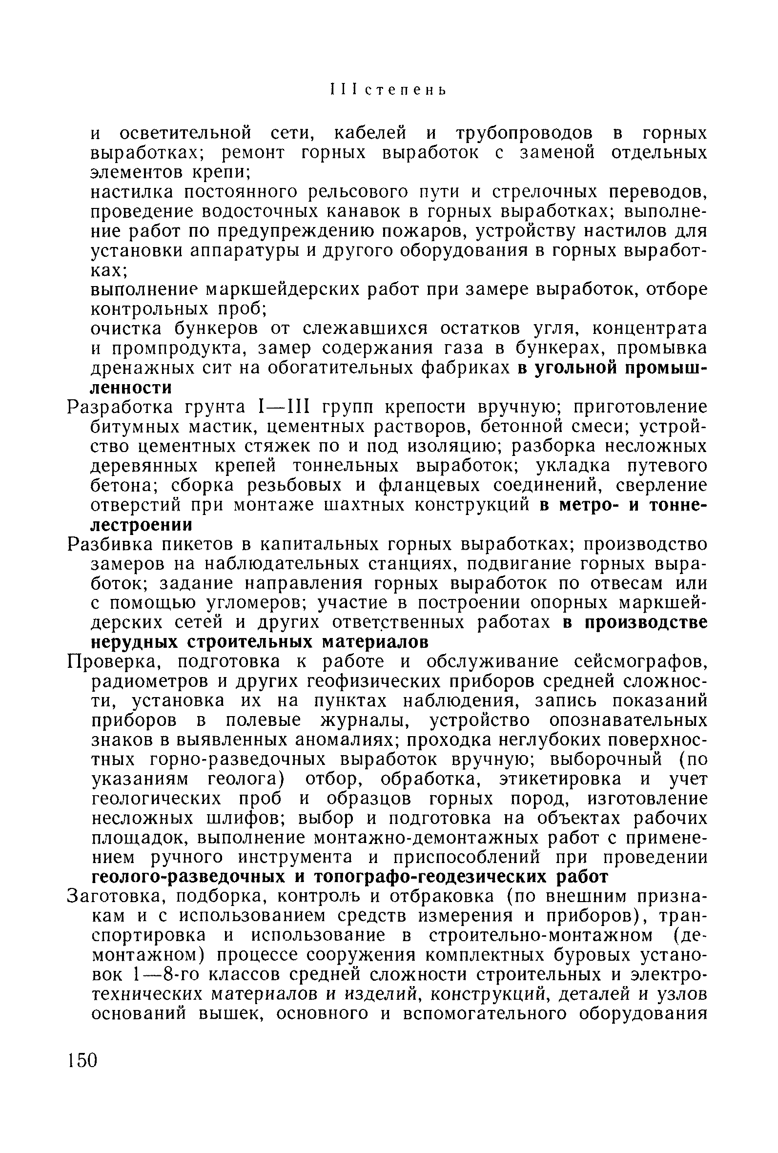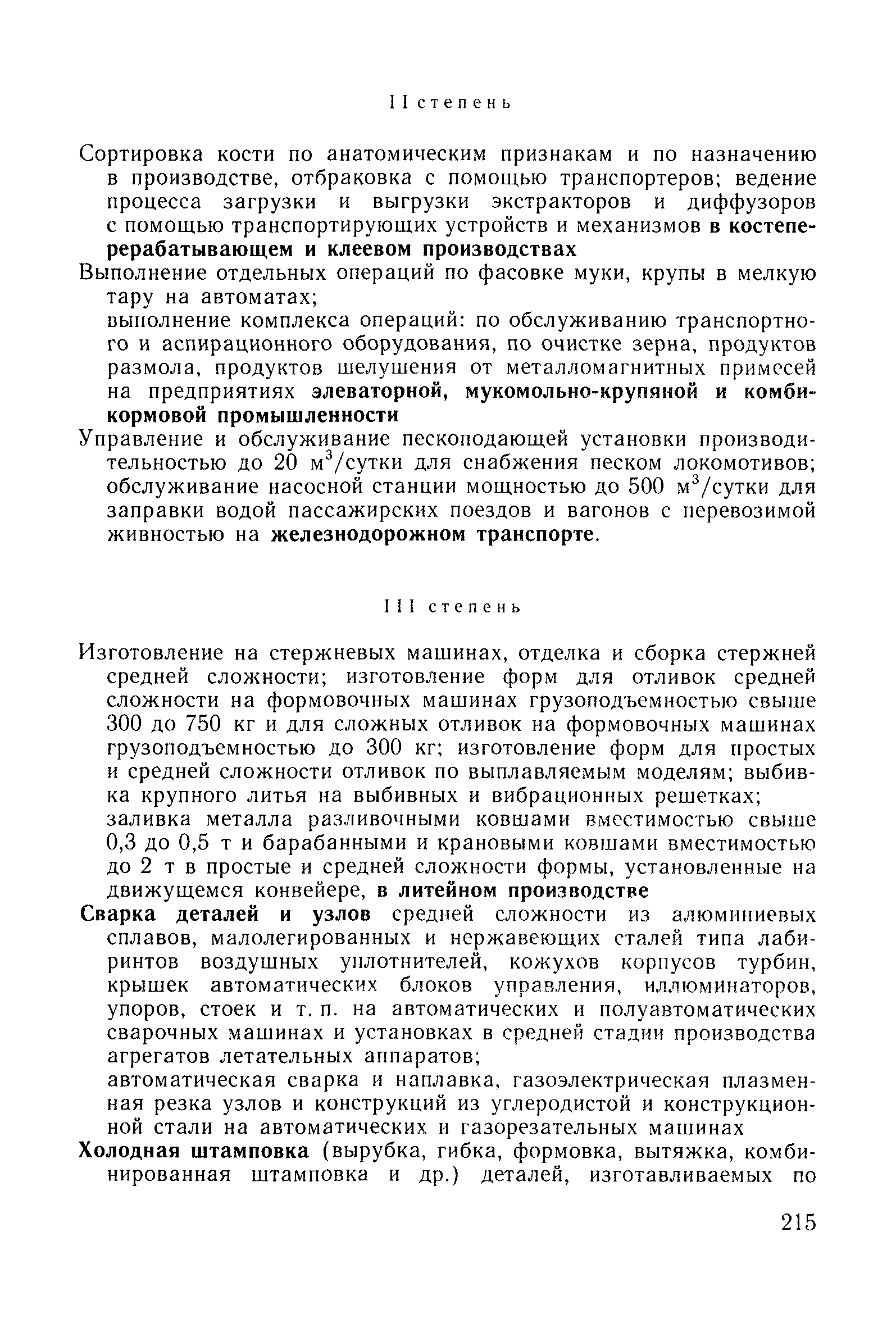 | Оглавление: | Введение I Назначение и структура построения Единого тарифно-квалификационного справочника работ и профессий рабочих II Основы методики определения разряда сложности работ III Определение требований к квалификации рабочих IV Определение наименований профессий рабочих Приложение 1. Примеры тарифно-квалификационных характеристик профессий рабочих по типам трудовых процессов Приложение 2. Критерии степеней сложности факторов 1. Критерии степеней сложности технологических факторов 1. Критерии степеней подфактора "Сложность управлении (обслуживания, пользования) орудиями труда" А. Для ручных процессов труда Б. Для машинно-ручных процессов труда В. Для машинных процессов труда Г. Для автоматизированных процессов труда Д. Для аппаратурных процессов труда 2. Критерии степеней подфактора "Сложность предметов труда" А. Для ручных процессов труда Б. Для машинно-ручных процессов труда В. Для машинных процессов труда 3. Критерии степеней подфактора "Сложность технологических (рабочих) процессов" А. Для ручных процессов труда Б. Для машинно-ручных процессов труда В. Для машинных процессов труда Г. Для автоматизированных процессов труда Д. Для аппаратурных процессов труда II Критерии степеней сложности организационных факторов (широты комплекса выполняемых операций (работ) и степени самостоятельности рабочего в процессе выполнения работ) III Критерии степеней сложности фактора ответственности (материальной ответственности и ответственности за здоровье и жизнь) IV Критерии степеней сложности специфических факторов . . . Приложение 3. Профессионально-квалификационная карта рабочего Приложение 4. Примеры оценки сложности работ по типам трудовых процессов Приложение 5. Тарифно-квалификационная карта для определения разряда сложности работы |