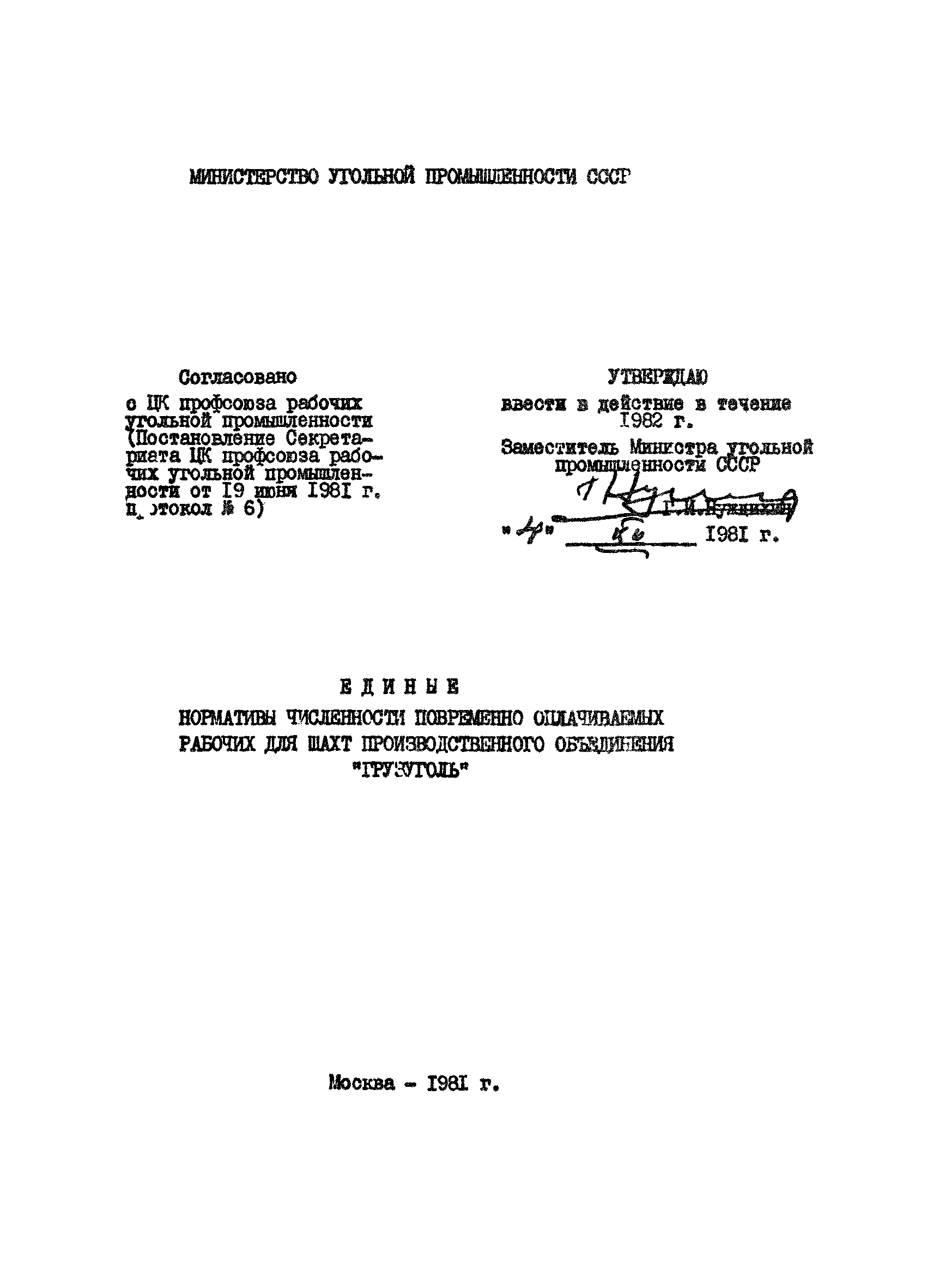 | Принят: | 19.06.1981 ЦК профсоюза рабочих угольной промышленности (6)