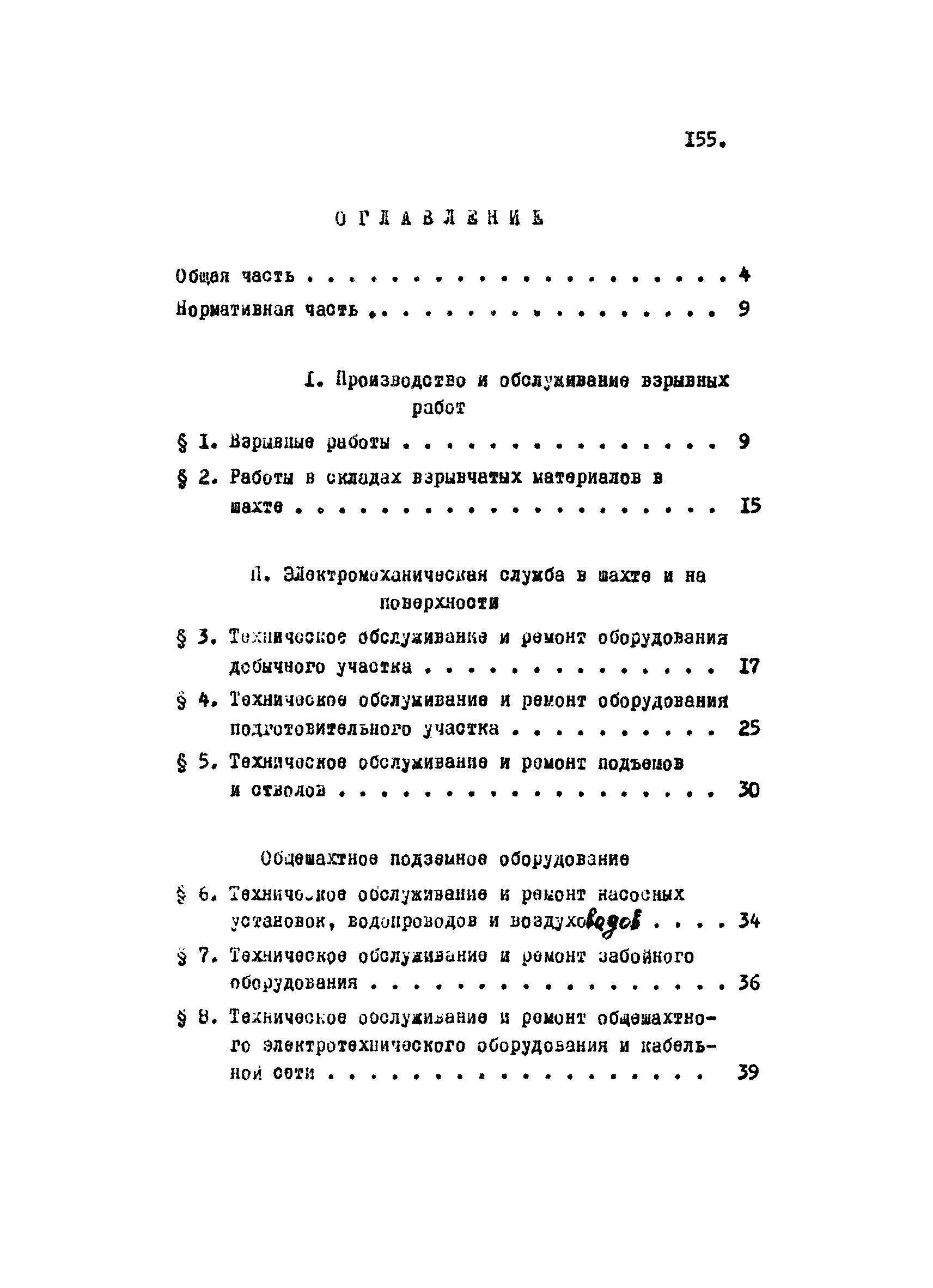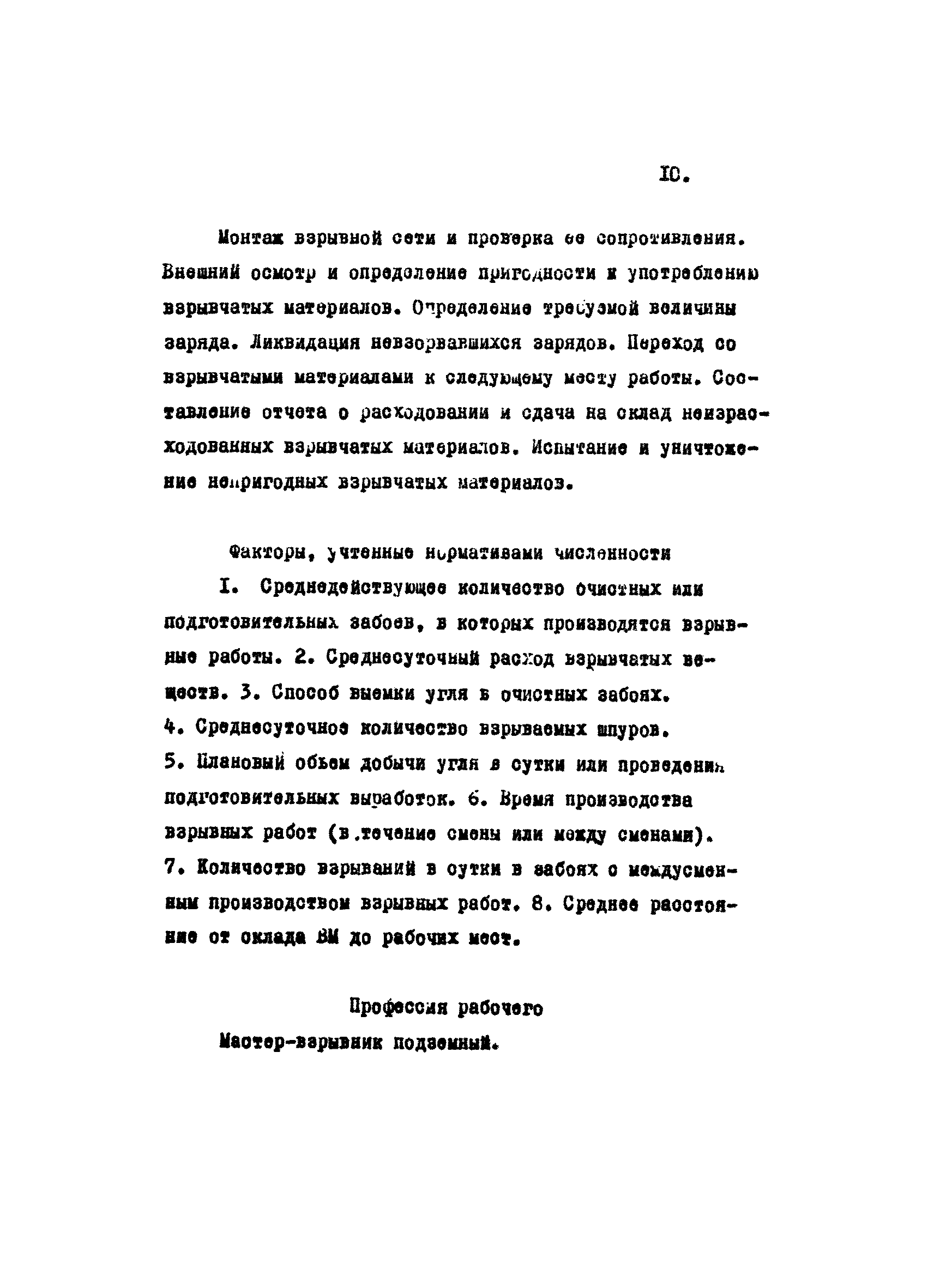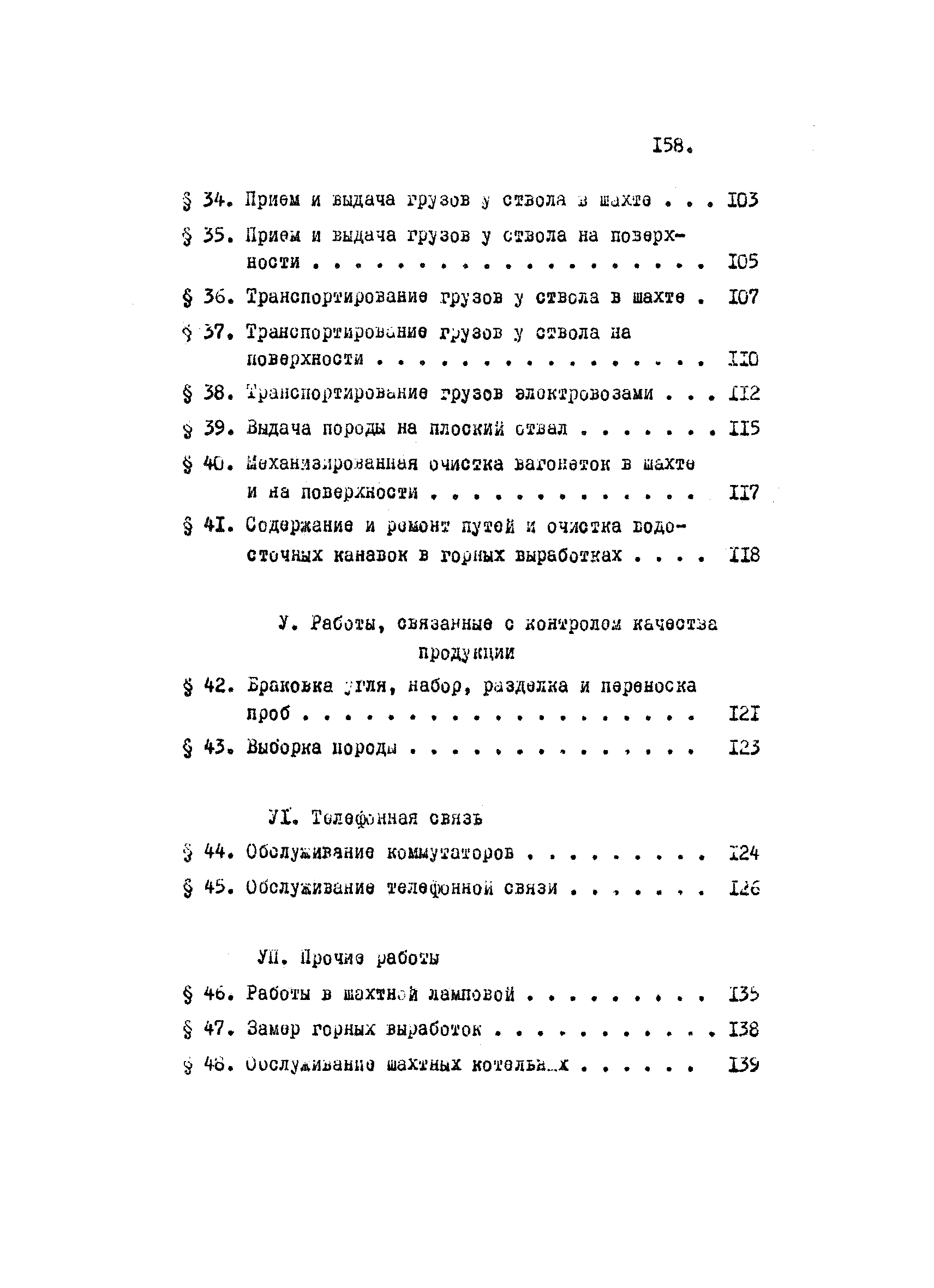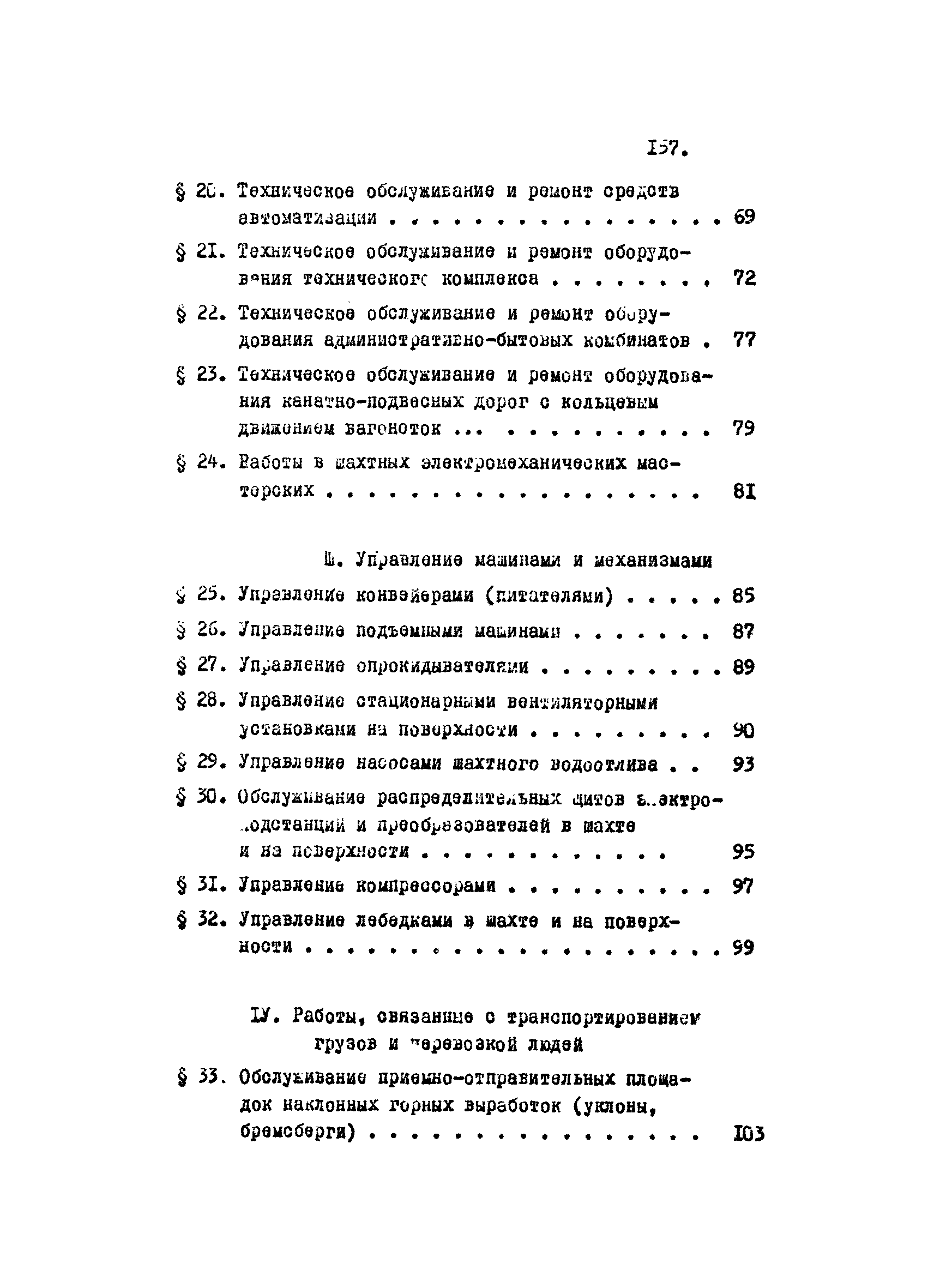 | Оглавление: | Общая часть Нормативная часть I Производство и обслуживание взрывных работ II Электромеханическая служба в шахте и на поверхности Общешахтное подземное оборудование Шахтный транспорт (в шахте и на поверхности) Общешахтное оборудование на поверхности III Управление машинами и механизмами IV Работы, связанные с транспортированием грузов и перевозкой людей V Работы, связанные с контролем качества продукции VI Телефонная связь VII Прочие работы |