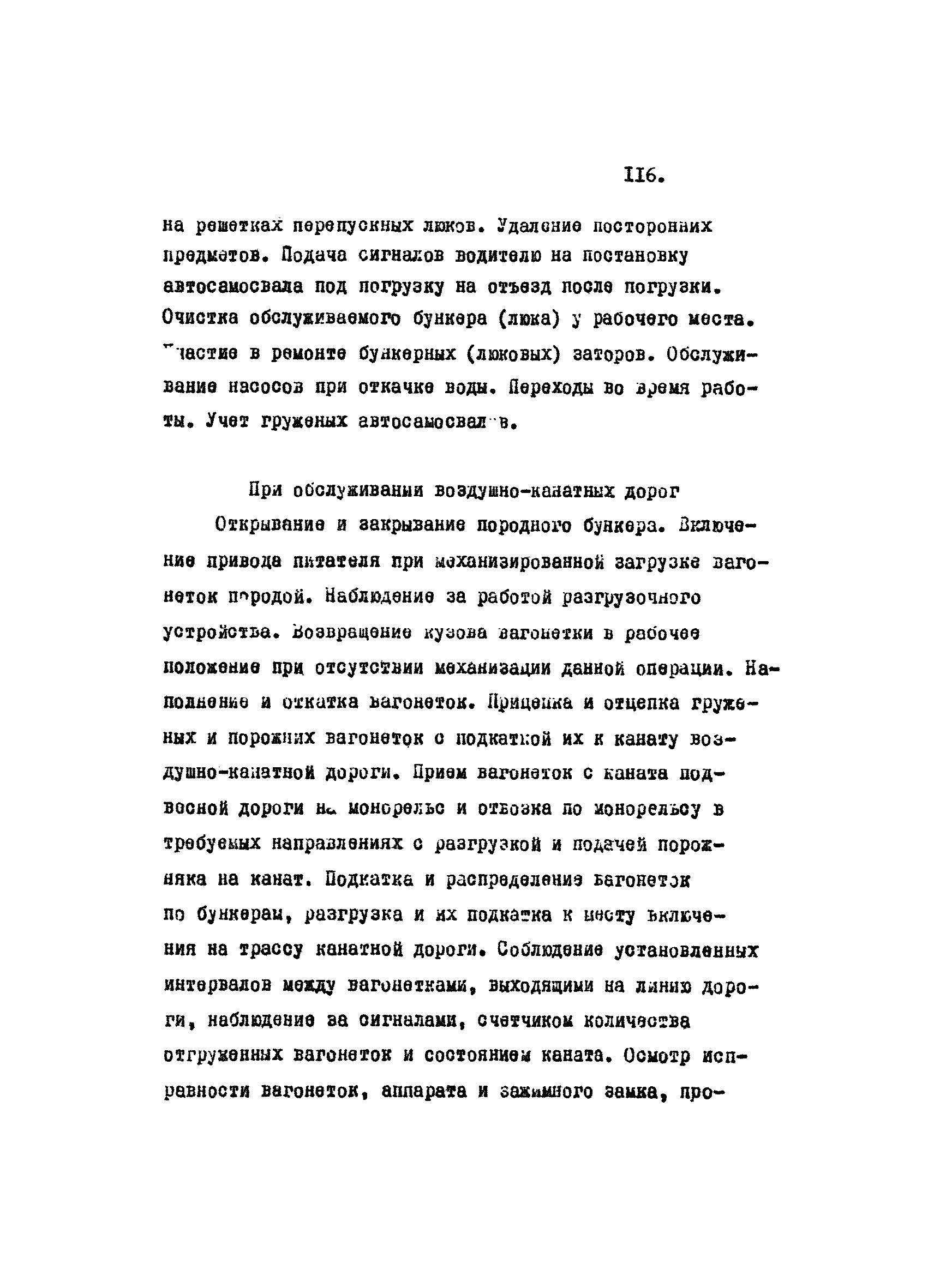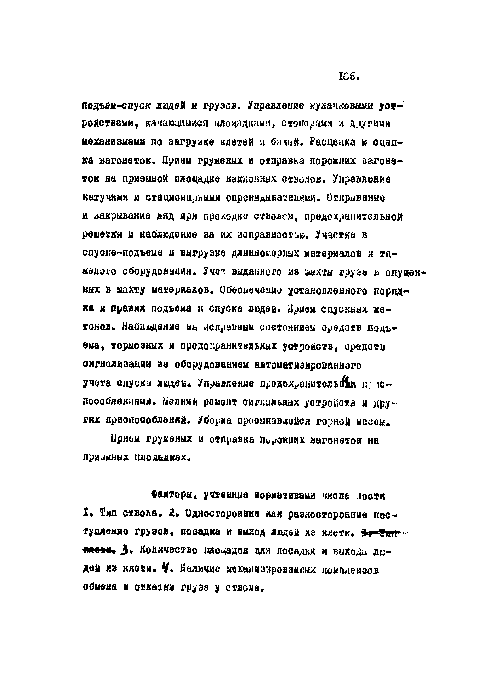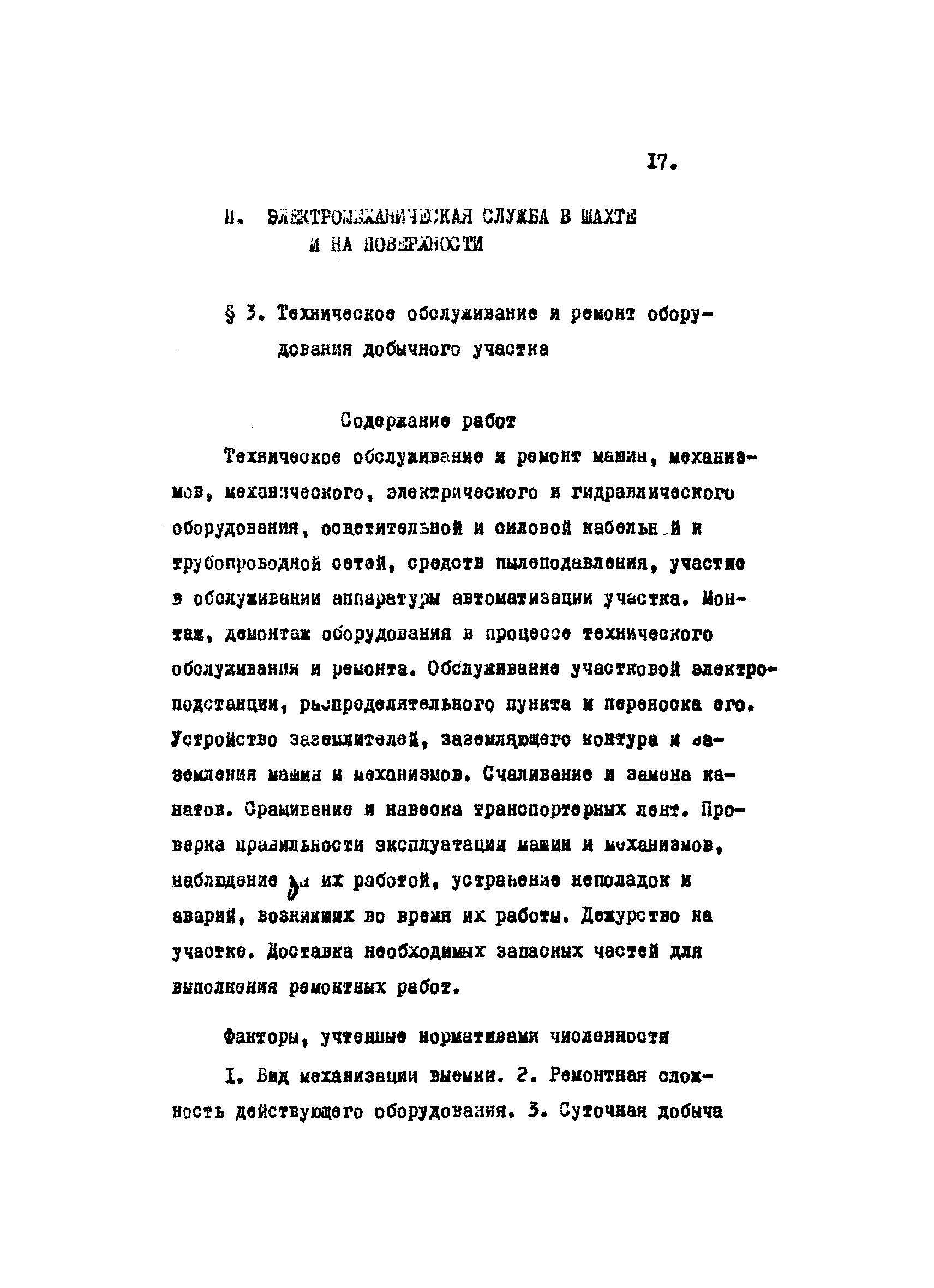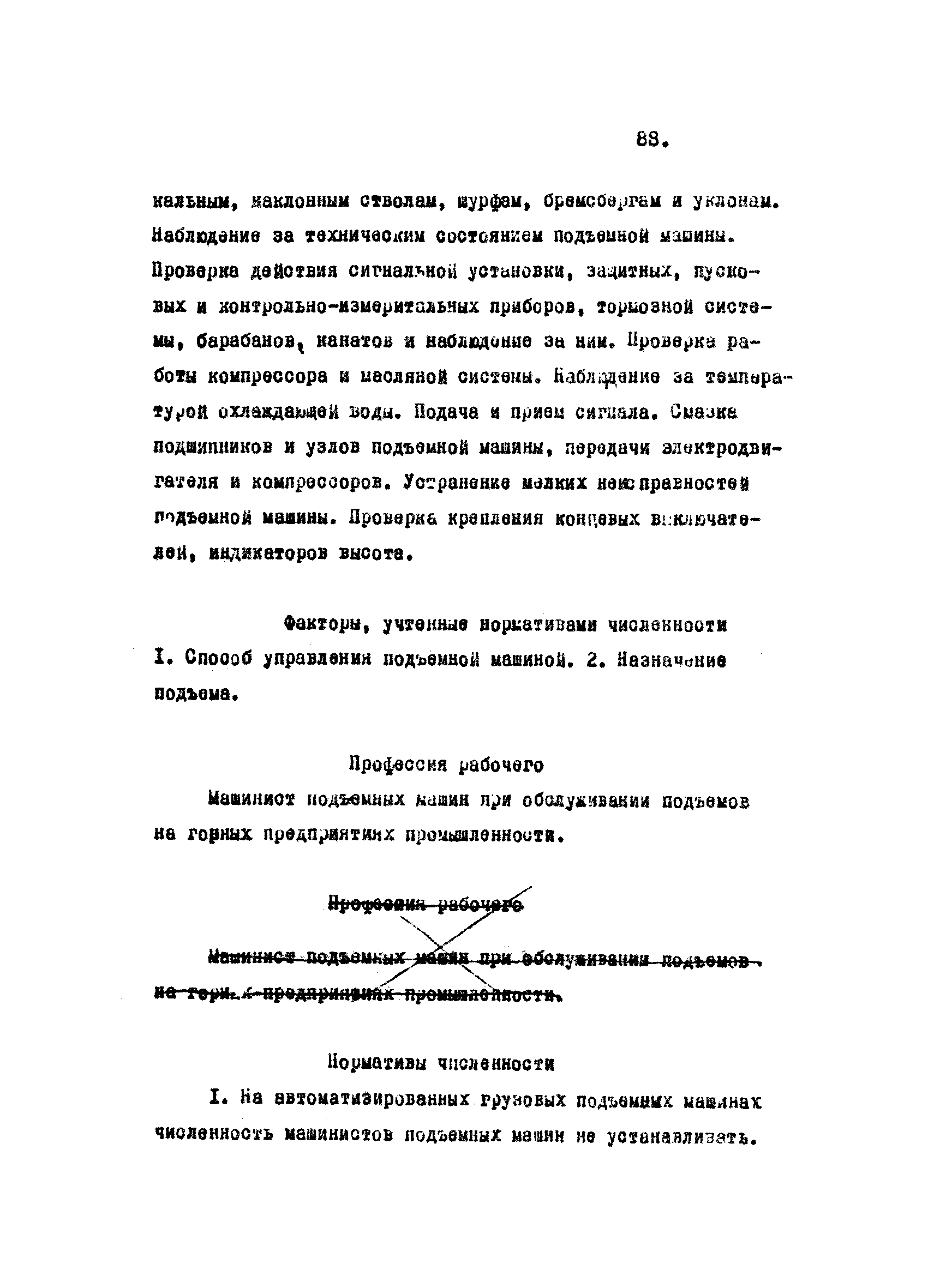 | Оглавление: | Общая часть Нормативная часть I Производство и обслуживание взрывных работ II Электромеханическая служба в шахте и на поверхности Общешахтное подземное оборудование Шахтный транспорт (в шахте и на поверхности) Общешахтное оборудование на поверхности III Управление машинами и механизмами IV Работы, связанные с транспортированием грузов и перевозкой людей V Работы, связанные с контролем качества продукции VI Телефонная связь VII Прочие работы |