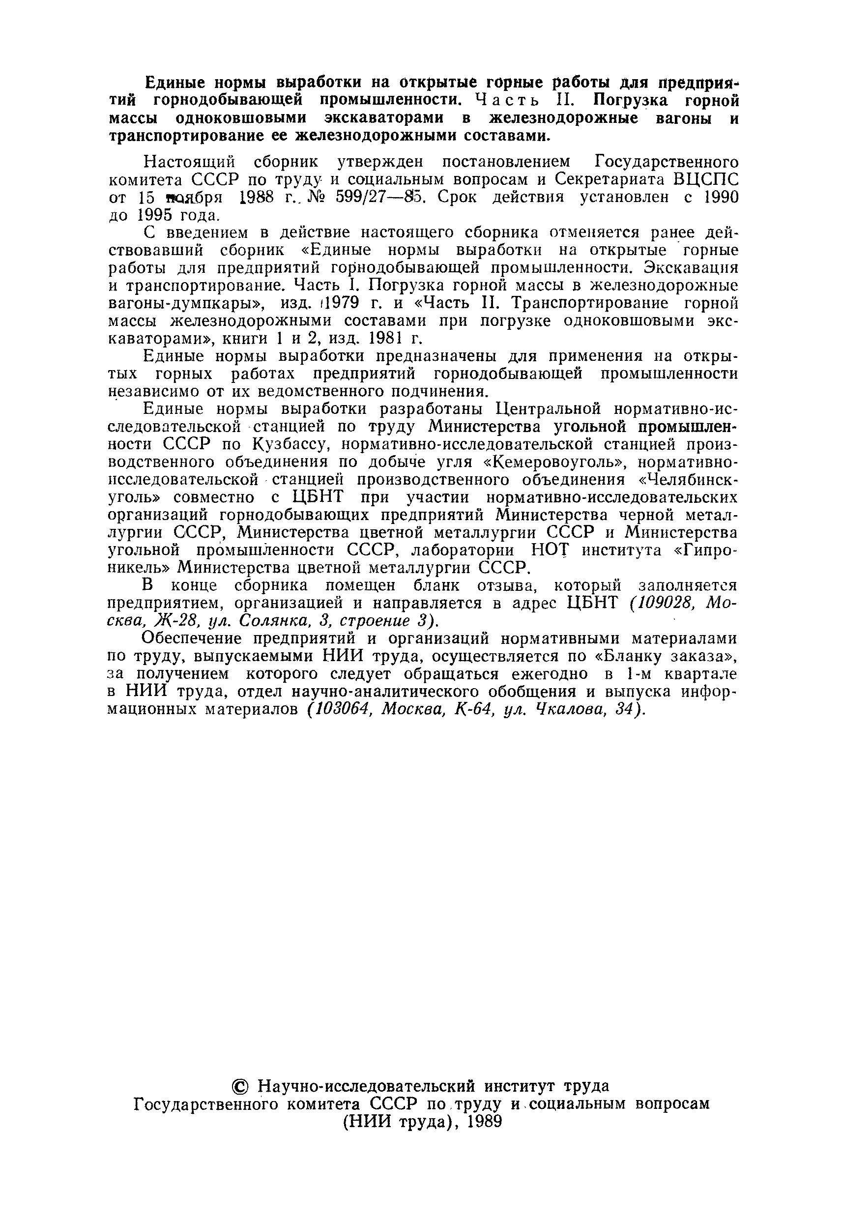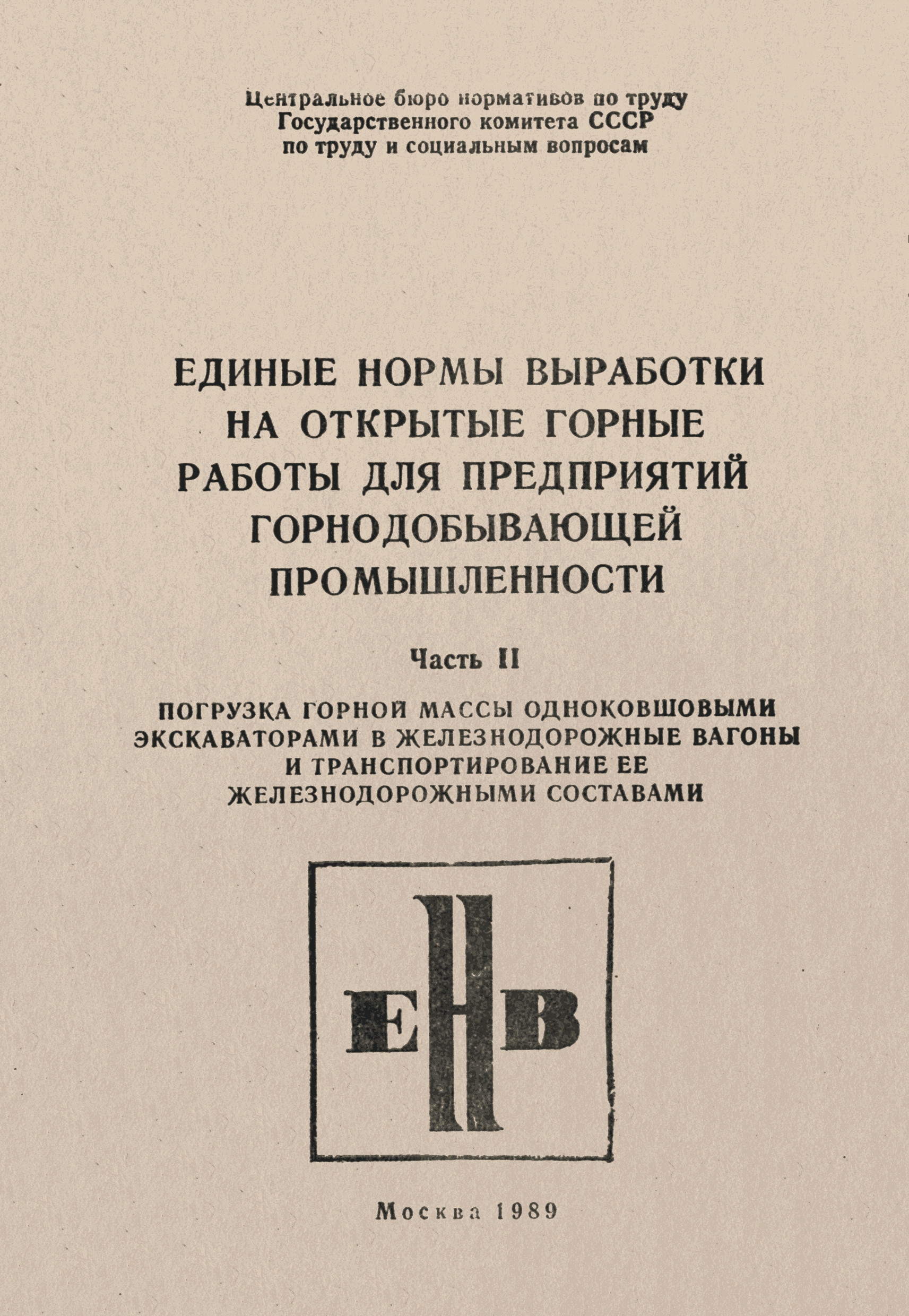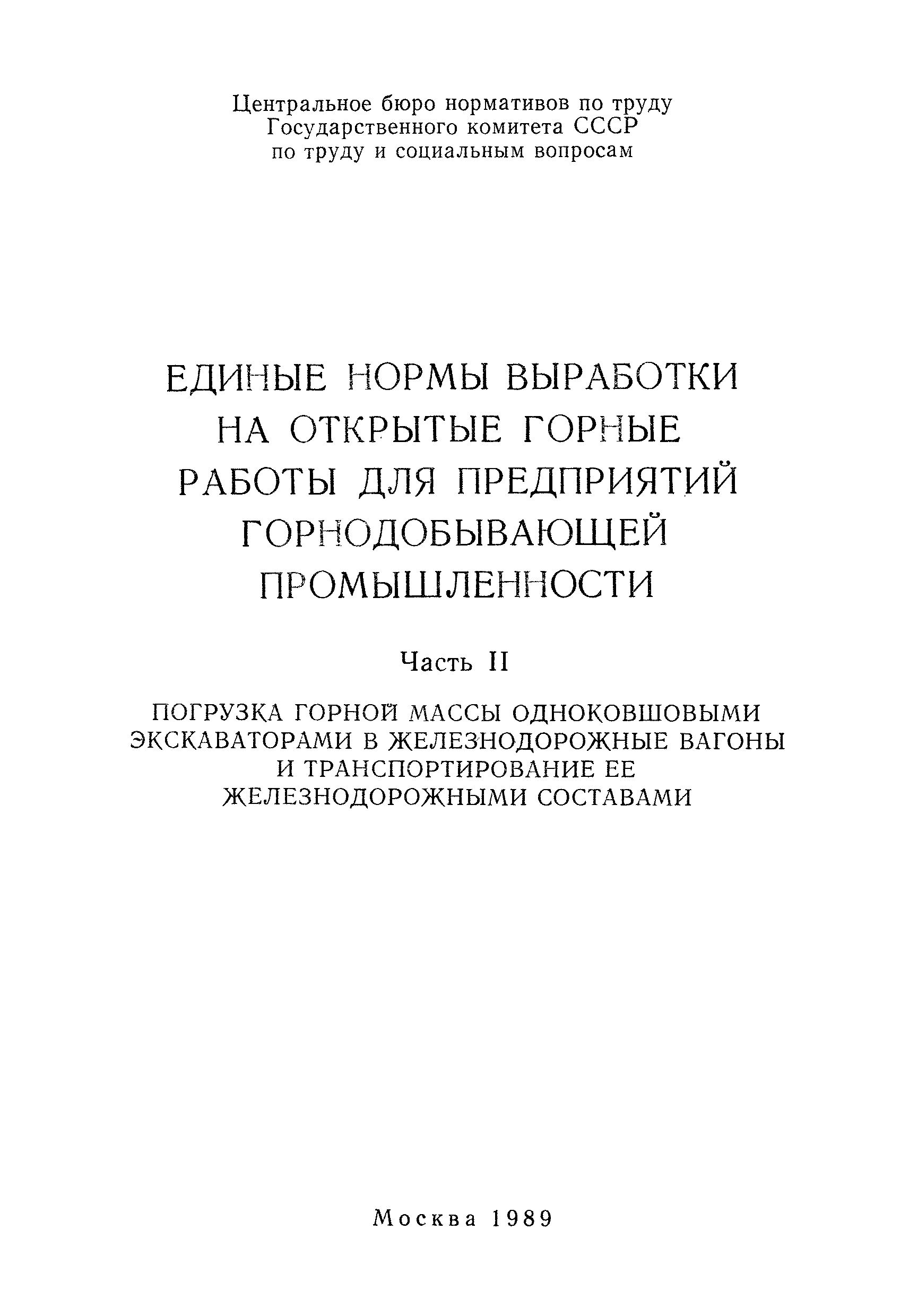 | Название рус.: | Единые нормы выработки на открытые горные работы для предприятий горнодобывающей промышленности. Часть II. Погрузка горной массы одноковшовыми экскаваторами в железнодорожные вагоны и транспортирование ее железнодорожными составами |