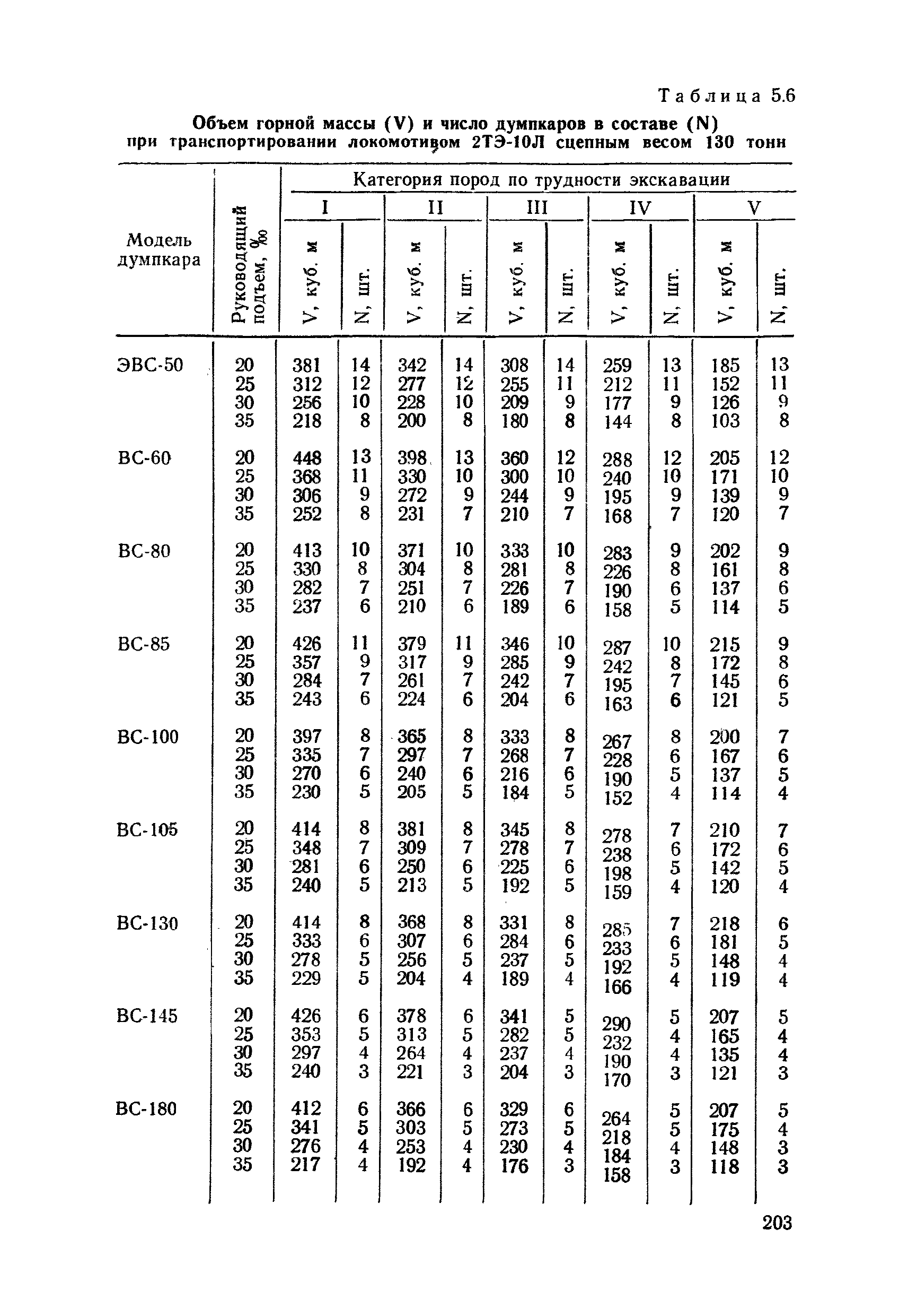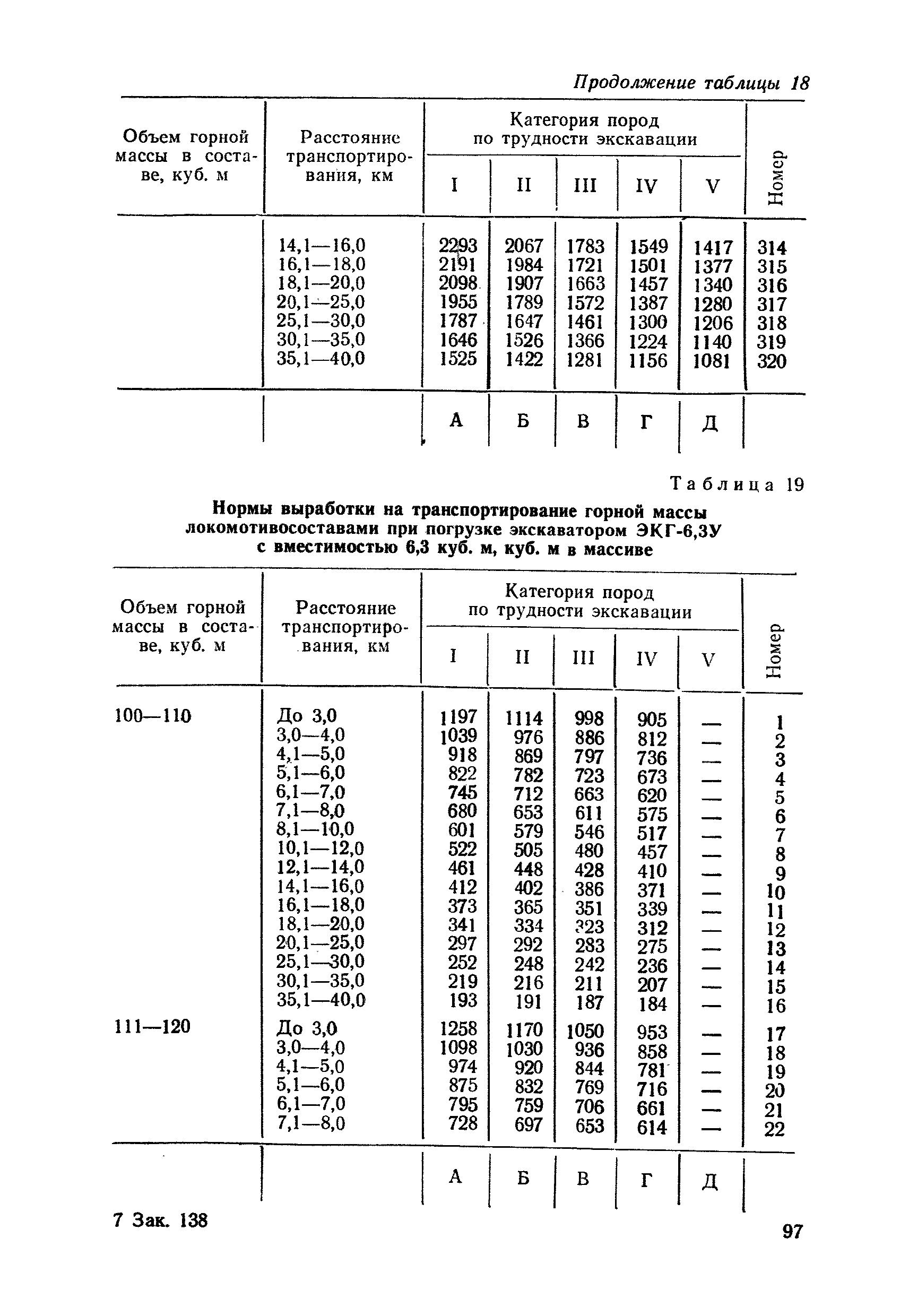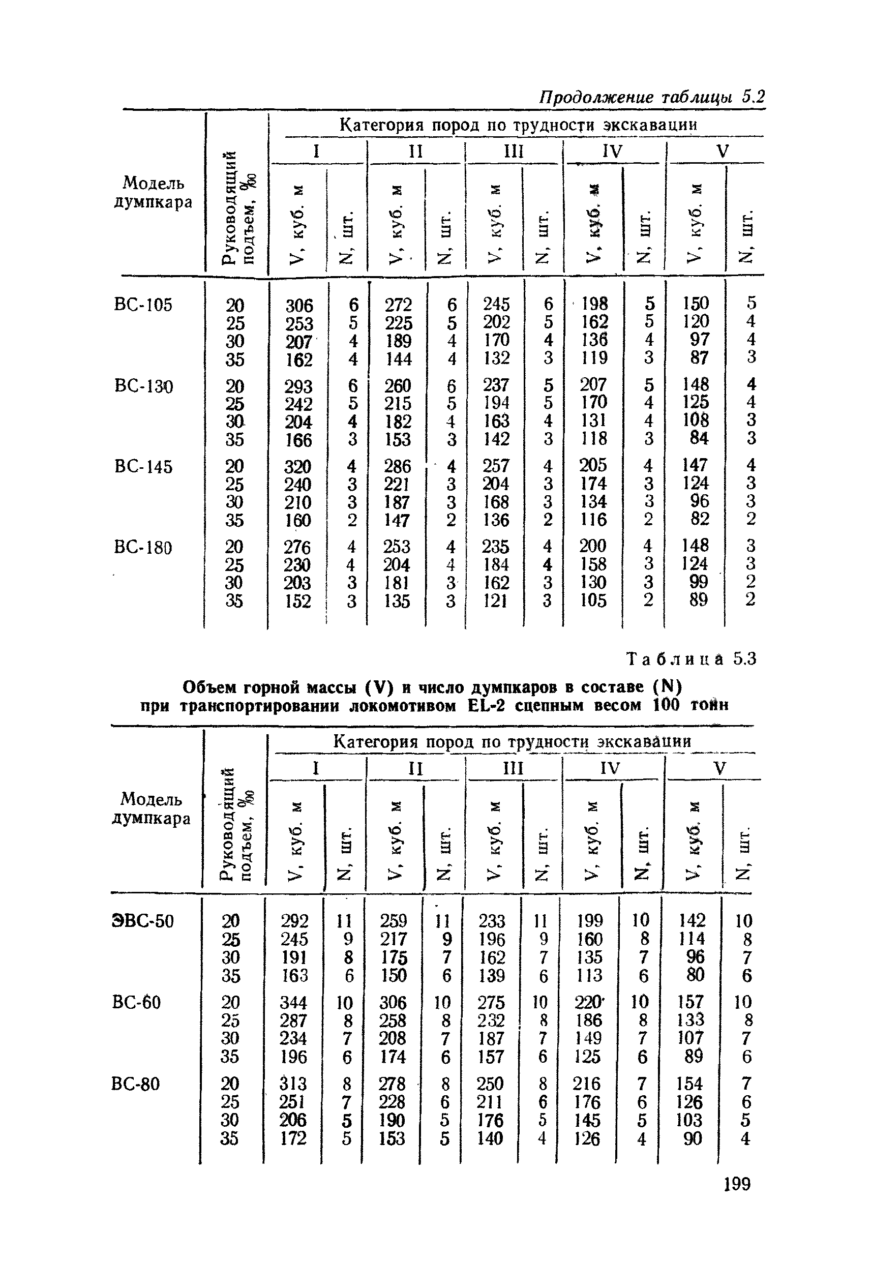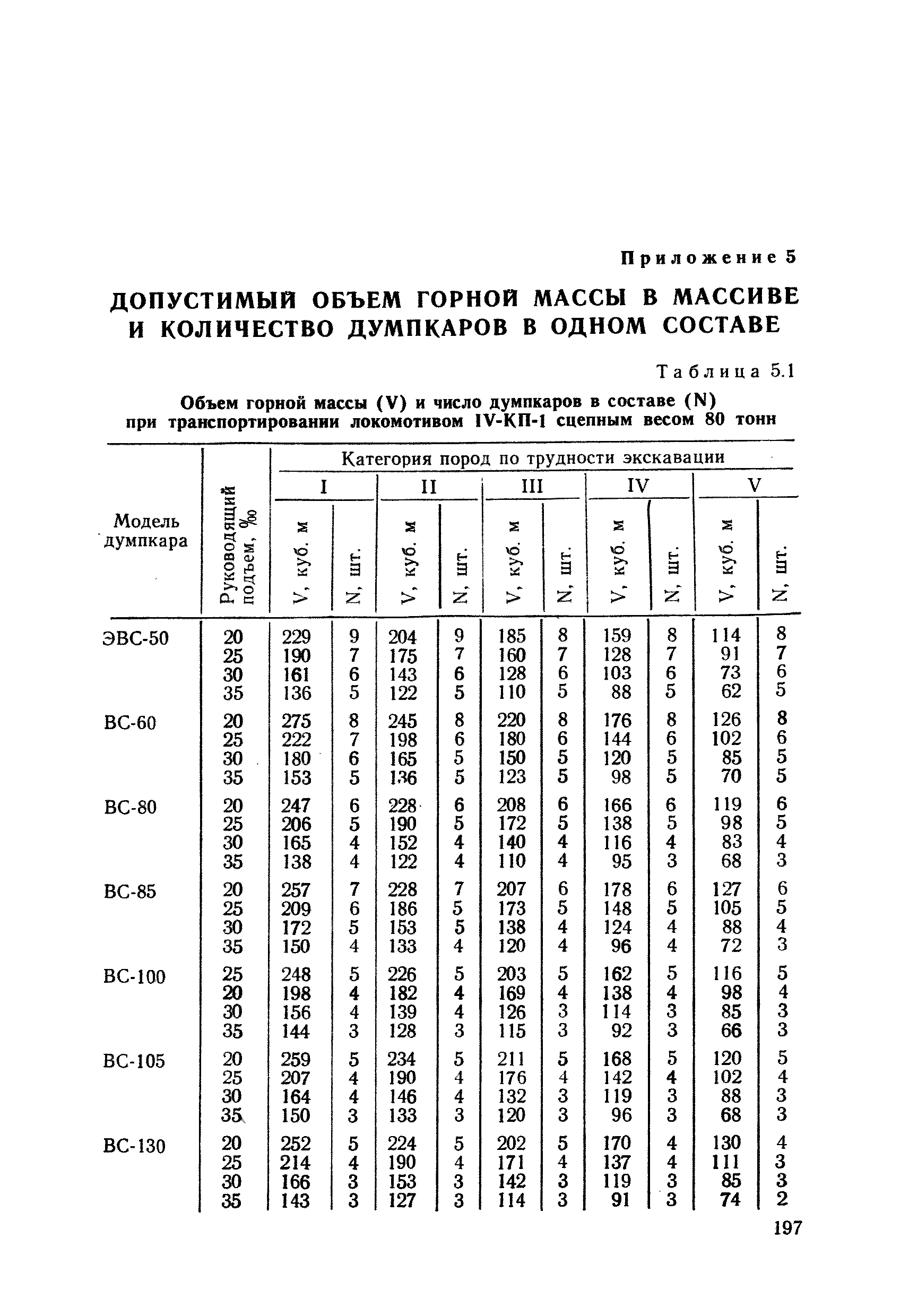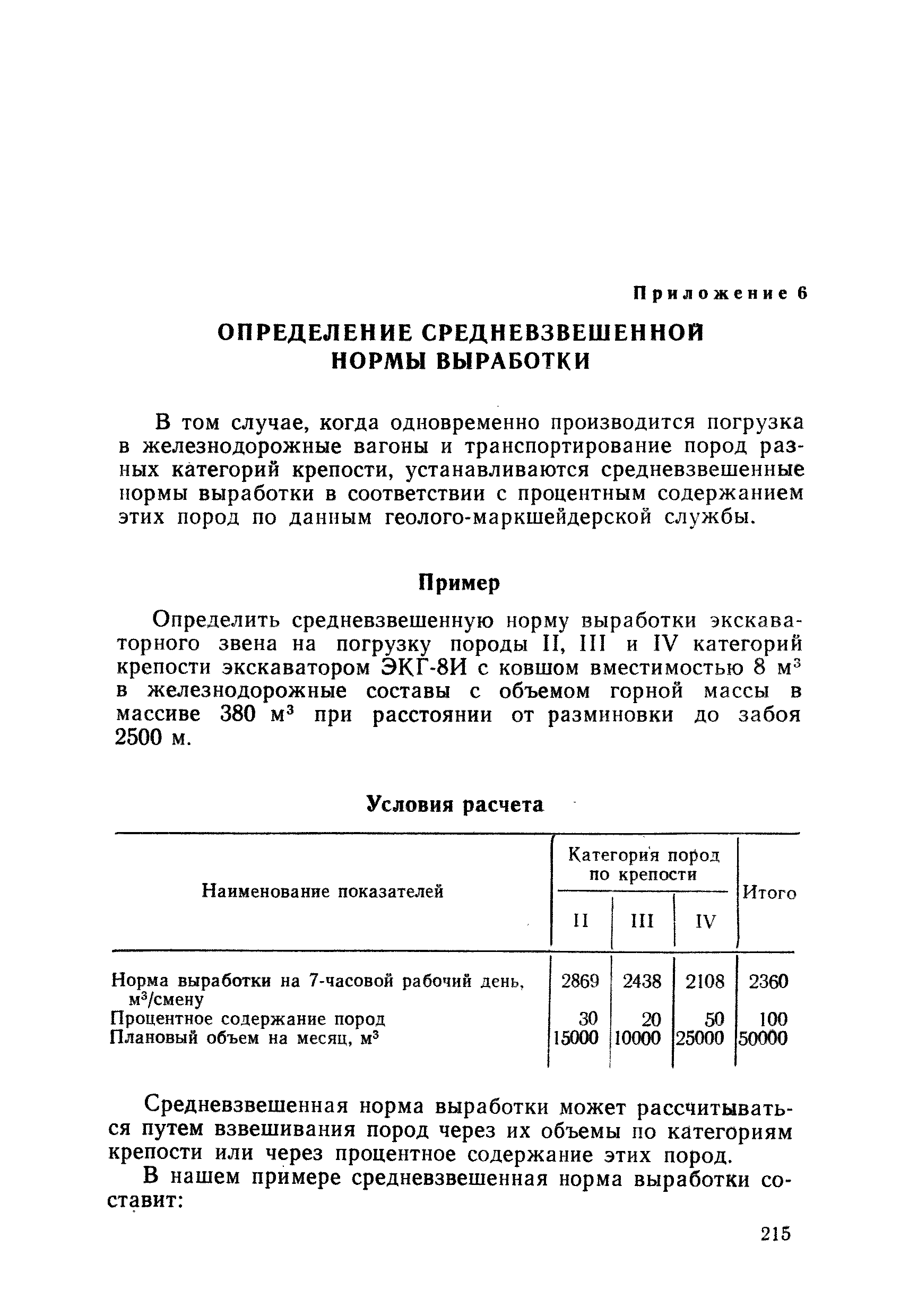 | Оглавление: | Общая часть Нормативная часть 1. Погрузка горной массы одноковшовыми экскаваторами типа прямая лопата и драглайн в железнодорожные вагоны (думпкары) 1.1. Организация работы 1.2. Содержание работы 1.3. Численный и профессиональный состав экипажа экскаватора 1.4. Факторы, влияющие на величину нормы выработки при погрузке горной массы Нормы выработки на погрузку горной нассы в железнодорожные вагоны, таблицы 1 - 14 2. Транспортирование горной массы локомотивосоставами 2.1. Организация работы 2.2. Содержание работы 2.3. Состав бригады 2.4. Факторы, влияющие на величину нормы выработки Нормы выработки на транспортирование горной массы локомотивосоставами при погрузке экскаваторами, таблицы 15 - 28 3. Поправочные коэффициенты к нормам выработки на погрузку и транспортирование горной массы Приложение 1. Методика расчета норм выработки Приложение 2. Технические и расчетные данные для расчета норм выработки Приложение 3. Нормативы времени на погрузку и транспортирование горной массы Приложение 4. Число ковшей, погружаемых в локомотивосостав, и нормативное время погрузки локомотивосостава Приложение 5. Допустимый объем горной массы в массиве и количество думпкаров в одном составе Приложение 6. Определение средневзвешенной нормы выработки Приложение 7. Определение нормы выработки при изменении объемного веса горных пород |