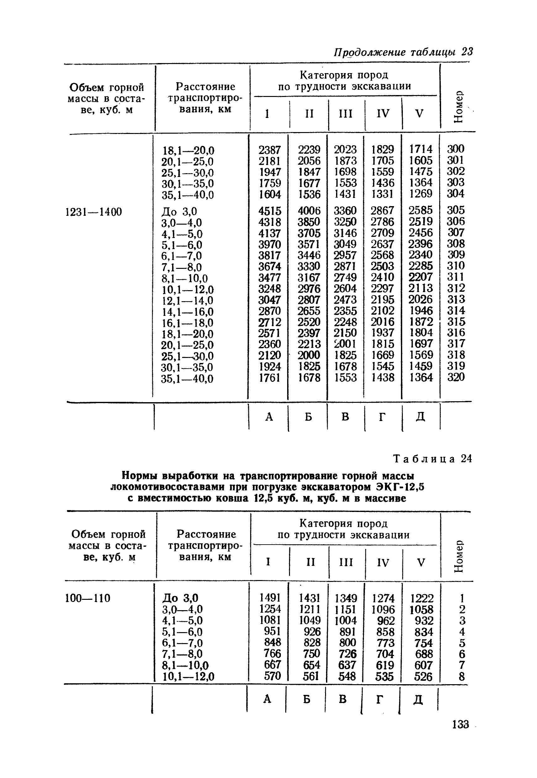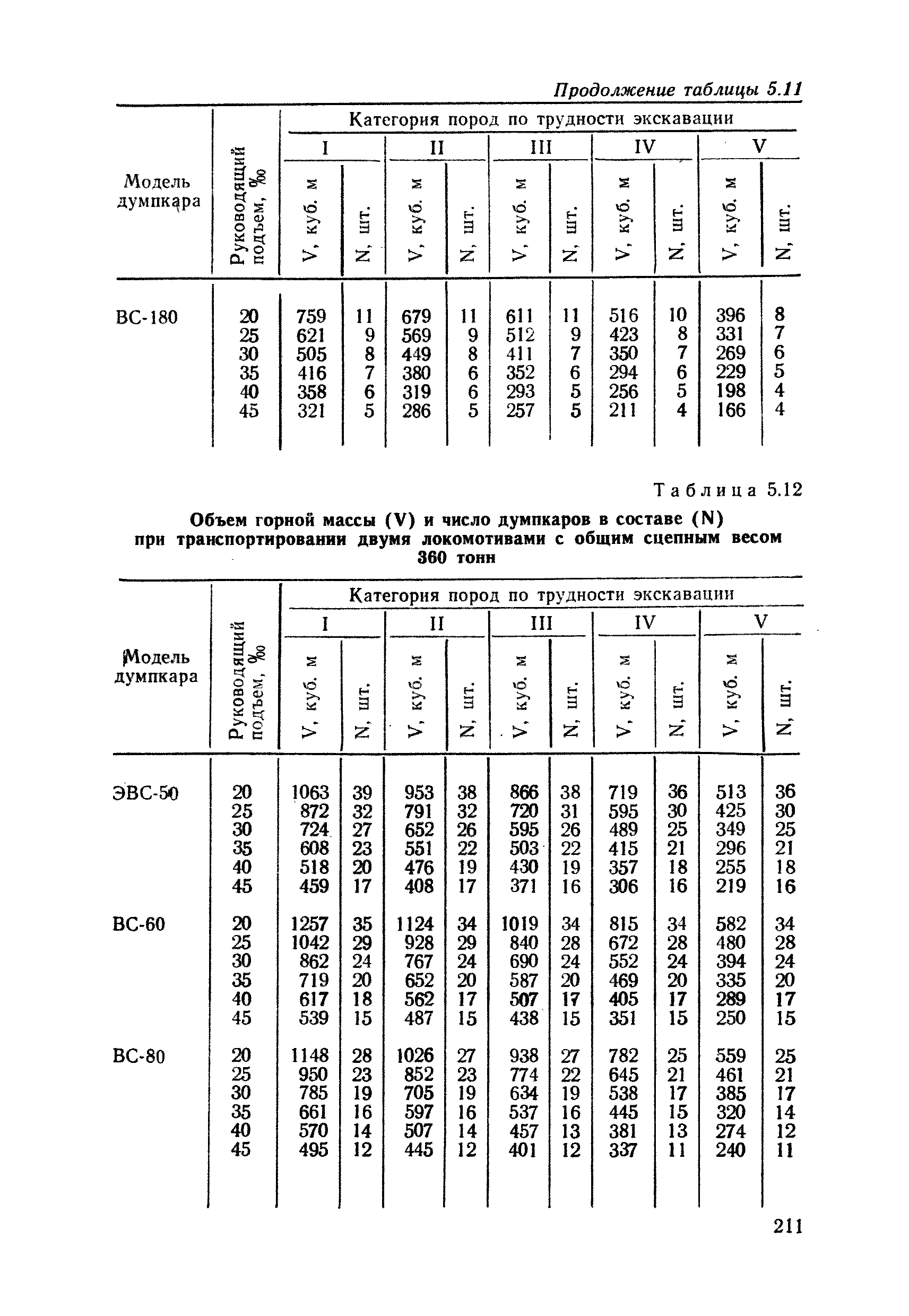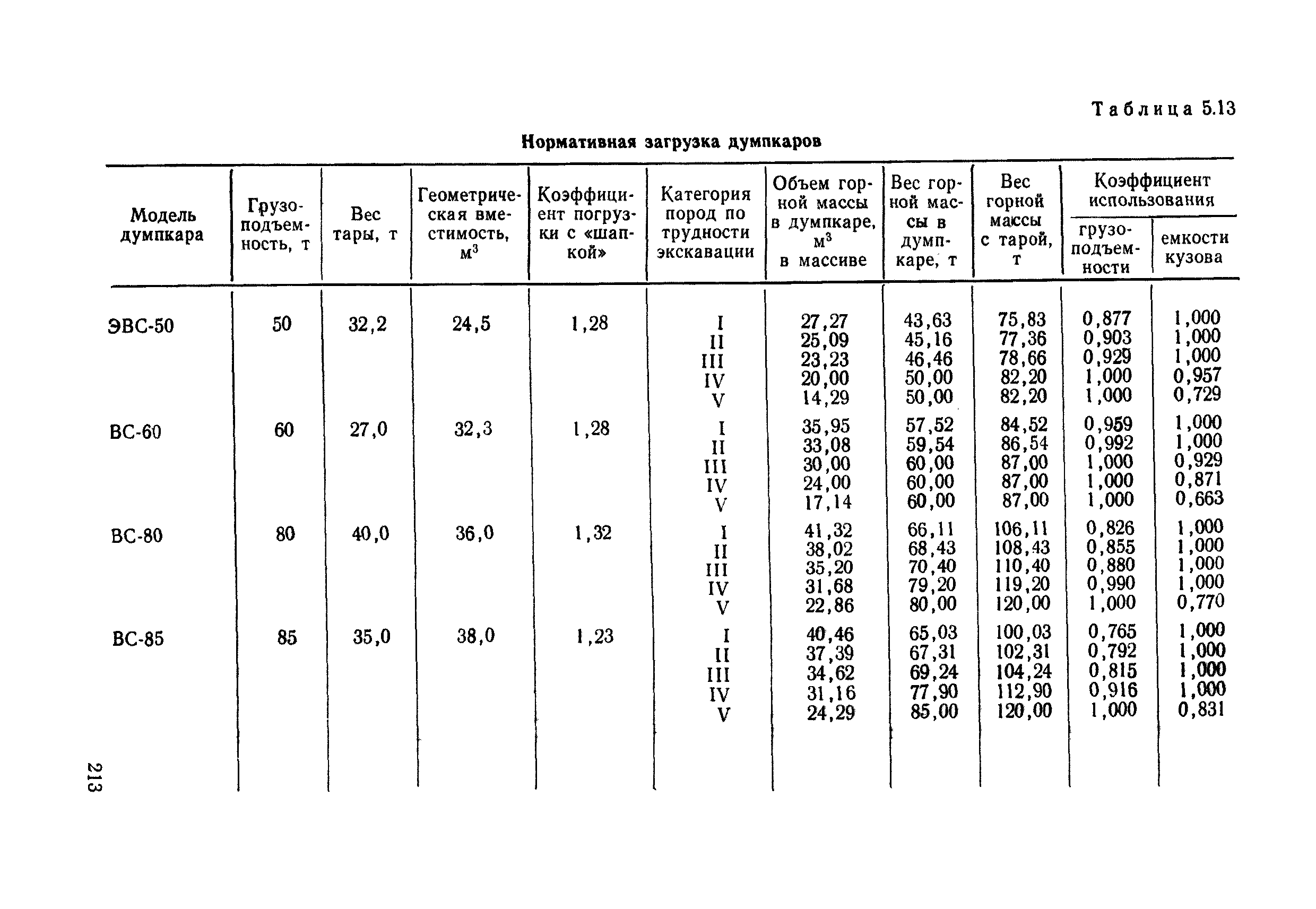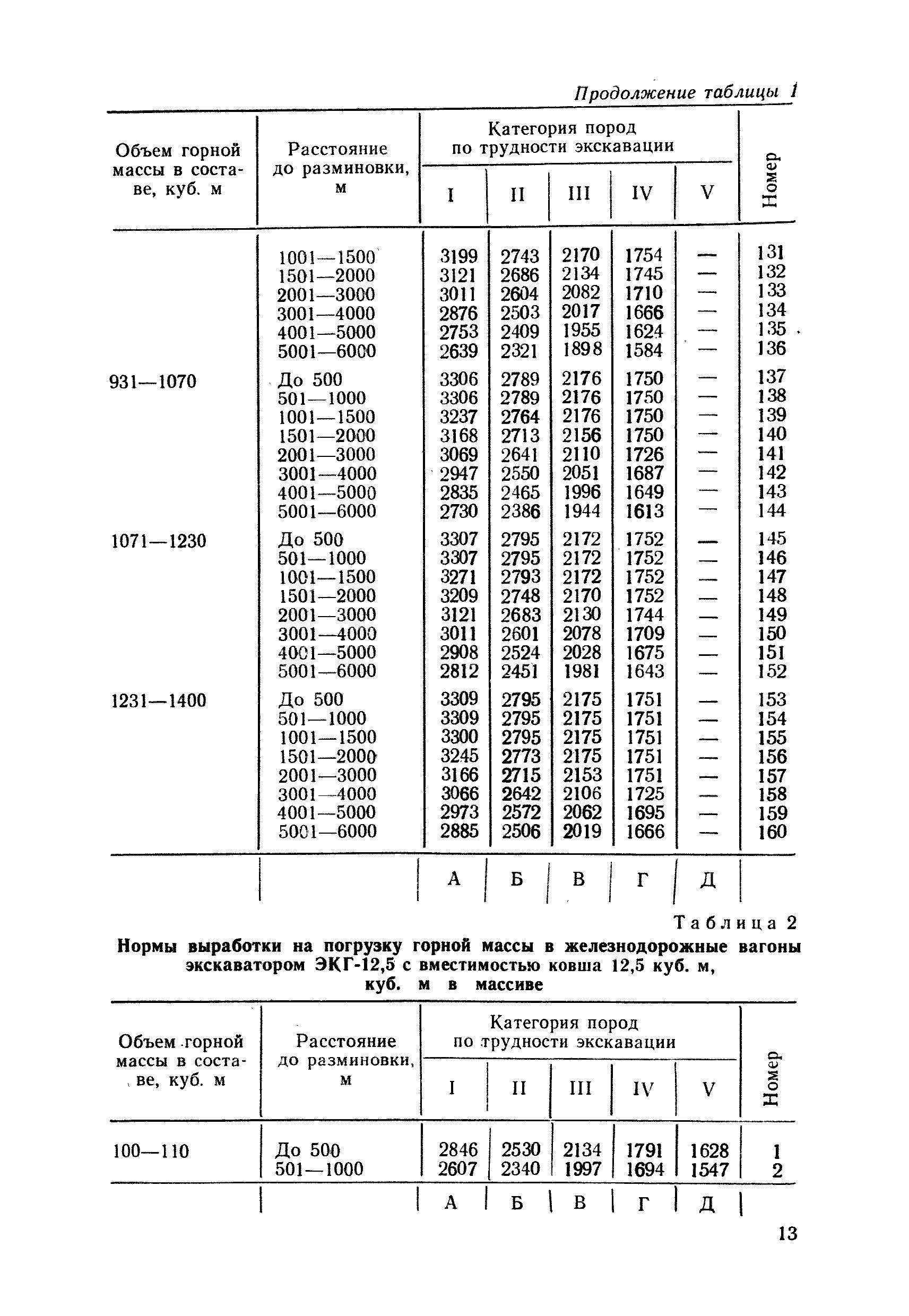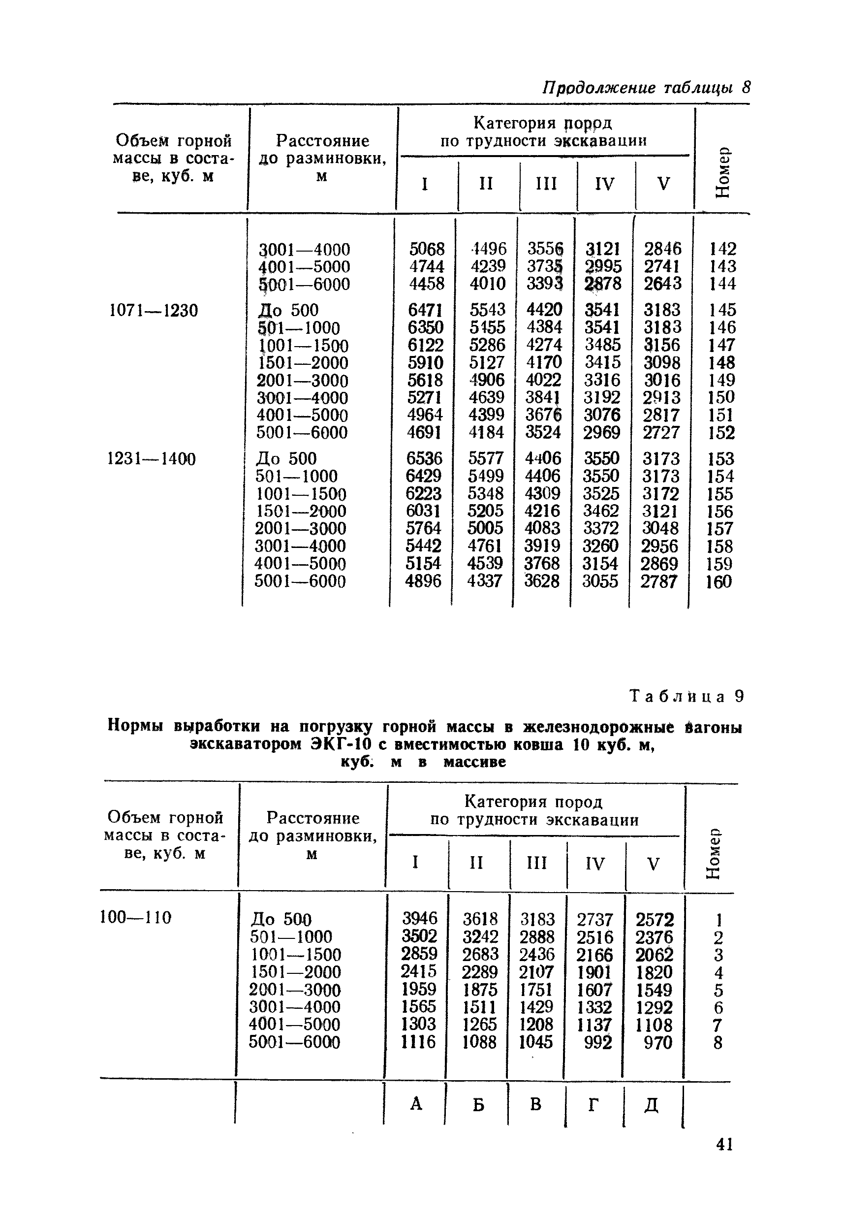 | Оглавление: | Общая часть Нормативная часть 1. Погрузка горной массы одноковшовыми экскаваторами типа прямая лопата и драглайн в железнодорожные вагоны (думпкары) 1.1. Организация работы 1.2. Содержание работы 1.3. Численный и профессиональный состав экипажа экскаватора 1.4. Факторы, влияющие на величину нормы выработки при погрузке горной массы Нормы выработки на погрузку горной нассы в железнодорожные вагоны, таблицы 1 - 14 2. Транспортирование горной массы локомотивосоставами 2.1. Организация работы 2.2. Содержание работы 2.3. Состав бригады 2.4. Факторы, влияющие на величину нормы выработки Нормы выработки на транспортирование горной массы локомотивосоставами при погрузке экскаваторами, таблицы 15 - 28 3. Поправочные коэффициенты к нормам выработки на погрузку и транспортирование горной массы Приложение 1. Методика расчета норм выработки Приложение 2. Технические и расчетные данные для расчета норм выработки Приложение 3. Нормативы времени на погрузку и транспортирование горной массы Приложение 4. Число ковшей, погружаемых в локомотивосостав, и нормативное время погрузки локомотивосостава Приложение 5. Допустимый объем горной массы в массиве и количество думпкаров в одном составе Приложение 6. Определение средневзвешенной нормы выработки Приложение 7. Определение нормы выработки при изменении объемного веса горных пород |