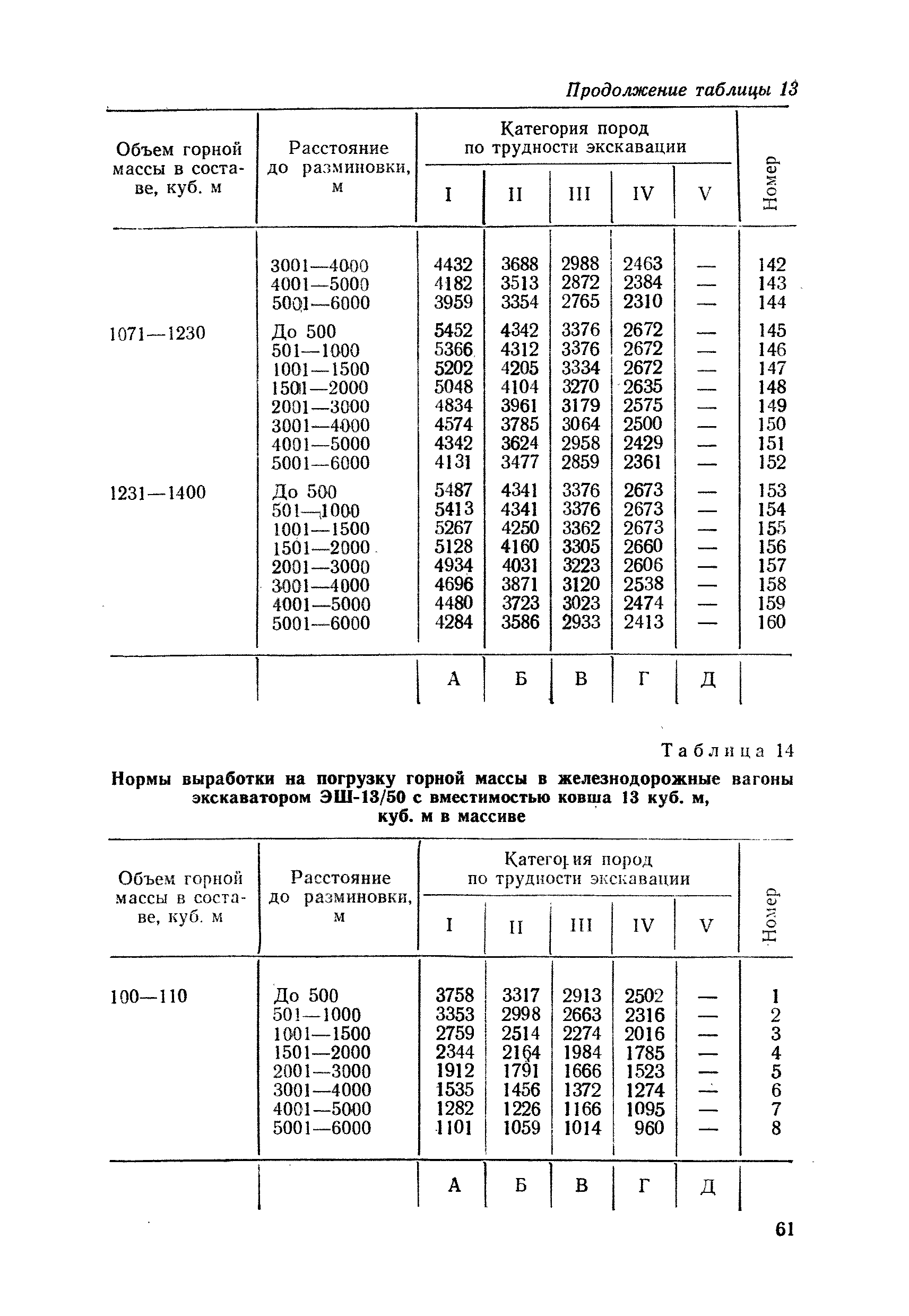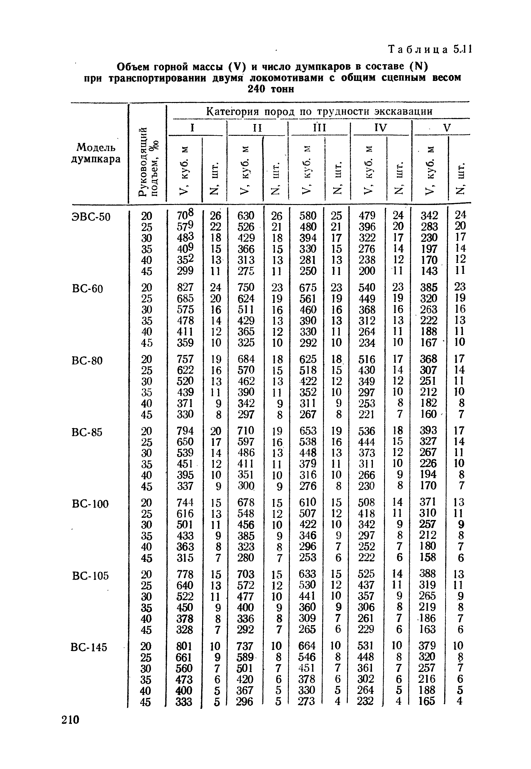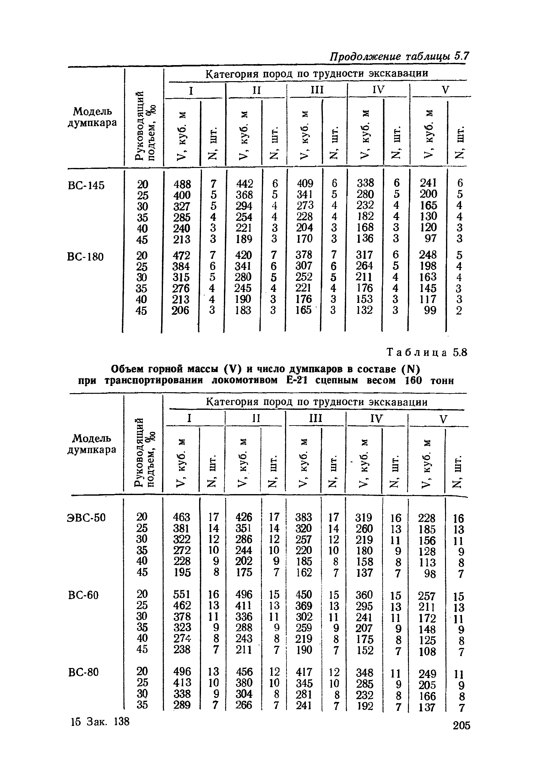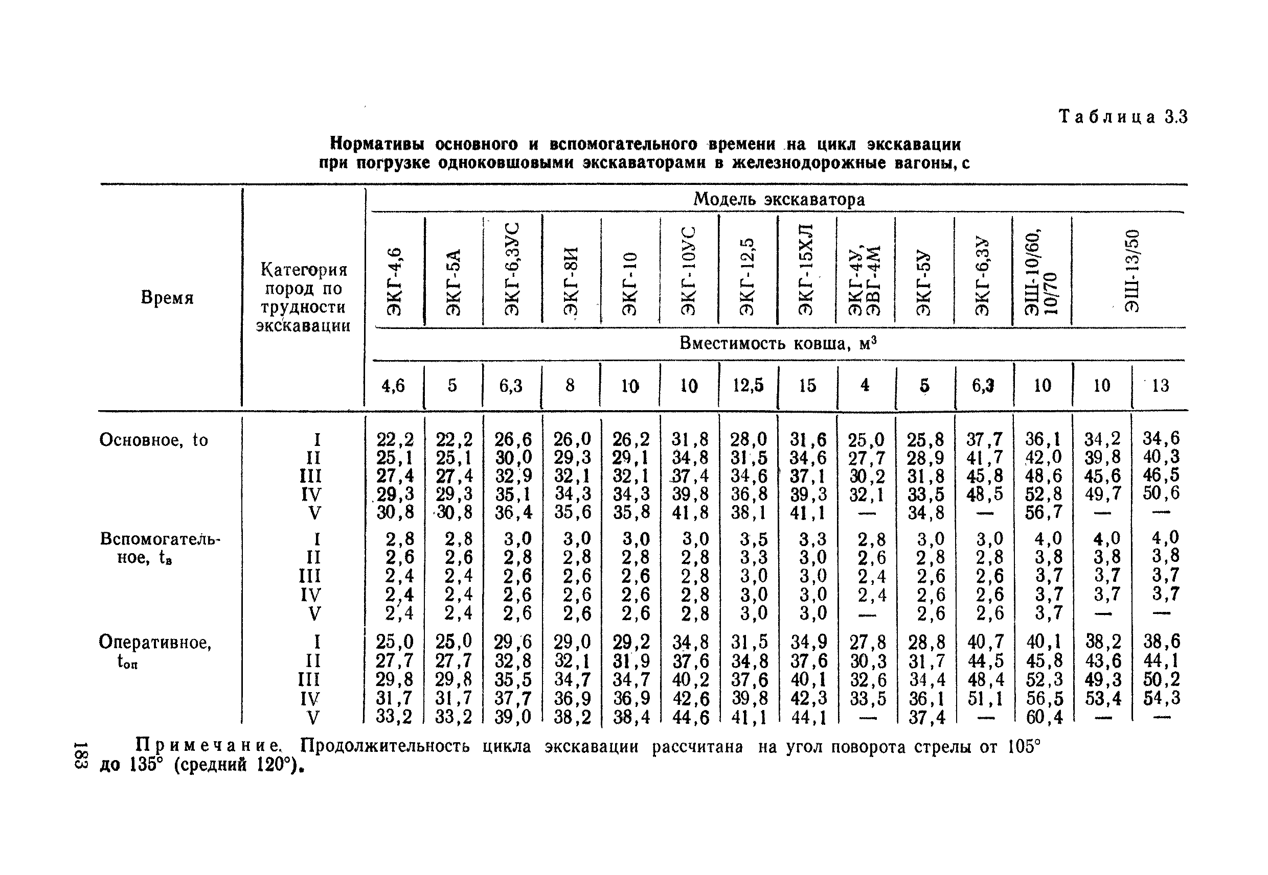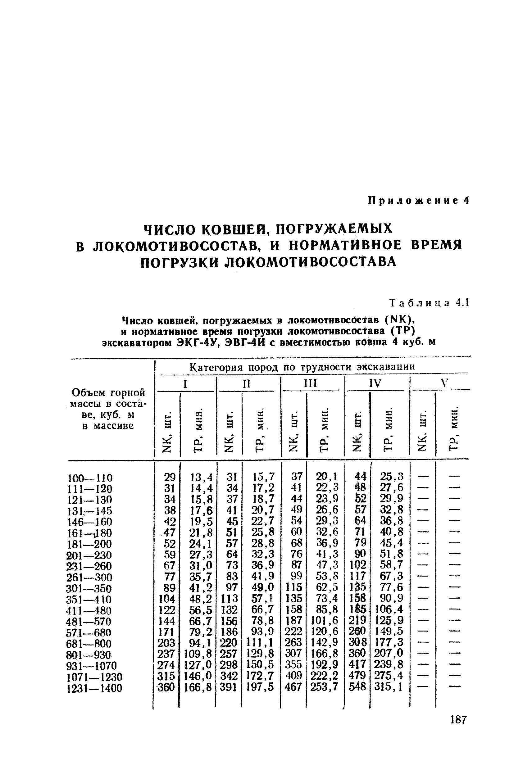| Оглавление: | Общая часть Нормативная часть 1. Погрузка горной массы одноковшовыми экскаваторами типа прямая лопата и драглайн в железнодорожные вагоны (думпкары) 1.1. Организация работы 1.2. Содержание работы 1.3. Численный и профессиональный состав экипажа экскаватора 1.4. Факторы, влияющие на величину нормы выработки при погрузке горной массы Нормы выработки на погрузку горной нассы в железнодорожные вагоны, таблицы 1 - 14 2. Транспортирование горной массы локомотивосоставами 2.1. Организация работы 2.2. Содержание работы 2.3. Состав бригады 2.4. Факторы, влияющие на величину нормы выработки Нормы выработки на транспортирование горной массы локомотивосоставами при погрузке экскаваторами, таблицы 15 - 28 3. Поправочные коэффициенты к нормам выработки на погрузку и транспортирование горной массы Приложение 1. Методика расчета норм выработки Приложение 2. Технические и расчетные данные для расчета норм выработки Приложение 3. Нормативы времени на погрузку и транспортирование горной массы Приложение 4. Число ковшей, погружаемых в локомотивосостав, и нормативное время погрузки локомотивосостава Приложение 5. Допустимый объем горной массы в массиве и количество думпкаров в одном составе Приложение 6. Определение средневзвешенной нормы выработки Приложение 7. Определение нормы выработки при изменении объемного веса горных пород |