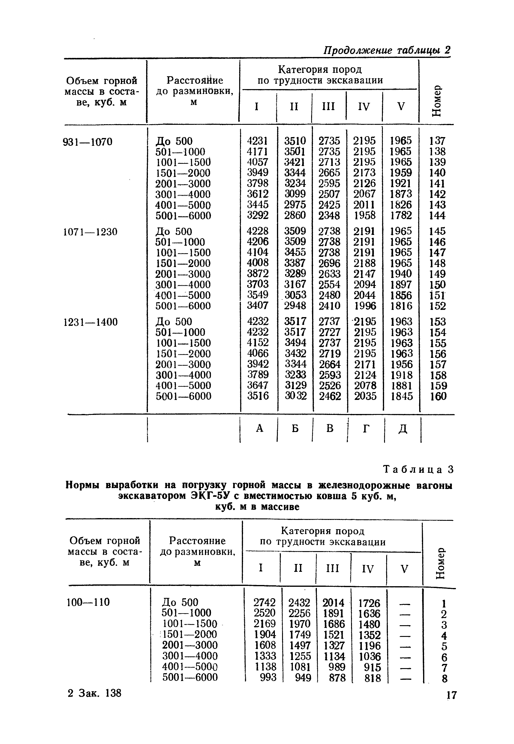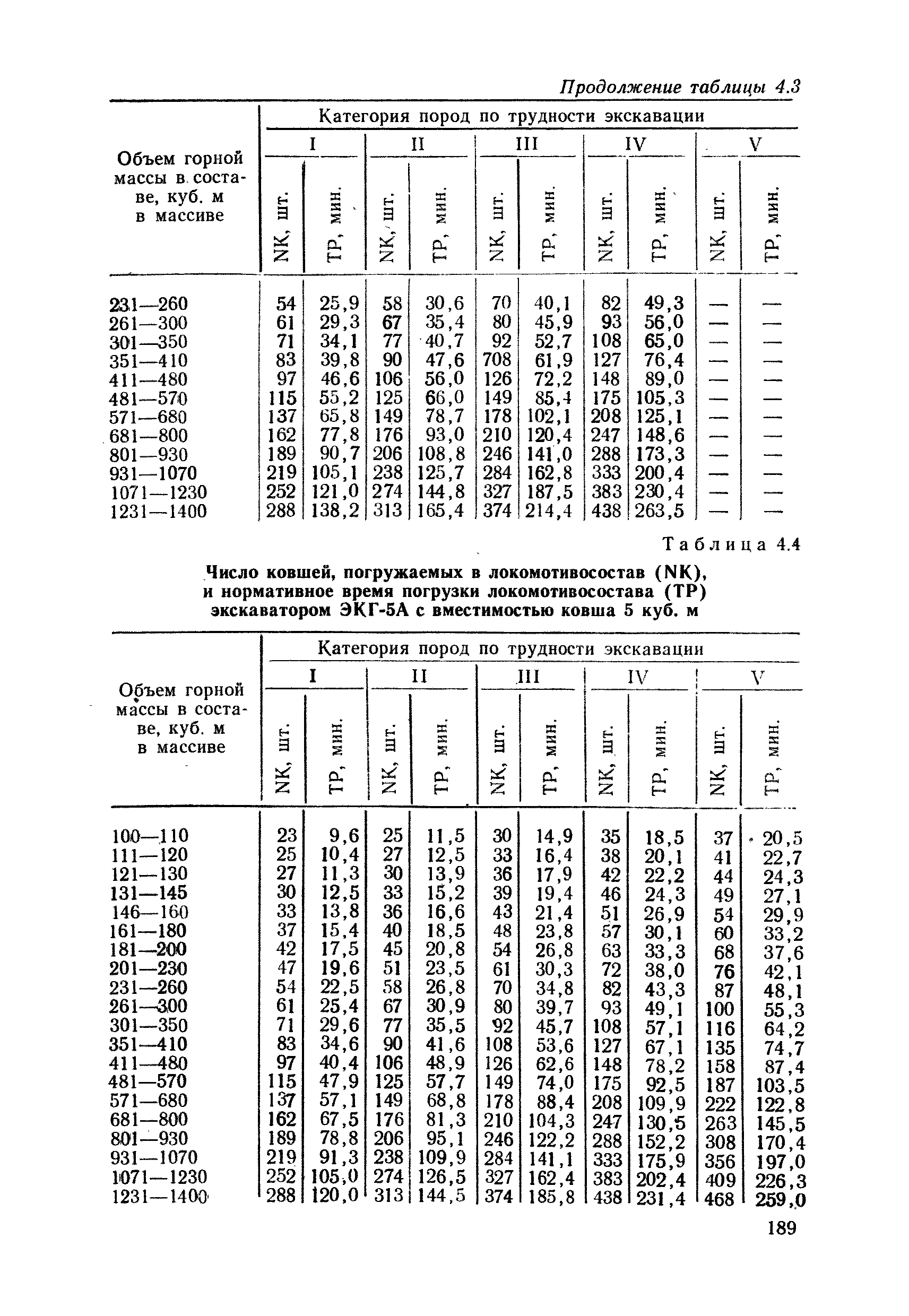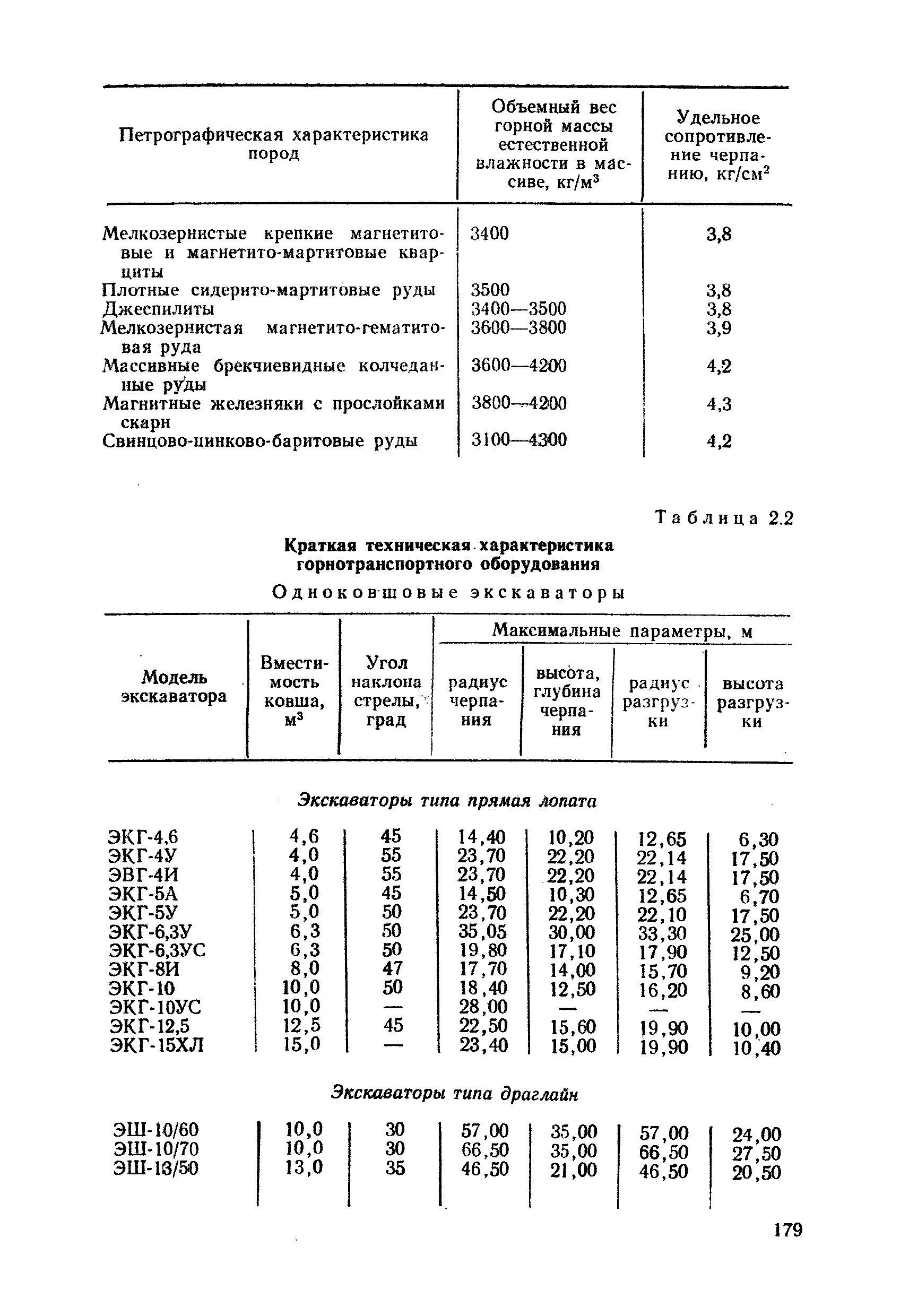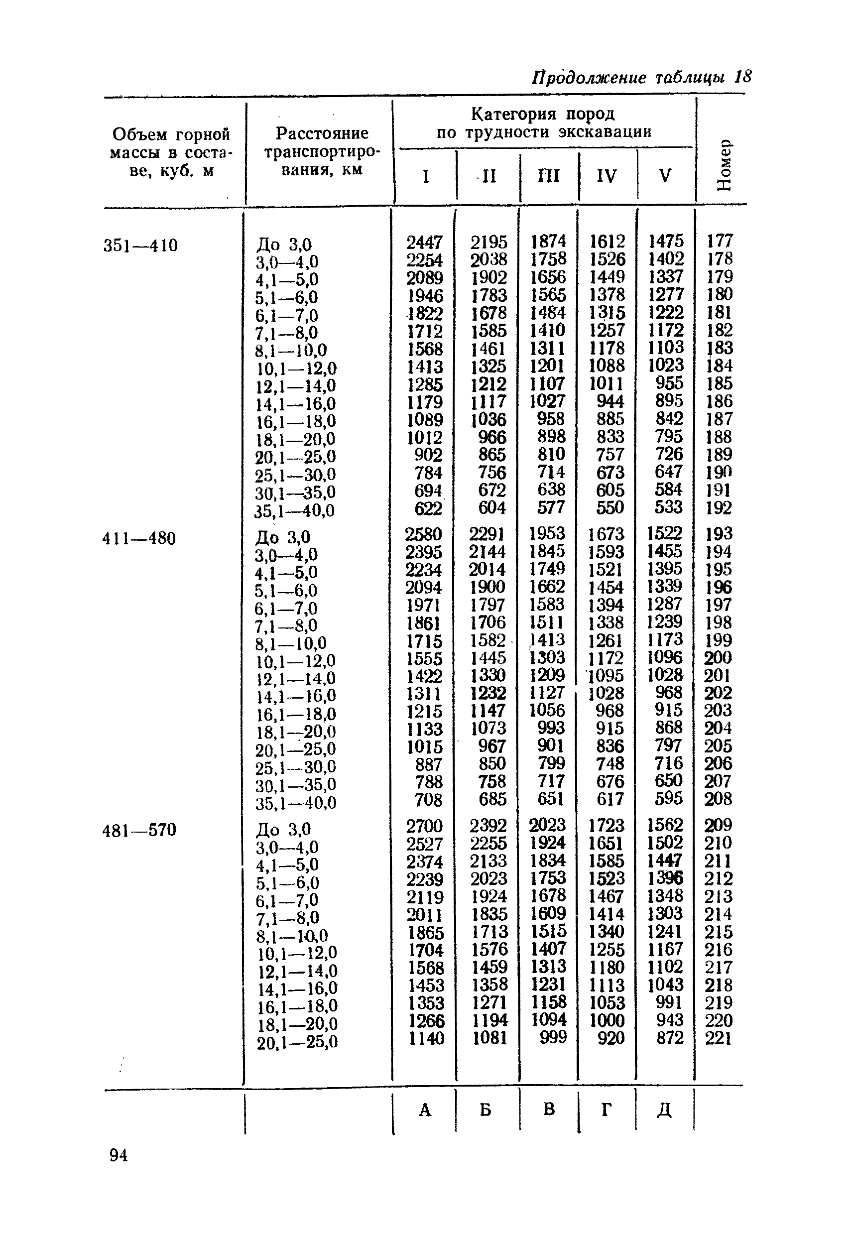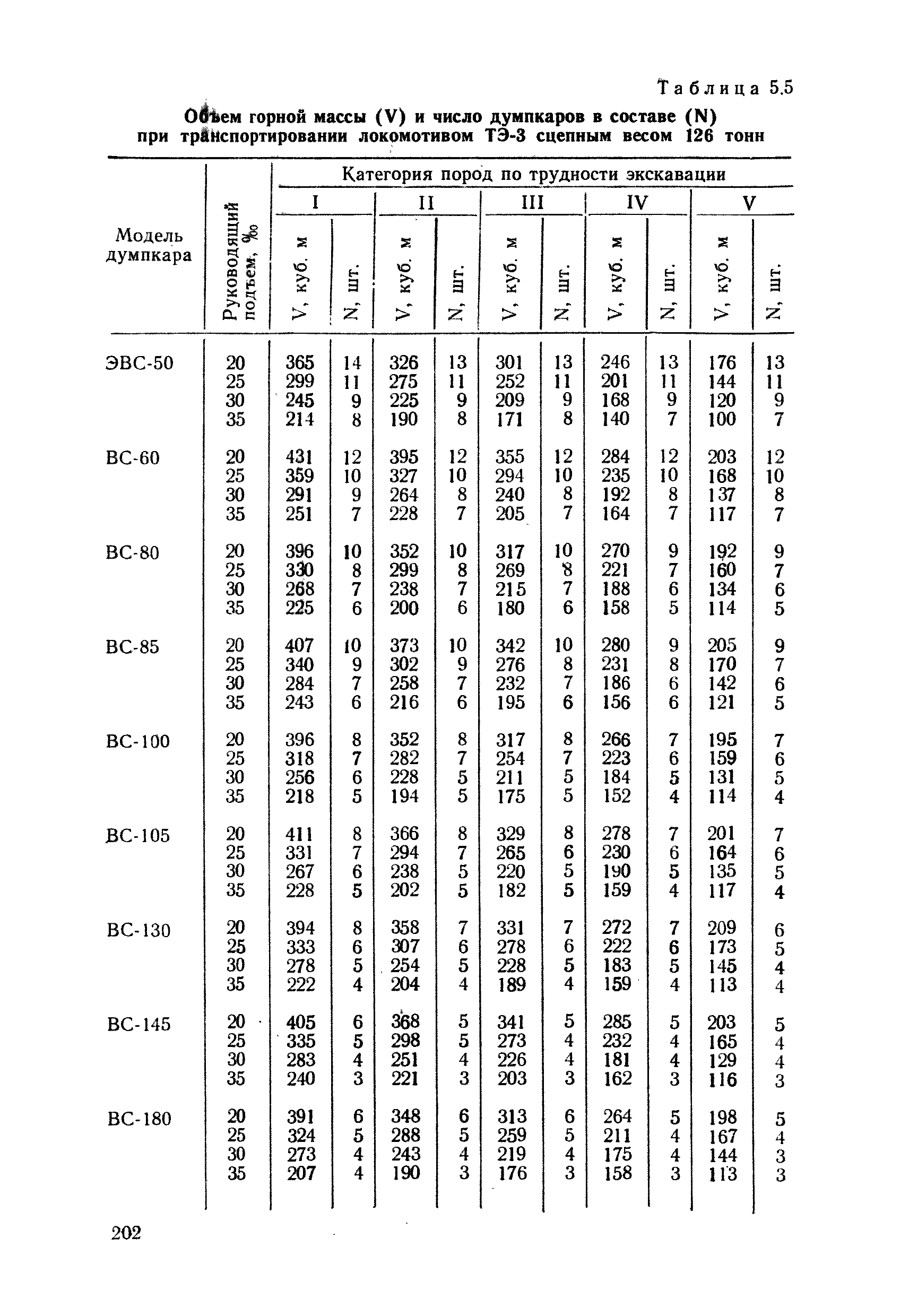 | Оглавление: | Общая часть Нормативная часть 1. Погрузка горной массы одноковшовыми экскаваторами типа прямая лопата и драглайн в железнодорожные вагоны (думпкары) 1.1. Организация работы 1.2. Содержание работы 1.3. Численный и профессиональный состав экипажа экскаватора 1.4. Факторы, влияющие на величину нормы выработки при погрузке горной массы Нормы выработки на погрузку горной нассы в железнодорожные вагоны, таблицы 1 - 14 2. Транспортирование горной массы локомотивосоставами 2.1. Организация работы 2.2. Содержание работы 2.3. Состав бригады 2.4. Факторы, влияющие на величину нормы выработки Нормы выработки на транспортирование горной массы локомотивосоставами при погрузке экскаваторами, таблицы 15 - 28 3. Поправочные коэффициенты к нормам выработки на погрузку и транспортирование горной массы Приложение 1. Методика расчета норм выработки Приложение 2. Технические и расчетные данные для расчета норм выработки Приложение 3. Нормативы времени на погрузку и транспортирование горной массы Приложение 4. Число ковшей, погружаемых в локомотивосостав, и нормативное время погрузки локомотивосостава Приложение 5. Допустимый объем горной массы в массиве и количество думпкаров в одном составе Приложение 6. Определение средневзвешенной нормы выработки Приложение 7. Определение нормы выработки при изменении объемного веса горных пород |