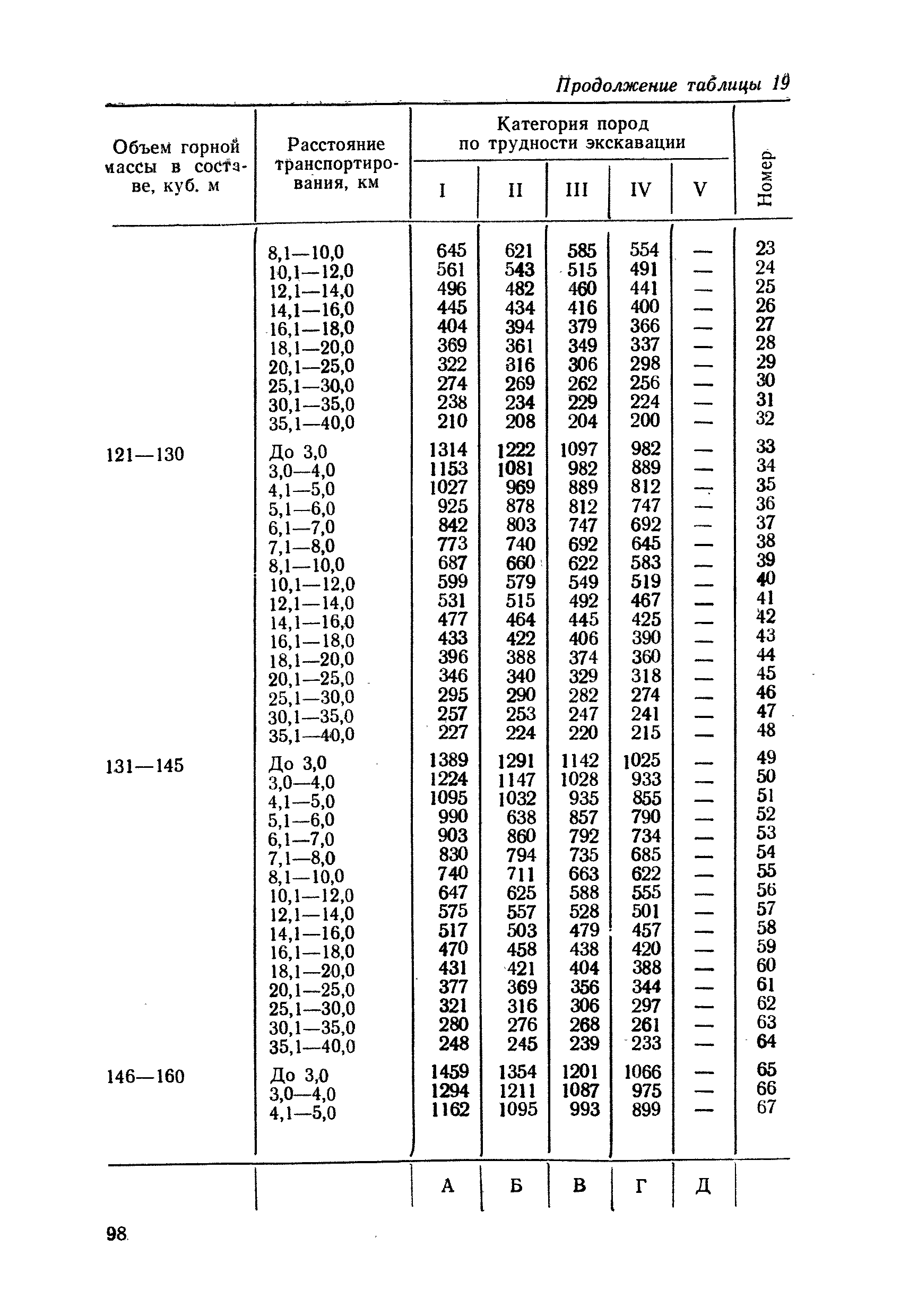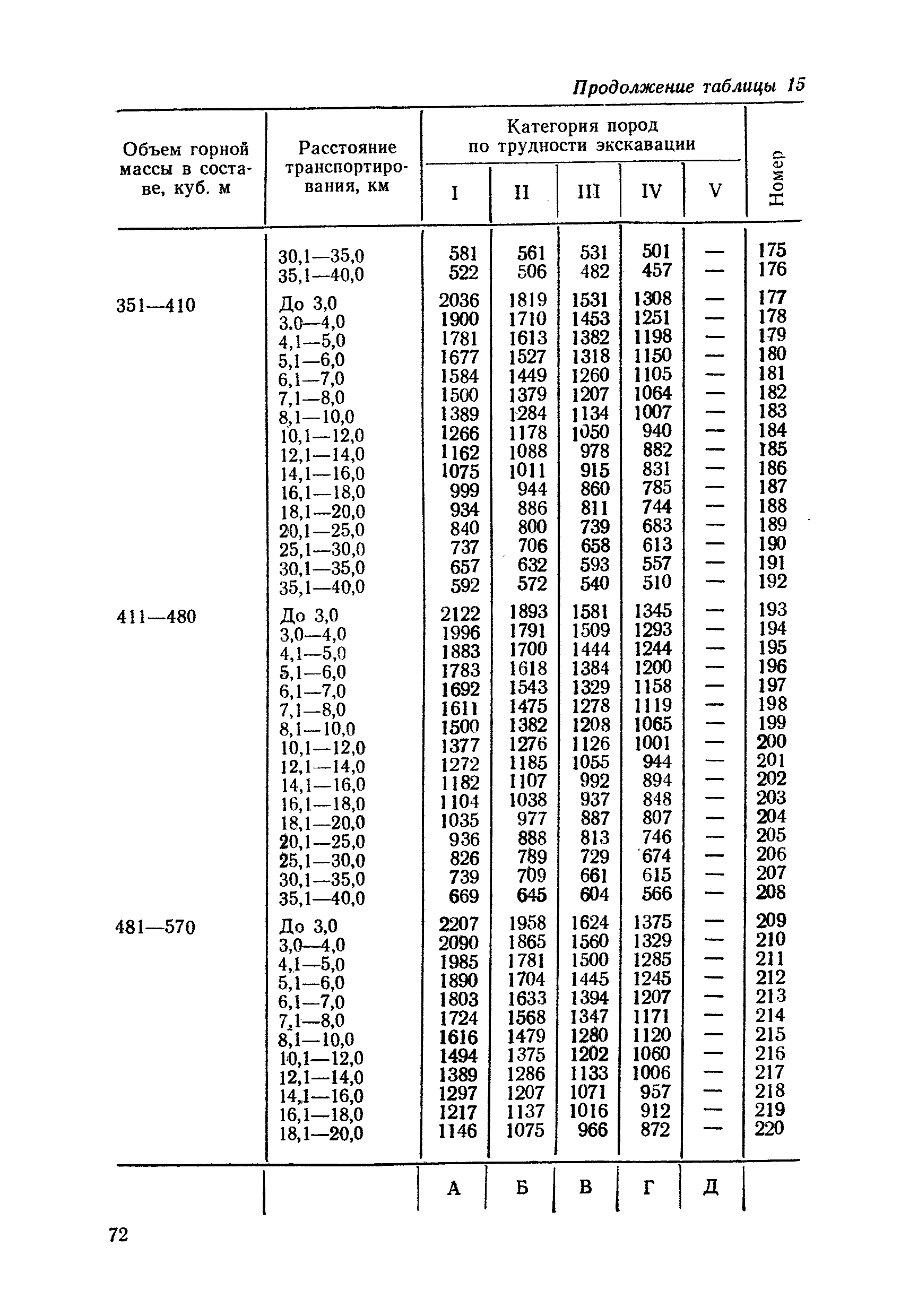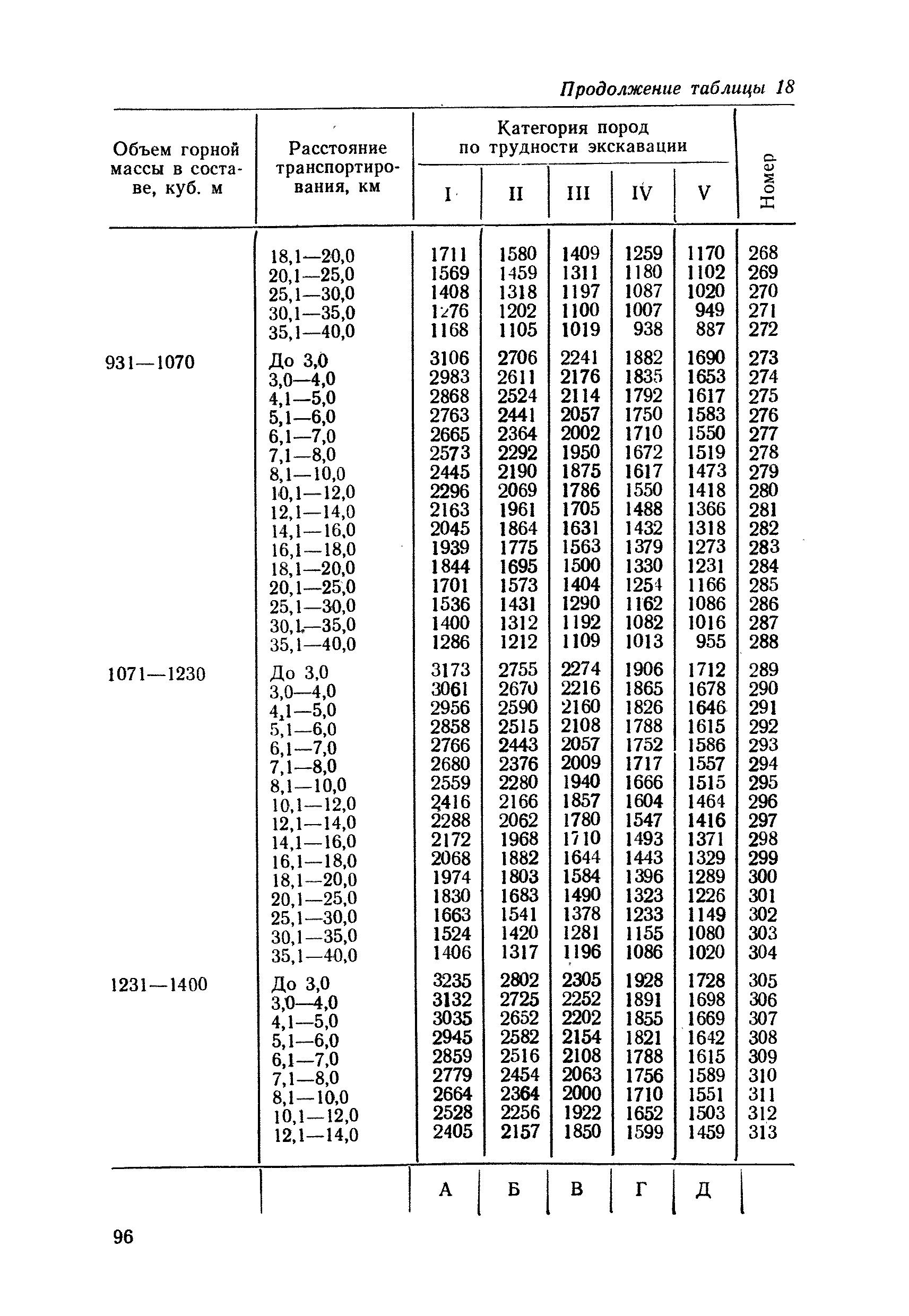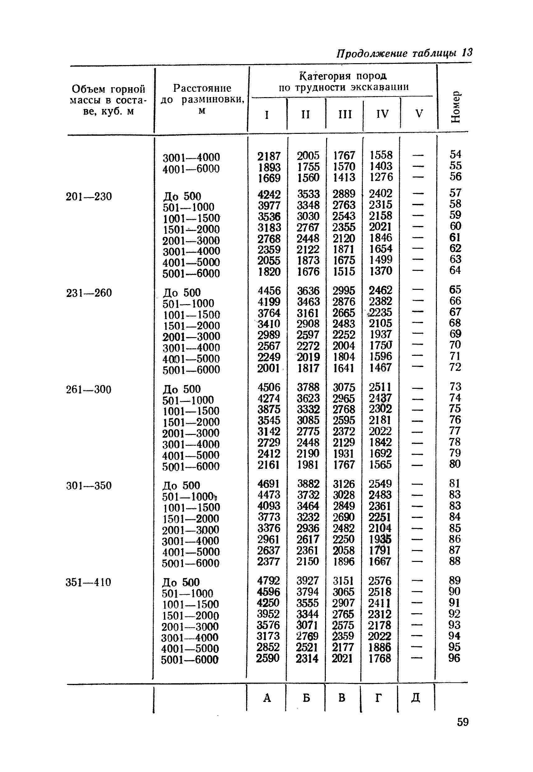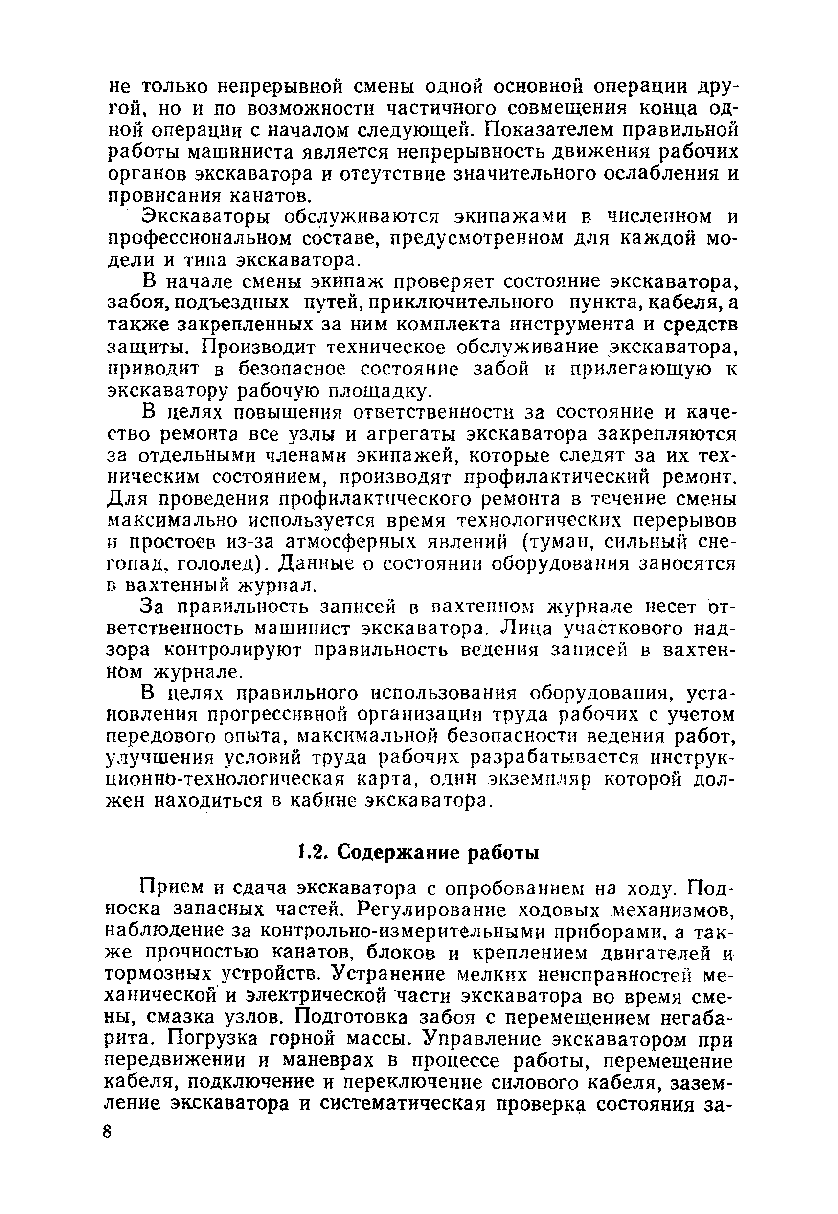 | Оглавление: | Общая часть Нормативная часть 1. Погрузка горной массы одноковшовыми экскаваторами типа прямая лопата и драглайн в железнодорожные вагоны (думпкары) 1.1. Организация работы 1.2. Содержание работы 1.3. Численный и профессиональный состав экипажа экскаватора 1.4. Факторы, влияющие на величину нормы выработки при погрузке горной массы Нормы выработки на погрузку горной нассы в железнодорожные вагоны, таблицы 1 - 14 2. Транспортирование горной массы локомотивосоставами 2.1. Организация работы 2.2. Содержание работы 2.3. Состав бригады 2.4. Факторы, влияющие на величину нормы выработки Нормы выработки на транспортирование горной массы локомотивосоставами при погрузке экскаваторами, таблицы 15 - 28 3. Поправочные коэффициенты к нормам выработки на погрузку и транспортирование горной массы Приложение 1. Методика расчета норм выработки Приложение 2. Технические и расчетные данные для расчета норм выработки Приложение 3. Нормативы времени на погрузку и транспортирование горной массы Приложение 4. Число ковшей, погружаемых в локомотивосостав, и нормативное время погрузки локомотивосостава Приложение 5. Допустимый объем горной массы в массиве и количество думпкаров в одном составе Приложение 6. Определение средневзвешенной нормы выработки Приложение 7. Определение нормы выработки при изменении объемного веса горных пород |