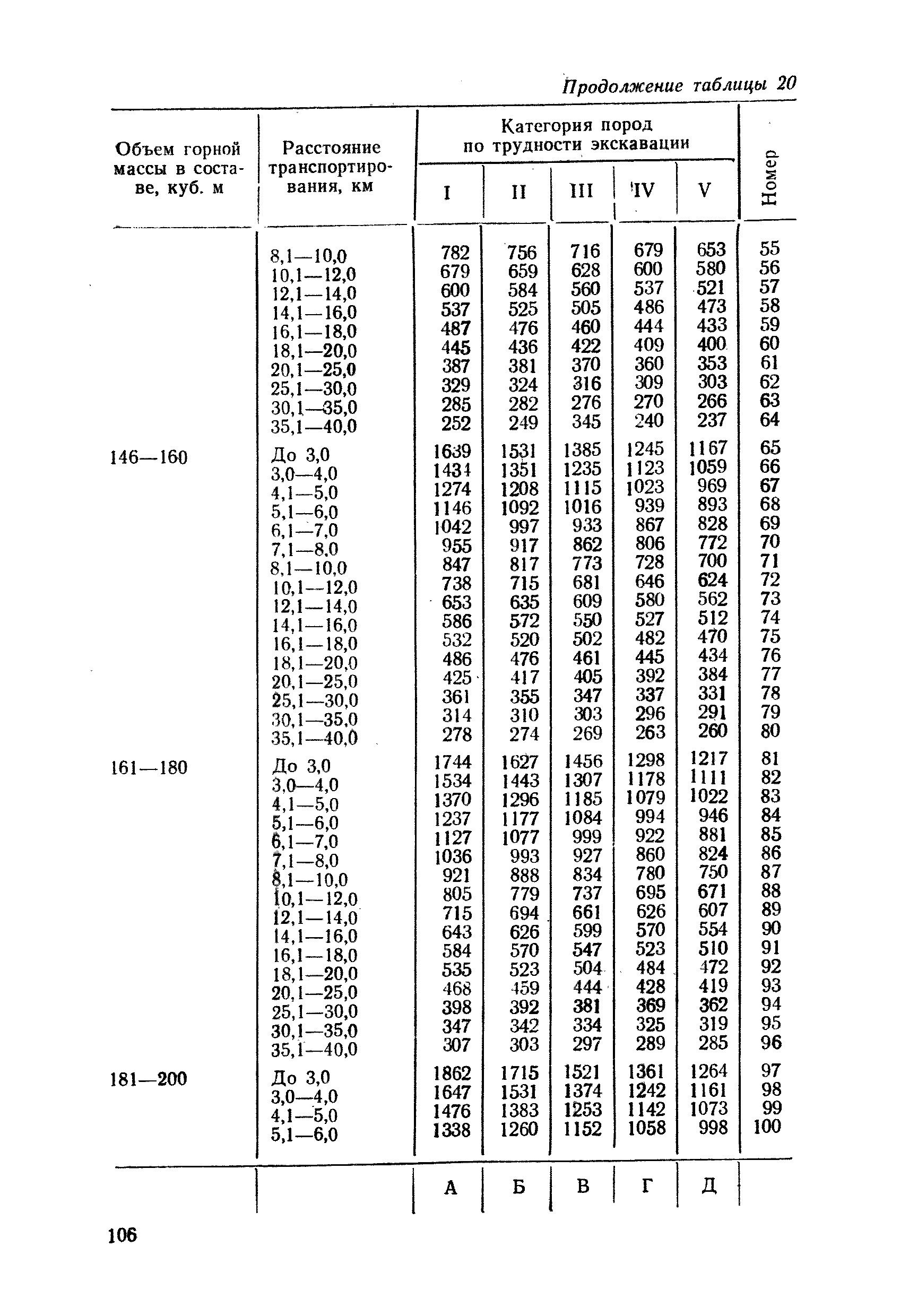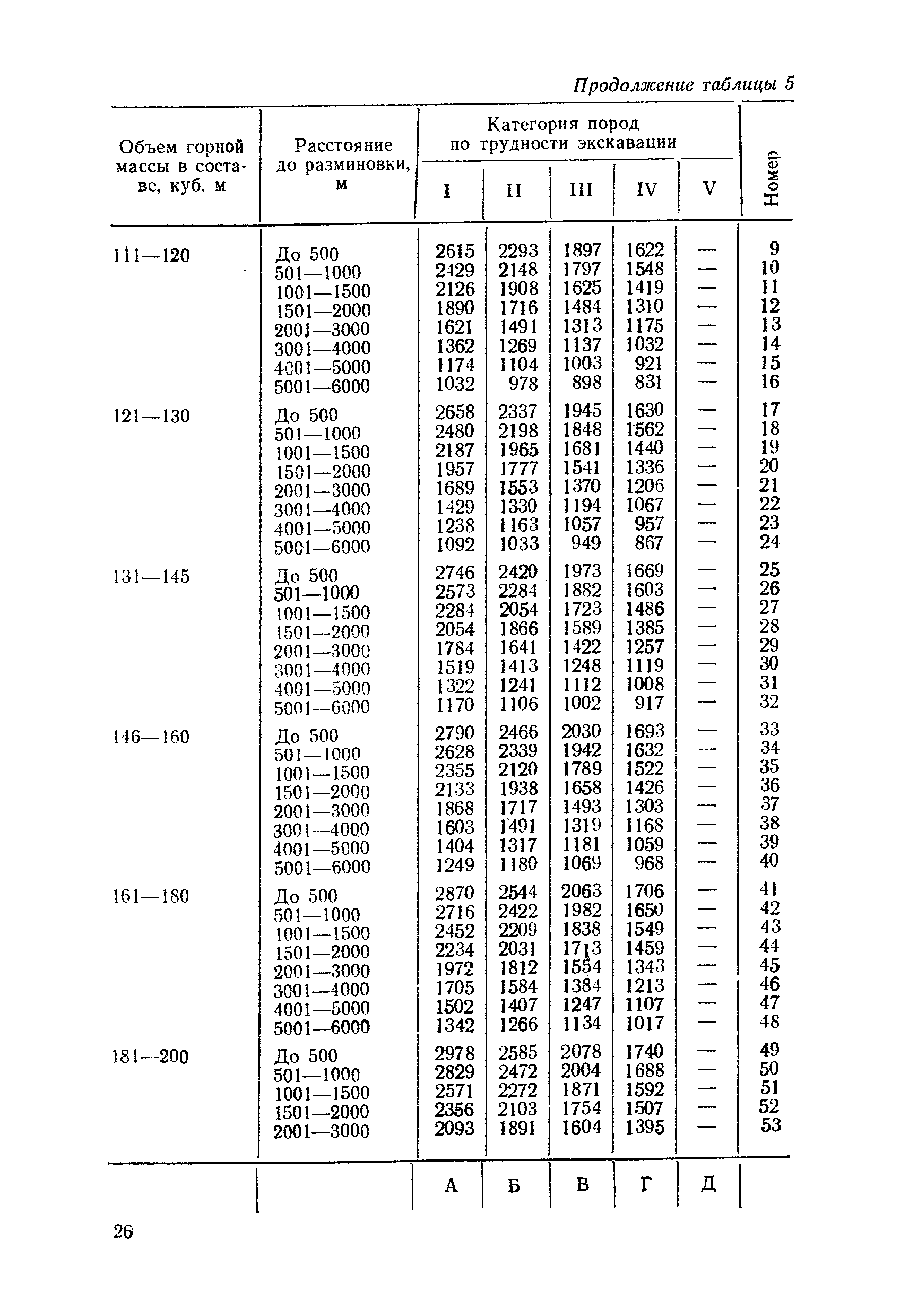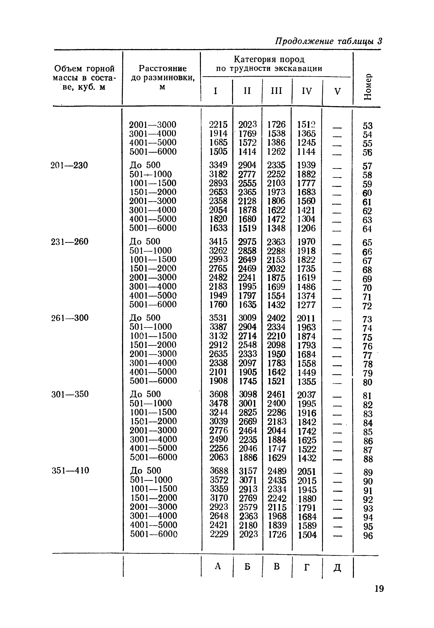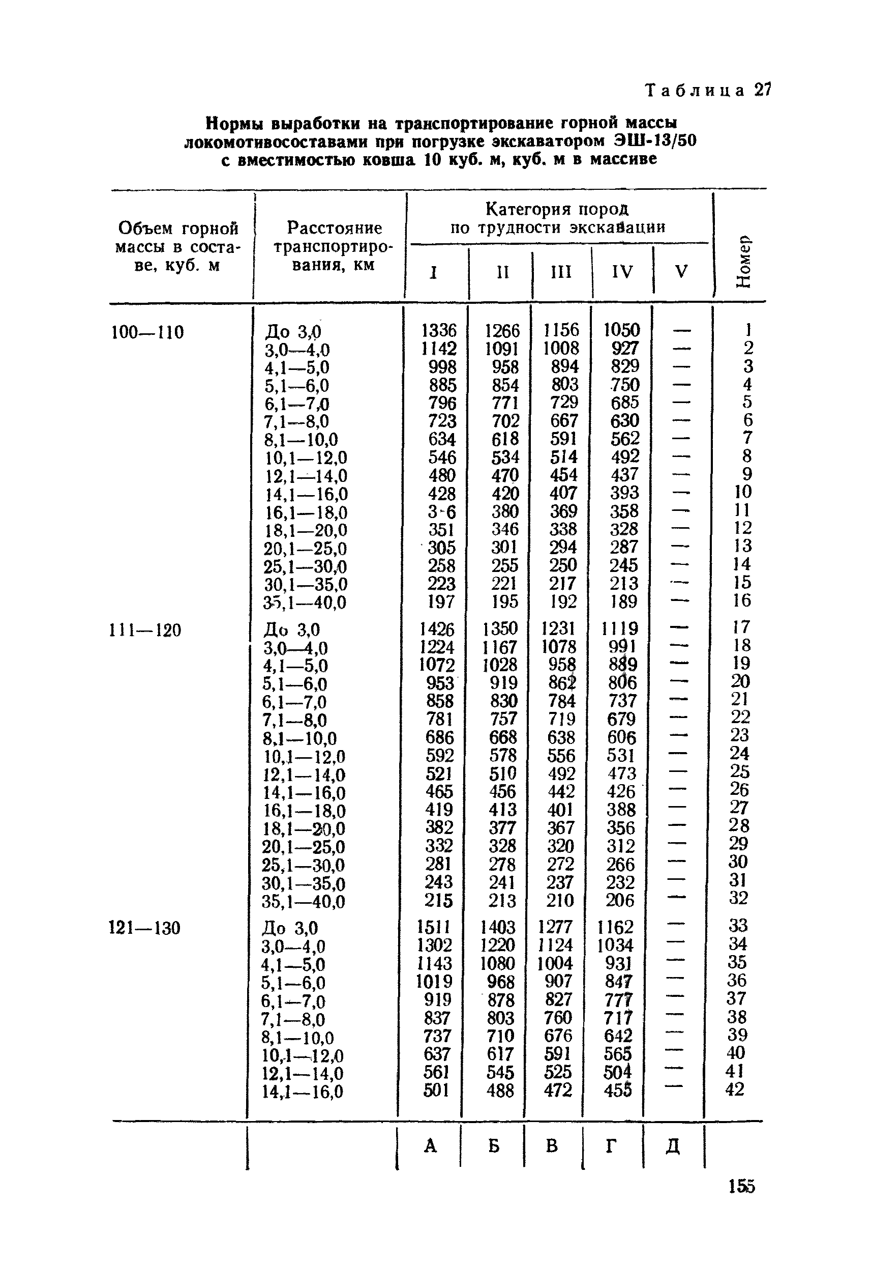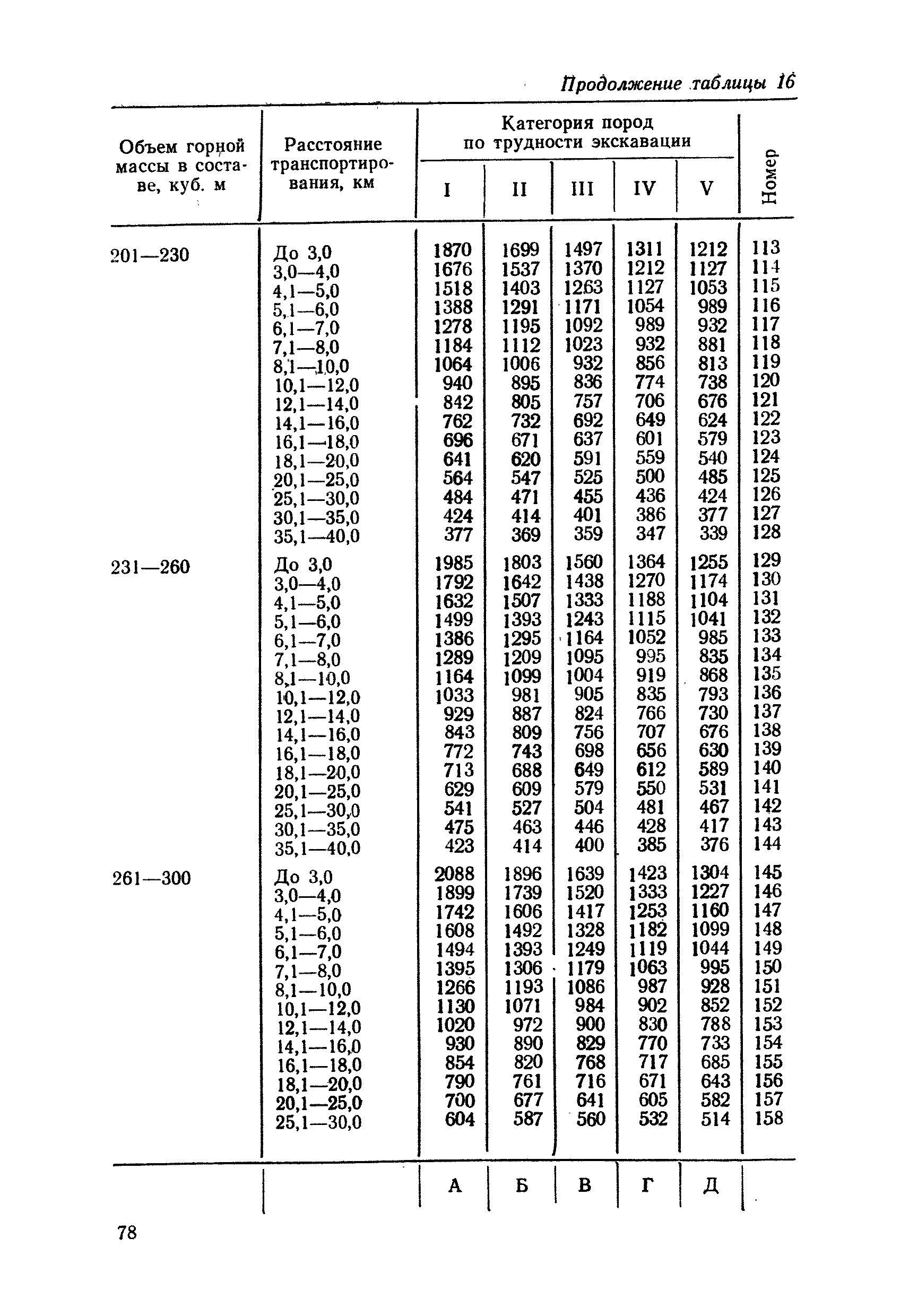 | Оглавление: | Общая часть Нормативная часть 1. Погрузка горной массы одноковшовыми экскаваторами типа прямая лопата и драглайн в железнодорожные вагоны (думпкары) 1.1. Организация работы 1.2. Содержание работы 1.3. Численный и профессиональный состав экипажа экскаватора 1.4. Факторы, влияющие на величину нормы выработки при погрузке горной массы Нормы выработки на погрузку горной нассы в железнодорожные вагоны, таблицы 1 - 14 2. Транспортирование горной массы локомотивосоставами 2.1. Организация работы 2.2. Содержание работы 2.3. Состав бригады 2.4. Факторы, влияющие на величину нормы выработки Нормы выработки на транспортирование горной массы локомотивосоставами при погрузке экскаваторами, таблицы 15 - 28 3. Поправочные коэффициенты к нормам выработки на погрузку и транспортирование горной массы Приложение 1. Методика расчета норм выработки Приложение 2. Технические и расчетные данные для расчета норм выработки Приложение 3. Нормативы времени на погрузку и транспортирование горной массы Приложение 4. Число ковшей, погружаемых в локомотивосостав, и нормативное время погрузки локомотивосостава Приложение 5. Допустимый объем горной массы в массиве и количество думпкаров в одном составе Приложение 6. Определение средневзвешенной нормы выработки Приложение 7. Определение нормы выработки при изменении объемного веса горных пород |