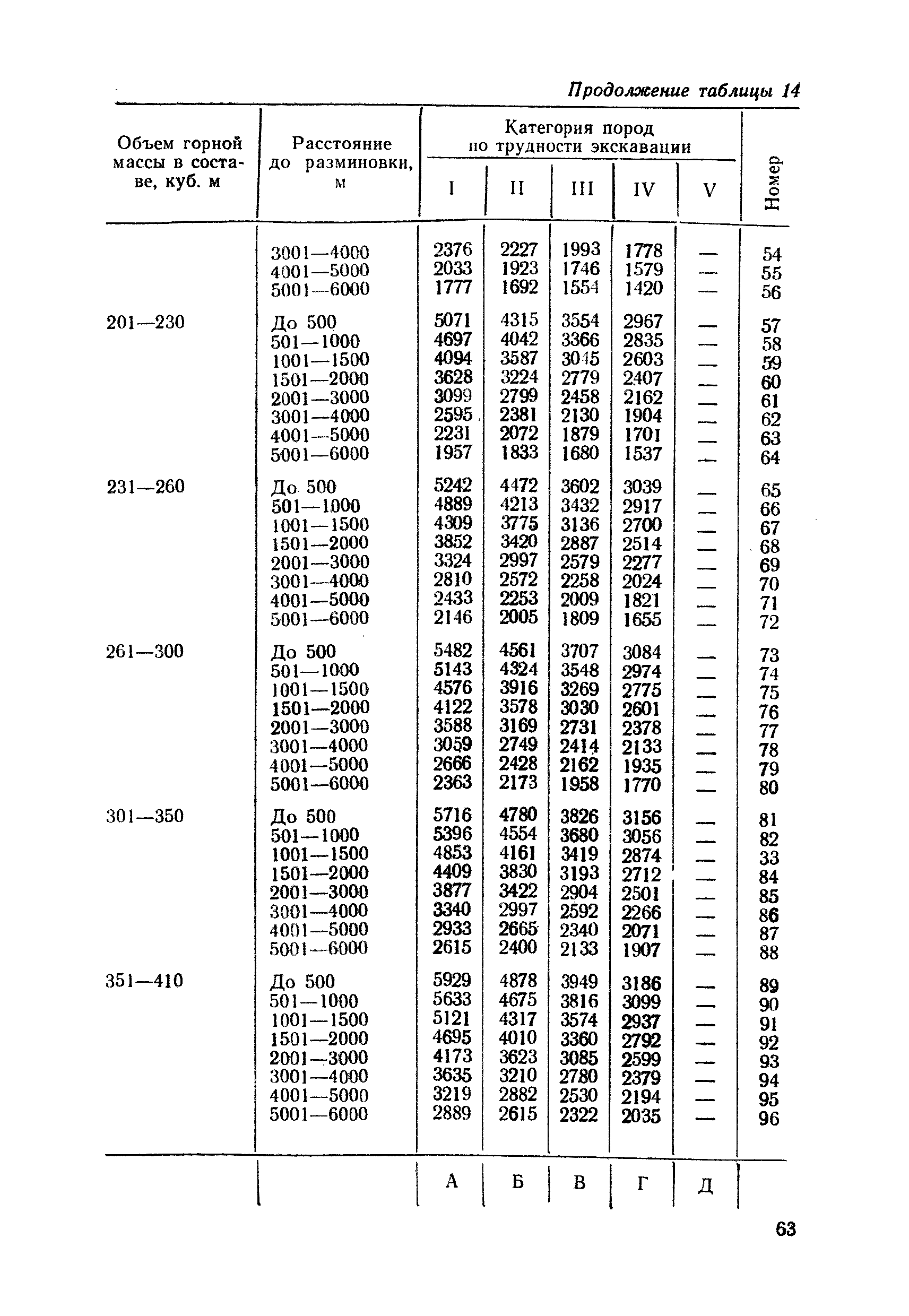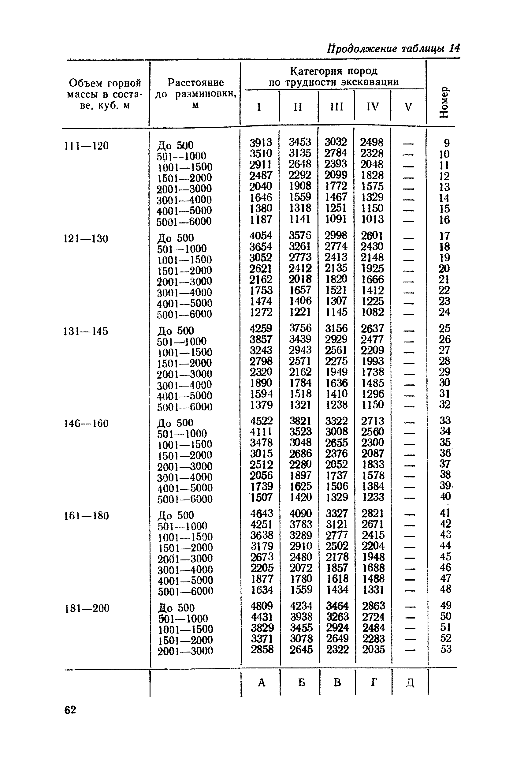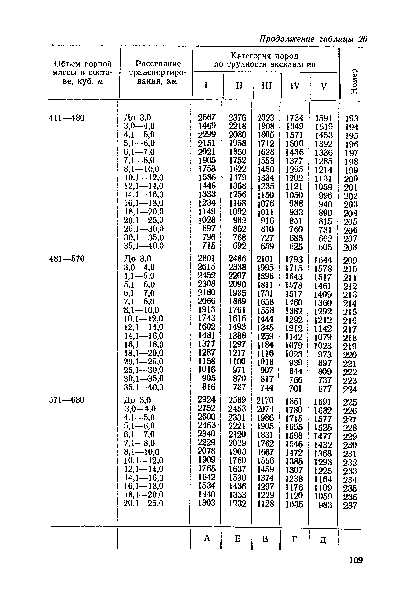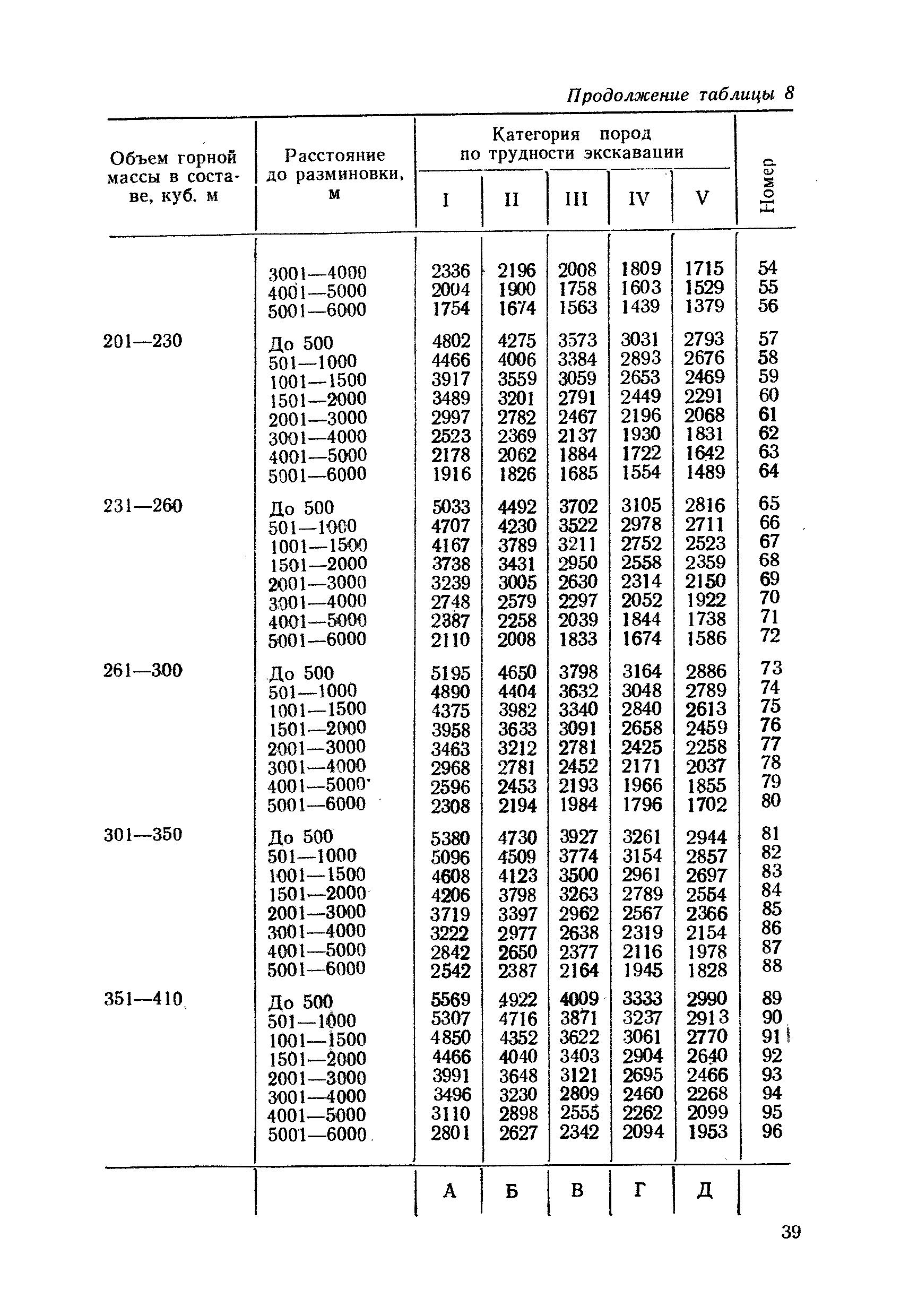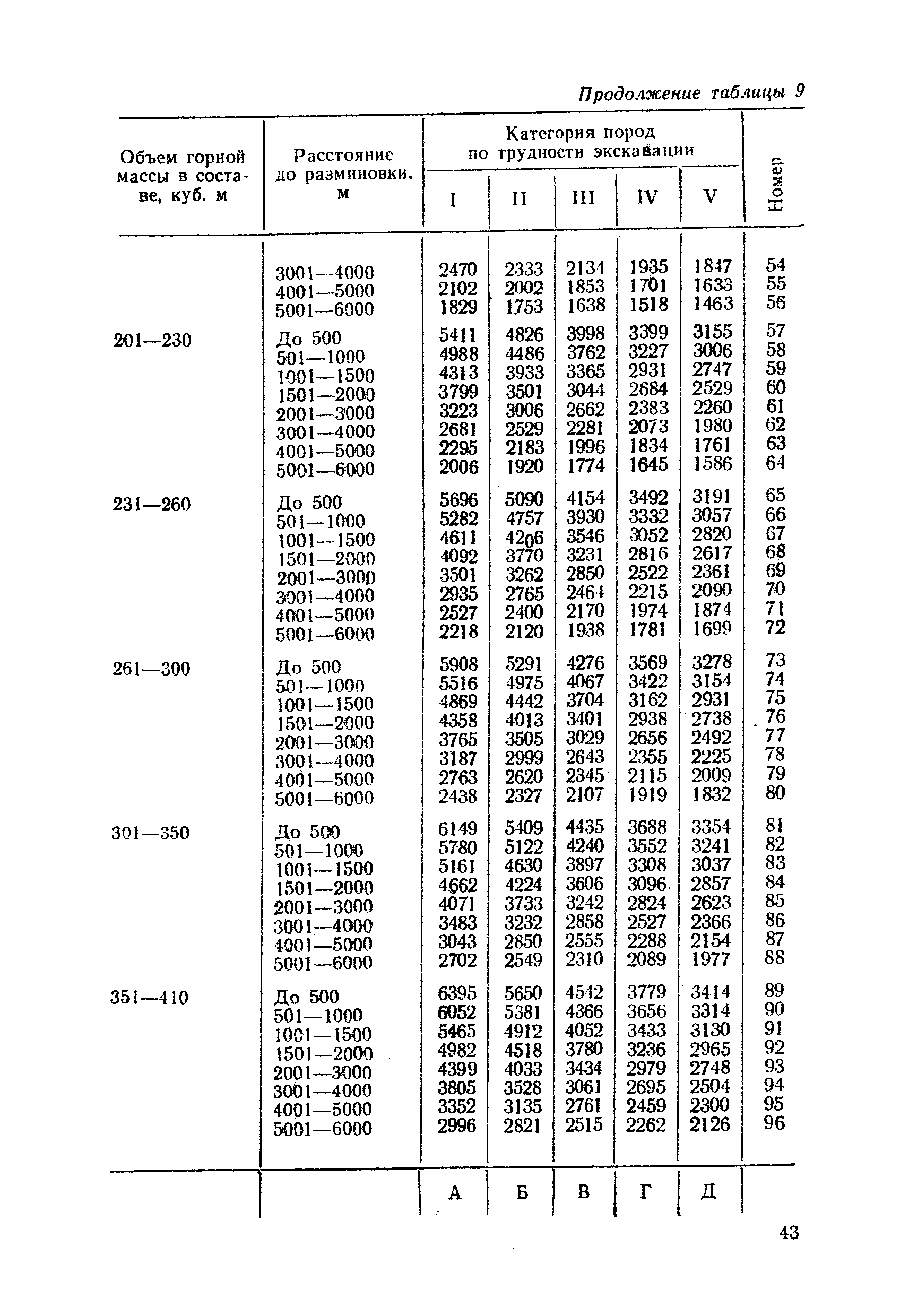 | Оглавление: | Общая часть Нормативная часть 1. Погрузка горной массы одноковшовыми экскаваторами типа прямая лопата и драглайн в железнодорожные вагоны (думпкары) 1.1. Организация работы 1.2. Содержание работы 1.3. Численный и профессиональный состав экипажа экскаватора 1.4. Факторы, влияющие на величину нормы выработки при погрузке горной массы Нормы выработки на погрузку горной нассы в железнодорожные вагоны, таблицы 1 - 14 2. Транспортирование горной массы локомотивосоставами 2.1. Организация работы 2.2. Содержание работы 2.3. Состав бригады 2.4. Факторы, влияющие на величину нормы выработки Нормы выработки на транспортирование горной массы локомотивосоставами при погрузке экскаваторами, таблицы 15 - 28 3. Поправочные коэффициенты к нормам выработки на погрузку и транспортирование горной массы Приложение 1. Методика расчета норм выработки Приложение 2. Технические и расчетные данные для расчета норм выработки Приложение 3. Нормативы времени на погрузку и транспортирование горной массы Приложение 4. Число ковшей, погружаемых в локомотивосостав, и нормативное время погрузки локомотивосостава Приложение 5. Допустимый объем горной массы в массиве и количество думпкаров в одном составе Приложение 6. Определение средневзвешенной нормы выработки Приложение 7. Определение нормы выработки при изменении объемного веса горных пород |
