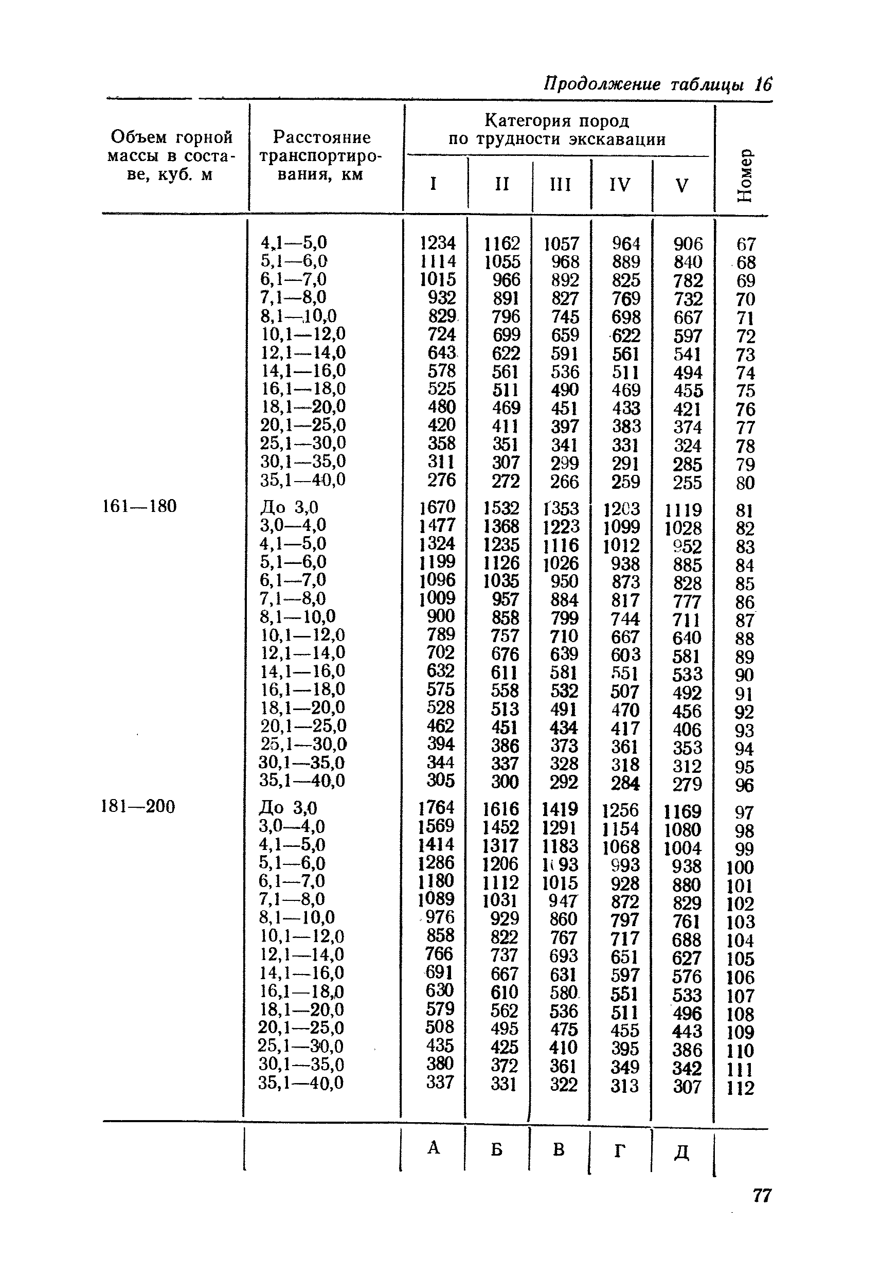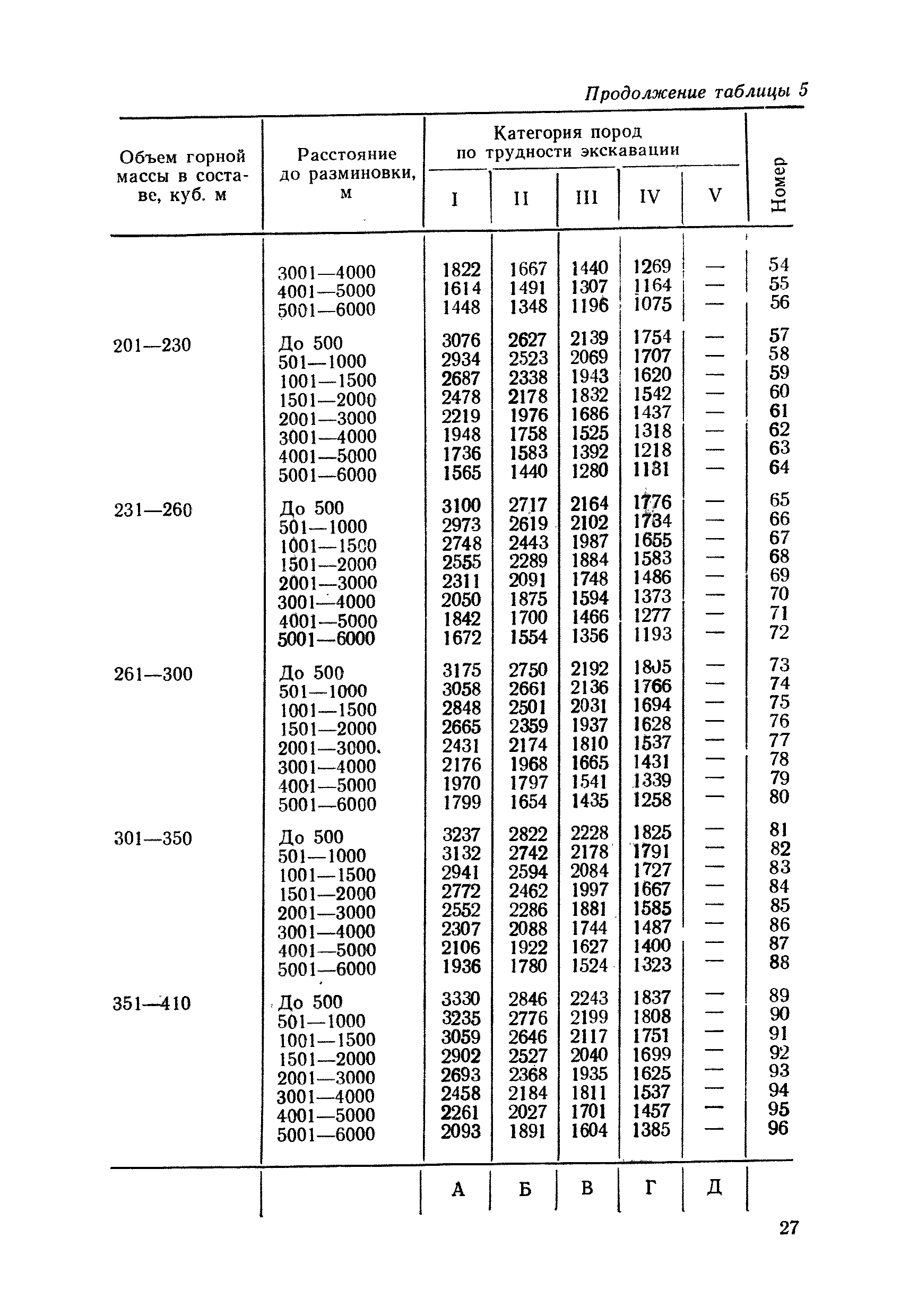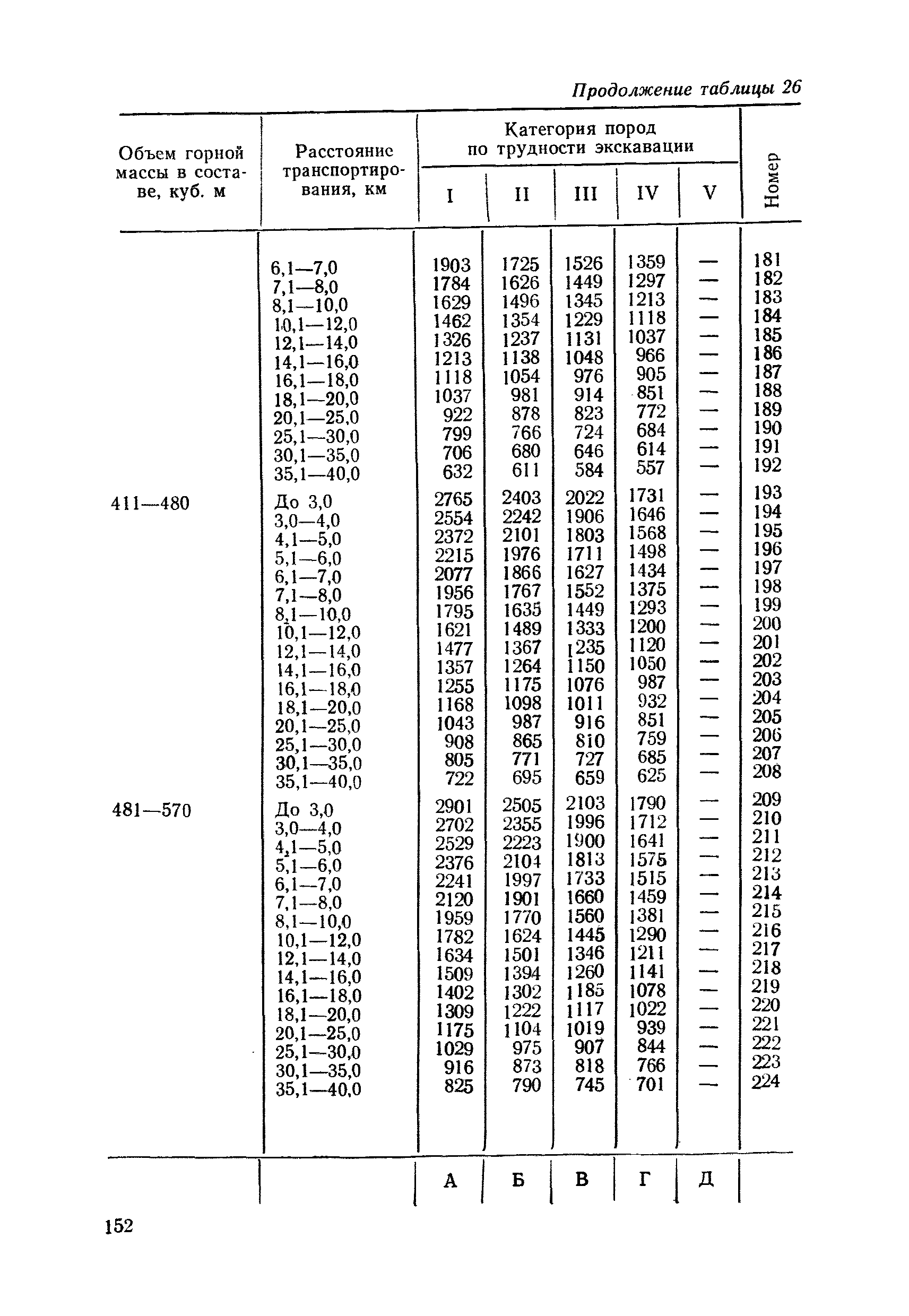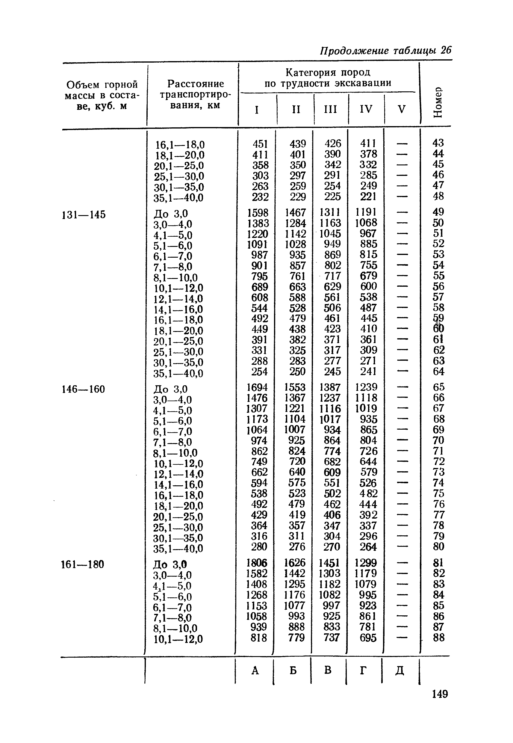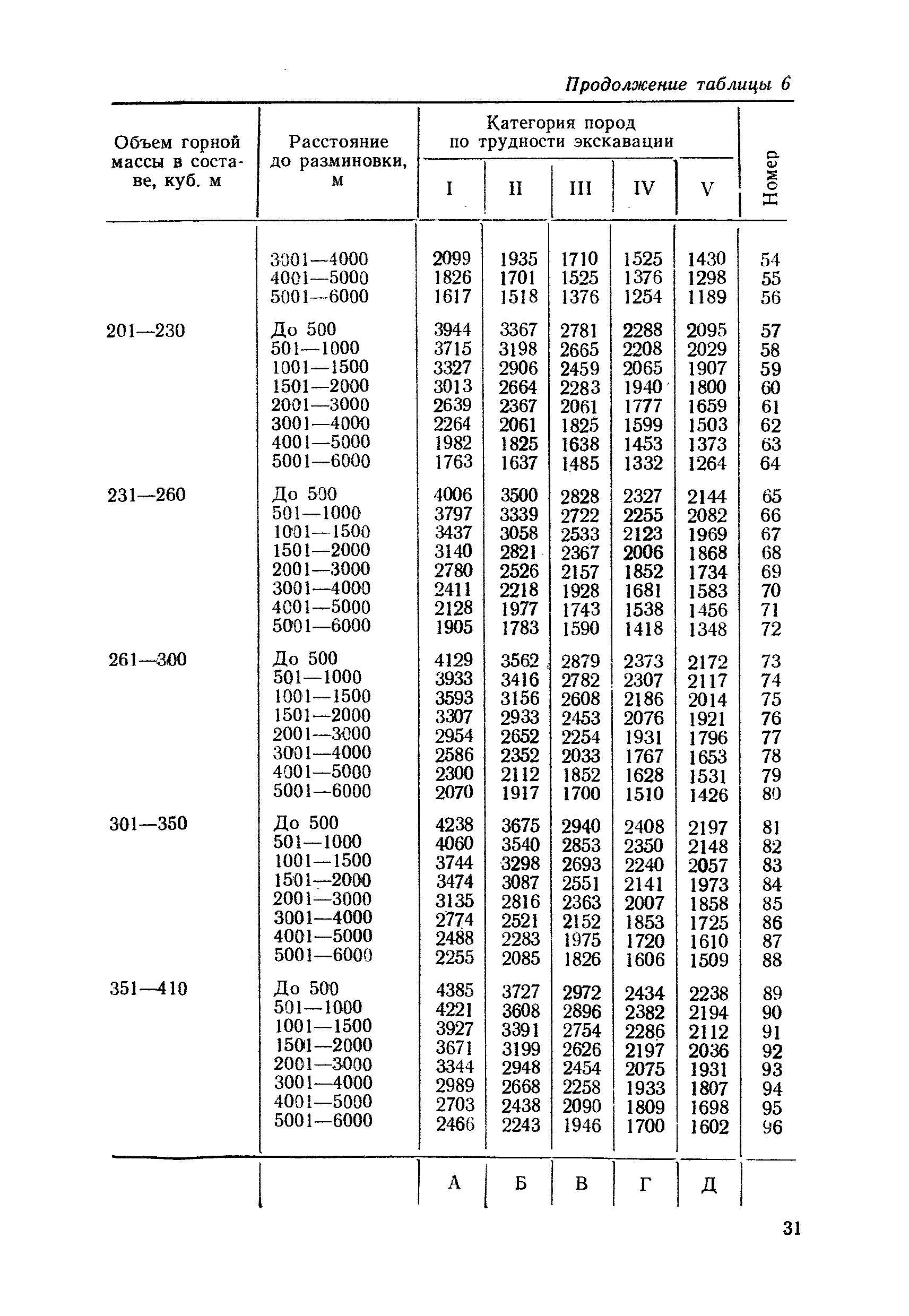 | Оглавление: | Общая часть Нормативная часть 1. Погрузка горной массы одноковшовыми экскаваторами типа прямая лопата и драглайн в железнодорожные вагоны (думпкары) 1.1. Организация работы 1.2. Содержание работы 1.3. Численный и профессиональный состав экипажа экскаватора 1.4. Факторы, влияющие на величину нормы выработки при погрузке горной массы Нормы выработки на погрузку горной нассы в железнодорожные вагоны, таблицы 1 - 14 2. Транспортирование горной массы локомотивосоставами 2.1. Организация работы 2.2. Содержание работы 2.3. Состав бригады 2.4. Факторы, влияющие на величину нормы выработки Нормы выработки на транспортирование горной массы локомотивосоставами при погрузке экскаваторами, таблицы 15 - 28 3. Поправочные коэффициенты к нормам выработки на погрузку и транспортирование горной массы Приложение 1. Методика расчета норм выработки Приложение 2. Технические и расчетные данные для расчета норм выработки Приложение 3. Нормативы времени на погрузку и транспортирование горной массы Приложение 4. Число ковшей, погружаемых в локомотивосостав, и нормативное время погрузки локомотивосостава Приложение 5. Допустимый объем горной массы в массиве и количество думпкаров в одном составе Приложение 6. Определение средневзвешенной нормы выработки Приложение 7. Определение нормы выработки при изменении объемного веса горных пород |