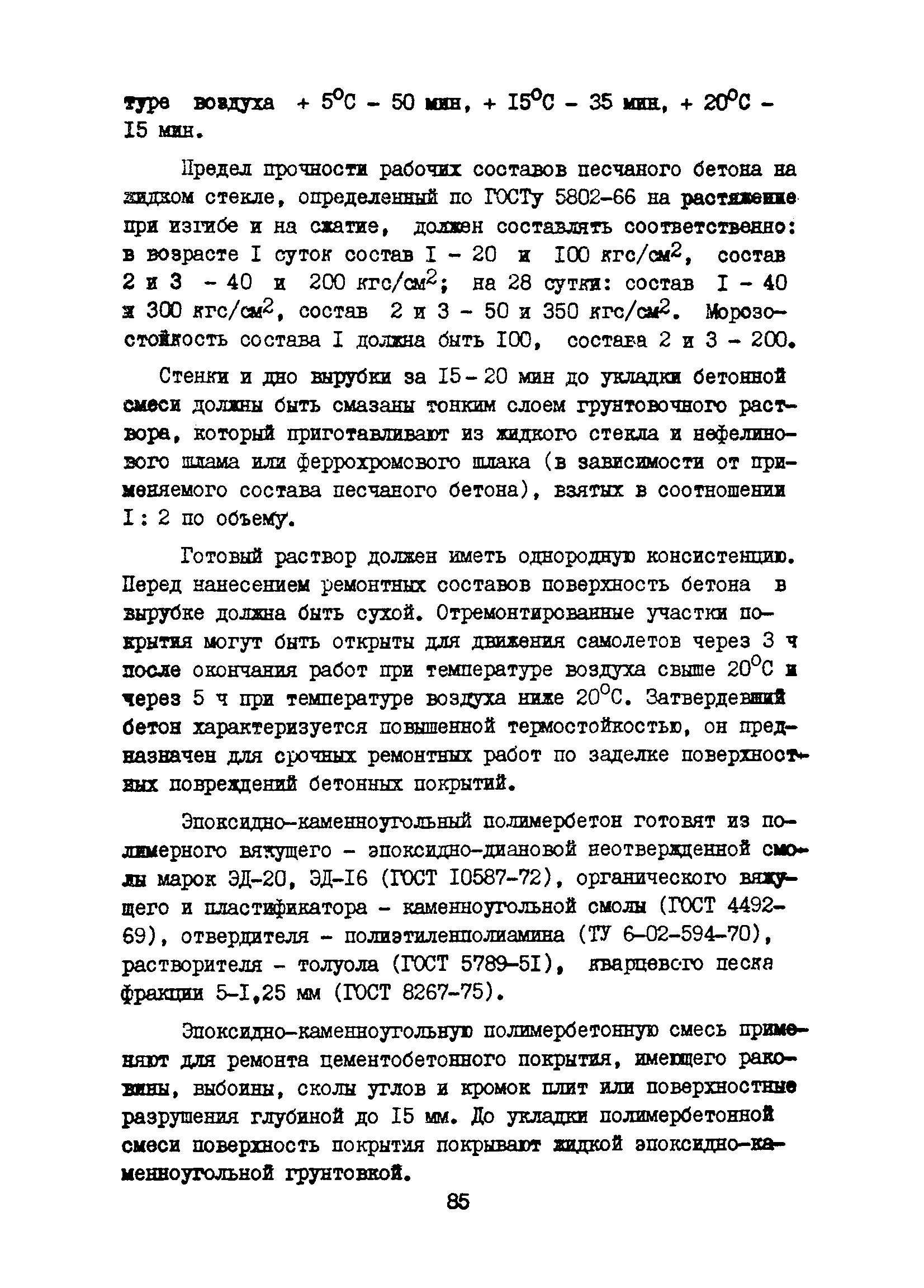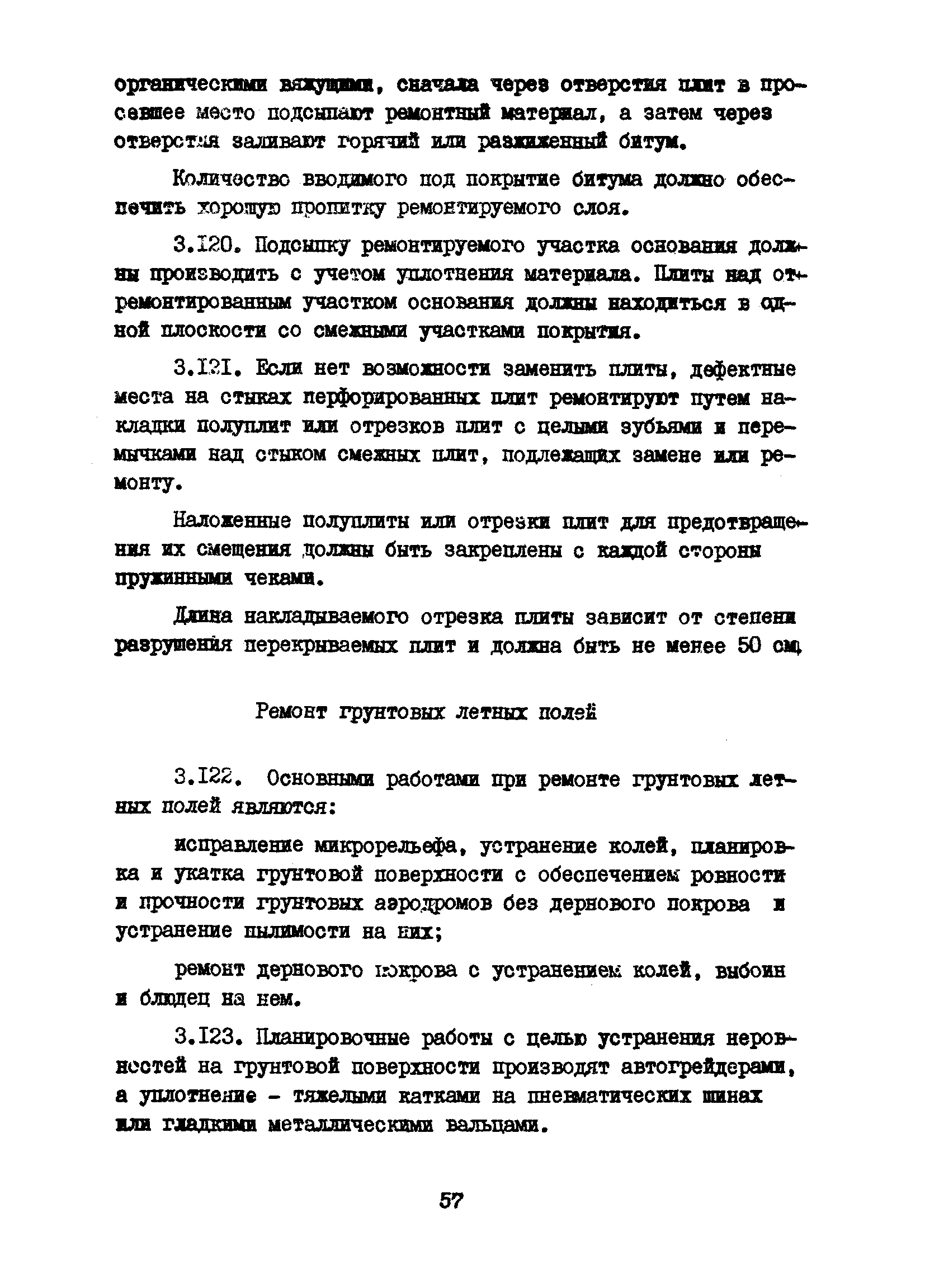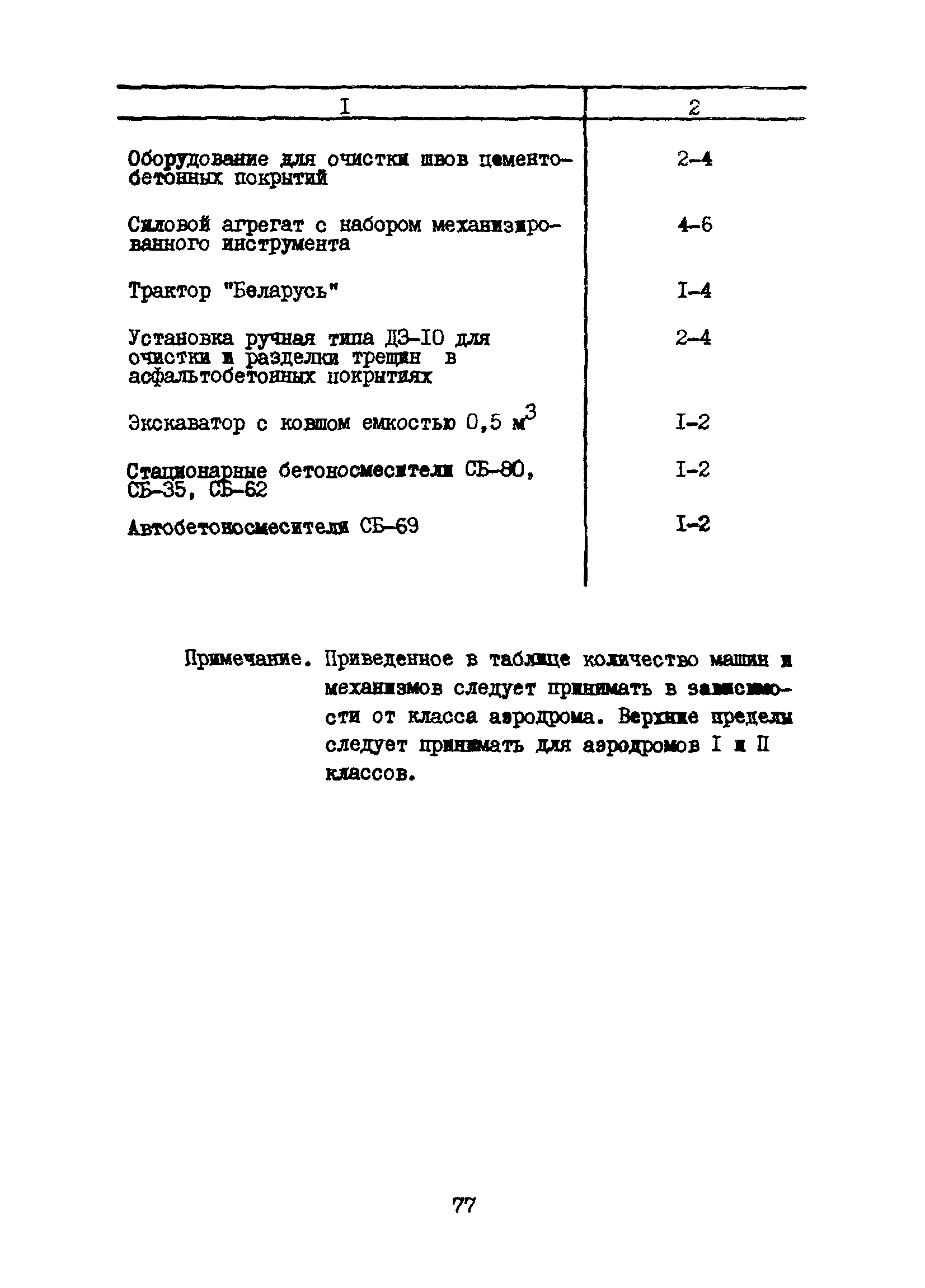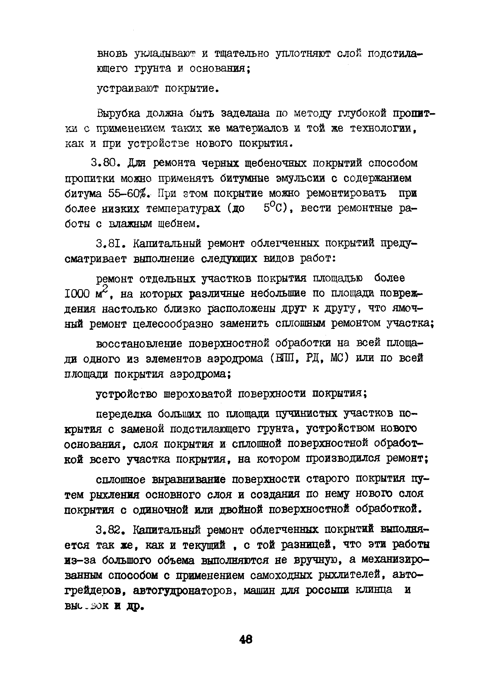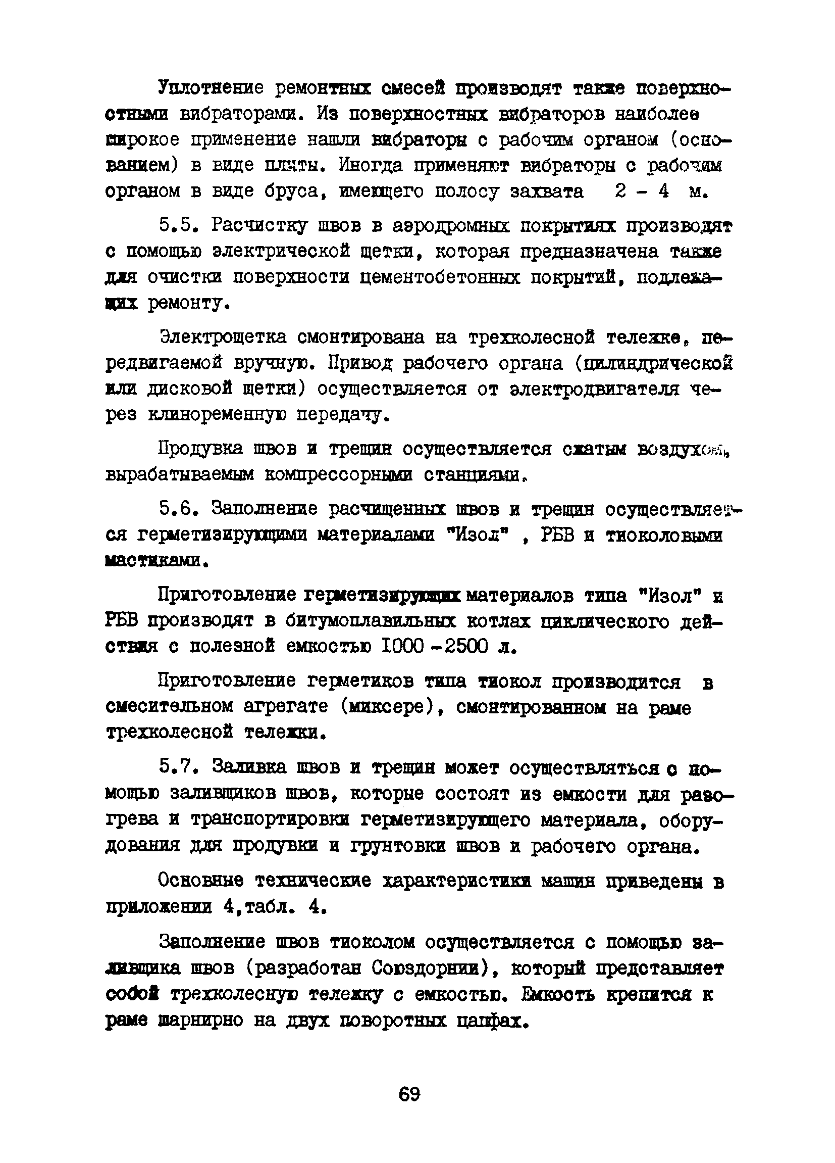 | Оглавление: | 1 Общие положения 2 Организация ремонта аэродромных покрытий Организация ремонтных служб в аэропортах Особенности организации текущего ремонта Особенности организации капитального ремонта 3 Технология ремонта аэродромных покрытий Текущий ремонт цементобетонных покрытий Капитальный ремонт цементобетонных покрытий и их разновидностей Текущий ремонт асфальтобетонных покрытий Капитальный ремонт асфальтобетонных покрытий Ремонт облегченных покрытий Ремонт покрытий переходного типа Ремонт покрытий из металлических плит Ремонт грунтовых летных полей 4 Технология ремонта водоотводных и дренажных систем 5 Механизация ремонтных работ Средства механизации для текущего ремонта цементобетонных аэродромных покрытий Средства механизации для текущего ремонта асфальтобетонных аэродромных покрытий Средства механизации для капитального ремонта цементобетонных аэродромных покрытий Средства механизации для капитального ремонта асфальтобетонных аэродромных покрытий Средства механизации для ремонта аэродромных покрытий путем замены дефектных плит Средства механизации для ремонта облегченных и переходных покрытий и грунтовых летных полей Средства механизации для ремонта покрытий из металлических плит Приложение 1. Перечень средств механизации и оборудования, которыми должны быть оснащены РСУ Приложение 2. Ремонтные материалы и составы, рекомендуемые для ремонта аэродромных покрытий Приложение 3. Примерные составы травосмесей для глинистых, суглинистых, супесчаных и засоленных почв в различных зонах СССР Приложение 4. Технические характеристики машин и механизмов |