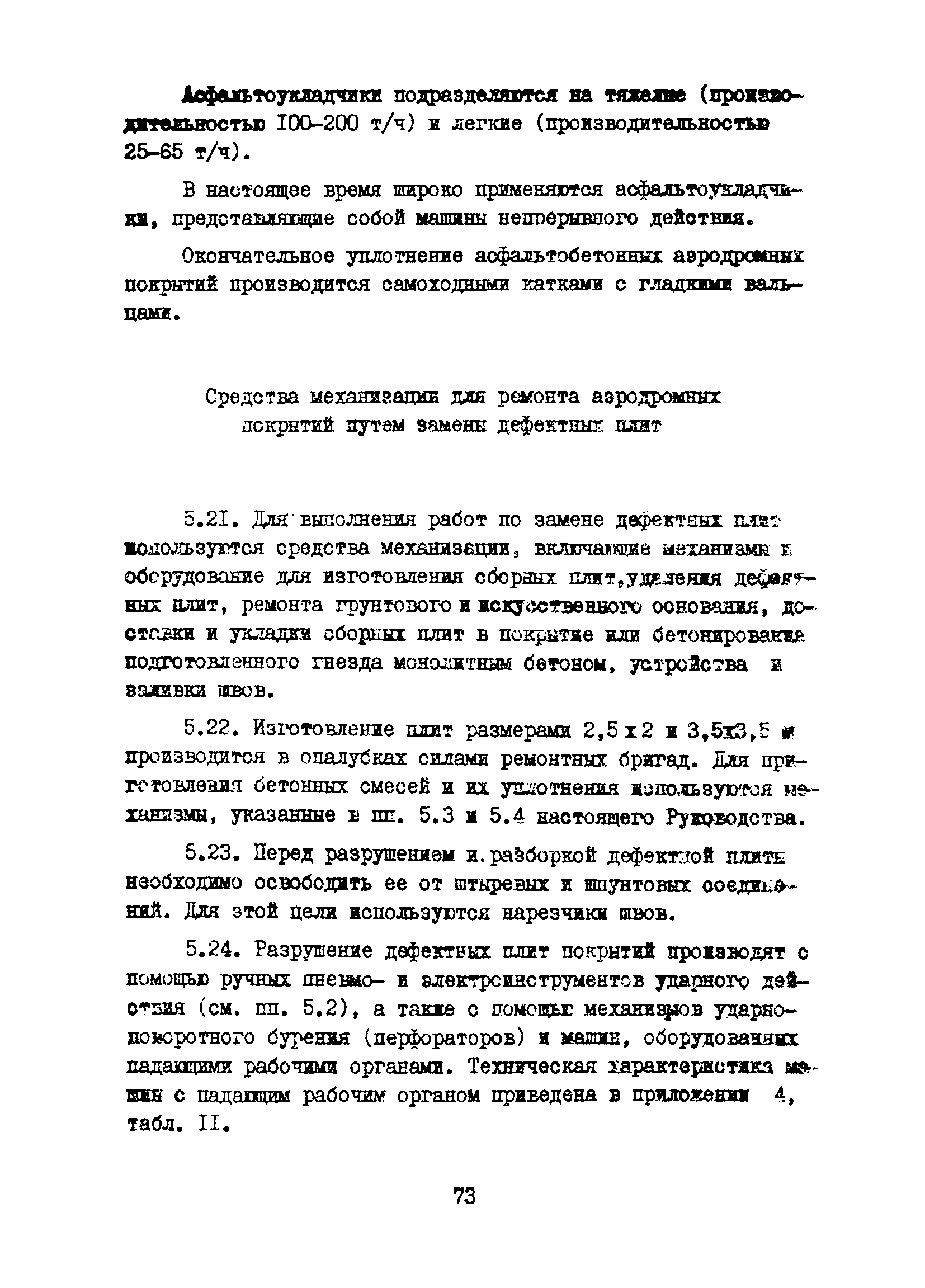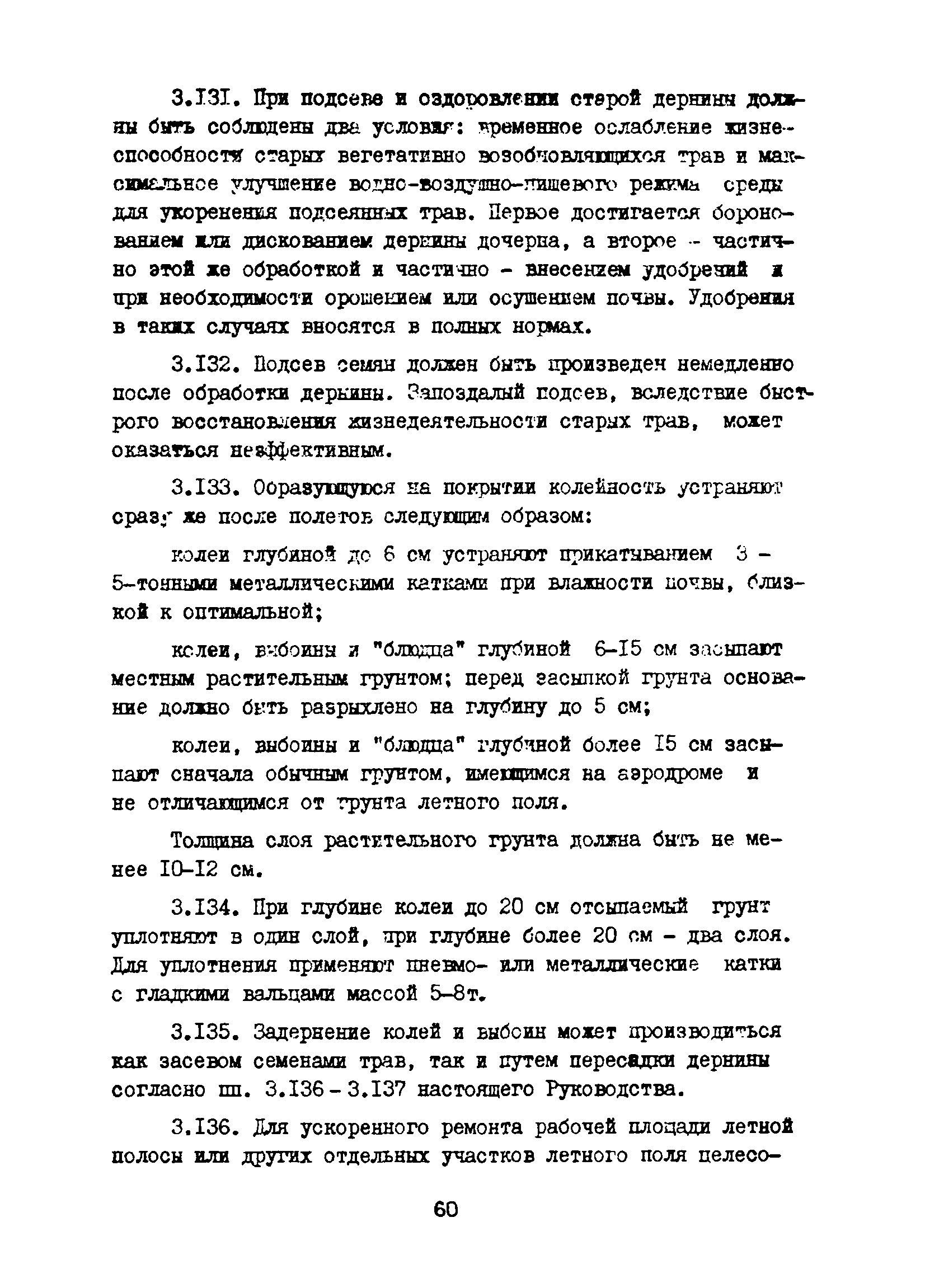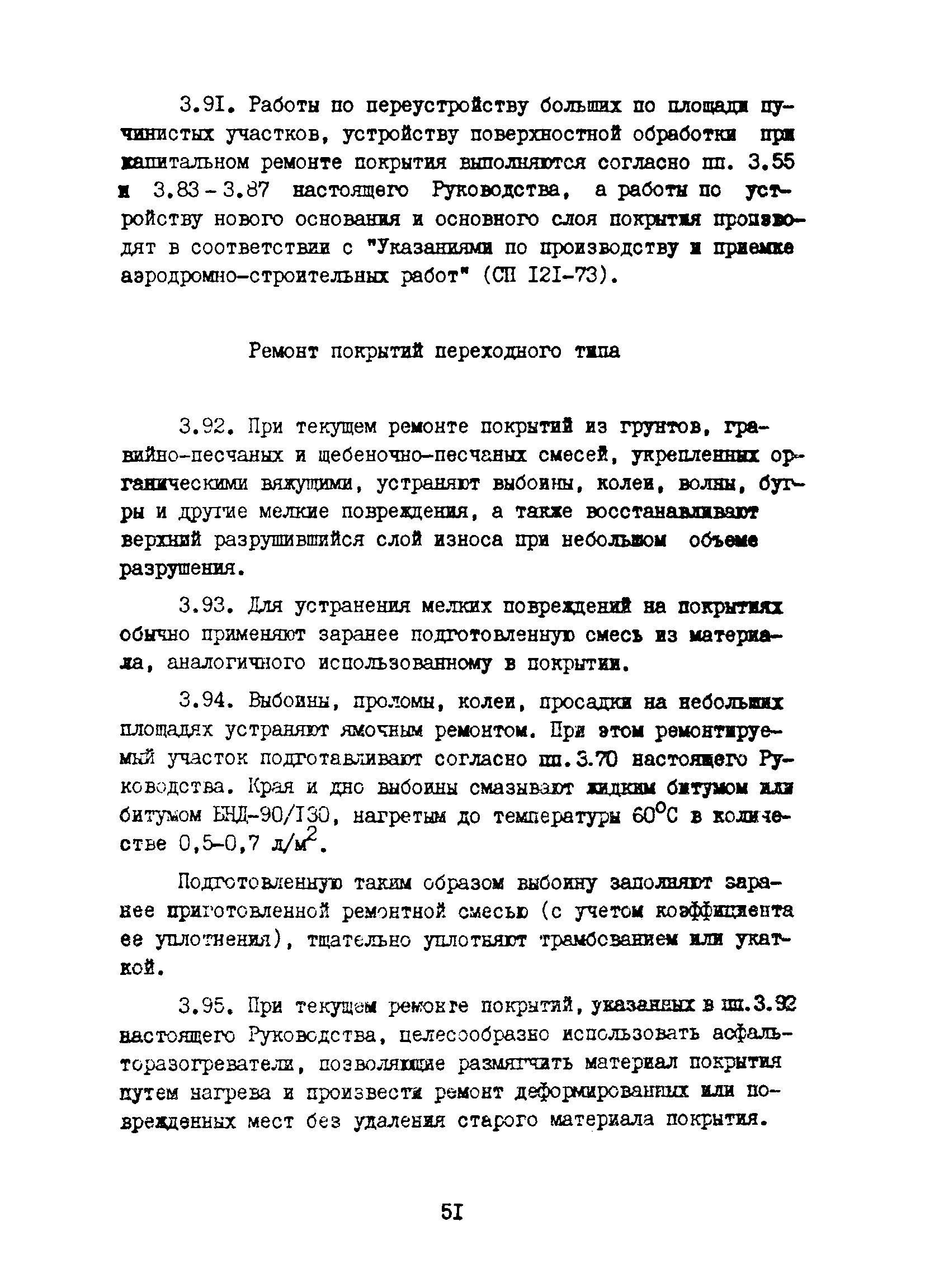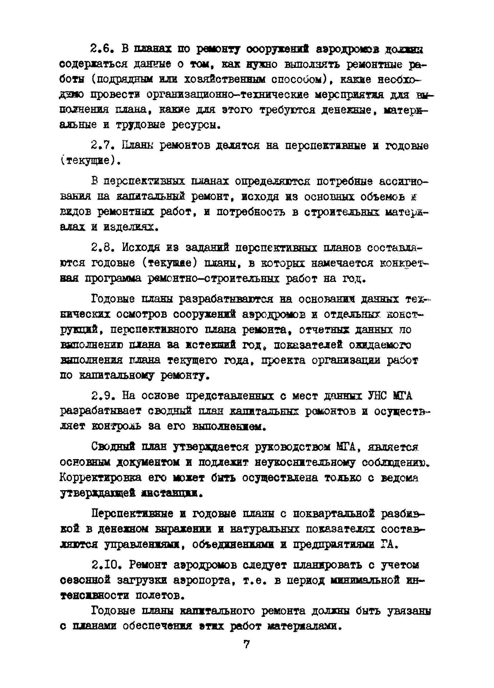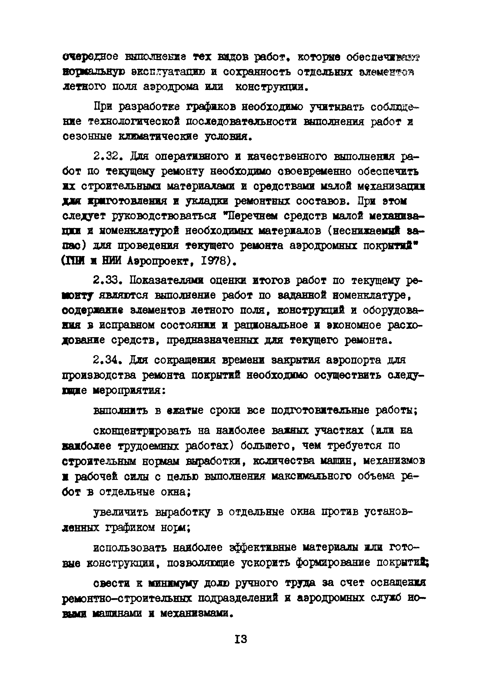 | Оглавление: | 1 Общие положения 2 Организация ремонта аэродромных покрытий Организация ремонтных служб в аэропортах Особенности организации текущего ремонта Особенности организации капитального ремонта 3 Технология ремонта аэродромных покрытий Текущий ремонт цементобетонных покрытий Капитальный ремонт цементобетонных покрытий и их разновидностей Текущий ремонт асфальтобетонных покрытий Капитальный ремонт асфальтобетонных покрытий Ремонт облегченных покрытий Ремонт покрытий переходного типа Ремонт покрытий из металлических плит Ремонт грунтовых летных полей 4 Технология ремонта водоотводных и дренажных систем 5 Механизация ремонтных работ Средства механизации для текущего ремонта цементобетонных аэродромных покрытий Средства механизации для текущего ремонта асфальтобетонных аэродромных покрытий Средства механизации для капитального ремонта цементобетонных аэродромных покрытий Средства механизации для капитального ремонта асфальтобетонных аэродромных покрытий Средства механизации для ремонта аэродромных покрытий путем замены дефектных плит Средства механизации для ремонта облегченных и переходных покрытий и грунтовых летных полей Средства механизации для ремонта покрытий из металлических плит Приложение 1. Перечень средств механизации и оборудования, которыми должны быть оснащены РСУ Приложение 2. Ремонтные материалы и составы, рекомендуемые для ремонта аэродромных покрытий Приложение 3. Примерные составы травосмесей для глинистых, суглинистых, супесчаных и засоленных почв в различных зонах СССР Приложение 4. Технические характеристики машин и механизмов |