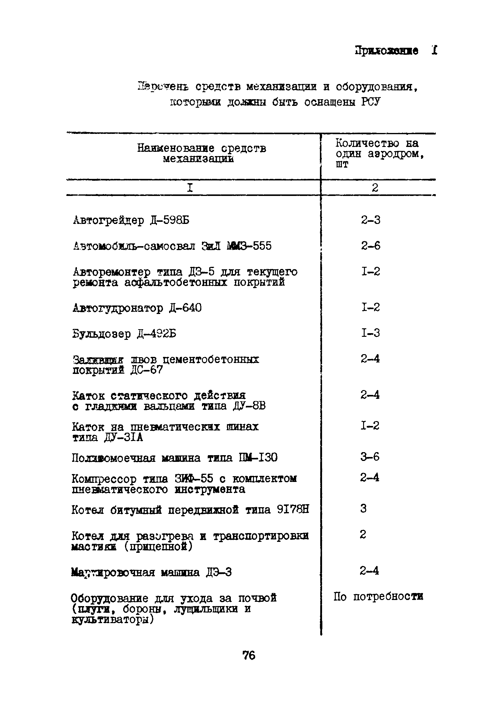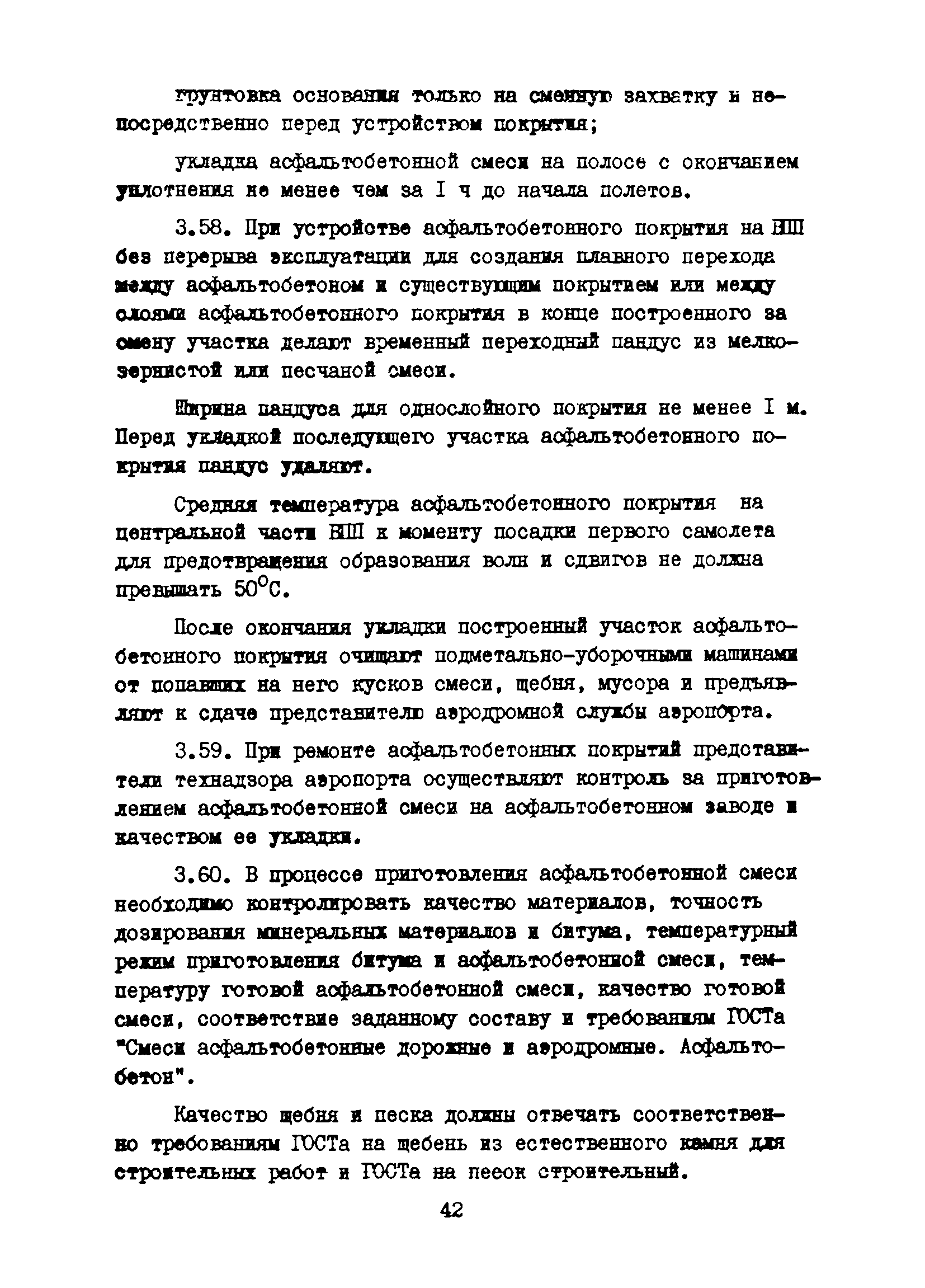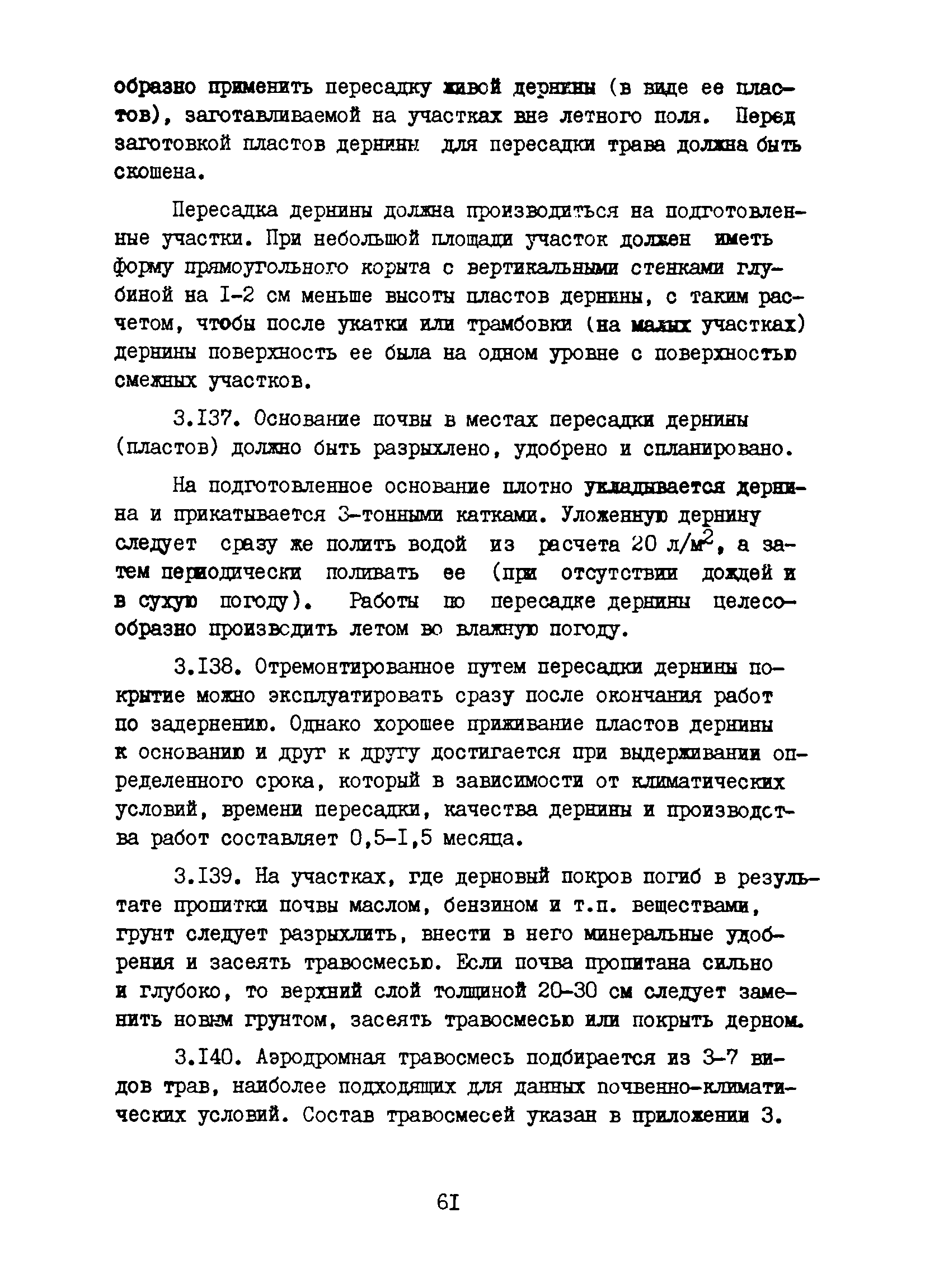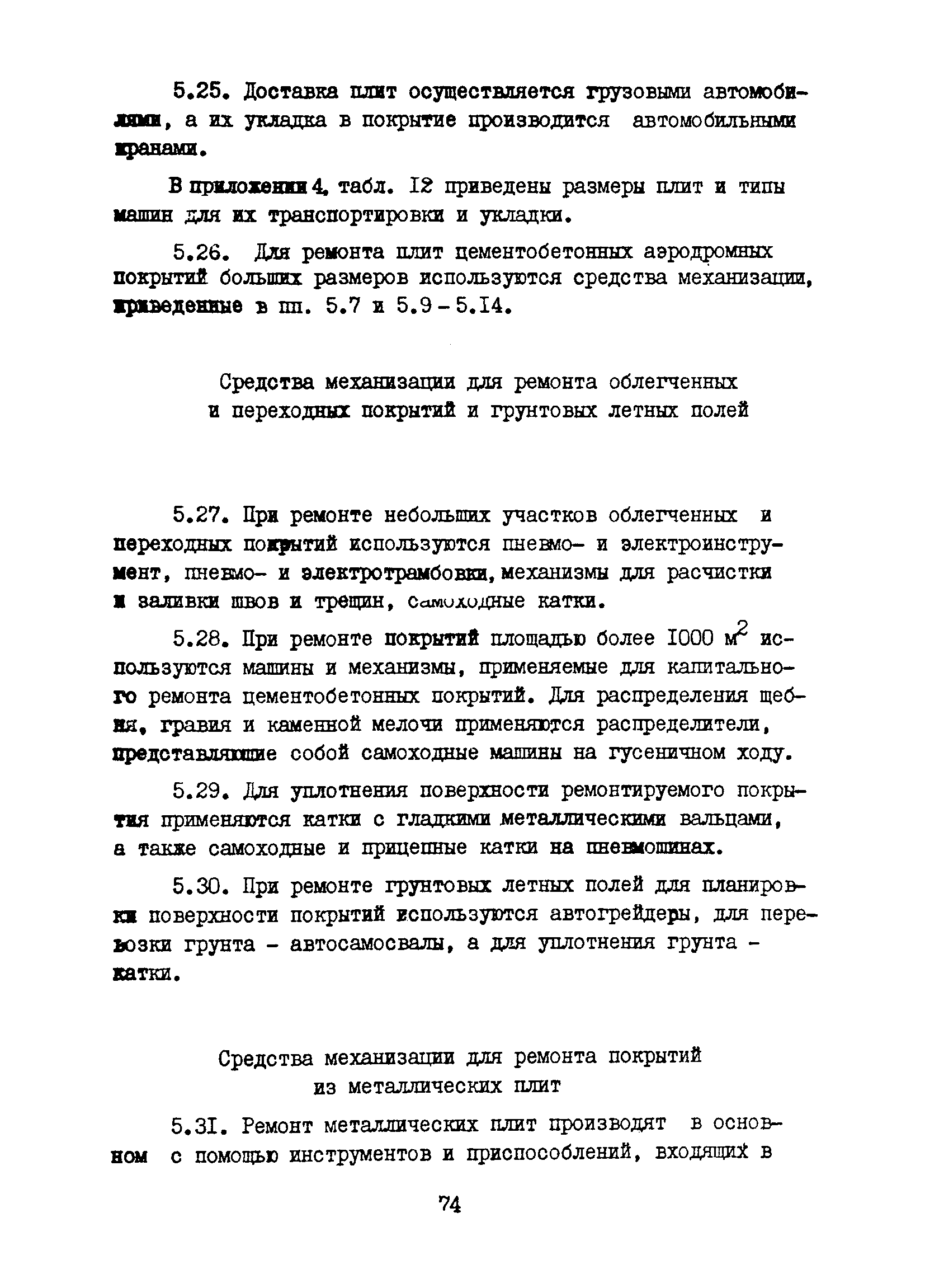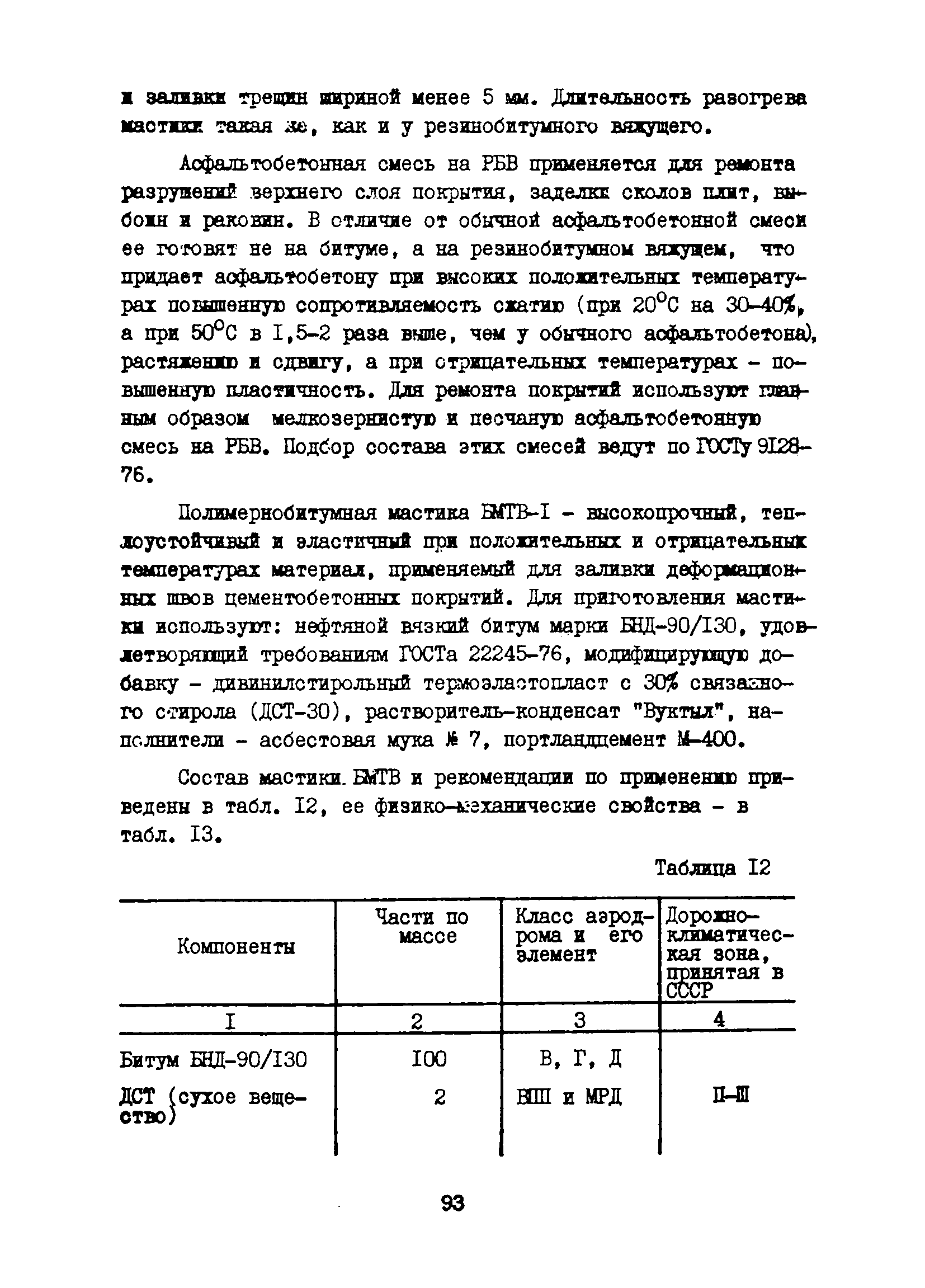 | Оглавление: | 1 Общие положения 2 Организация ремонта аэродромных покрытий Организация ремонтных служб в аэропортах Особенности организации текущего ремонта Особенности организации капитального ремонта 3 Технология ремонта аэродромных покрытий Текущий ремонт цементобетонных покрытий Капитальный ремонт цементобетонных покрытий и их разновидностей Текущий ремонт асфальтобетонных покрытий Капитальный ремонт асфальтобетонных покрытий Ремонт облегченных покрытий Ремонт покрытий переходного типа Ремонт покрытий из металлических плит Ремонт грунтовых летных полей 4 Технология ремонта водоотводных и дренажных систем 5 Механизация ремонтных работ Средства механизации для текущего ремонта цементобетонных аэродромных покрытий Средства механизации для текущего ремонта асфальтобетонных аэродромных покрытий Средства механизации для капитального ремонта цементобетонных аэродромных покрытий Средства механизации для капитального ремонта асфальтобетонных аэродромных покрытий Средства механизации для ремонта аэродромных покрытий путем замены дефектных плит Средства механизации для ремонта облегченных и переходных покрытий и грунтовых летных полей Средства механизации для ремонта покрытий из металлических плит Приложение 1. Перечень средств механизации и оборудования, которыми должны быть оснащены РСУ Приложение 2. Ремонтные материалы и составы, рекомендуемые для ремонта аэродромных покрытий Приложение 3. Примерные составы травосмесей для глинистых, суглинистых, супесчаных и засоленных почв в различных зонах СССР Приложение 4. Технические характеристики машин и механизмов |