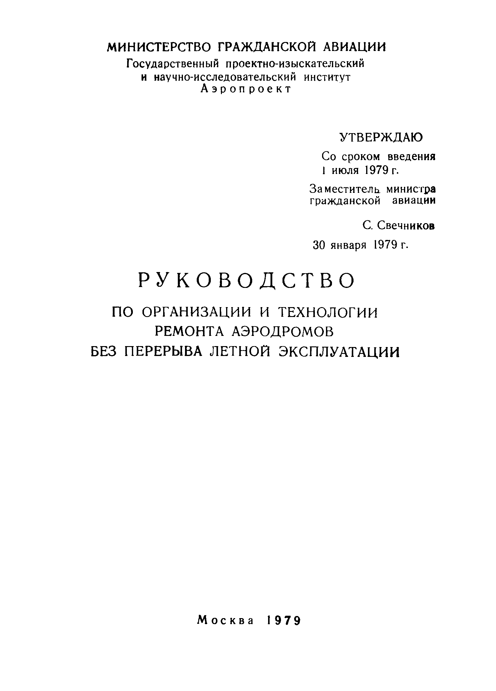 | Область применения: | Руководство устанавливает порядок организации и проведения ремонтных работ на аэродромах гражданской авиации, требования Руководства должны выполняться при планировании ремонтных работ, их организации и проведении |
