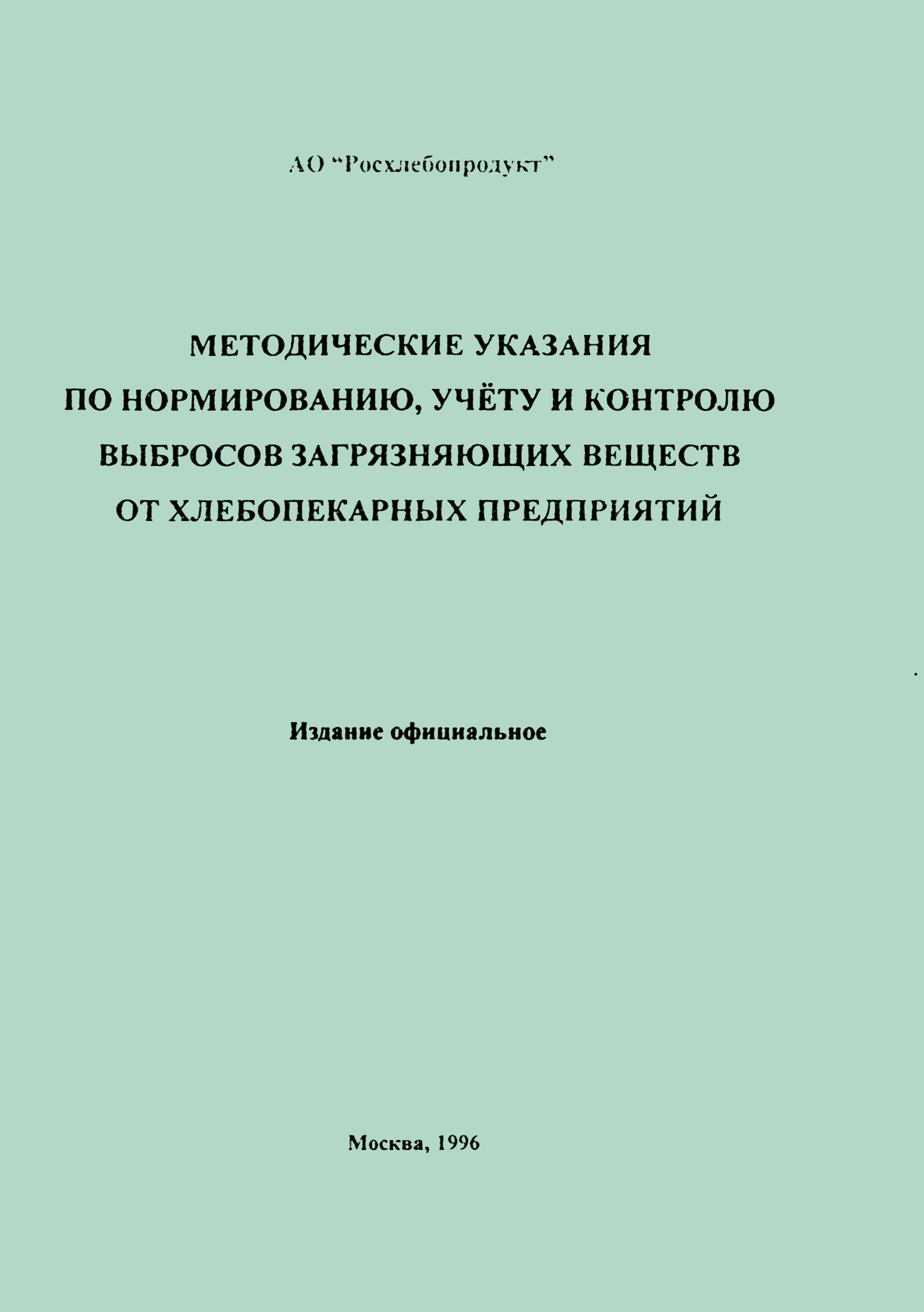 | Название рус.: | Методические указания по нормированию, учету и контролю выбросов загрязняющих веществ от хлебопекарных предприятий |
