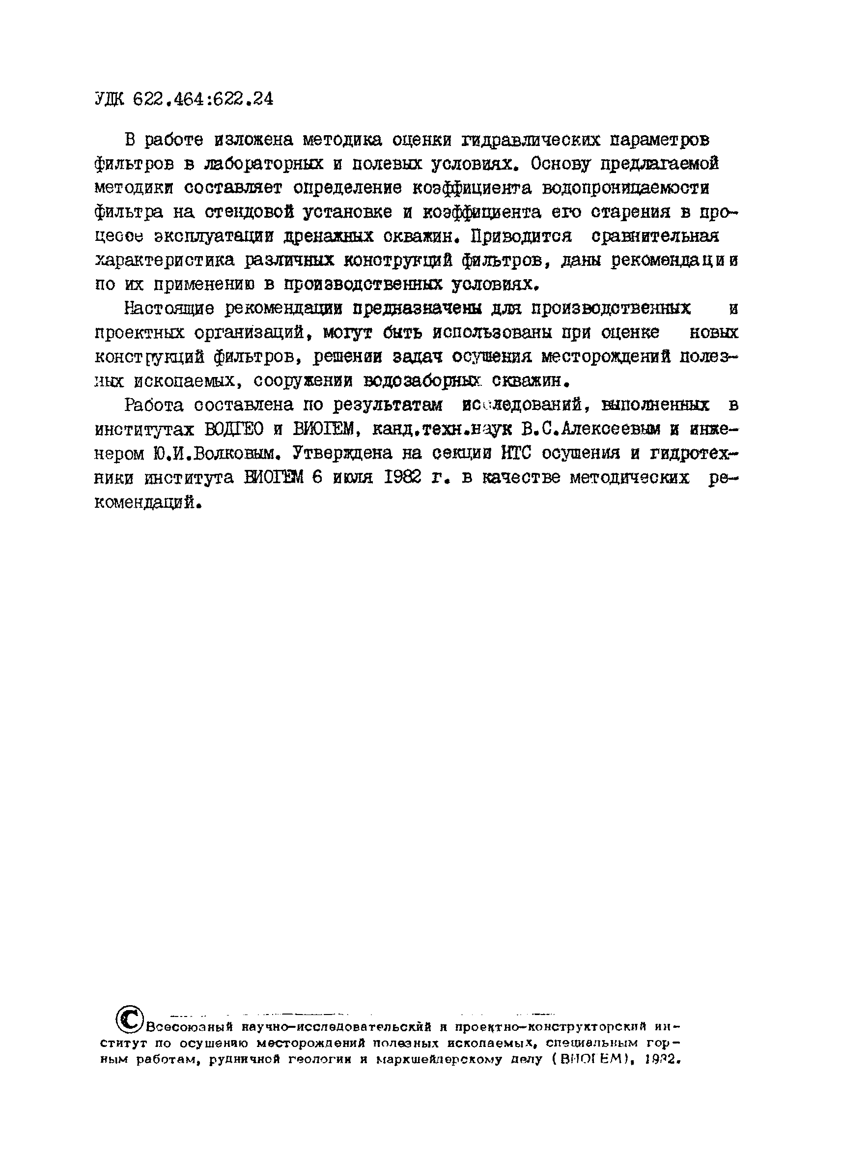 Скачать Методические рекомендации по оценке гидравлических параметров фильтров, применяемых при сооружении дренажных скважинДата актуализации: 01.01.2021