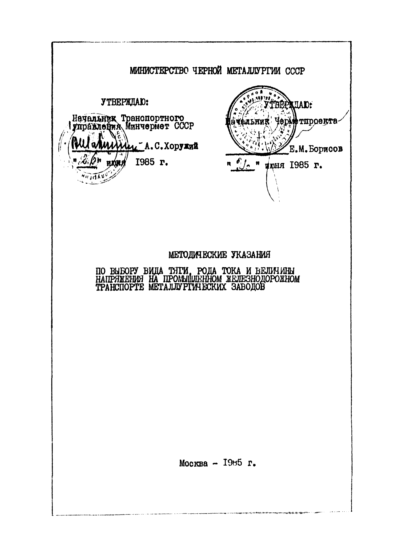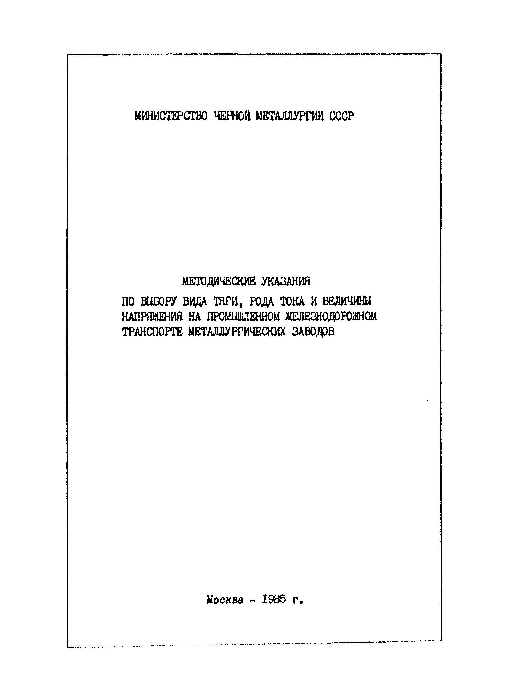 | Название рус.: | Методические указания по выбору вида тяги, рода тока и величины напряжения на промышленном железнодорожном транспорте металлургических заводов |