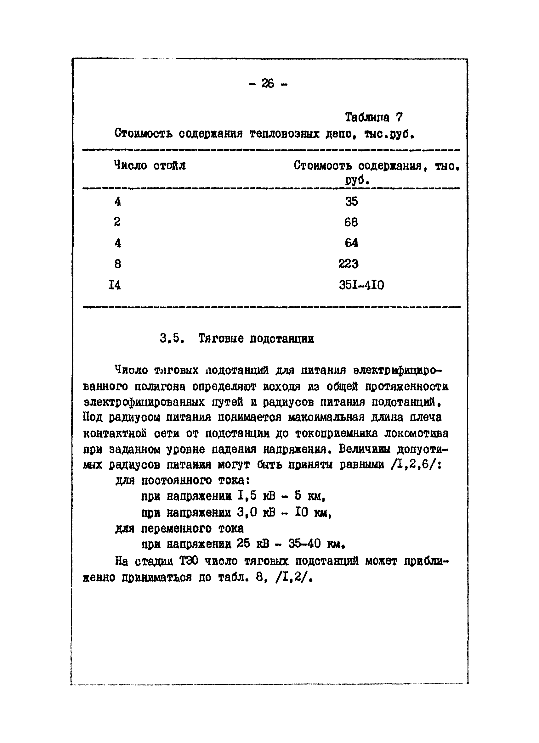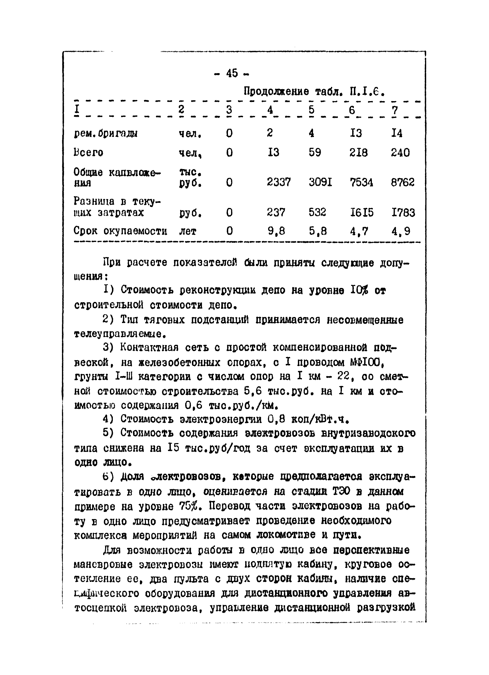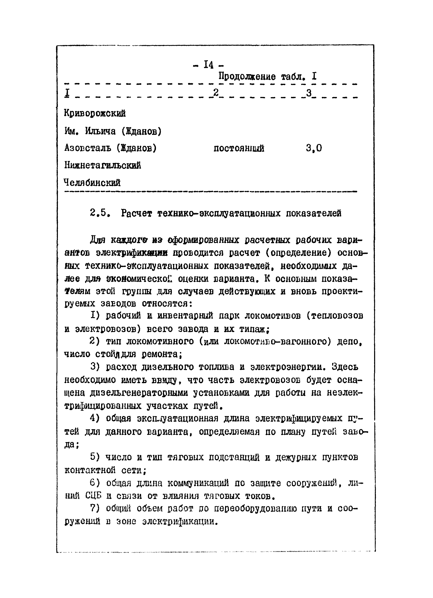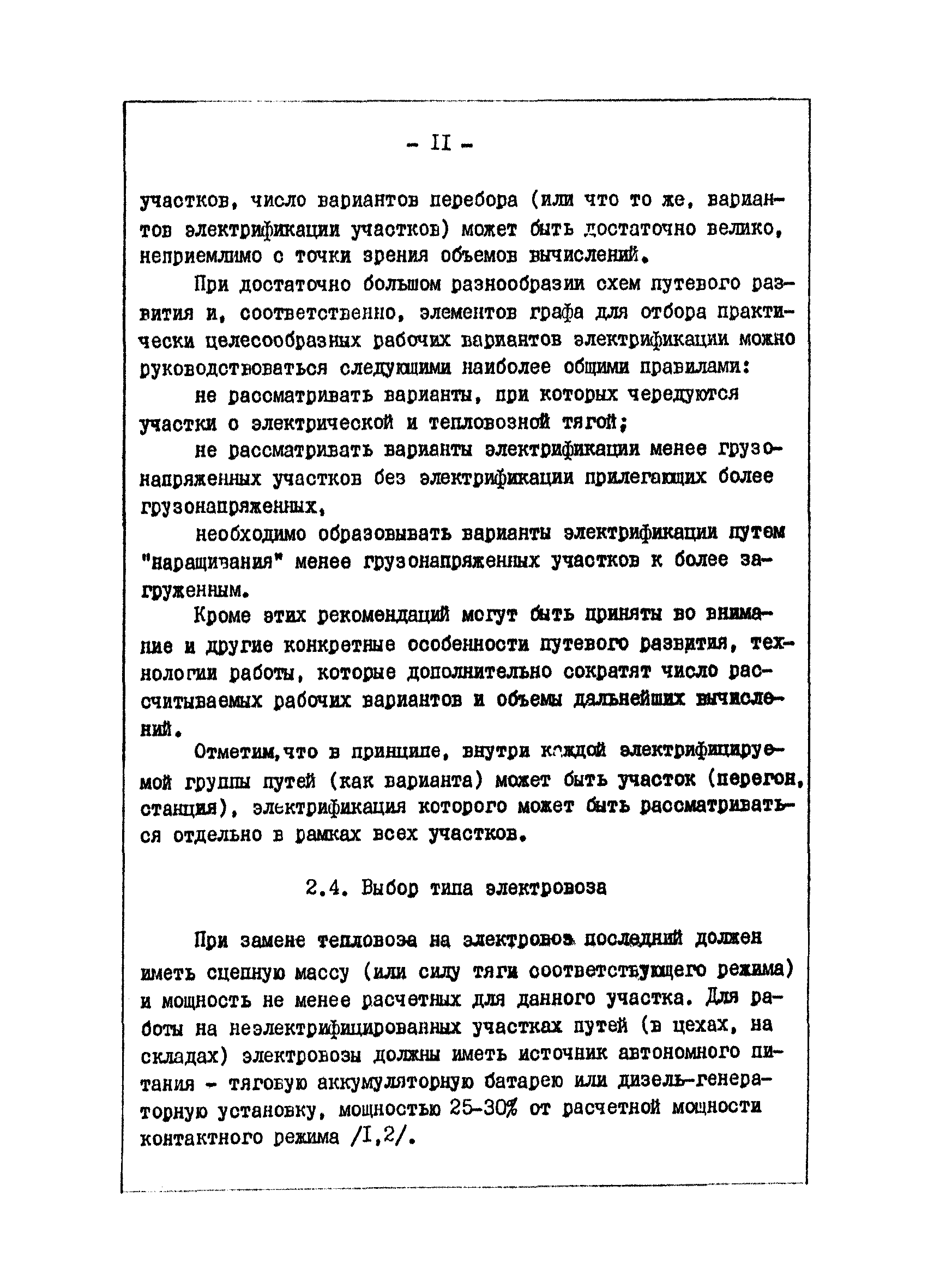 | Оглавление: | Введение 1 Общие положения 2 Структура решения 2.1 Исходные данные 2.2 Выбор рода тока и величины напряжения 2.3 Разработка рабочих вариантов электрификации 2.4 Выбор типа электровоза 2.5 Расчет технико—эксплуатационных показателей 2.6 Расчет приведенных затрат 3 Методика расчета статей затрат 3.1 Локомотивный парк 3.2 Затраты на содержание локомотивного парка 3.3 Расход энергоресурсов ка локомотивную тягу 3.4 Локомотивное депо 3.5 Тяговые подстанции 3.6 Контактная сеть 3.7 Дежурный лист контактной сети 3.8 Вспомогательные работы 4 Список использованных источников 5 Приложение 1. Пример расчета электрификации железнодорожных путей завода (по данным НЛМК) 6 Приложение 2. Основные данные промышленных локомотивов |