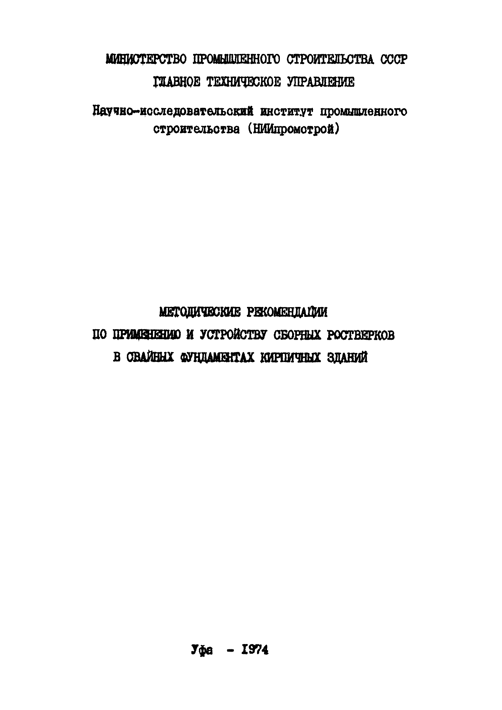 | Название рус.: | Методические рекомендации по применению и устройству сборных ростверков в свайных фундаментах кирпичных зданий |