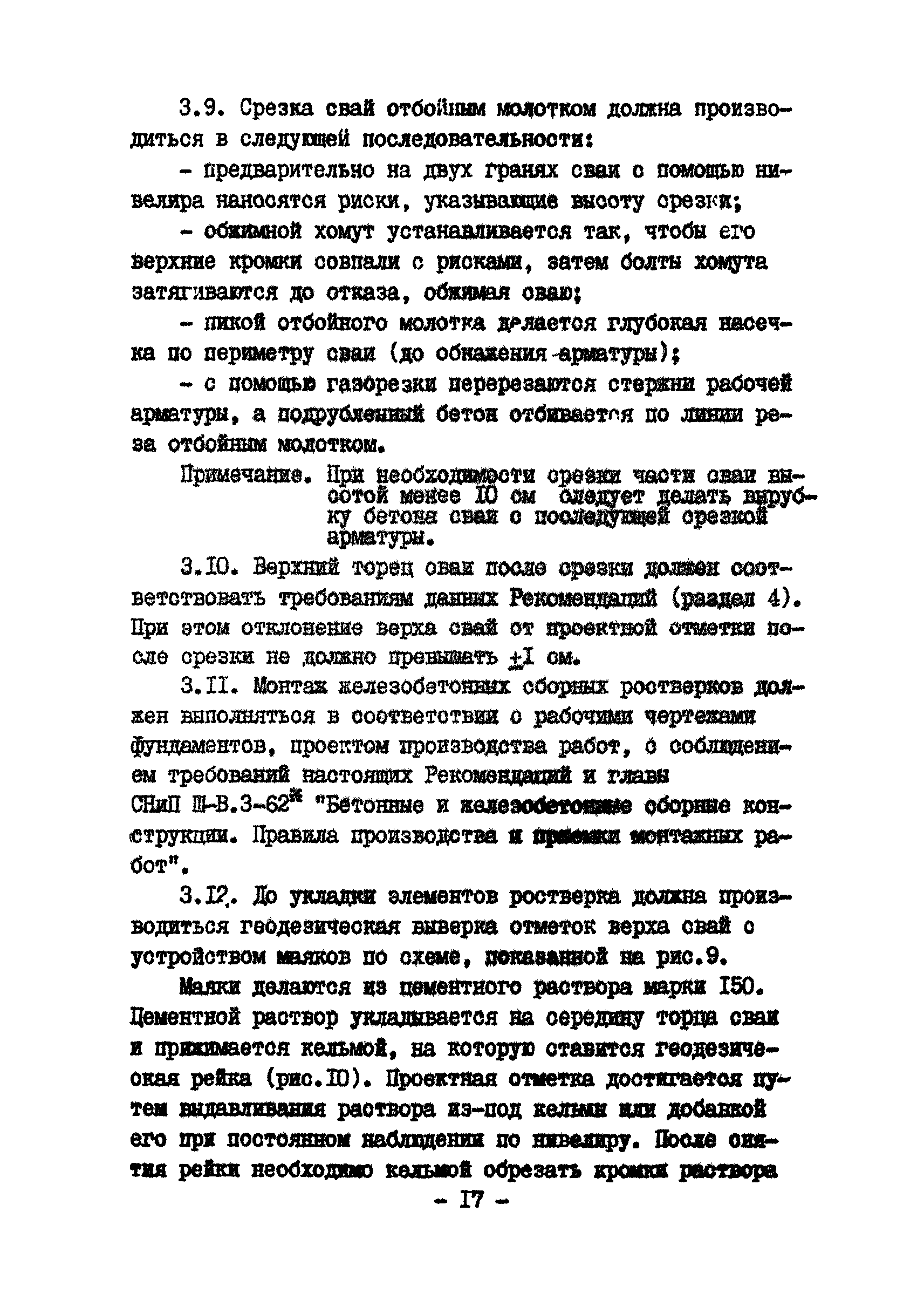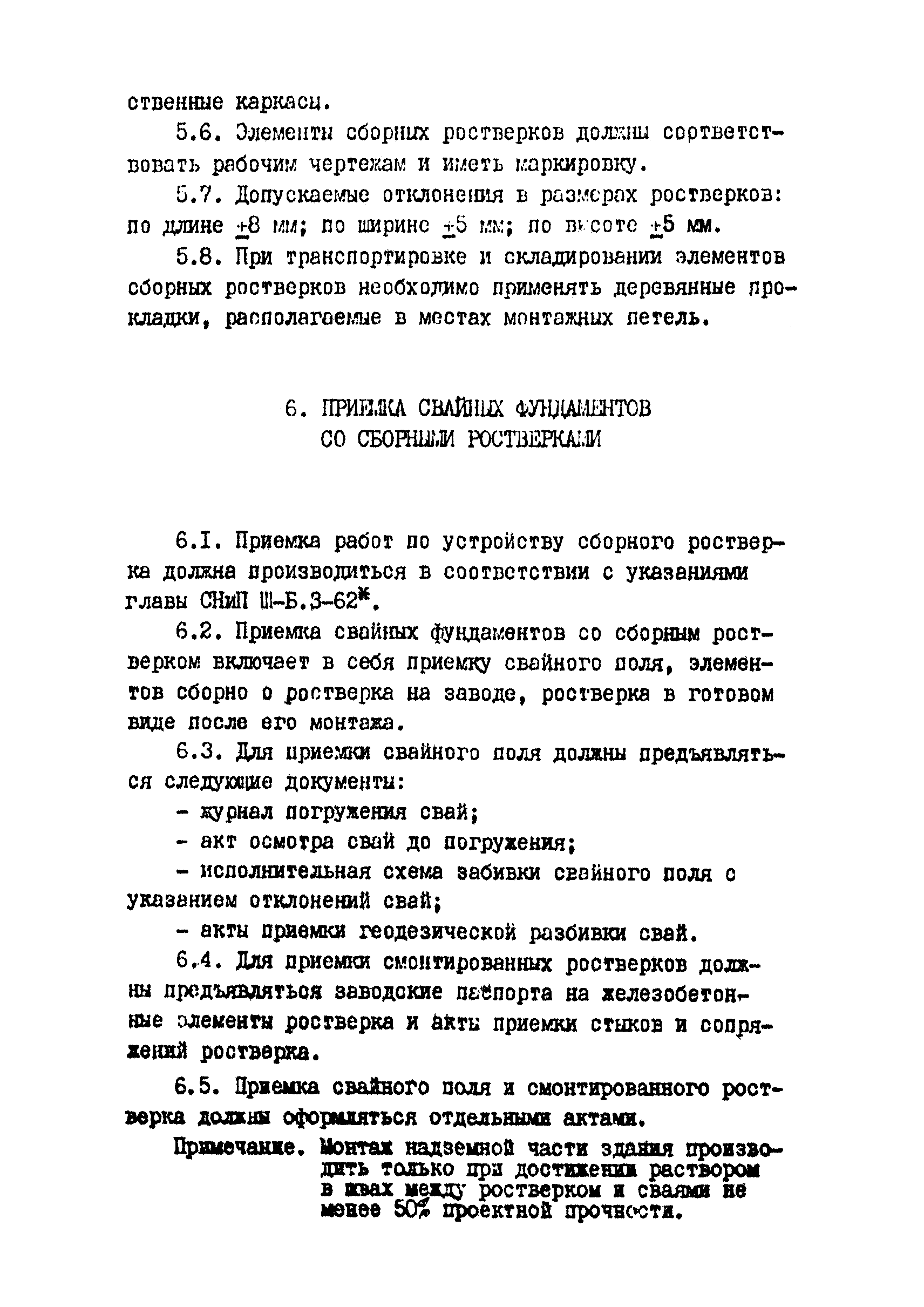 | Оглавление: | Введение 1 Общая часть 2 Основные положения по проектированию сборных ростверков 3 Основные положения по устройству сборных ростверков 4 Технические требования к качеству голов свай после их погружения или срезки 5 Технические требования к изготовлению сборных ростверков 6 Приемка свайных фундаментов со сборками ростверками |