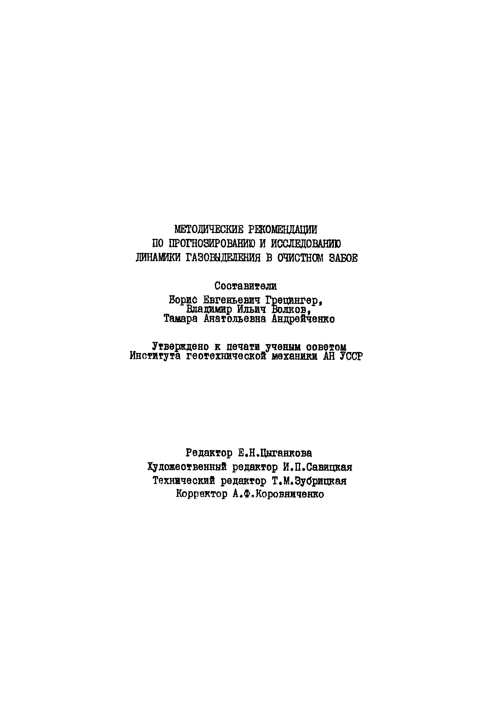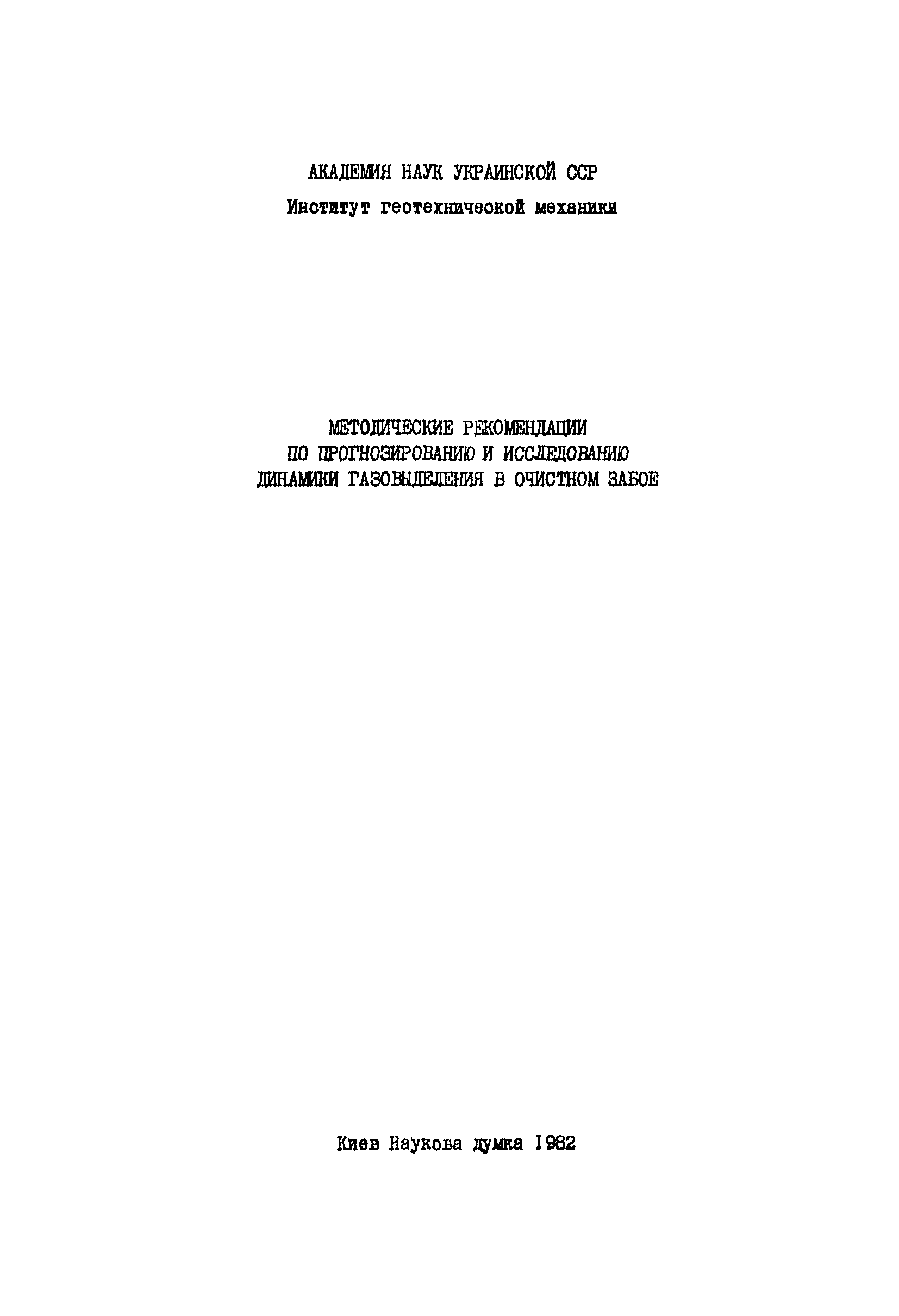| Название рус.: | Методические рекомендации по прогнозированию и исследованию динамики газовыделения в очистном забое |