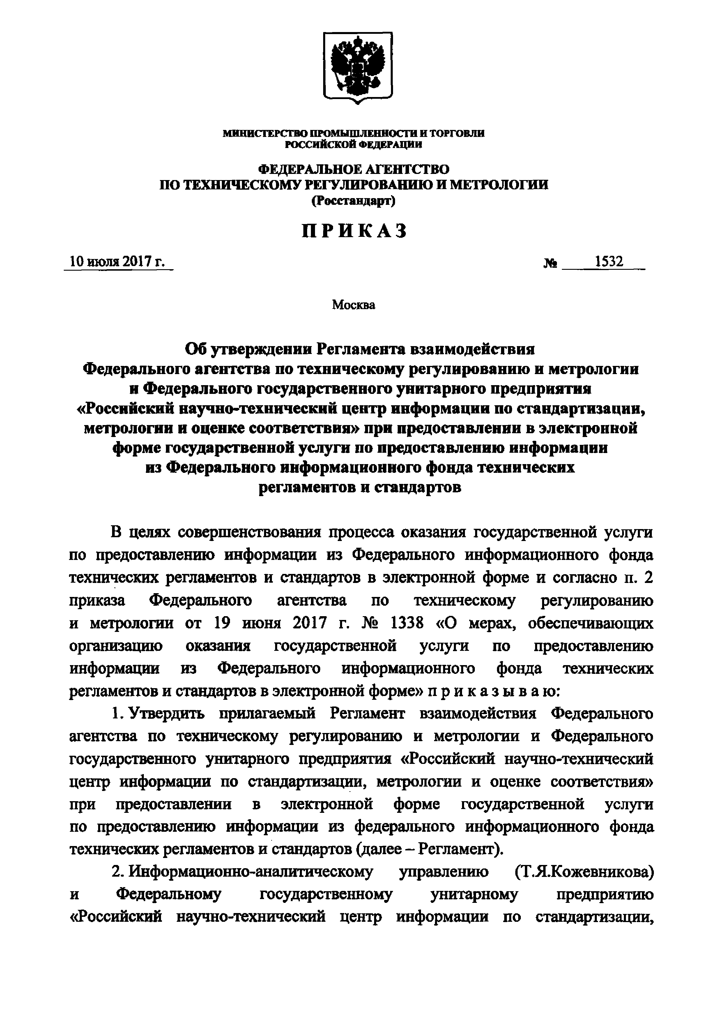 | Утверждён: | 10.07.2017 Федеральное агентство по техническому регулированию и метрологии (1532) |