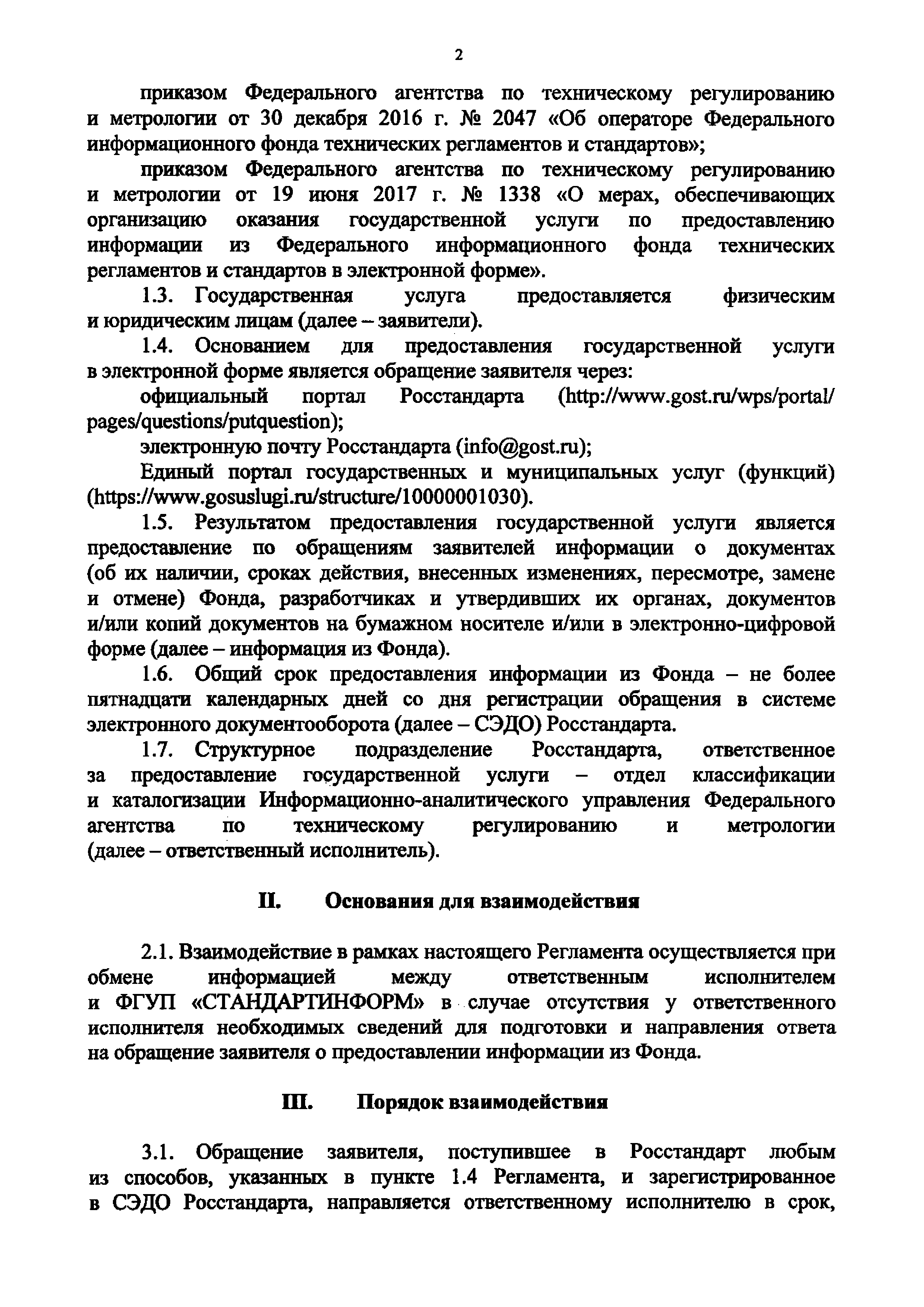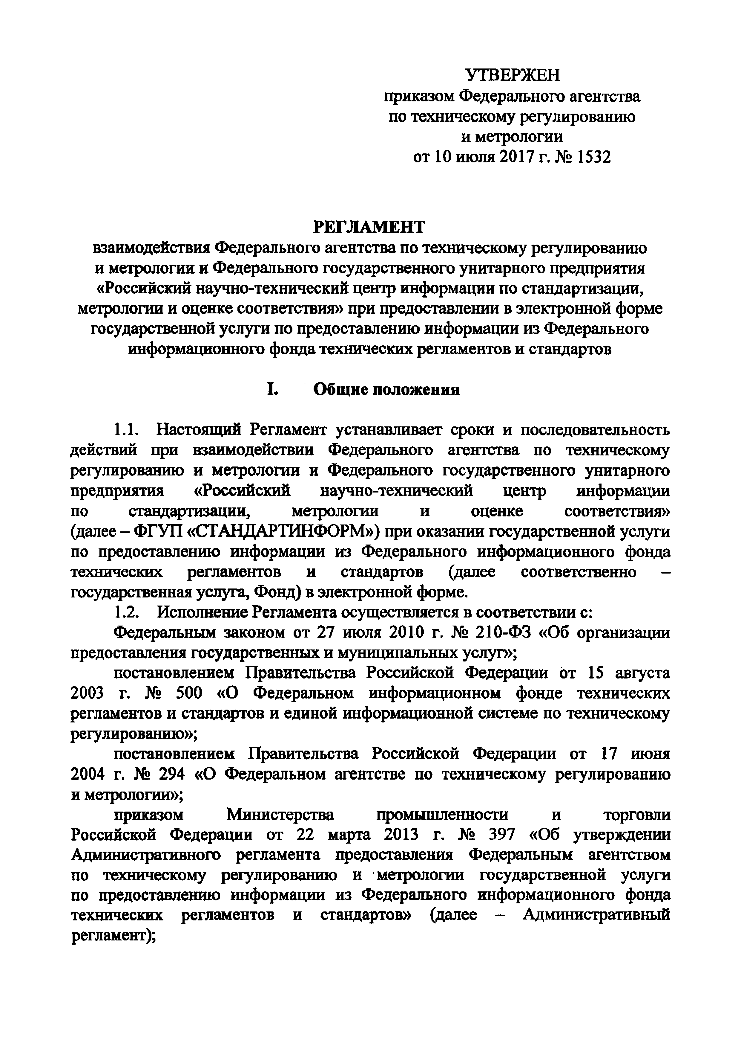 Скачать Регламент взаимодействия Федерального агентства по техническому регулированию и метрологии и Федерального государственного унитарного предприятия Российский научно-технический центр информации по стандартизации, метрологии и оценке соответствия при предоставлении в электронной форме государственной услуги по предоставлению информации из Федерального информационного фонда технических регламентов и стандартовДата актуализации: 01.01.2021 |