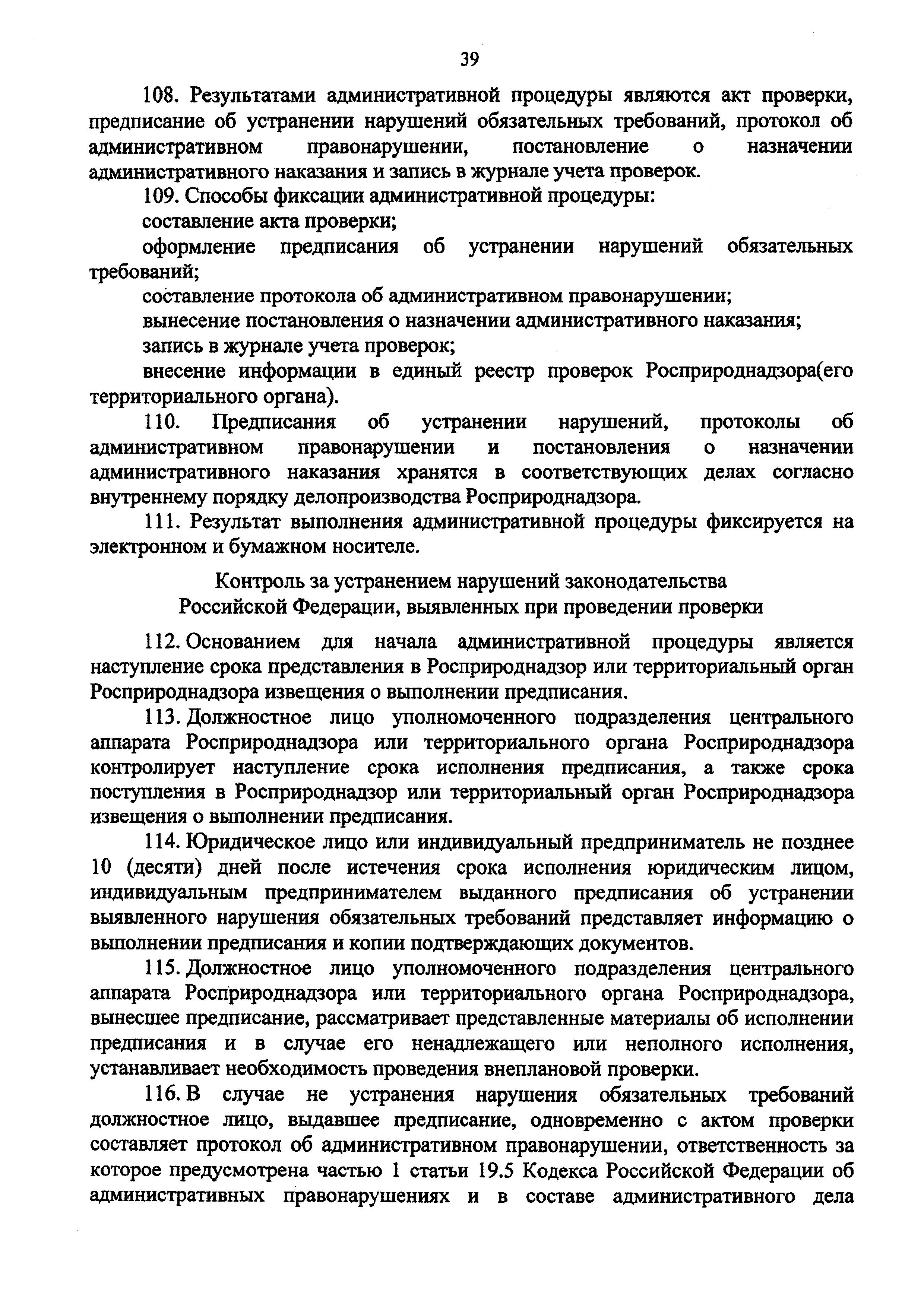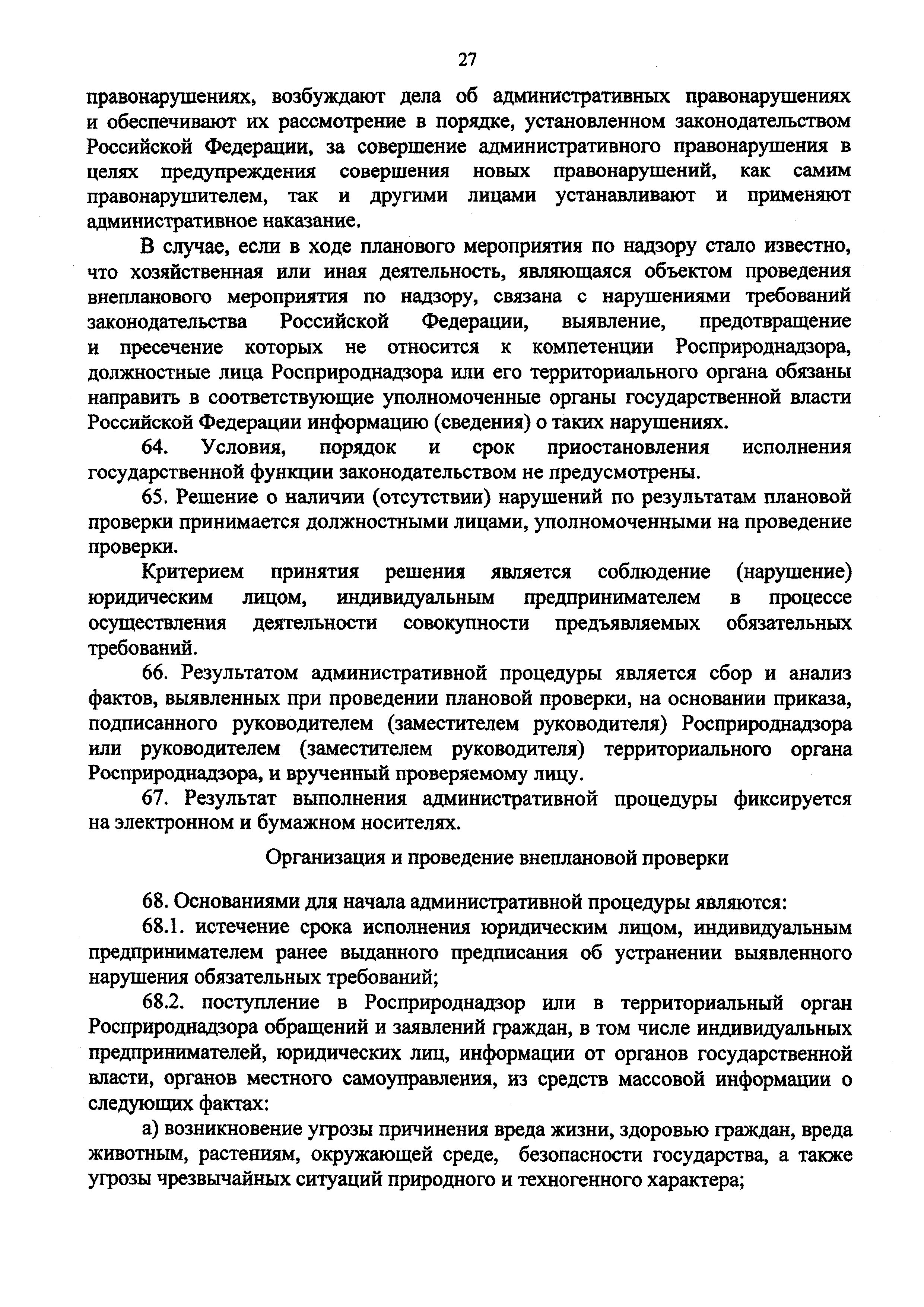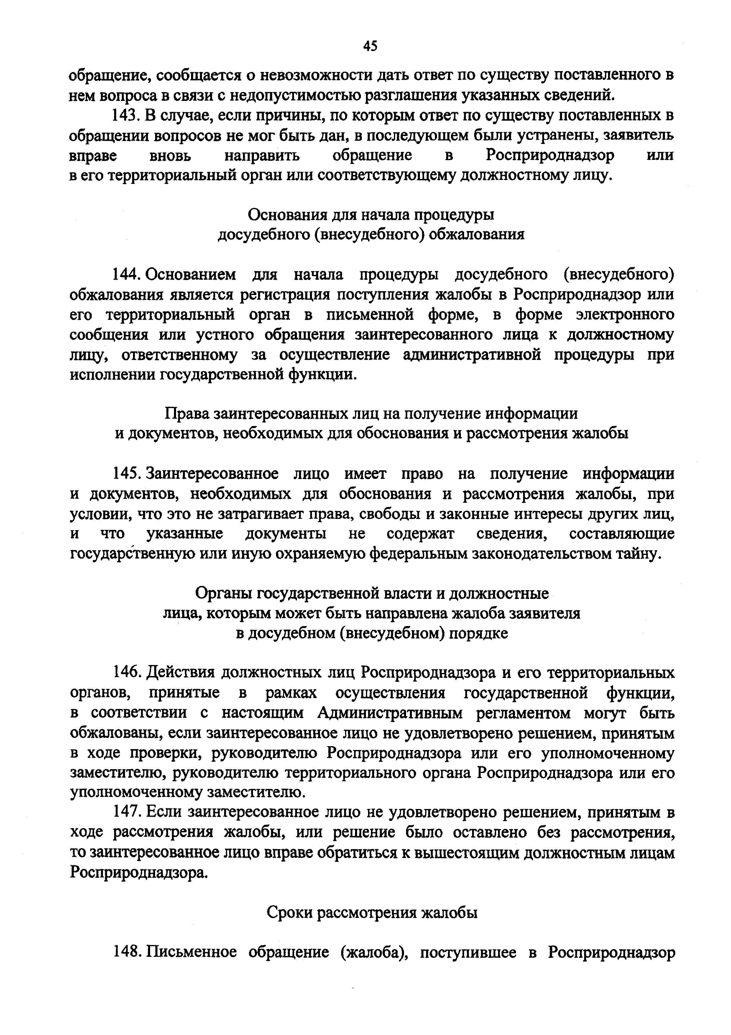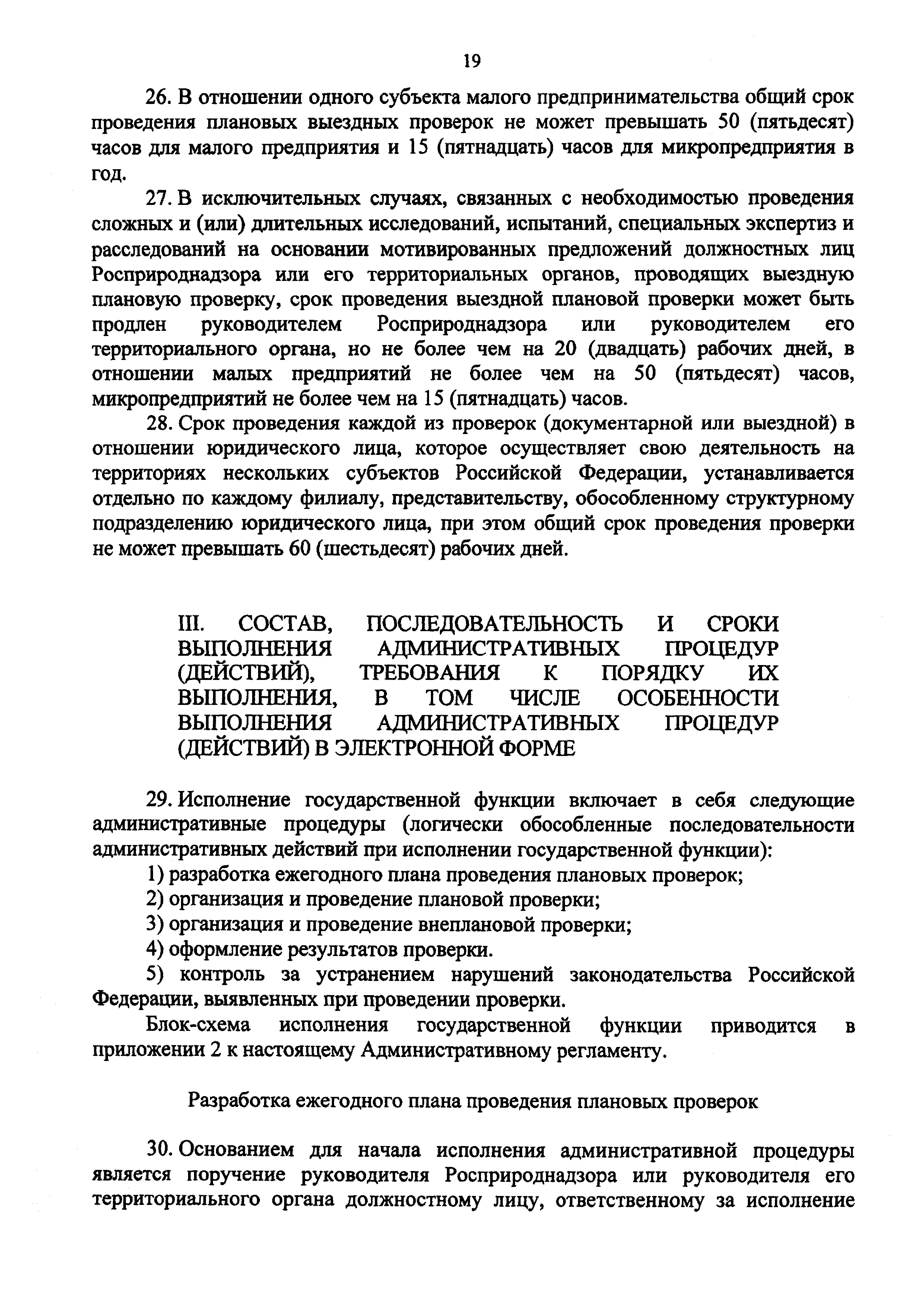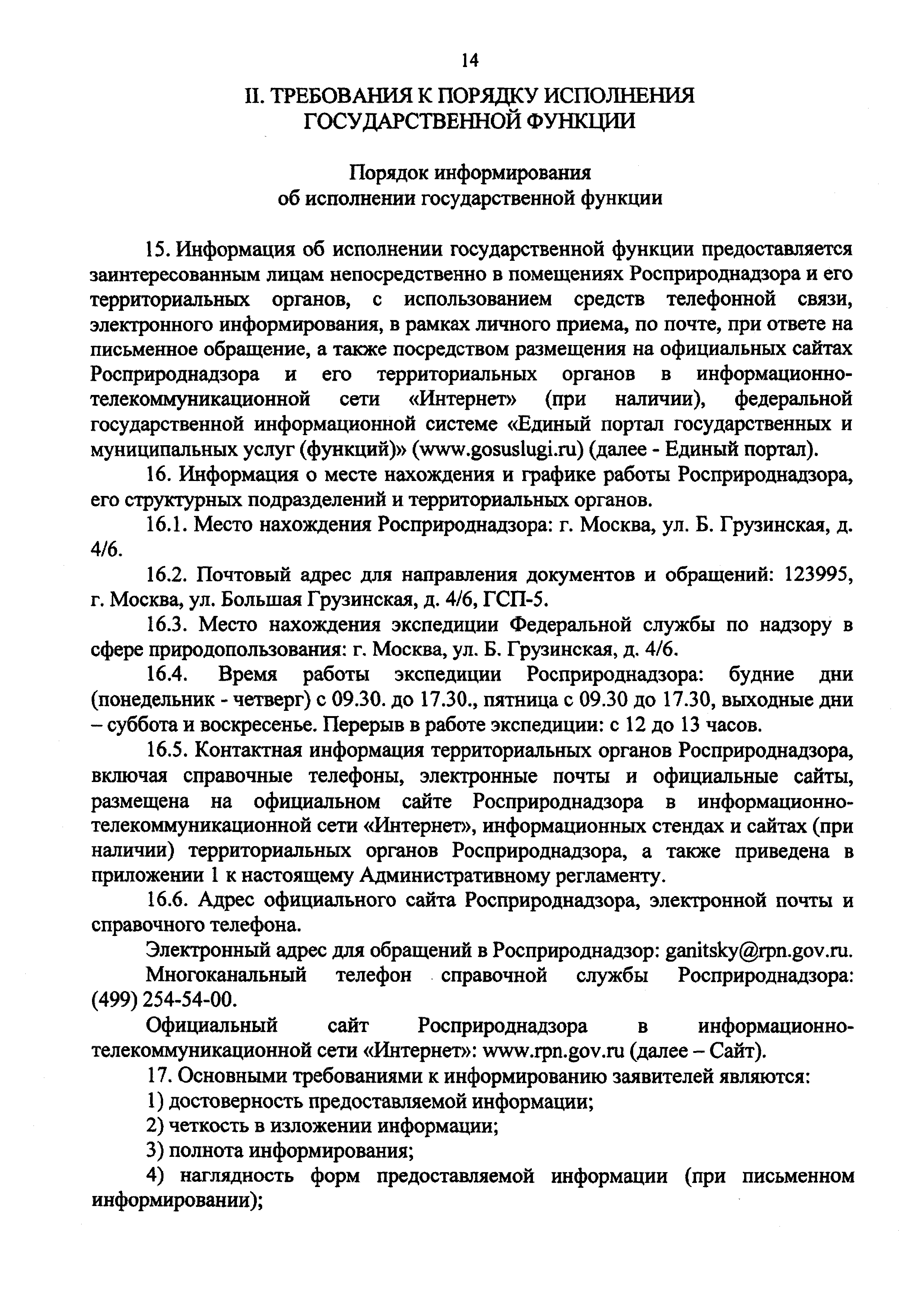 | Оглавление: | I. Общие Положения II. Требования к порядку исполнения государственной функции III. Состав, последовательность и сроки выполнения административных процедур (действий), требования к порядку их выполнения, в том числе особенности выполнения административных процедур (действий) в электронной форме IV. Порядок и формы контроля за исполнением государственной функции V. Досудебный (внесудебный) порядок обжалования решений и действий (бездействия) органа, исполняющего государственную функцию, а также его должностных лиц Приложение 1. Перечень территориальных органов Росприроднадзора Приложение 2. Блок-схема исполнения Росприроднадзором государственной функции |