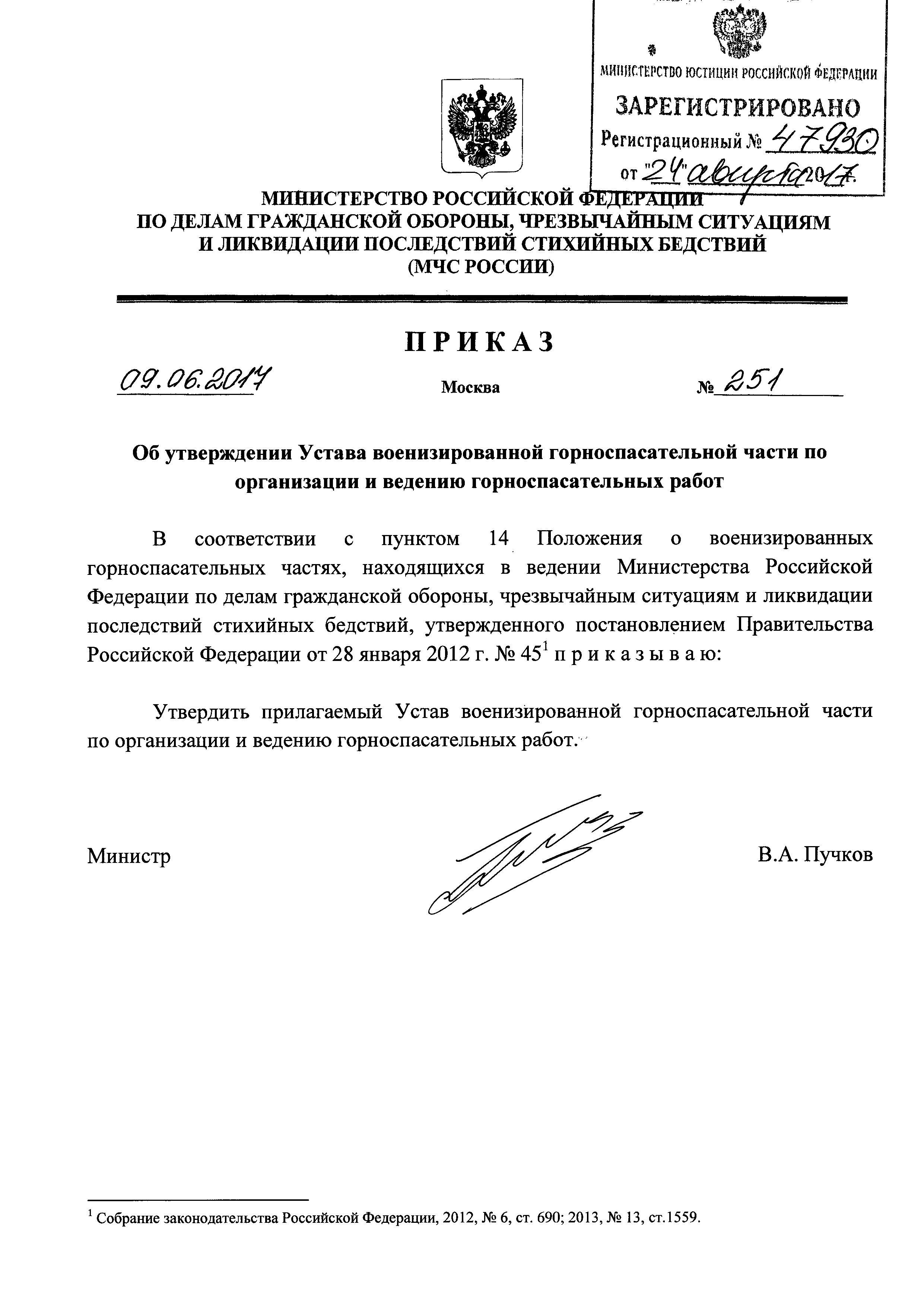 | Утверждён: | 09.06.2017 МЧС России (Russian Federation MChS 251) |