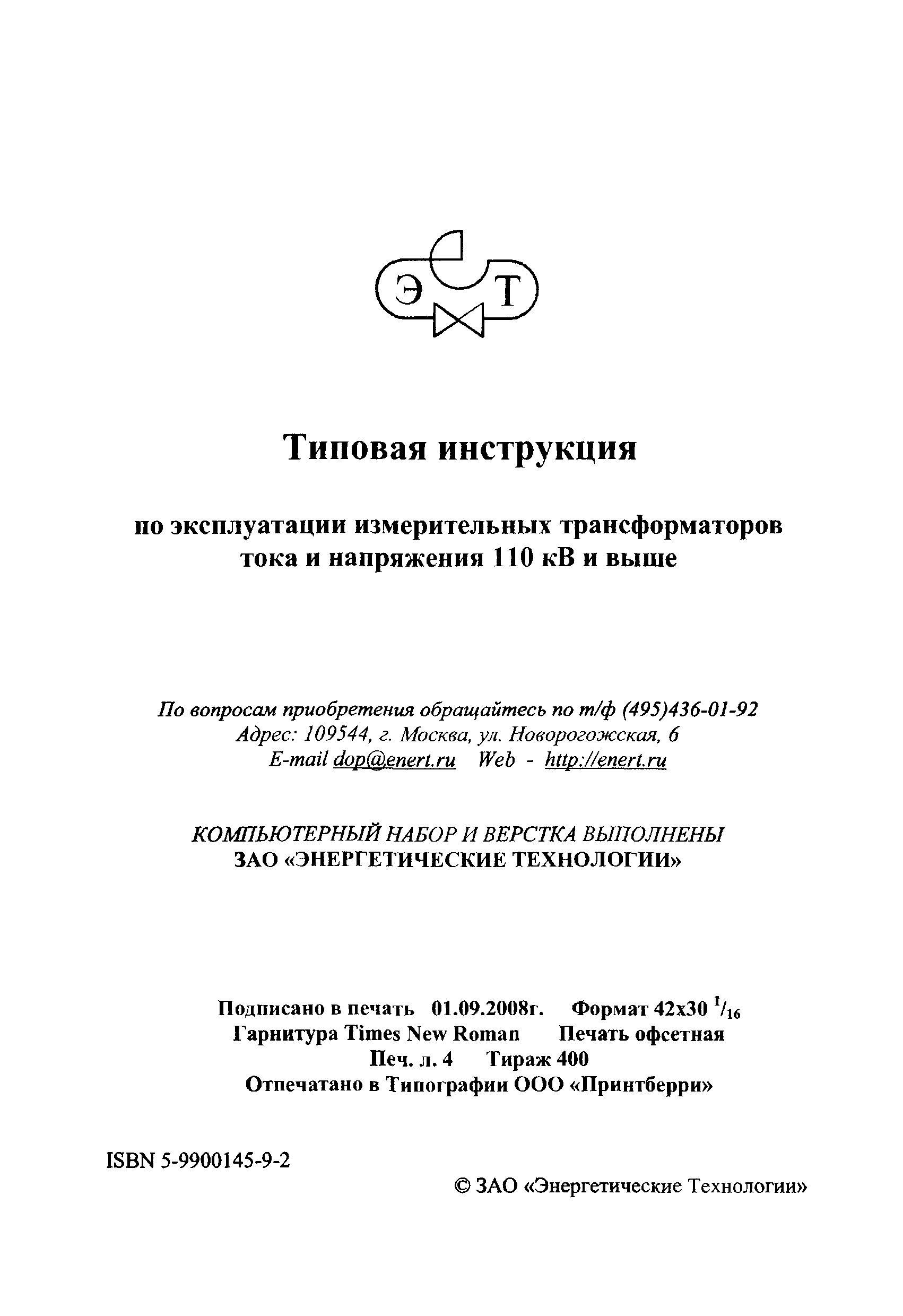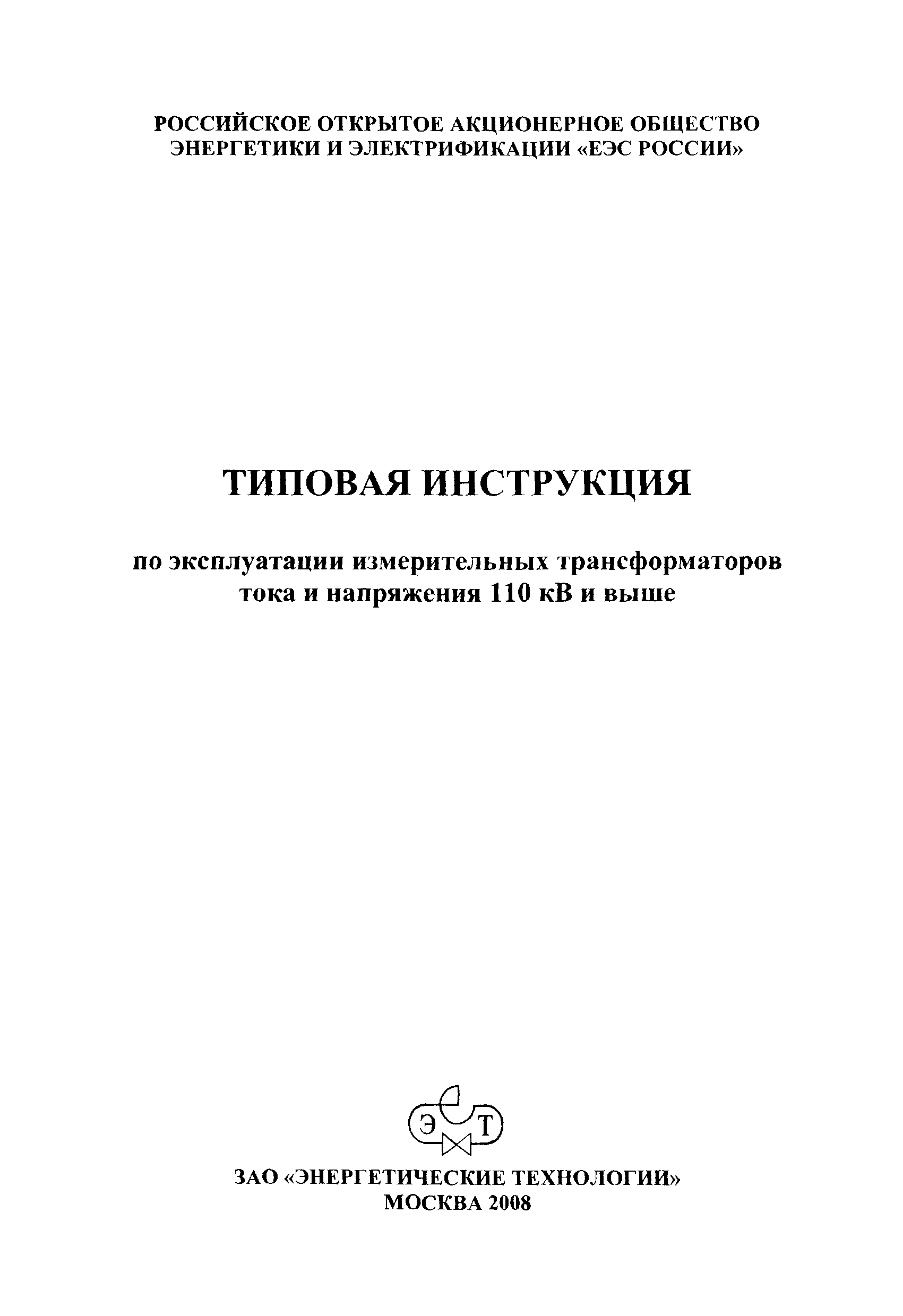 | Название рус.: | Типовая инструкция по эксплуатации измерительных трансформаторов тока и напряжения 110 кВ и выше |