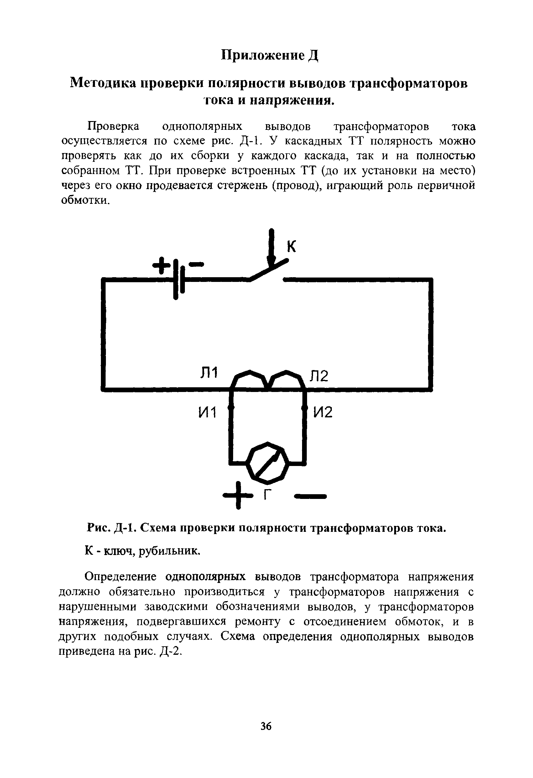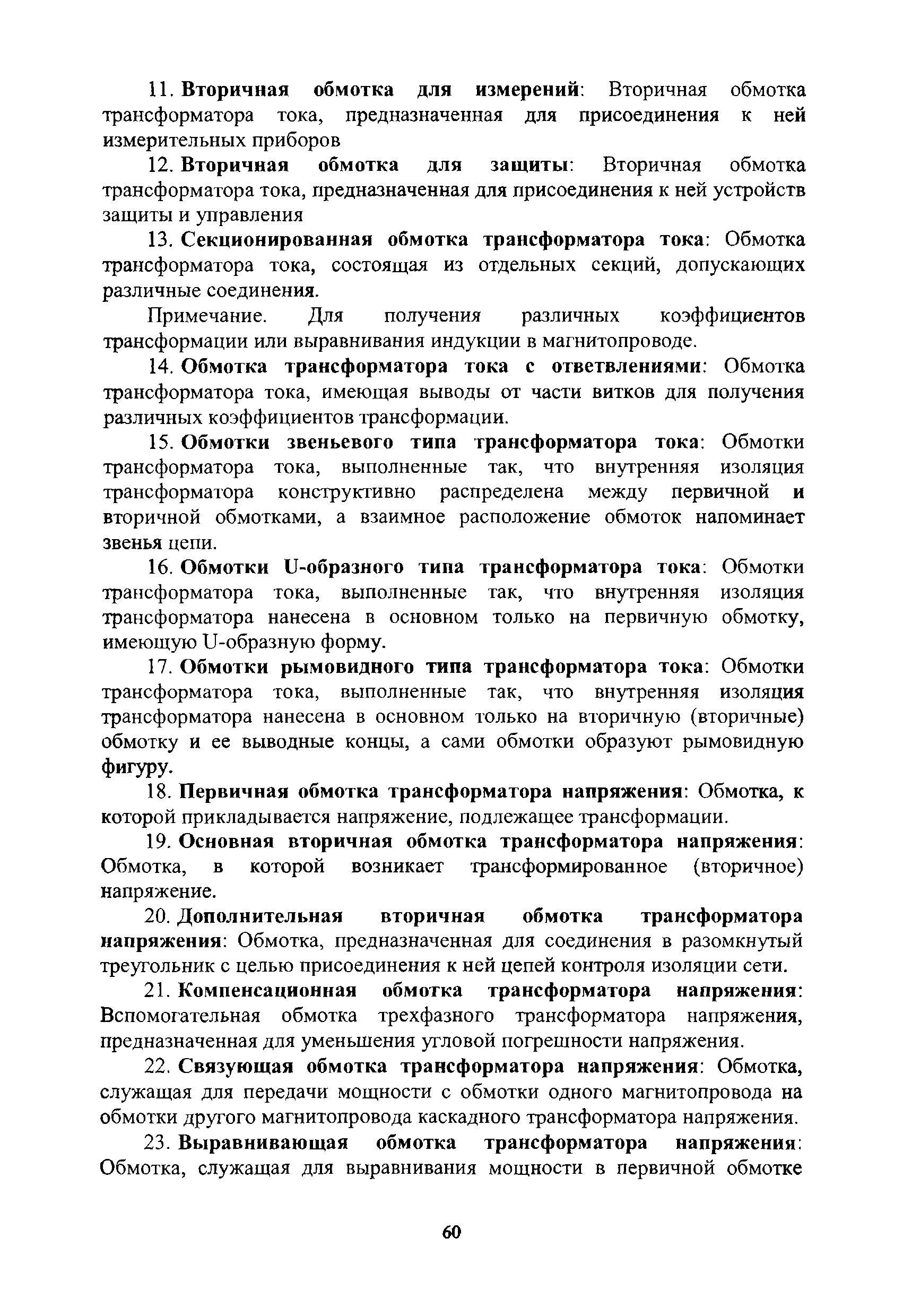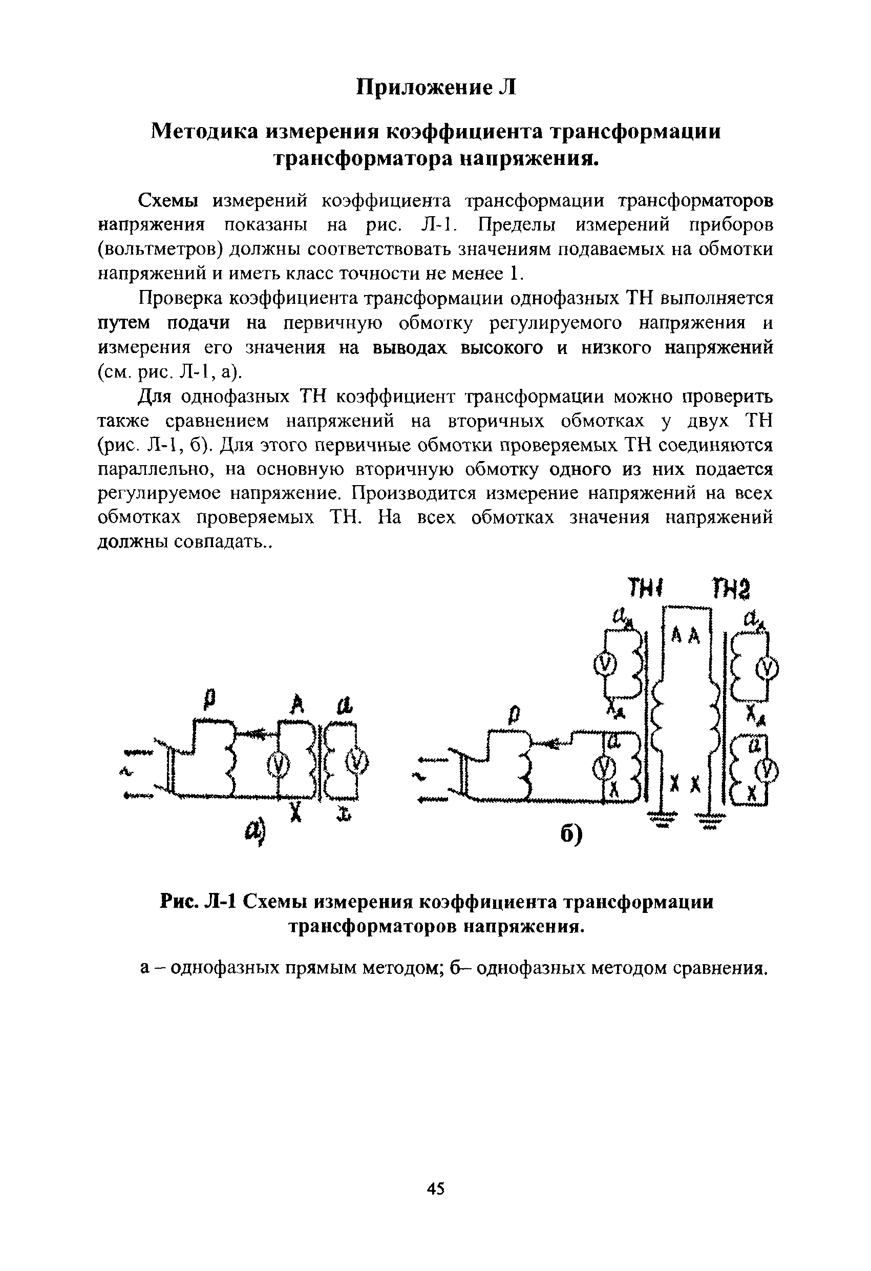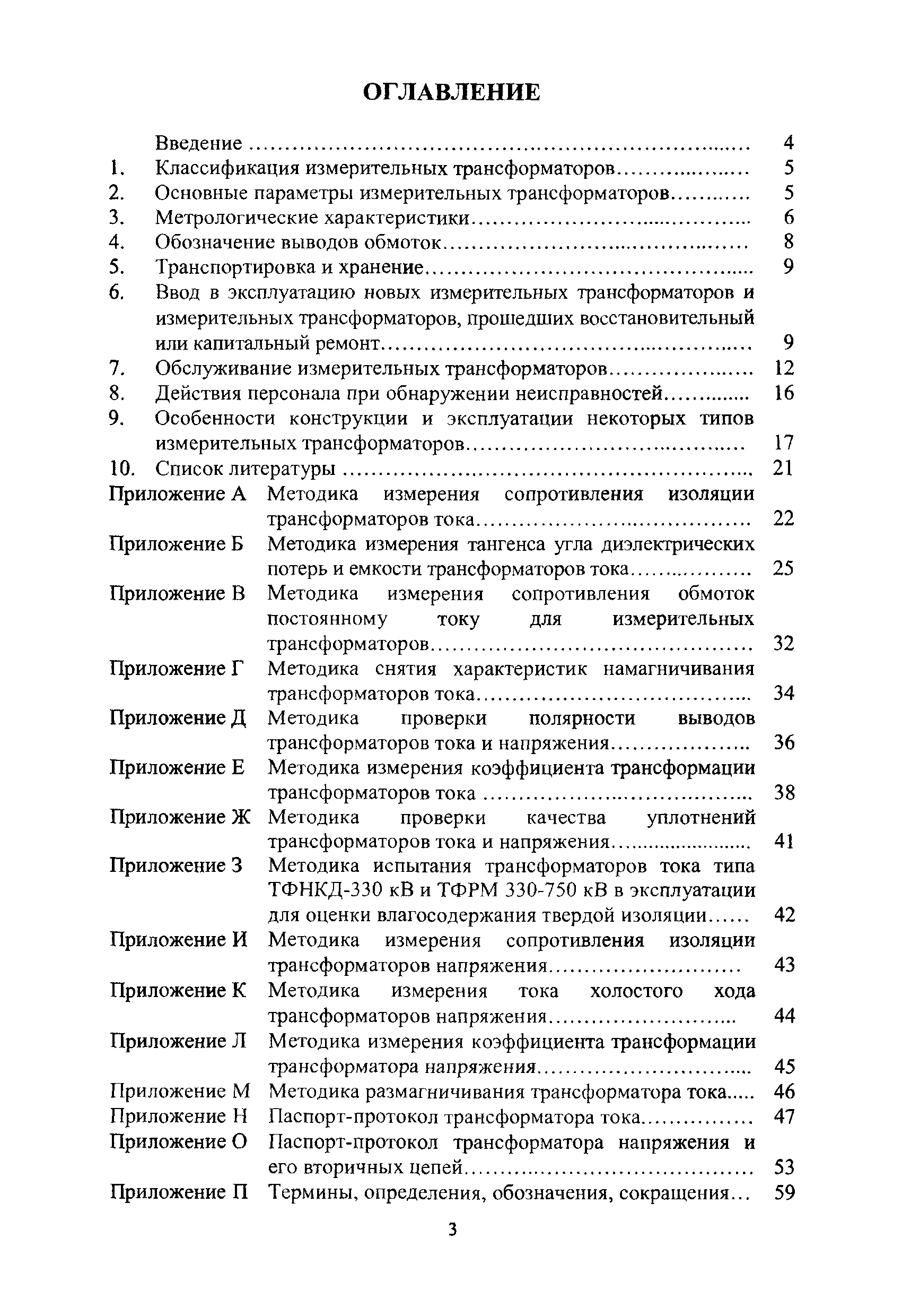 | Оглавление: | Введение 1. Классификация измерительных трансформаторов 2. Основные параметры измерительных трансформаторов 3. Метрологические характеристики 4. Обозначение выводов обмоток 5. Транспортировка и хранение 6. Ввод в эксплуатацию новых измерительных трансформаторов и измерительных трансформаторов, прошедших восстановительный или капитальный ремонт 7. Обслуживание измерительных трансформаторов 8. Действия персонала при обнаружении неисправностей 9. Особенности конструкции и эксплуатации некоторых типов измерительных трансформаторов 10. Список литературы Приложение А Методика измерения сопротивления изоляции трансформаторов тока Приложение Б Методика измерения тангенса угла диэлектрических потерь и емкости трансформаторов тока Приложение В Методика измерения сопротивления обмоток постоянному току для измерительных трансформаторов Приложение Г Методика снятия характеристик намагничивания трансформаторов тока Приложение Д Методика проверки полярности выводов трансформаторов тока и напряжения Приложение Е Методика измерения коэффициента трансформации трансформаторов тока Приложение Ж Методика проверки качества уплотнений трансформаторов тока и напряжения Приложение З Методика испытания трансформаторов тока типа ТФНКД-330 кВ и ТФРМ 330-750 кВ в эксплуатации для оценки влагосодержания твердой изоляции Приложение И Методика измерения сопротивления изоляции трансформаторов напряжения Приложение К Методика измерения тока холостого хода трансформаторов напряжения Приложение Л Методика измерения коэффициента трансформации трансформатора напряжения Приложение М Методика размагничивания трансформатора тока Приложение Н Паспорт-протокол трансформатора тока Приложение О Паспорт-протокол трансформатора напряжения и его вторичных цепей Приложение П Термины, определения, обозначения, сокращения |