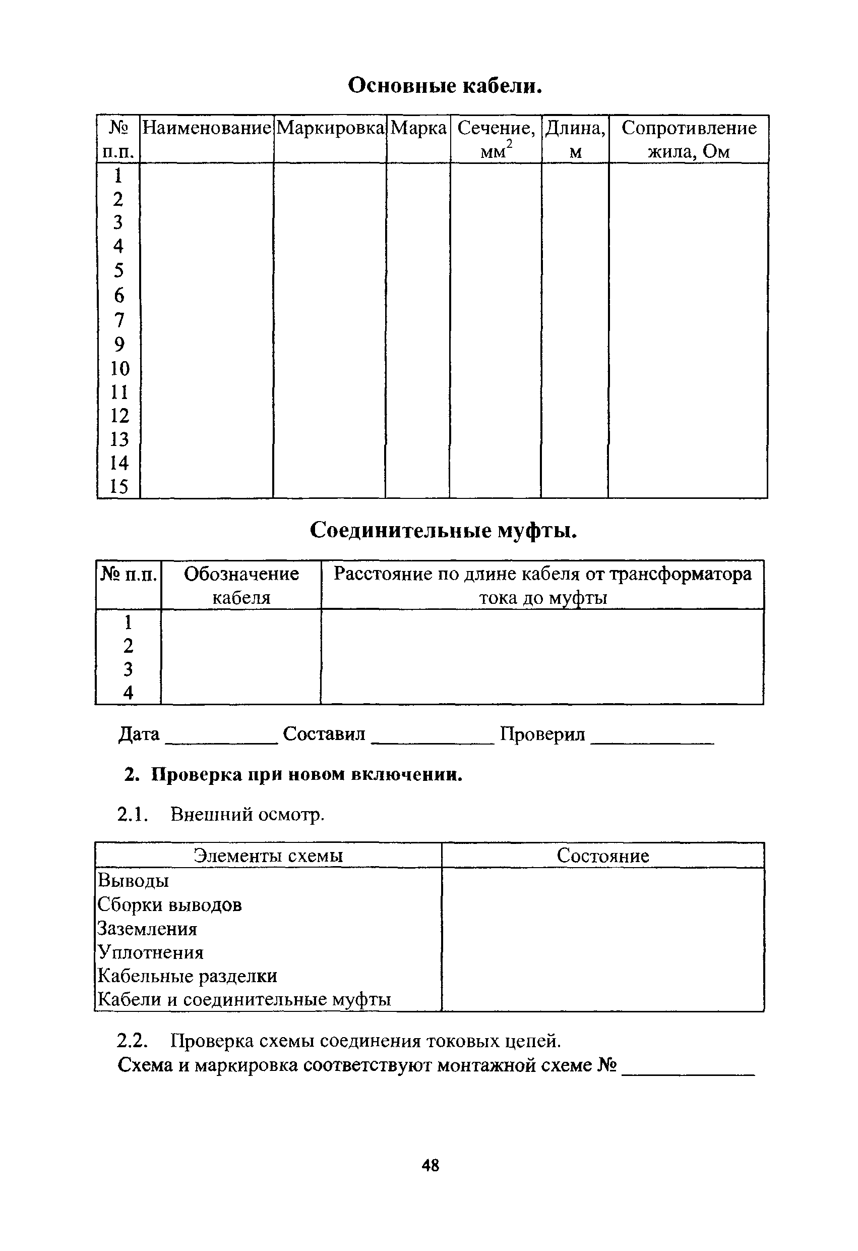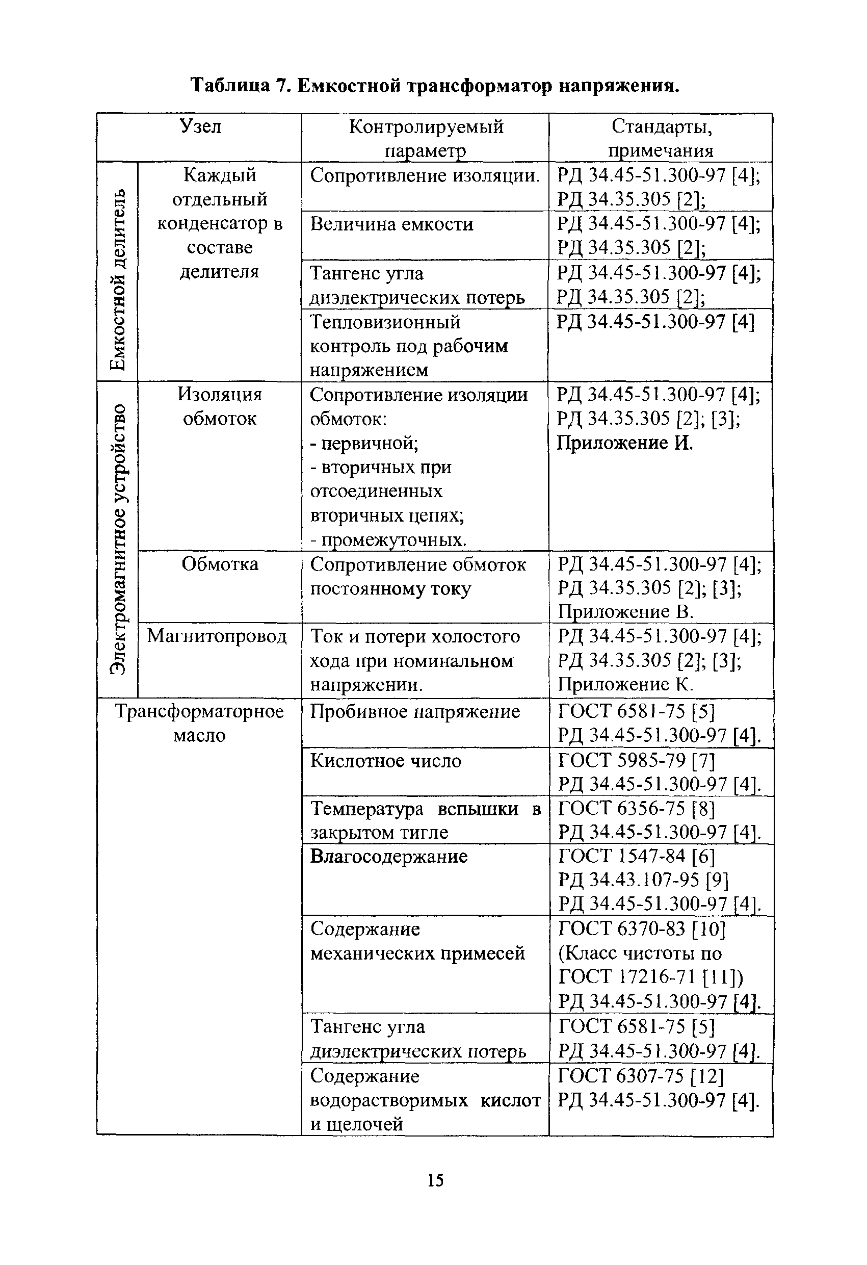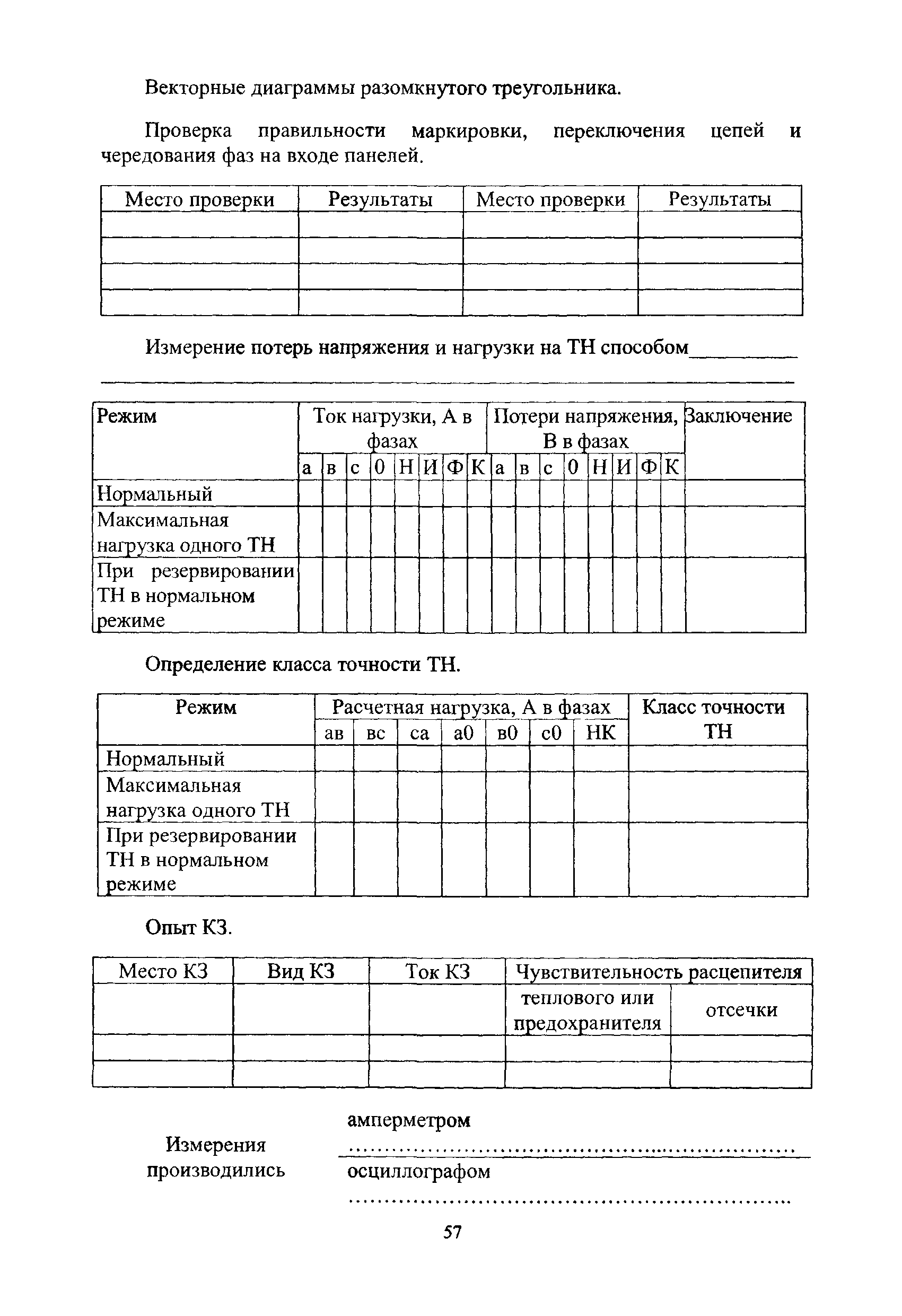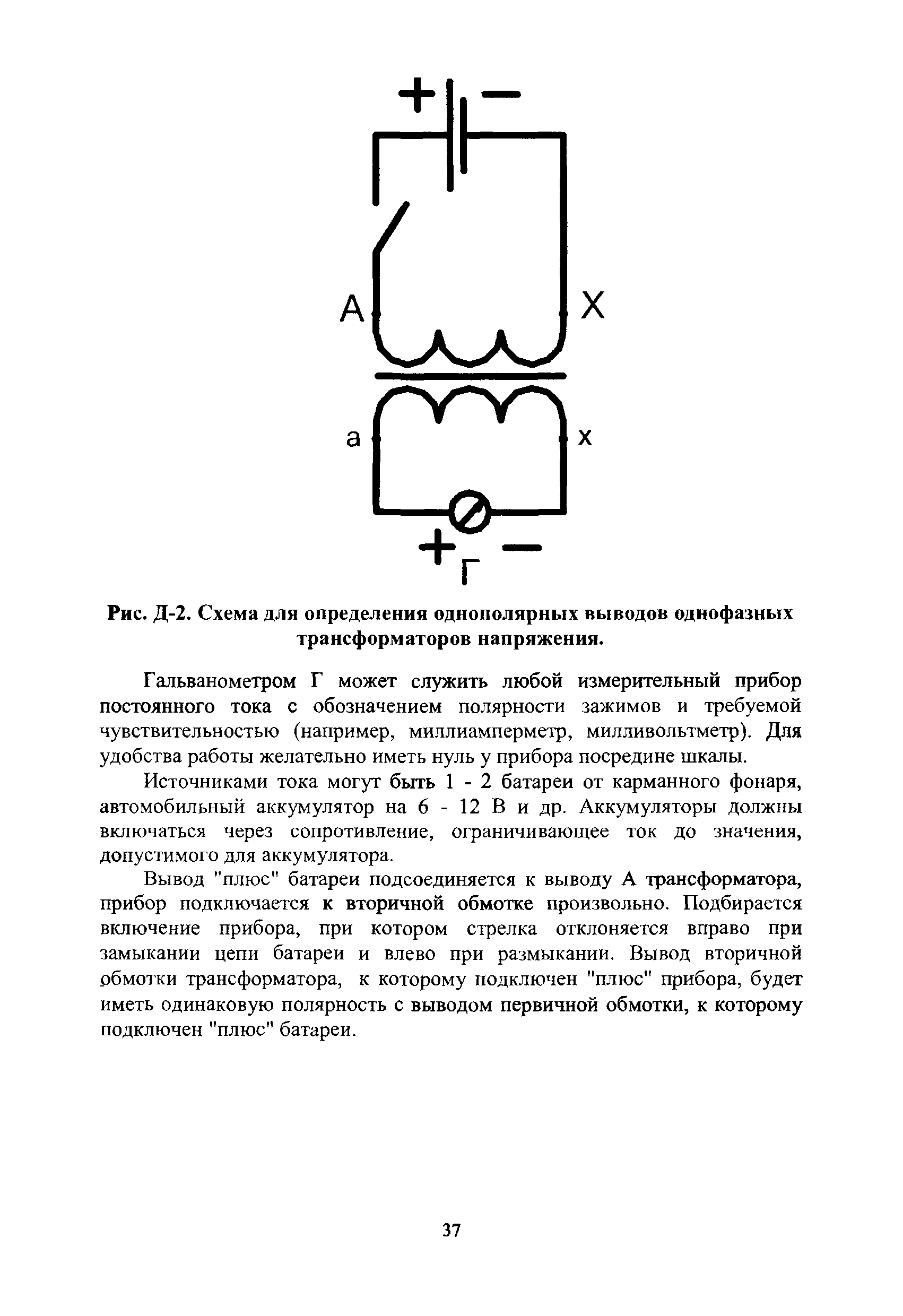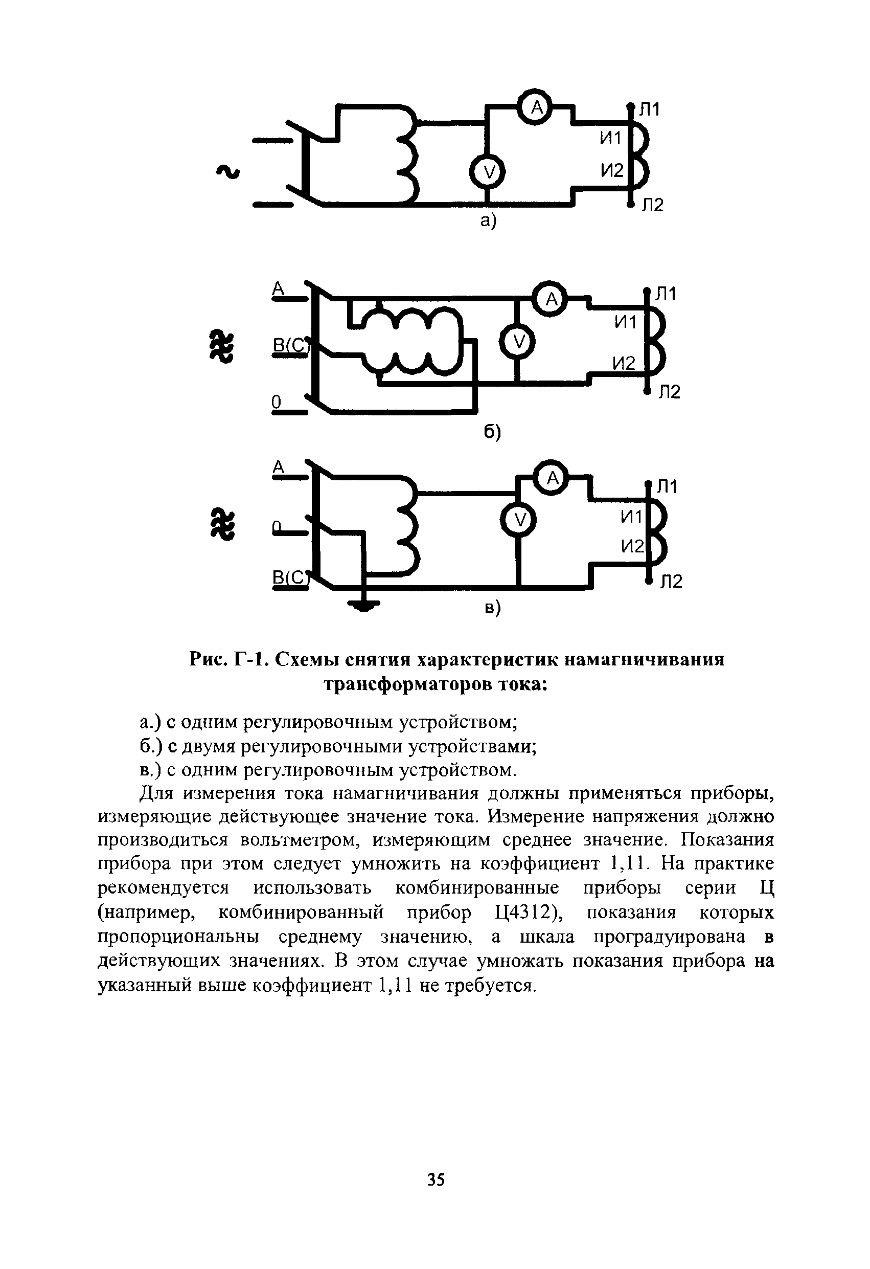 | Оглавление: | Введение 1. Классификация измерительных трансформаторов 2. Основные параметры измерительных трансформаторов 3. Метрологические характеристики 4. Обозначение выводов обмоток 5. Транспортировка и хранение 6. Ввод в эксплуатацию новых измерительных трансформаторов и измерительных трансформаторов, прошедших восстановительный или капитальный ремонт 7. Обслуживание измерительных трансформаторов 8. Действия персонала при обнаружении неисправностей 9. Особенности конструкции и эксплуатации некоторых типов измерительных трансформаторов 10. Список литературы Приложение А Методика измерения сопротивления изоляции трансформаторов тока Приложение Б Методика измерения тангенса угла диэлектрических потерь и емкости трансформаторов тока Приложение В Методика измерения сопротивления обмоток постоянному току для измерительных трансформаторов Приложение Г Методика снятия характеристик намагничивания трансформаторов тока Приложение Д Методика проверки полярности выводов трансформаторов тока и напряжения Приложение Е Методика измерения коэффициента трансформации трансформаторов тока Приложение Ж Методика проверки качества уплотнений трансформаторов тока и напряжения Приложение З Методика испытания трансформаторов тока типа ТФНКД-330 кВ и ТФРМ 330-750 кВ в эксплуатации для оценки влагосодержания твердой изоляции Приложение И Методика измерения сопротивления изоляции трансформаторов напряжения Приложение К Методика измерения тока холостого хода трансформаторов напряжения Приложение Л Методика измерения коэффициента трансформации трансформатора напряжения Приложение М Методика размагничивания трансформатора тока Приложение Н Паспорт-протокол трансформатора тока Приложение О Паспорт-протокол трансформатора напряжения и его вторичных цепей Приложение П Термины, определения, обозначения, сокращения |