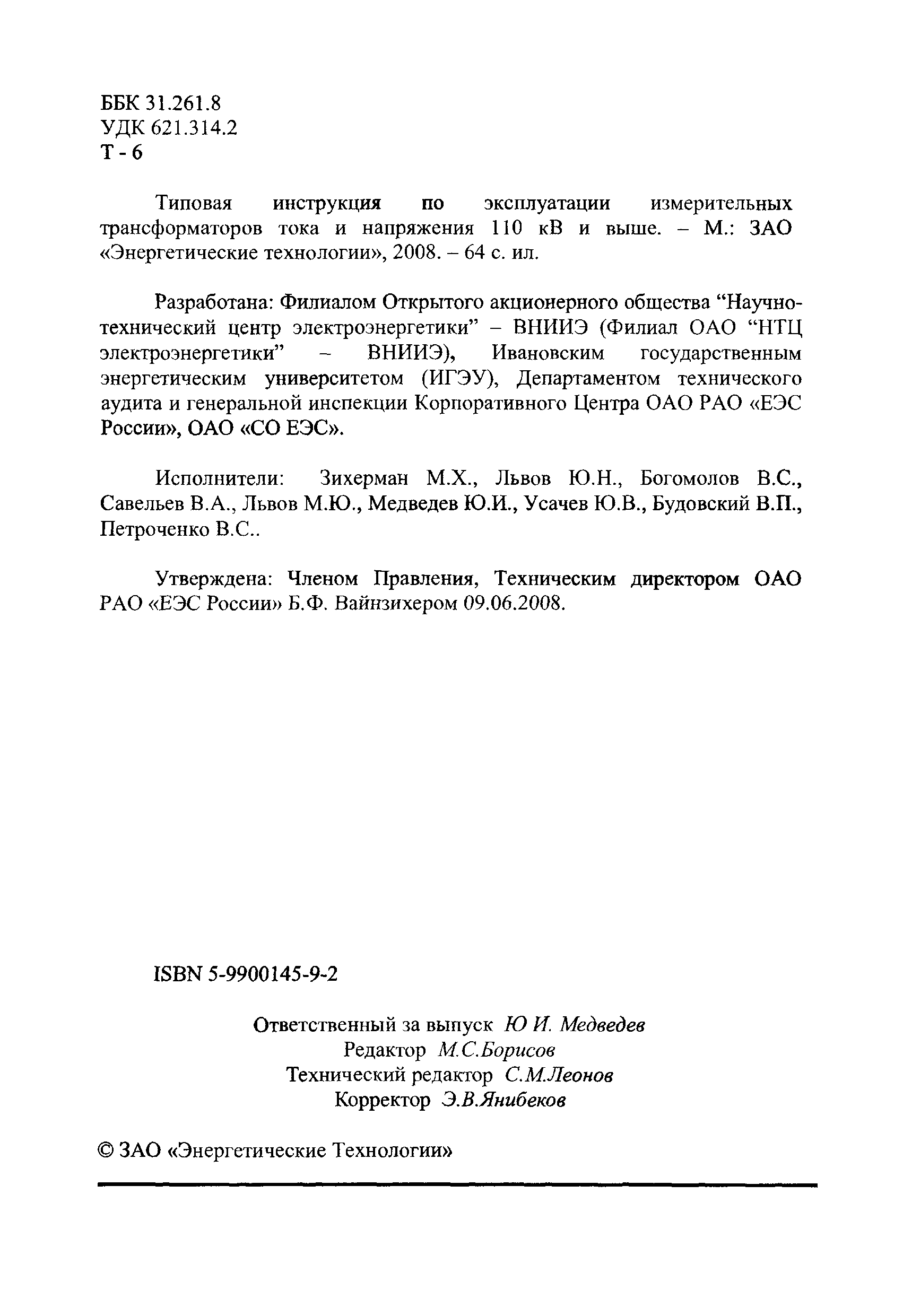| Утверждён: | 09.06.2008 ОАО РАО ЕЭС России (UES of Russia RAO OAO ) |