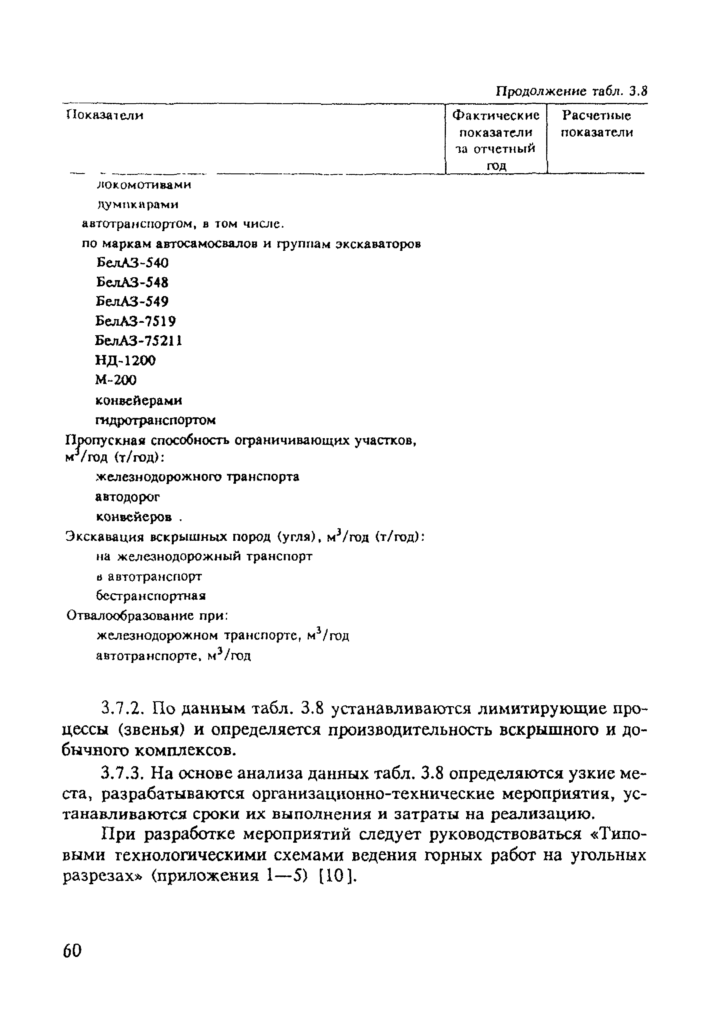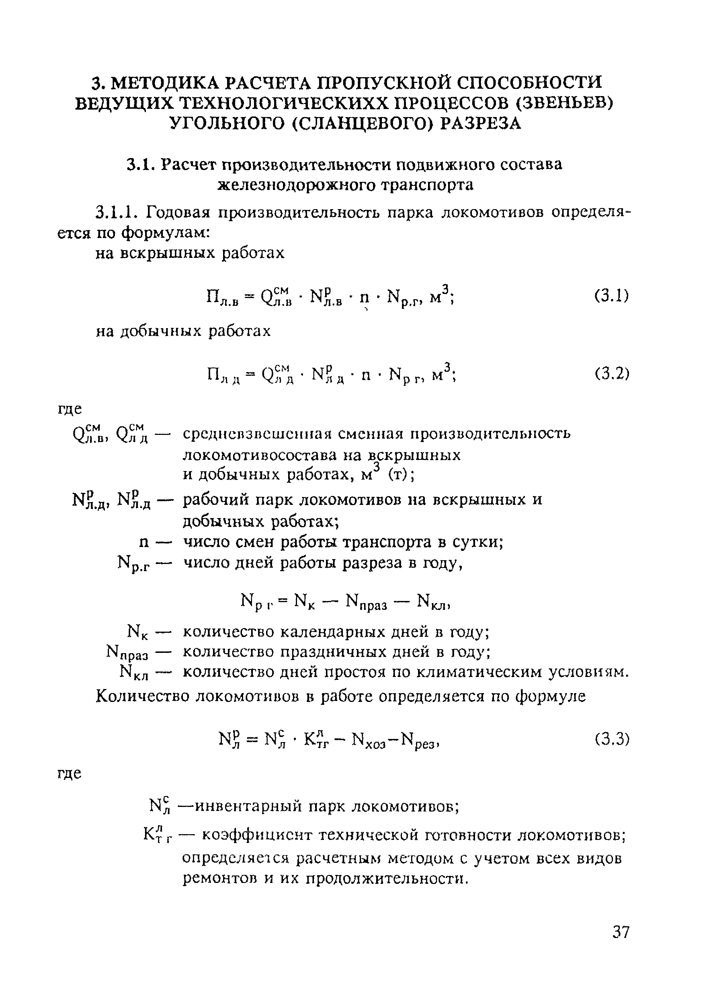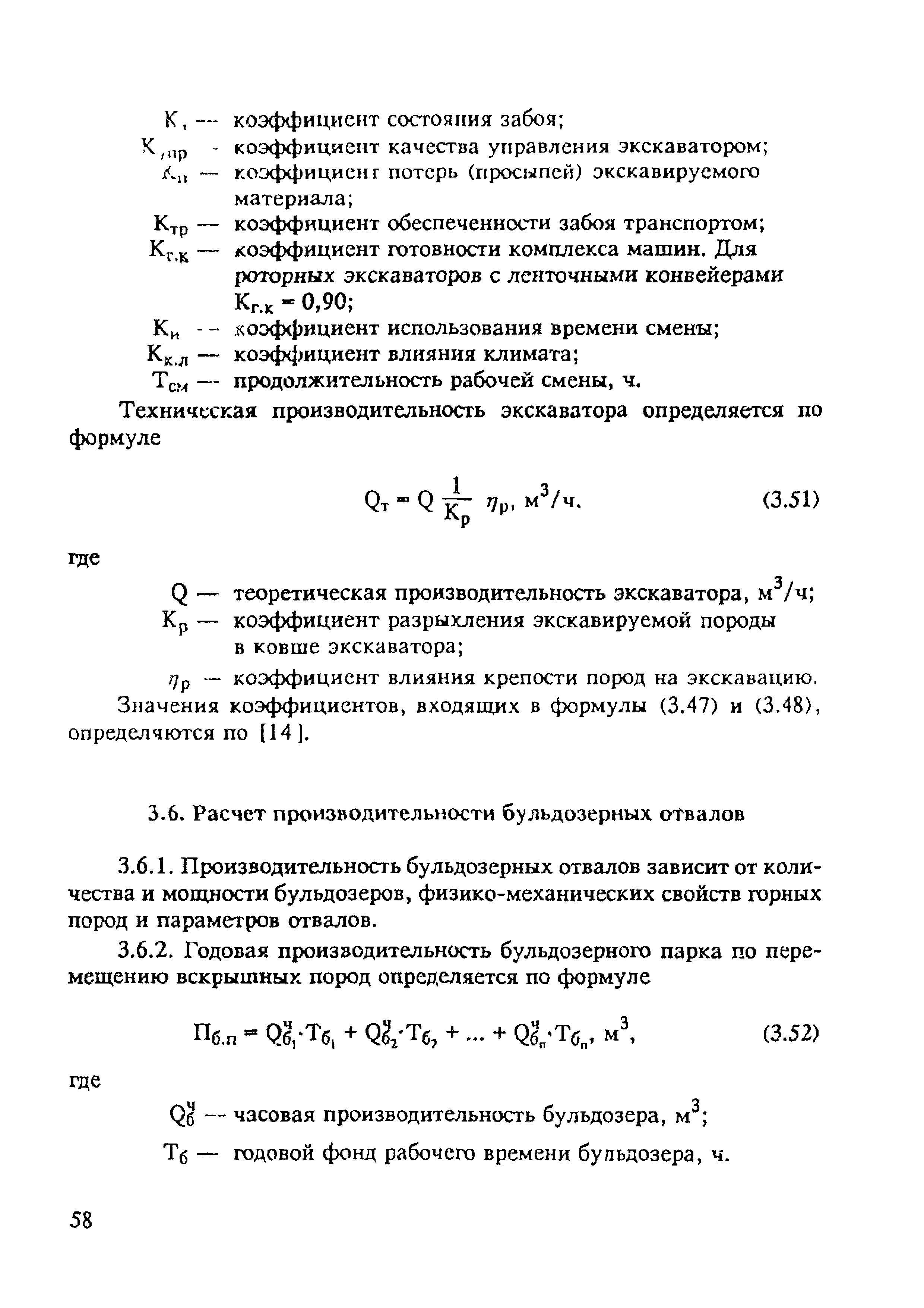 | Оглавление: | 1. Основные положения 2. Методика расчета пропускной способности (производительности) ведущих технологических процессов (звеньев) шахт по добыче угля (сланца) 2.1. Расчет технических возможностей шахт по добыче угля по фронту горных работ 2.2. Расчет пропускной способности подземного транспорта 2.3. Расчет пропускной способности подъемных установок 2.4. Расчет технических возможностей шахт по вентиляции 2.5. Расчет пропускной способности технологического комплекса поверхности шахт 3. Методика расчета пропускной способности ведущих технологических процессов (звеньев) угольного (сланцевого) разреза 3.1. Расчет производительности подвижного состава железнодорожного транспорта 3.2. Расчет пропускной и провозной способности железнодорожных путей 3.3. Расчет производительности автомобильного транспорта и провозной способности сети автодорог 3.4. Расчет производительности экскаваторного парка 3.5. Расчет производительности экскаватора и комплексов машин непрерывного действия 3.6. Расчет производительности бульдозерных отвалов 3.7. Расчет производительности вскрышного (добычного) комплекса 3.8. Расчет производительности разреза по фронту горных работ 3.9. Сводные показатели результатов расчета производственной мощности разреза 4. Методика расчета пропускной способности ведущих технологических операций (звеньев) обогатительной фабрики 4.1. Расчет пропускной способности углеприема и классификация на машинные классы 4.2. Расчет пропускной способности процессов обогащения угля 4.3. Расчет пропускной способности процессов обезвоживания 4.4. Расчет пропускной способности процессов обработки шламов и осветления шламовых вод 4.5. Расчет пропускной способности сушильных установок 4.6. Расчет пропускной способности внутрифабричного транспорта 4.7. Расчет годовой производственной мощности обогатителей фабрики 5. Методика расчета пропускной способности основных технологических операций (звеньев) брикетной фабрики Литература |