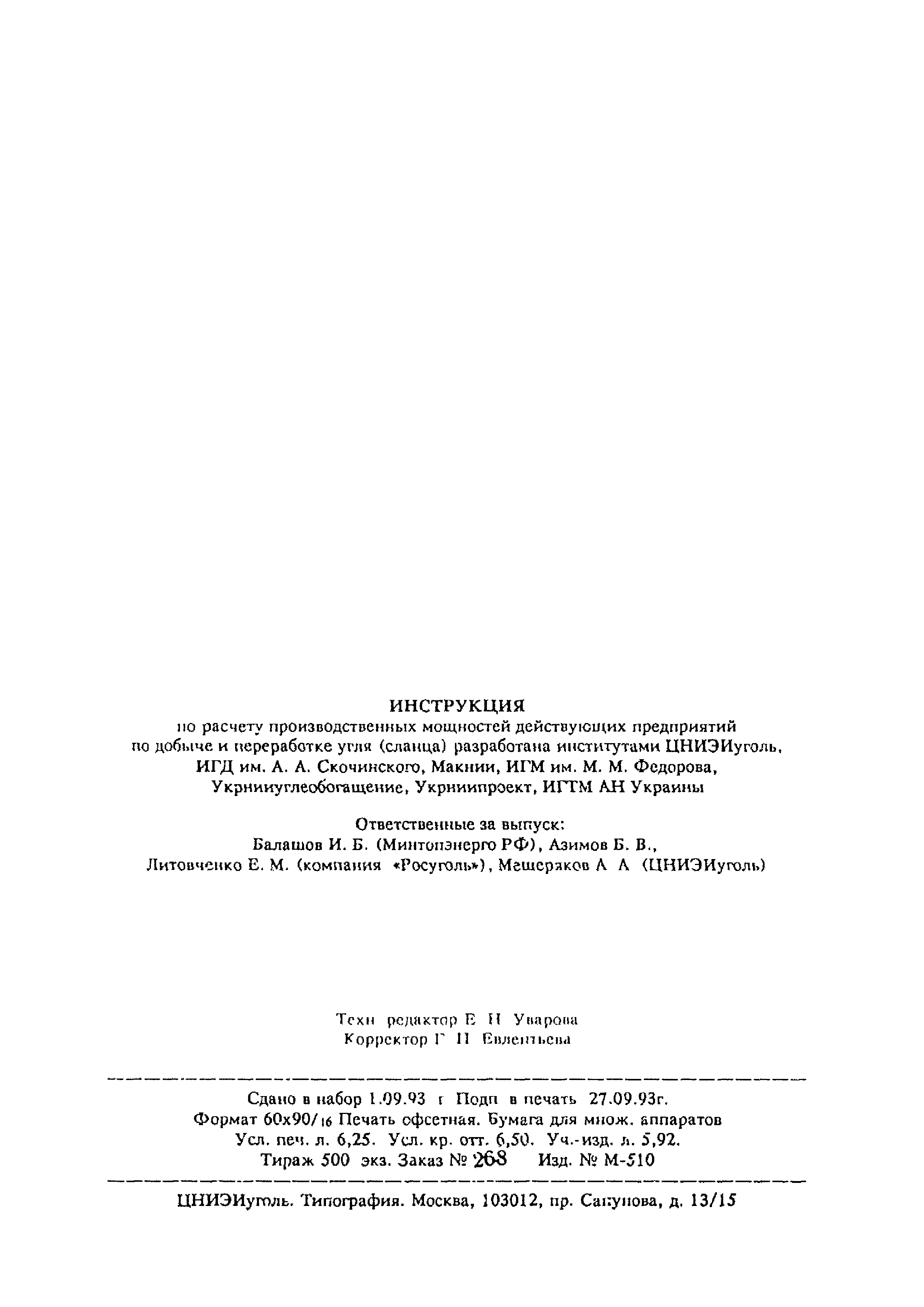 | Название рус.: | Инструкция по расчету производственных мощностей действующих предприятий по добыче и переработке угля (сланца) |
