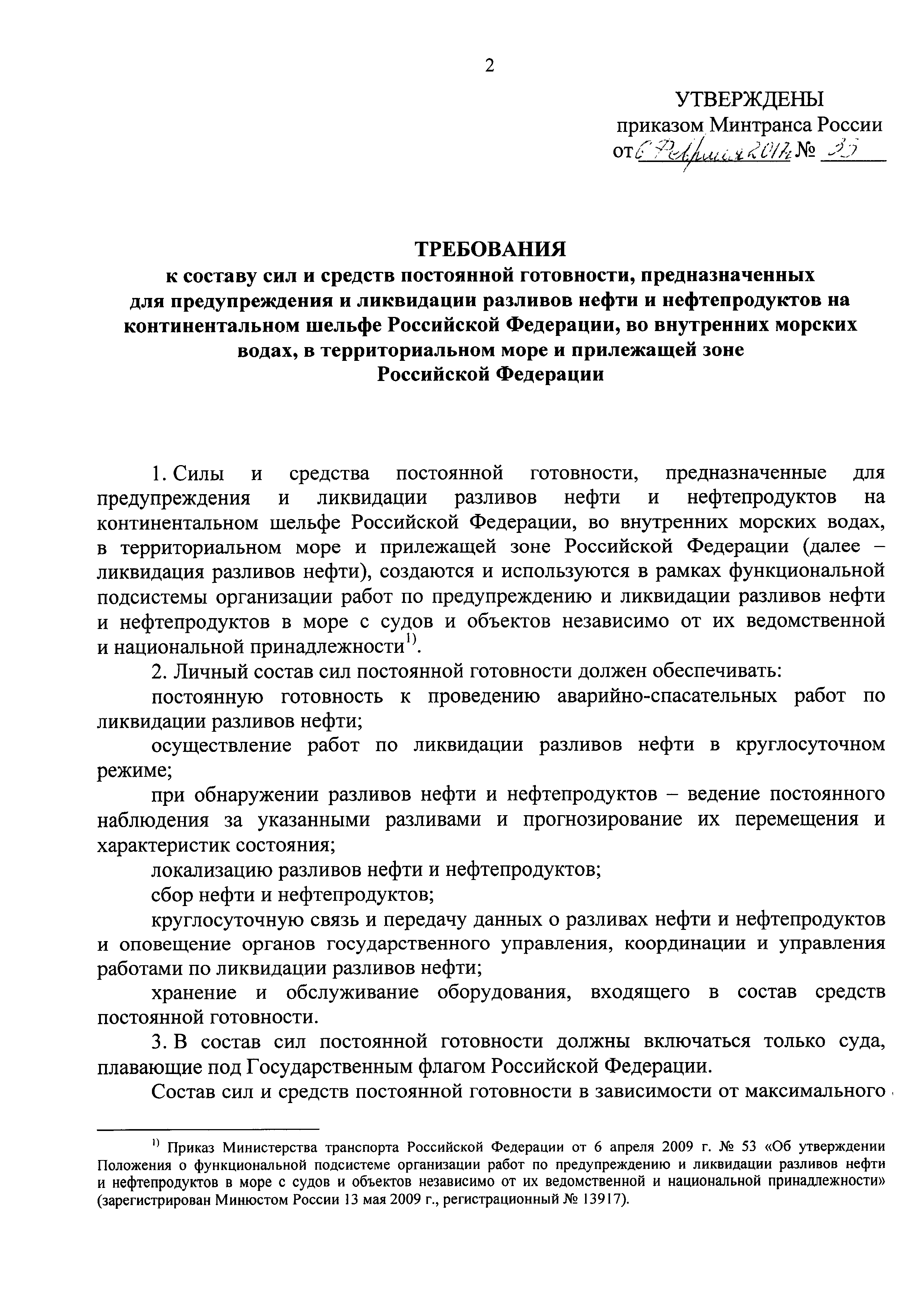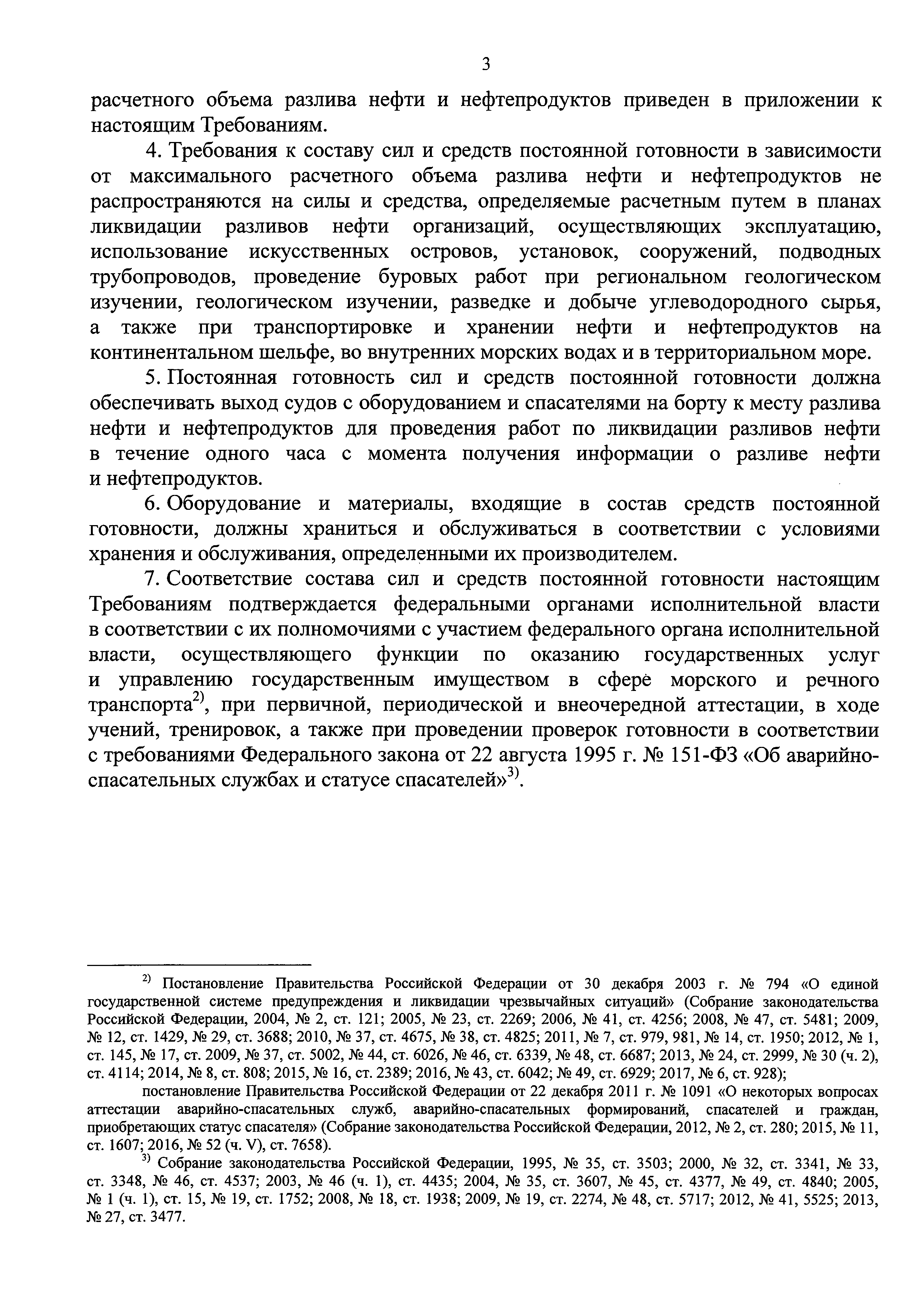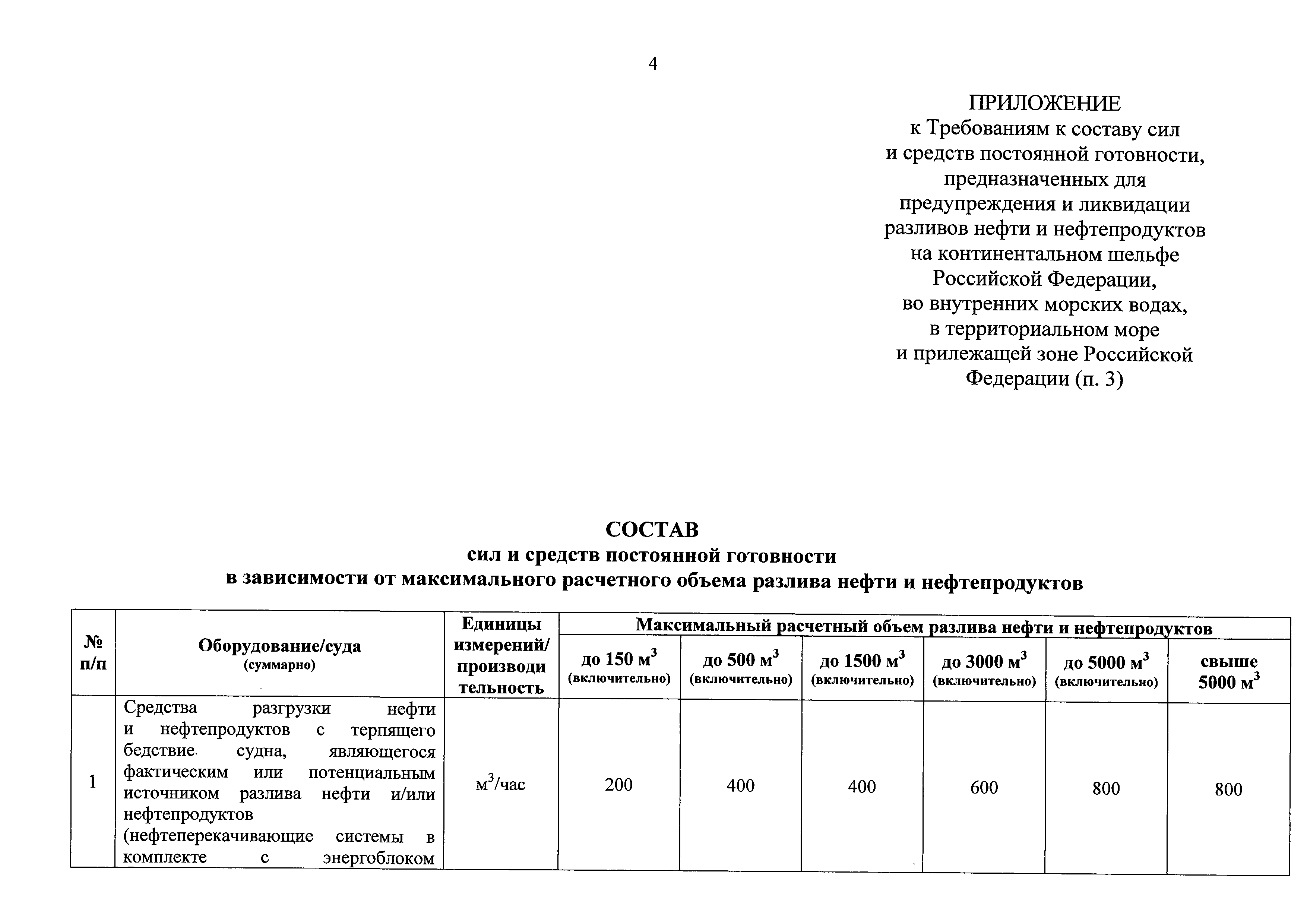 Требования к составу сил и средств постоянной готовности, предназначенных для предупреждения и ликвидации разливов нефти и нефтепродуктов на континентальном шельфе Российской Федерации, во внутренних морских водах, в территориальном море и прилежащей зоне Российской Федерации| Статус: | действует | | Название рус.: | Требования к составу сил и средств постоянной готовности, предназначенных для предупреждения и ликвидации разливов нефти и нефтепродуктов на континентальном шельфе Российской Федерации, во внутренних морских водах, в территориальном море и прилежащей зоне Российской Федерации | | Дата добавления в базу: | 01.01.2018 | | Дата актуализации: | 01.01.2021 | | Дата введения: | 30.06.2017 | | Дата окончания срока действия: | 01.01.2021 | | Оглавление: | Приложение. Состав сил и средств постоянной готовности в зависимости от максимального расчетного объема разлива нефти и нефтепродуктов | | Утверждён: | 06.02.2017 Минтранс России (Russian Federation Mintrans 33)