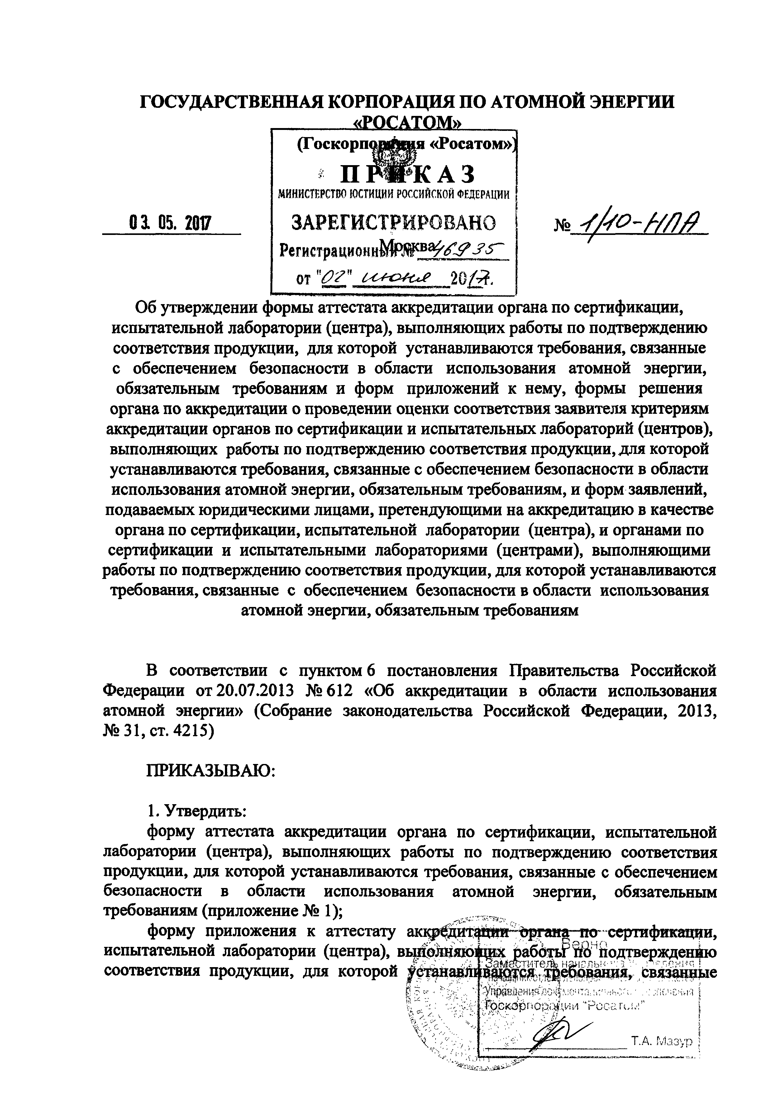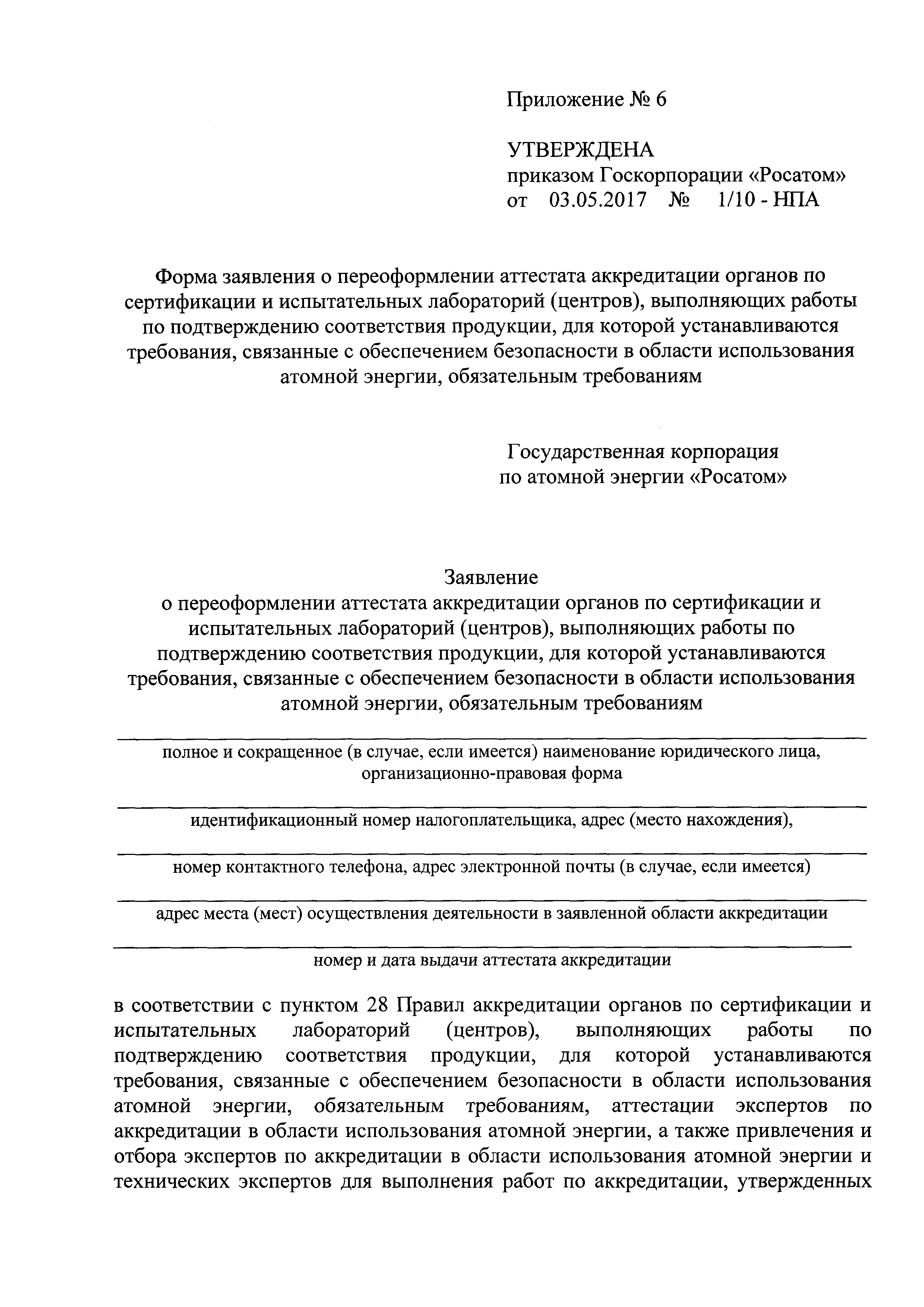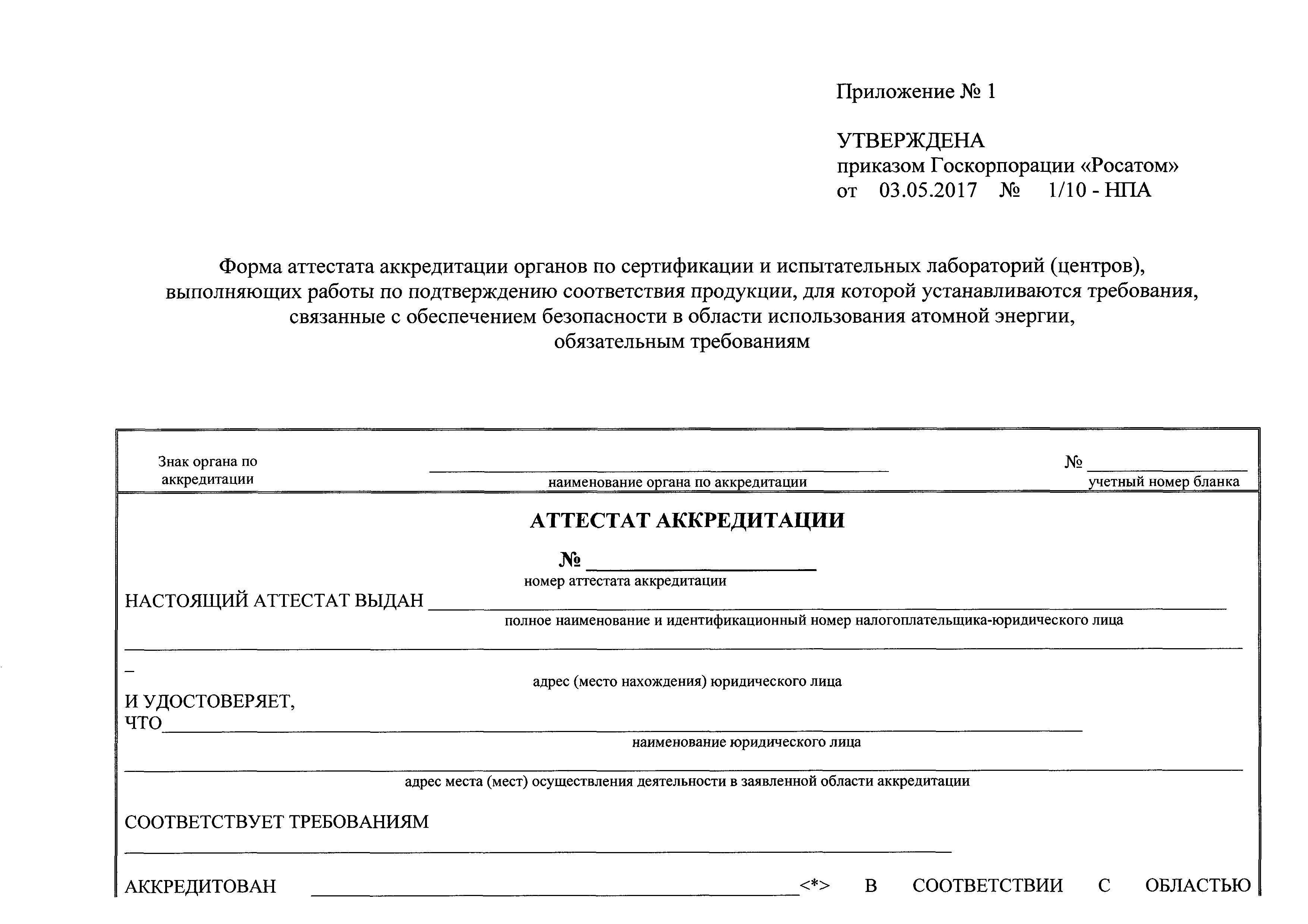 | Утверждён: | 03.05.2017 Государственная корпорация по атомной энергии РОСАТОМ (1/10-НПА) |